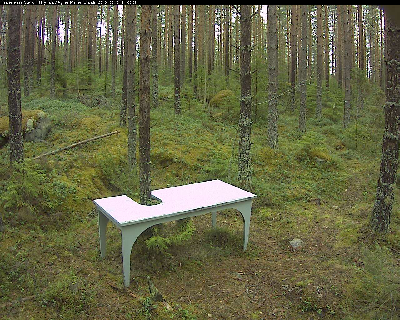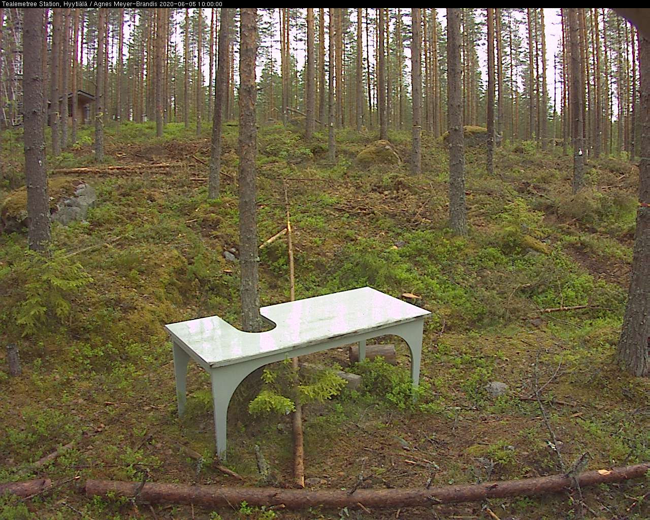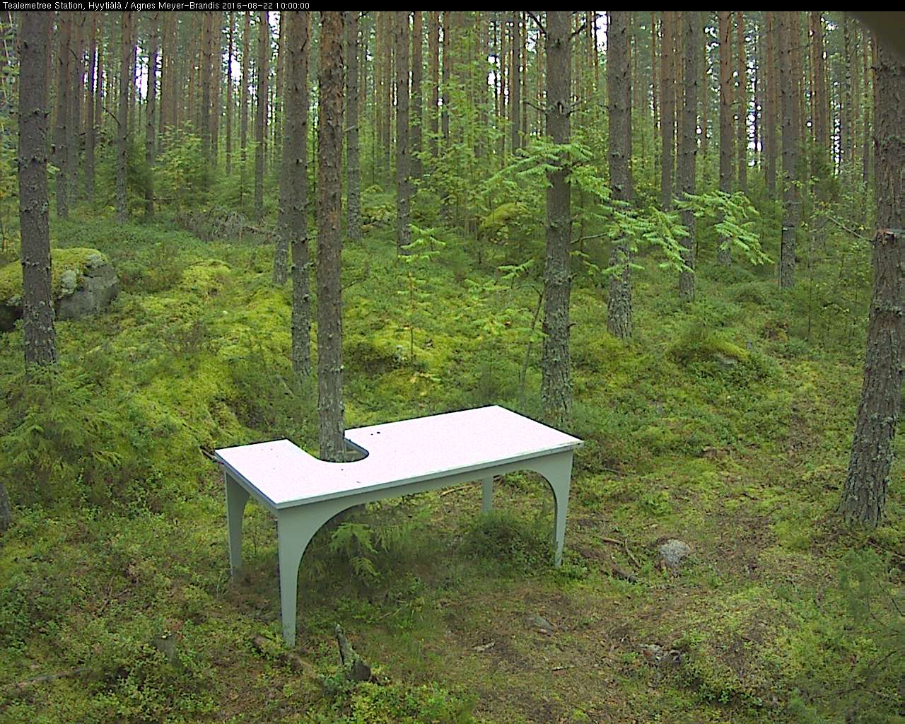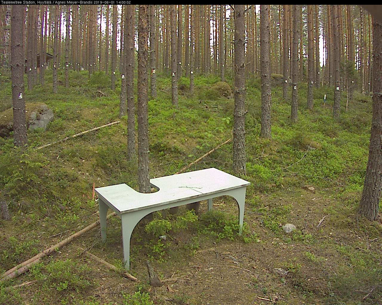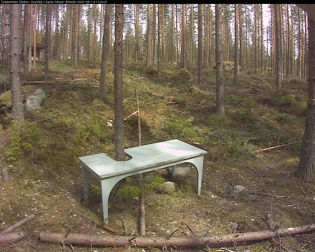 Agnes Meyer-Brandiksen työ Hyytiälässä alkoi tutustumalla aseman muihin tutkijoihin. Pystyäkseen tapaamaan ihmisiä metsässä, hän rakensi pöydän, josta muodostui kohtauspiste ja paikka teehetkille Agneksen ja puun kanssa.