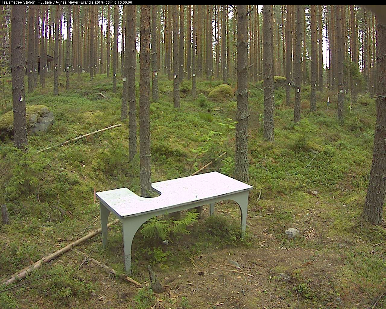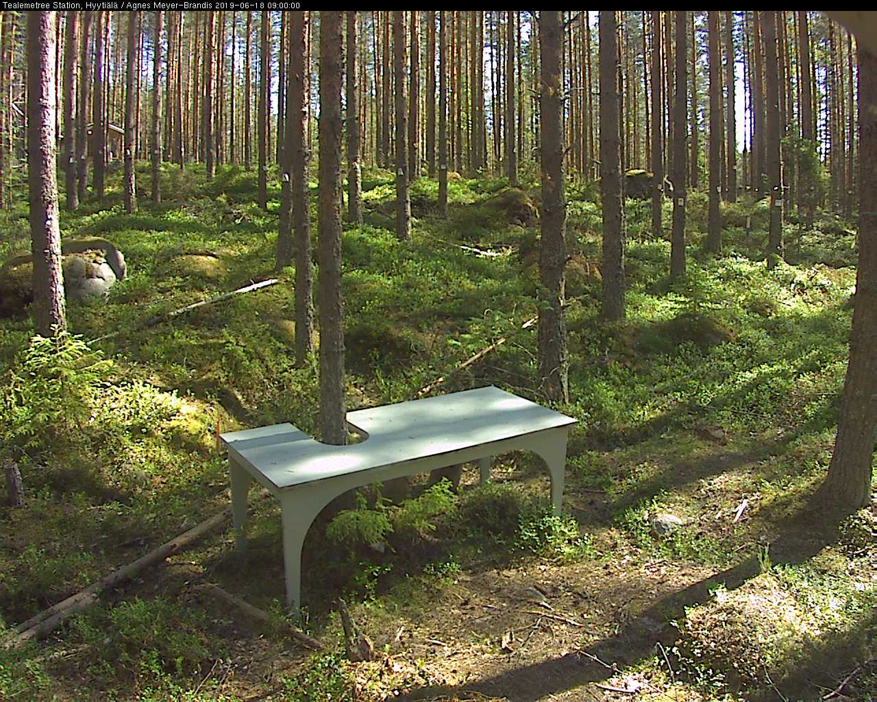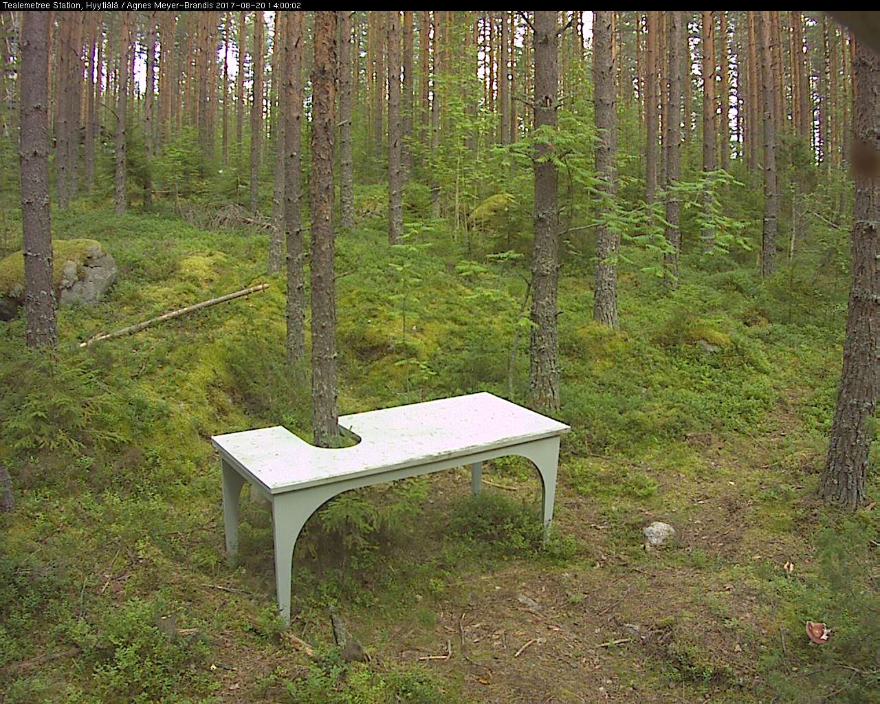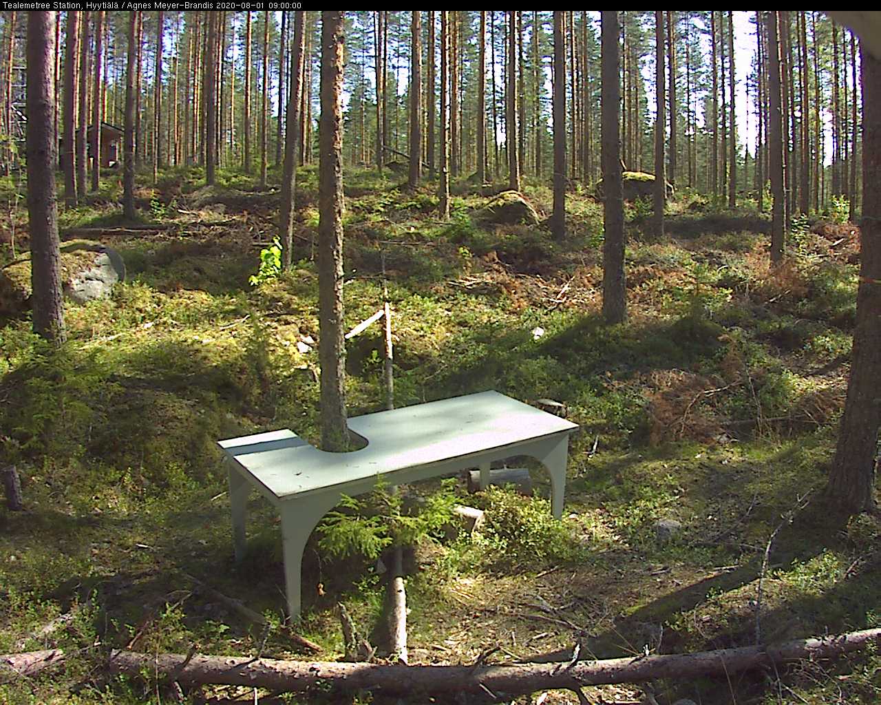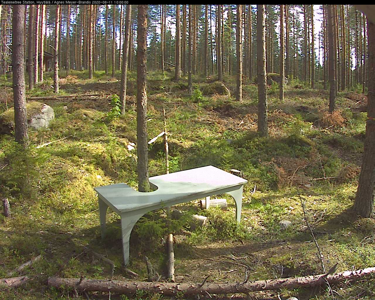 Agnes Meyer-Brandiksen työ Hyytiälässä alkoi tutustumalla aseman muihin tutkijoihin. Pystyäkseen tapaamaan ihmisiä metsässä, hän rakensi pöydän, josta muodostui kohtauspiste ja paikka teehetkille Agneksen ja puun kanssa.