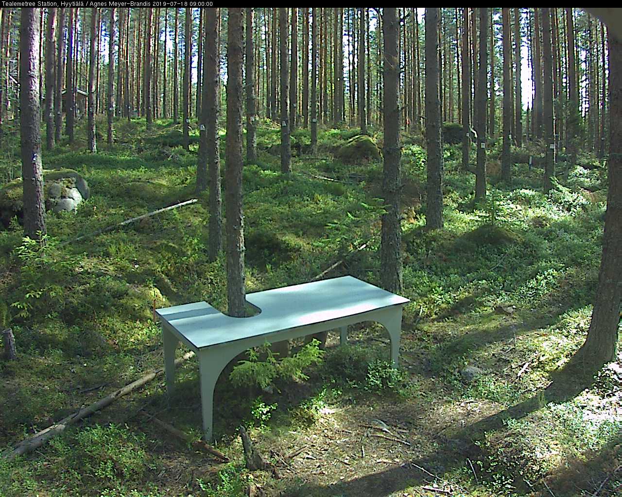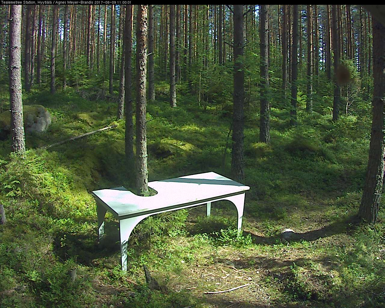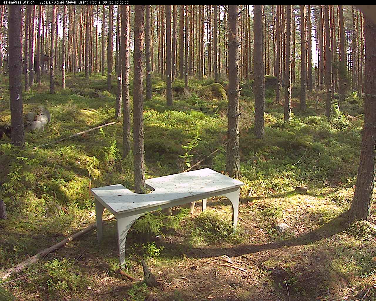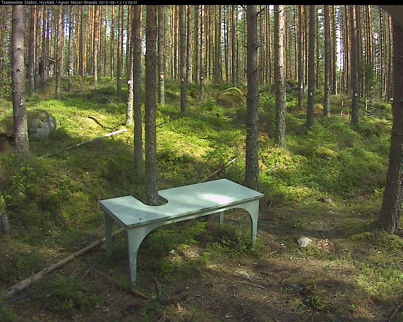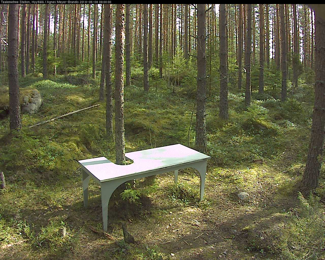 Agnes Meyer-Brandiksen työ Hyytiälässä alkoi tutustumalla aseman muihin tutkijoihin. Pystyäkseen tapaamaan ihmisiä metsässä, hän rakensi pöydän, josta muodostui kohtauspiste ja paikka teehetkille Agneksen ja puun kanssa.