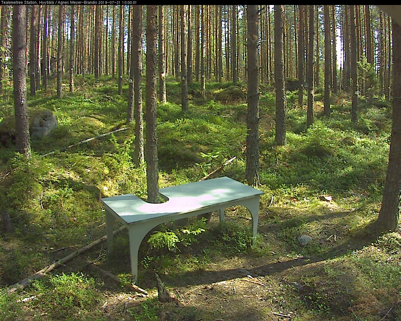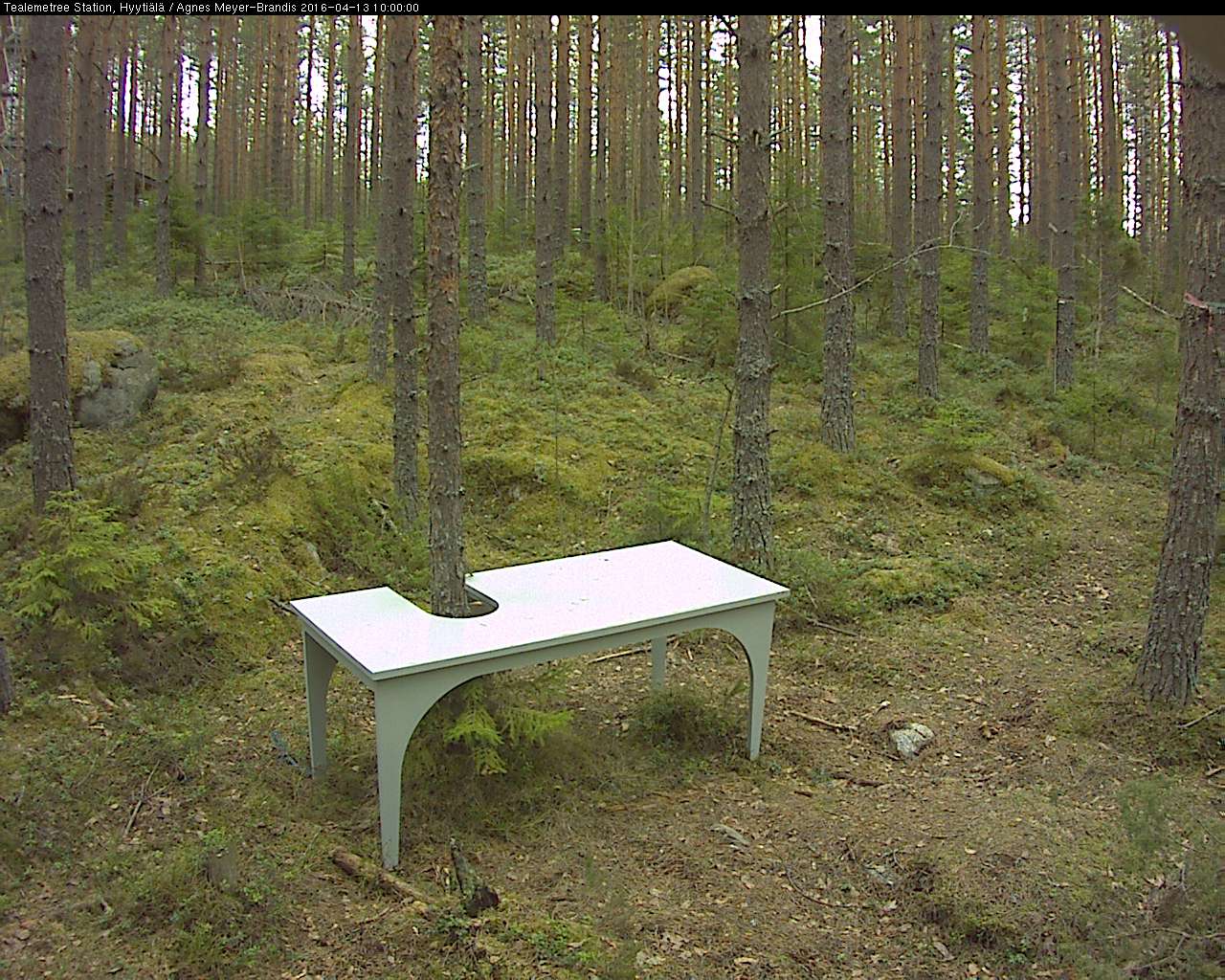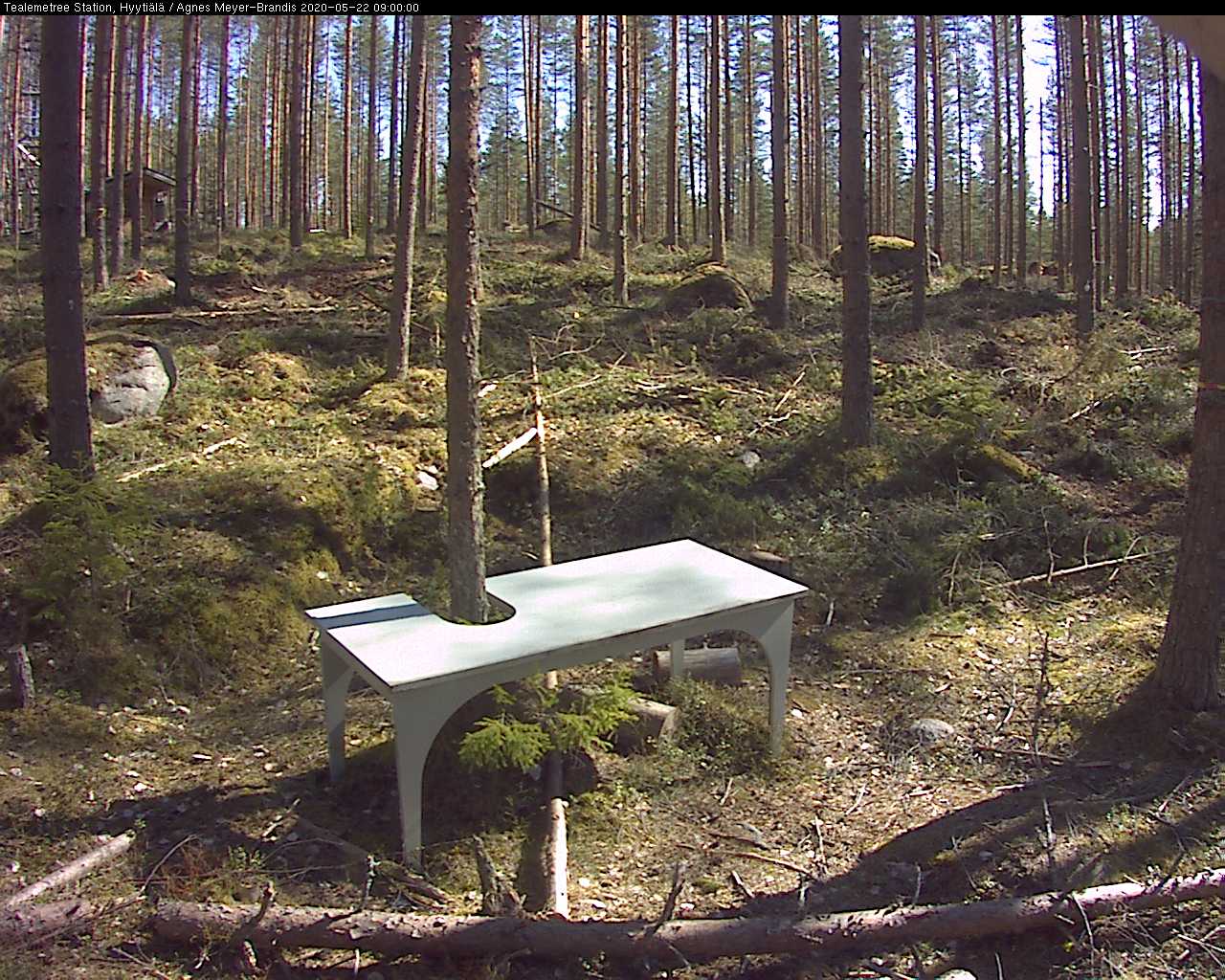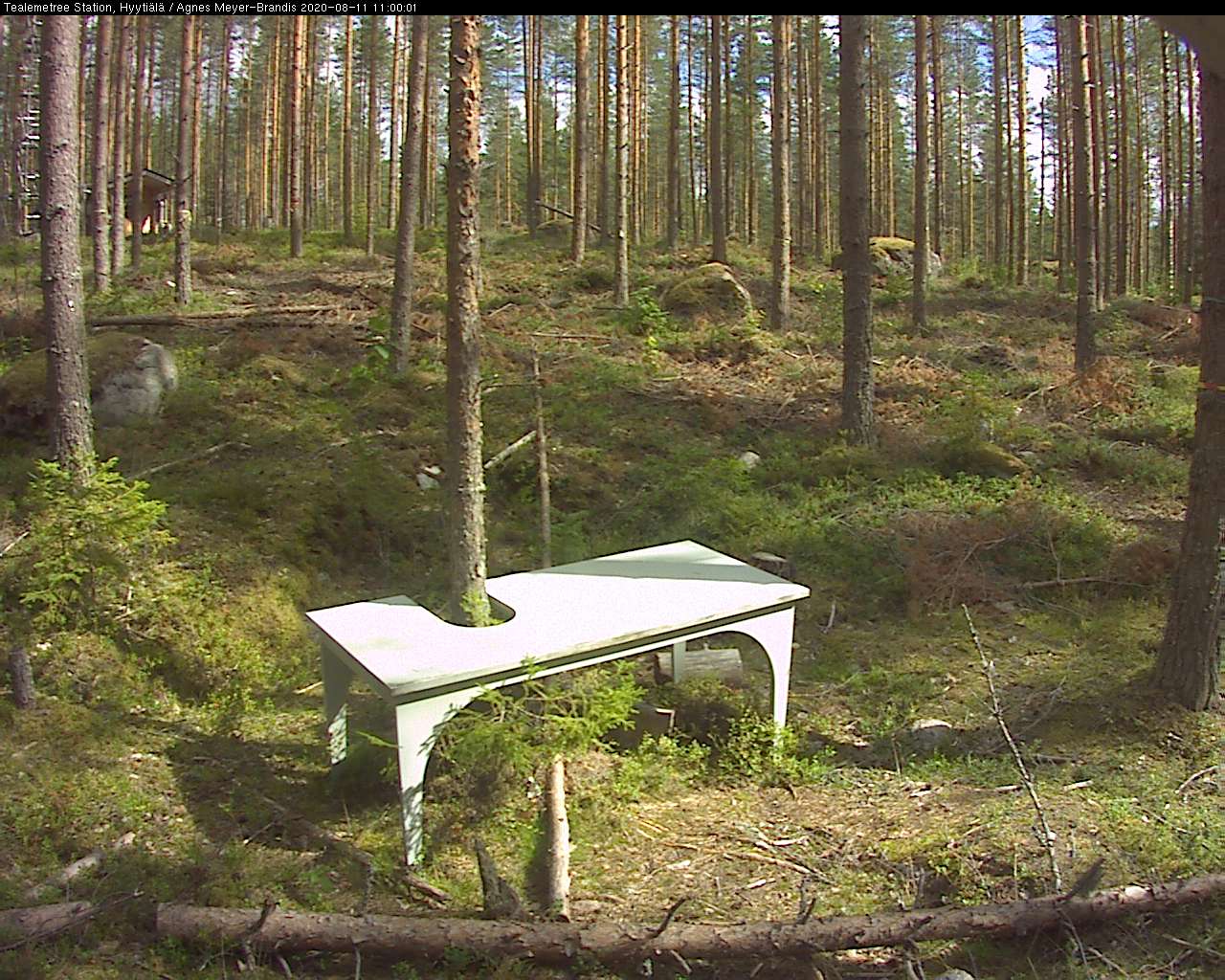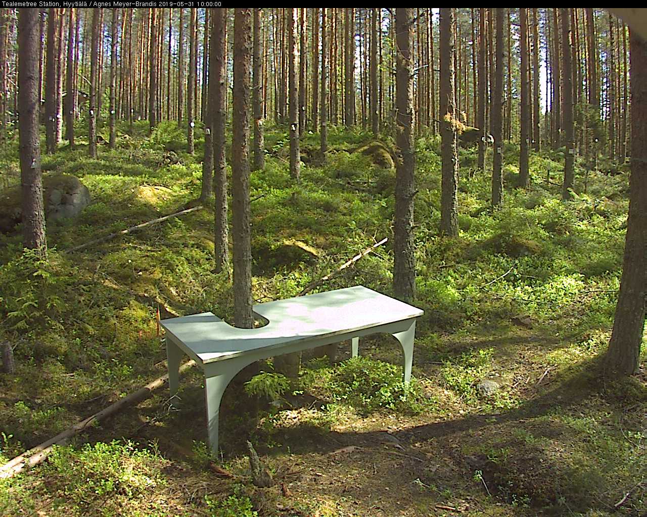 Agnes Meyer-Brandiksen työ Hyytiälässä alkoi tutustumalla aseman muihin tutkijoihin. Pystyäkseen tapaamaan ihmisiä metsässä, hän rakensi pöydän, josta muodostui kohtauspiste ja paikka teehetkille Agneksen ja puun kanssa.