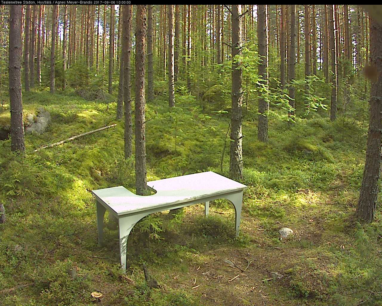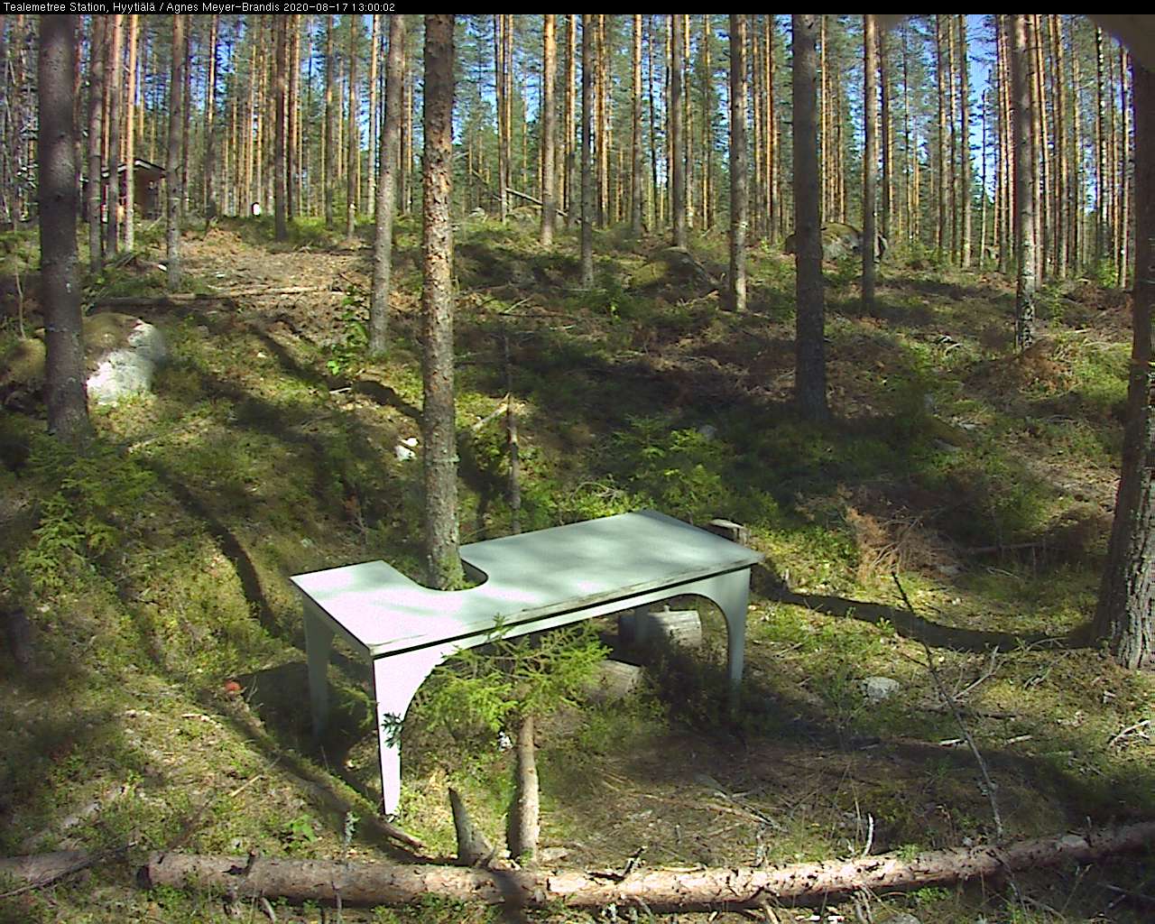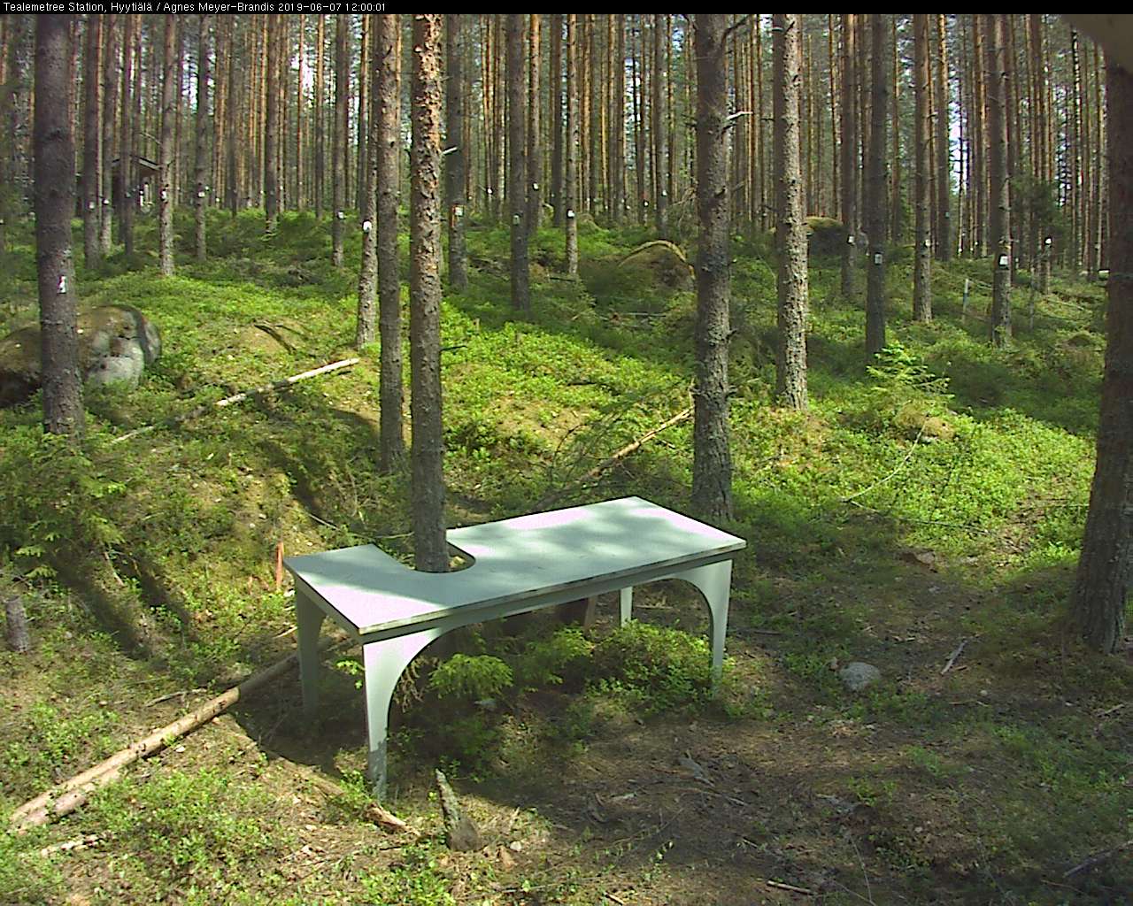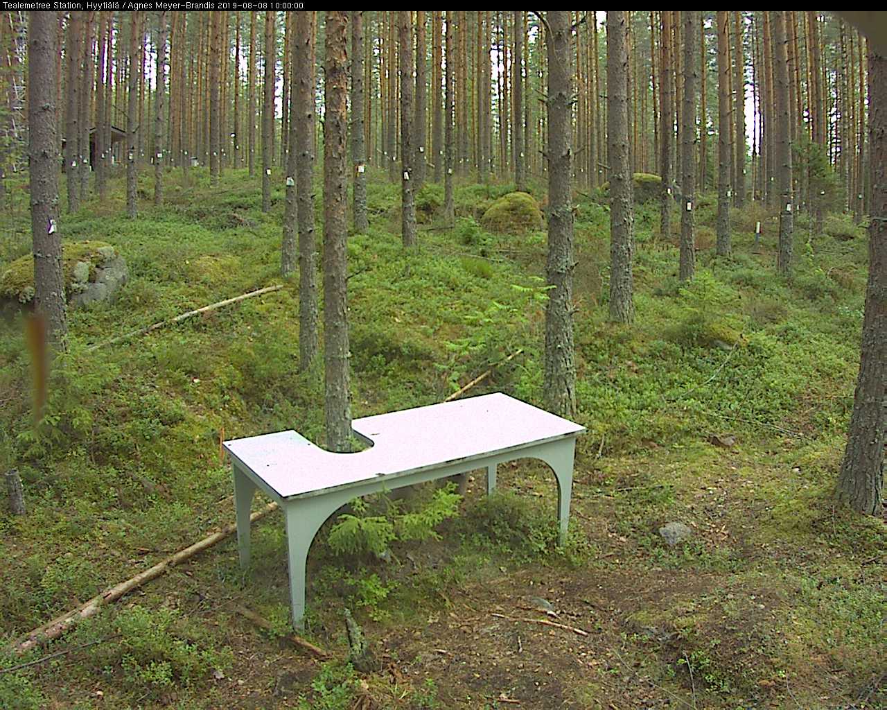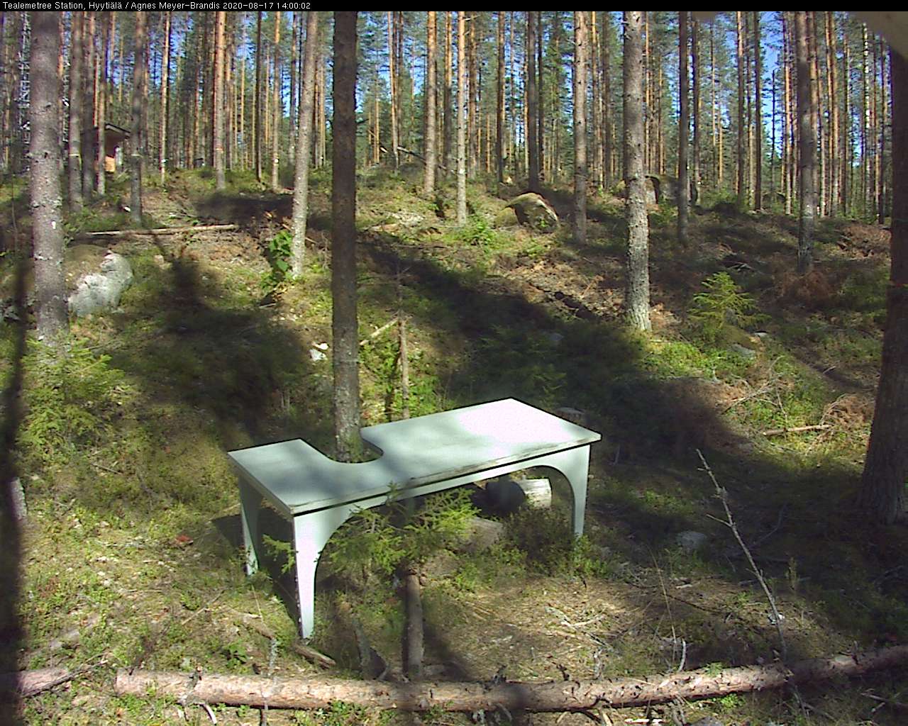 Agnes Meyer-Brandiksen työ Hyytiälässä alkoi tutustumalla aseman muihin tutkijoihin. Pystyäkseen tapaamaan ihmisiä metsässä, hän rakensi pöydän, josta muodostui kohtauspiste ja paikka teehetkille Agneksen ja puun kanssa.