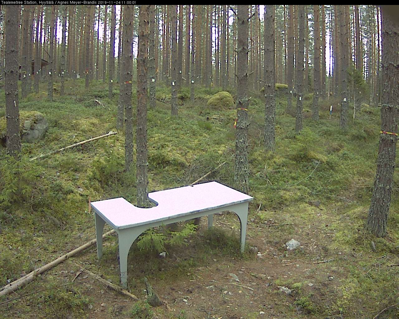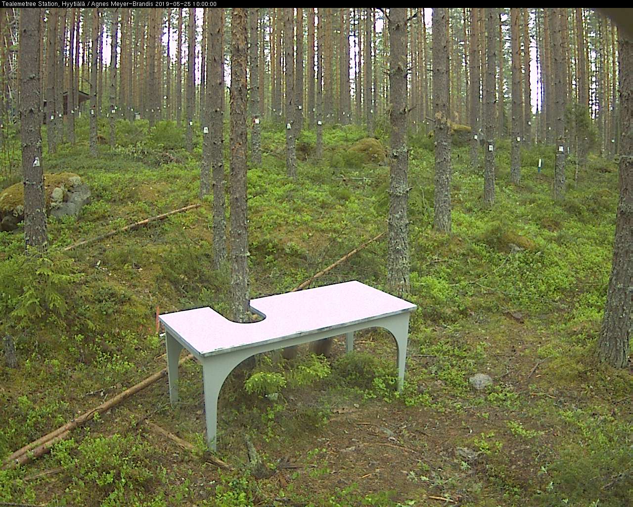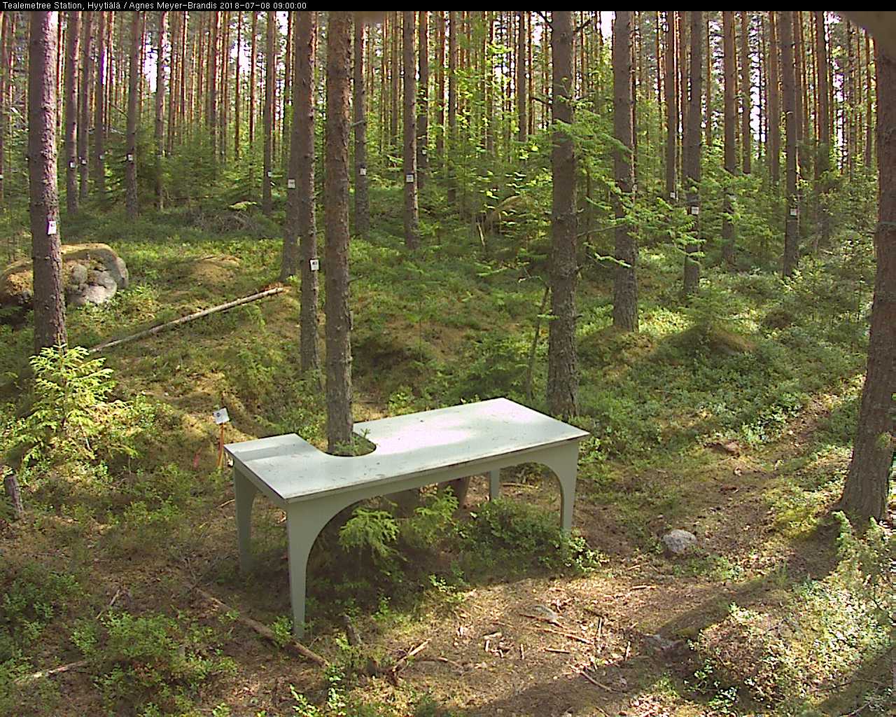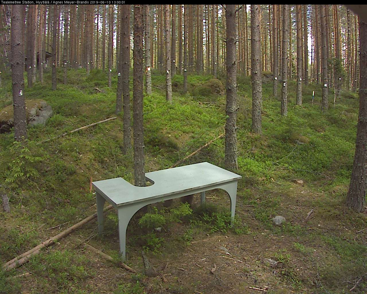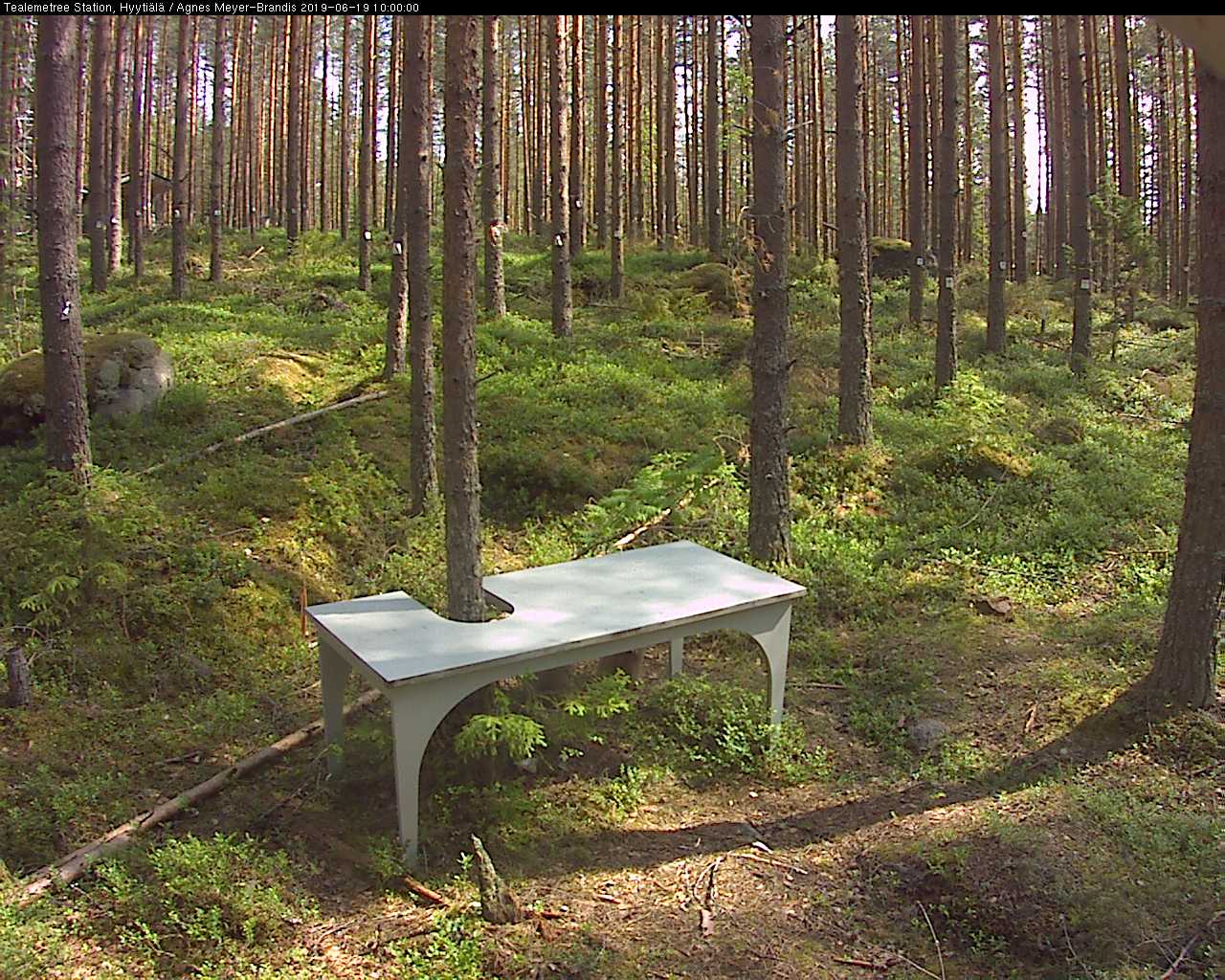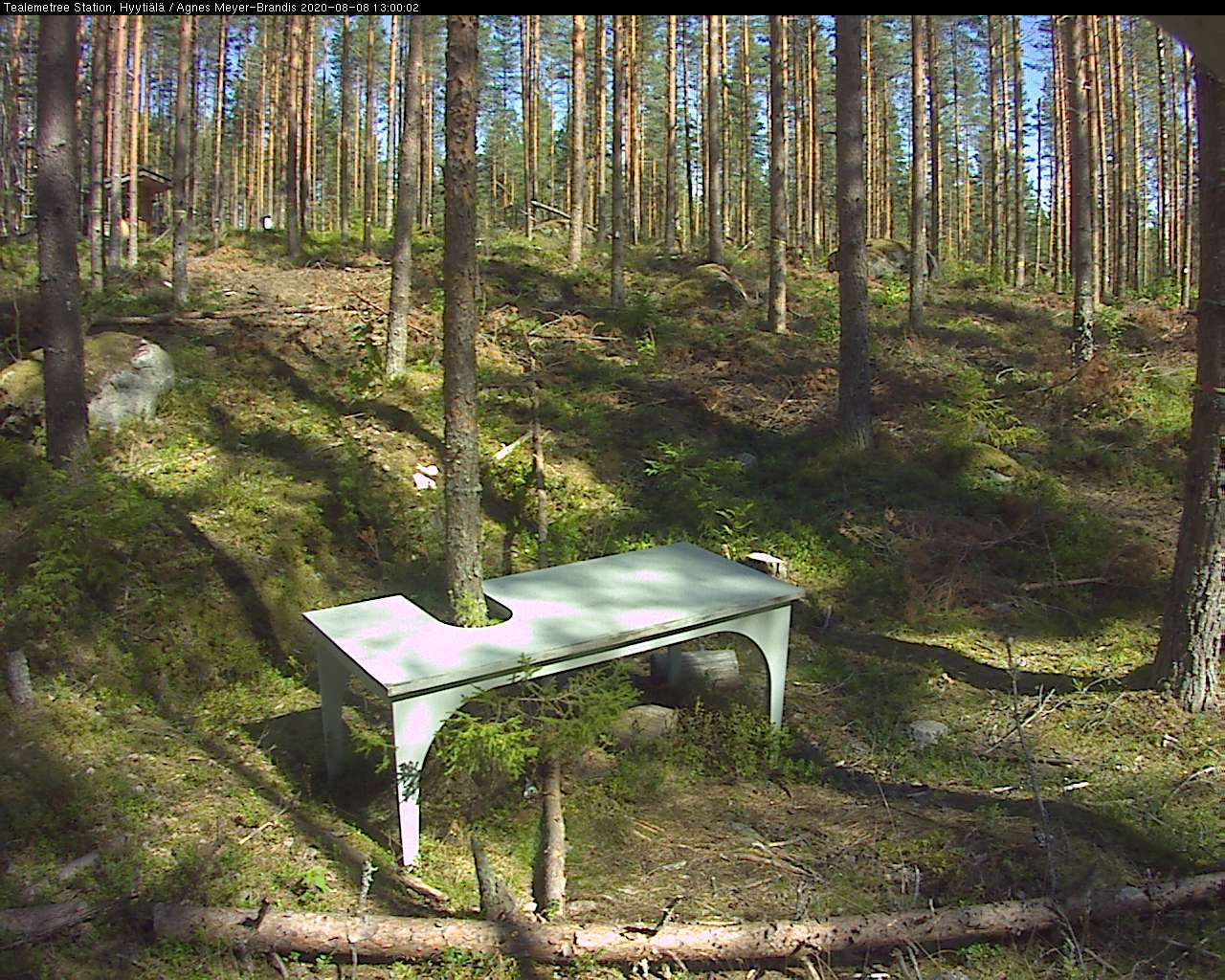 Agnes Meyer-Brandiksen työ Hyytiälässä alkoi tutustumalla aseman muihin tutkijoihin. Pystyäkseen tapaamaan ihmisiä metsässä, hän rakensi pöydän, josta muodostui kohtauspiste ja paikka teehetkille Agneksen ja puun kanssa.