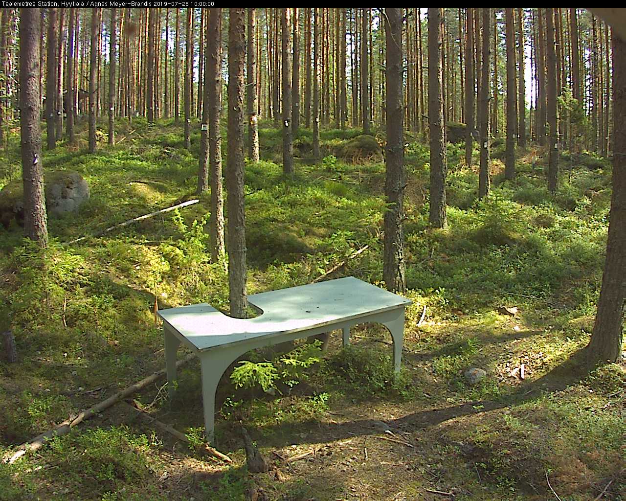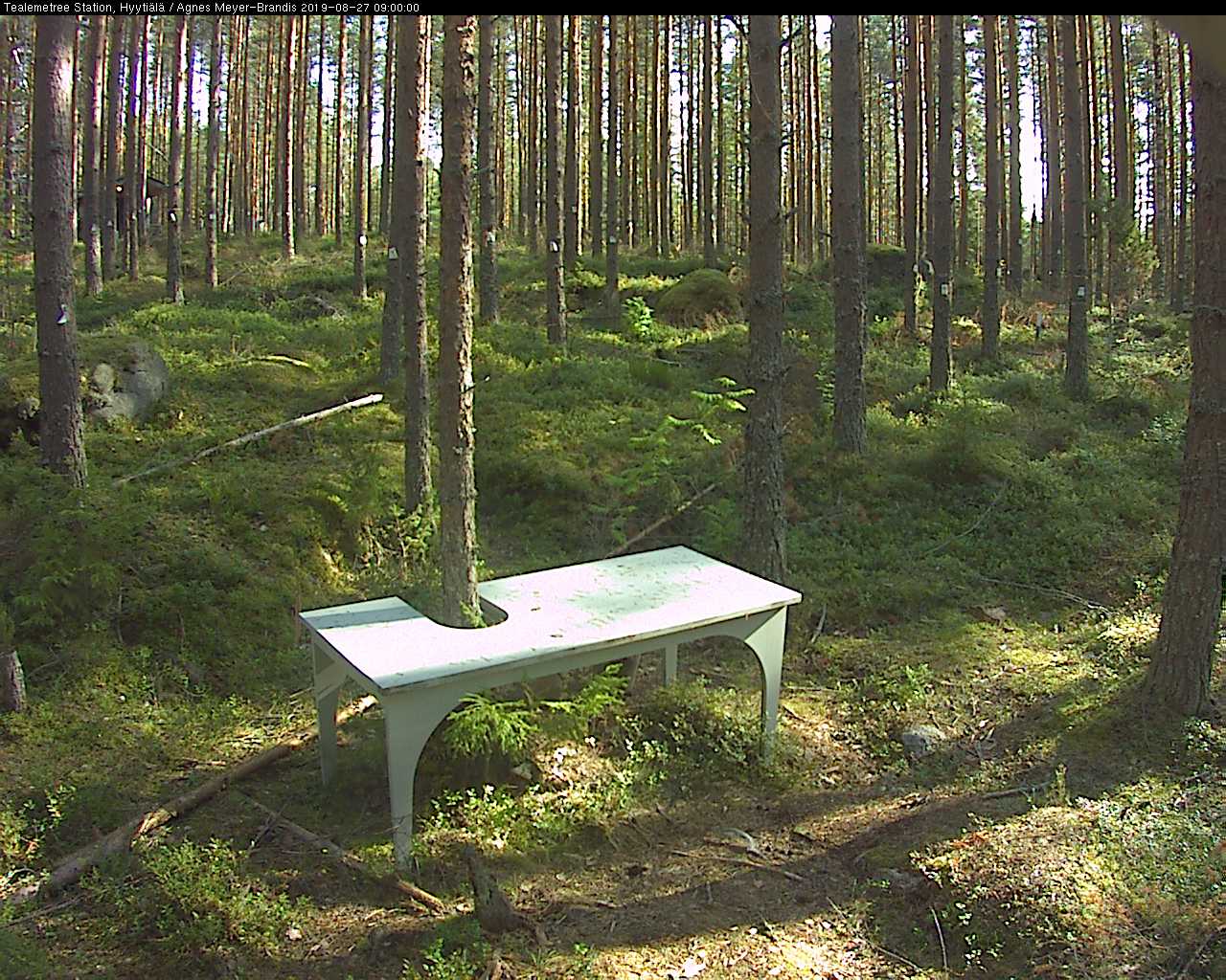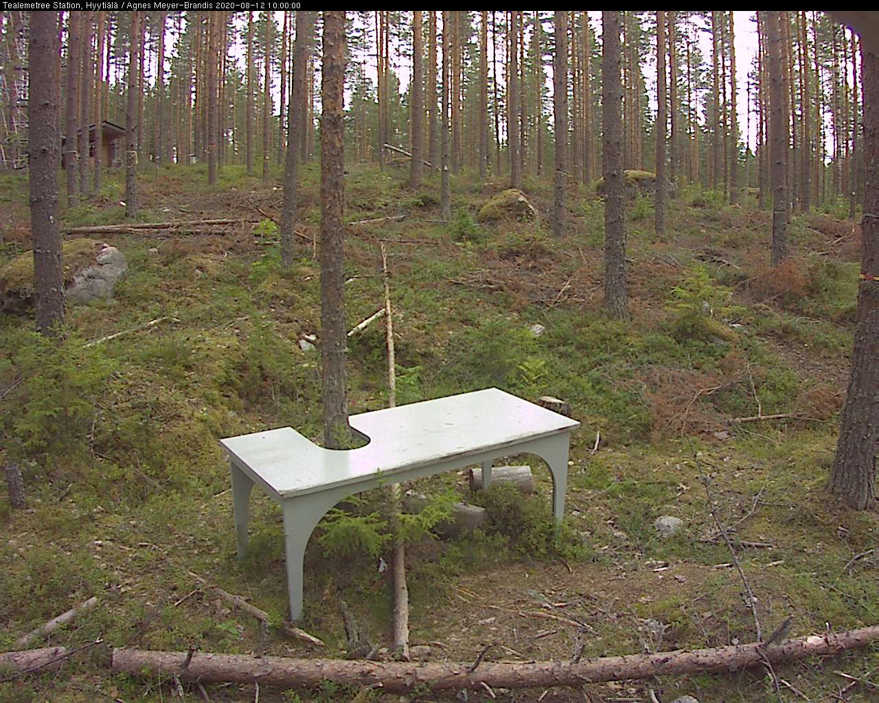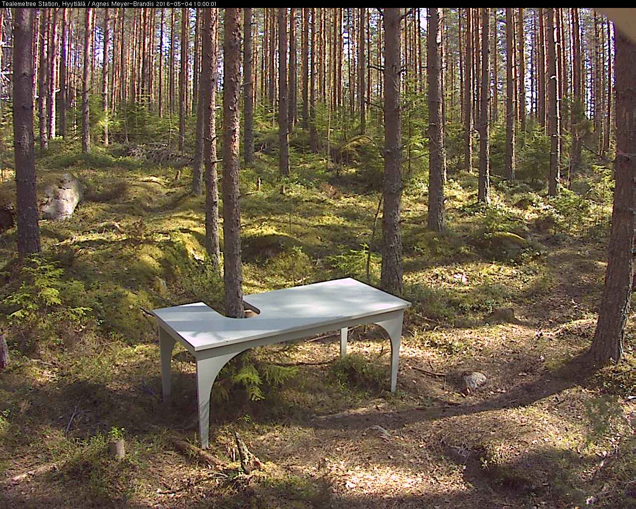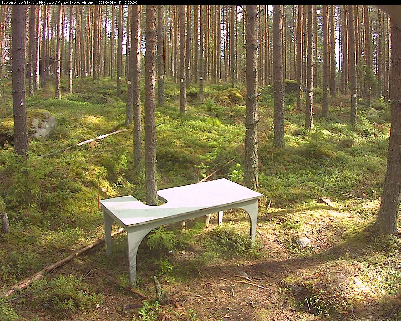 Agnes Meyer-Brandiksen työ Hyytiälässä alkoi tutustumalla aseman muihin tutkijoihin. Pystyäkseen tapaamaan ihmisiä metsässä, hän rakensi pöydän, josta muodostui kohtauspiste ja paikka teehetkille Agneksen ja puun kanssa.