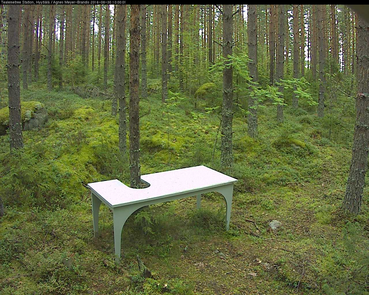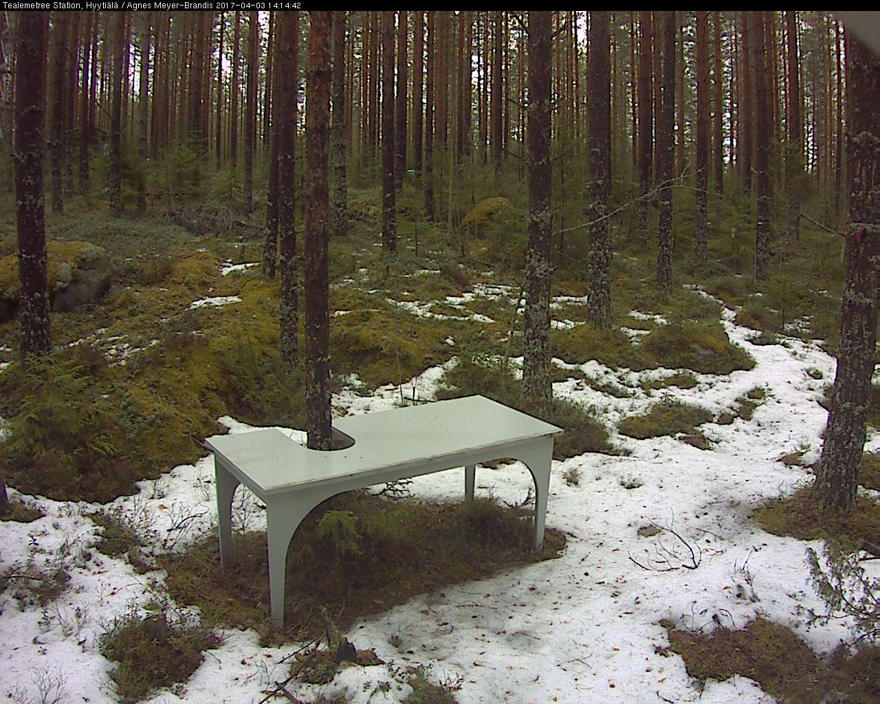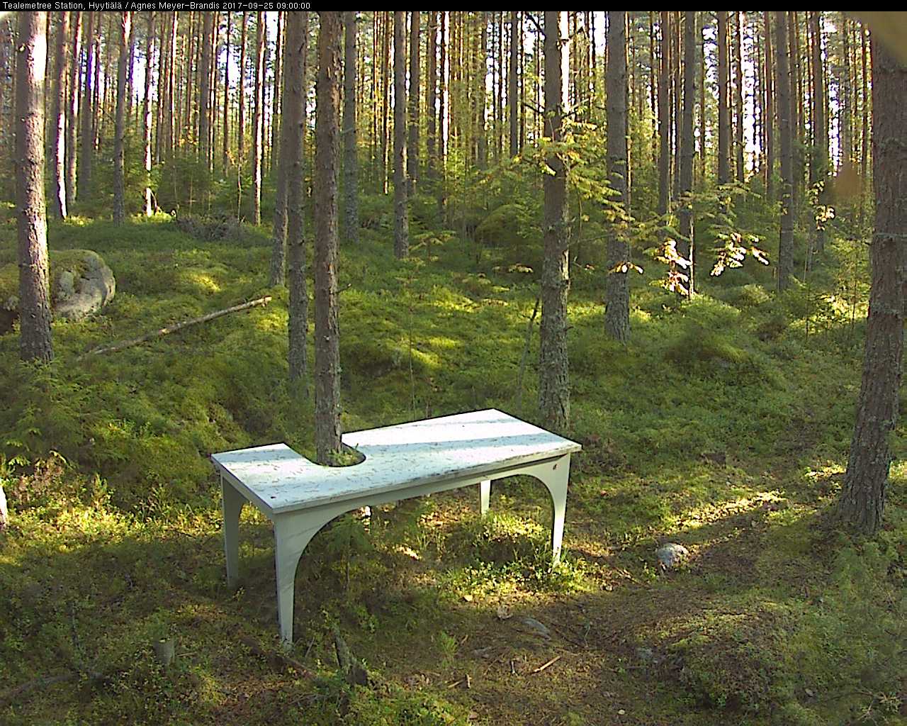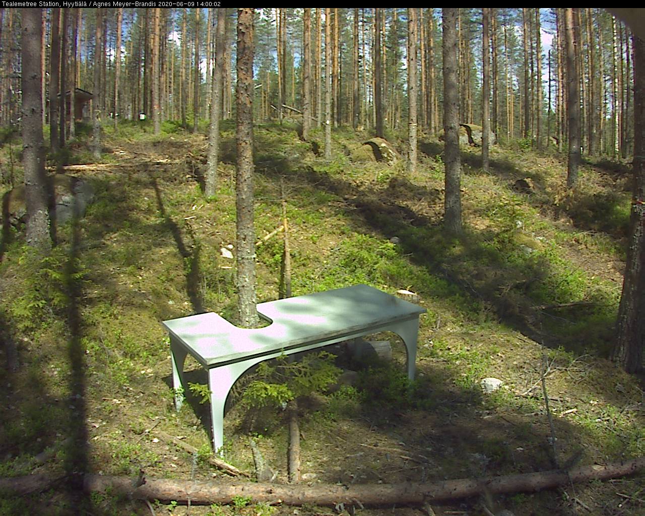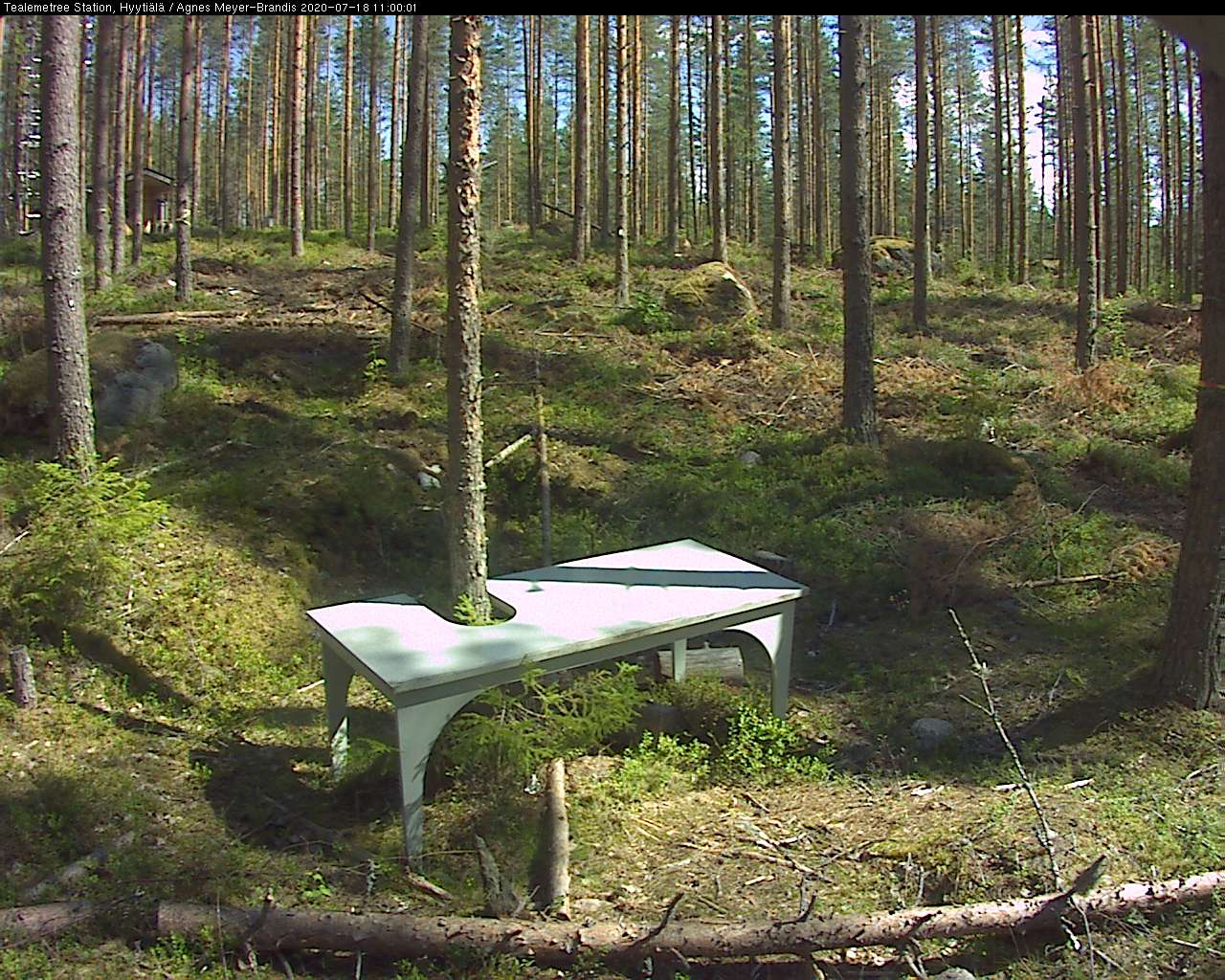 Agnes Meyer-Brandiksen työ Hyytiälässä alkoi tutustumalla aseman muihin tutkijoihin. Pystyäkseen tapaamaan ihmisiä metsässä, hän rakensi pöydän, josta muodostui kohtauspiste ja paikka teehetkille Agneksen ja puun kanssa.