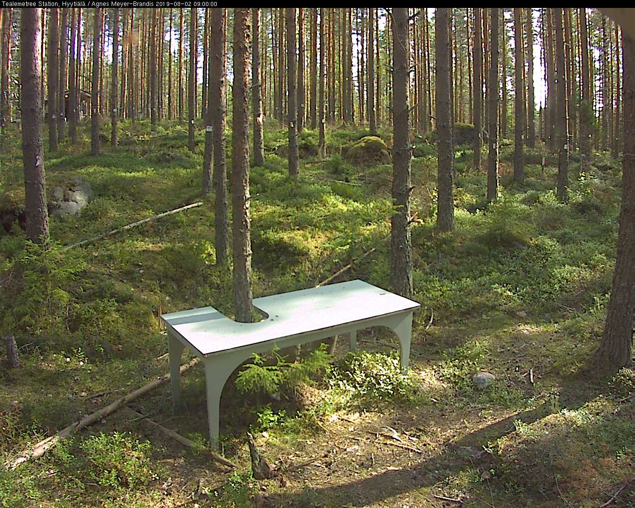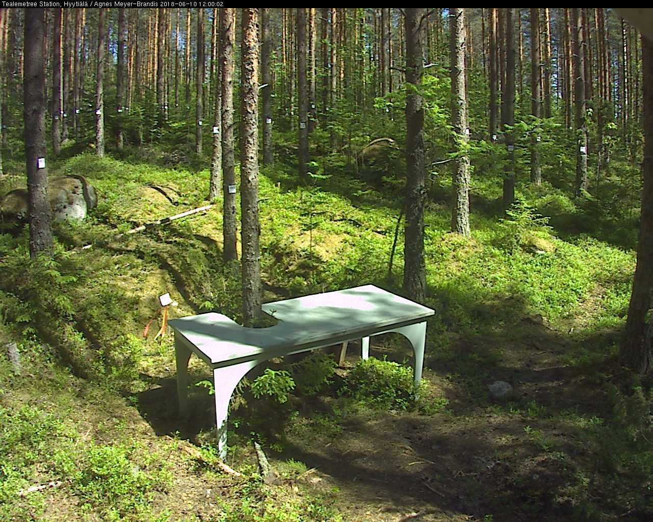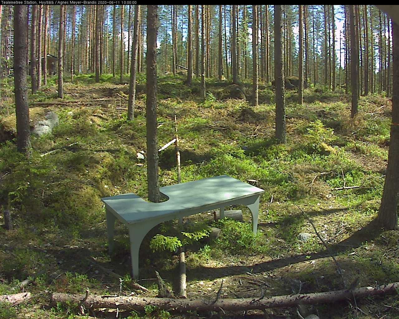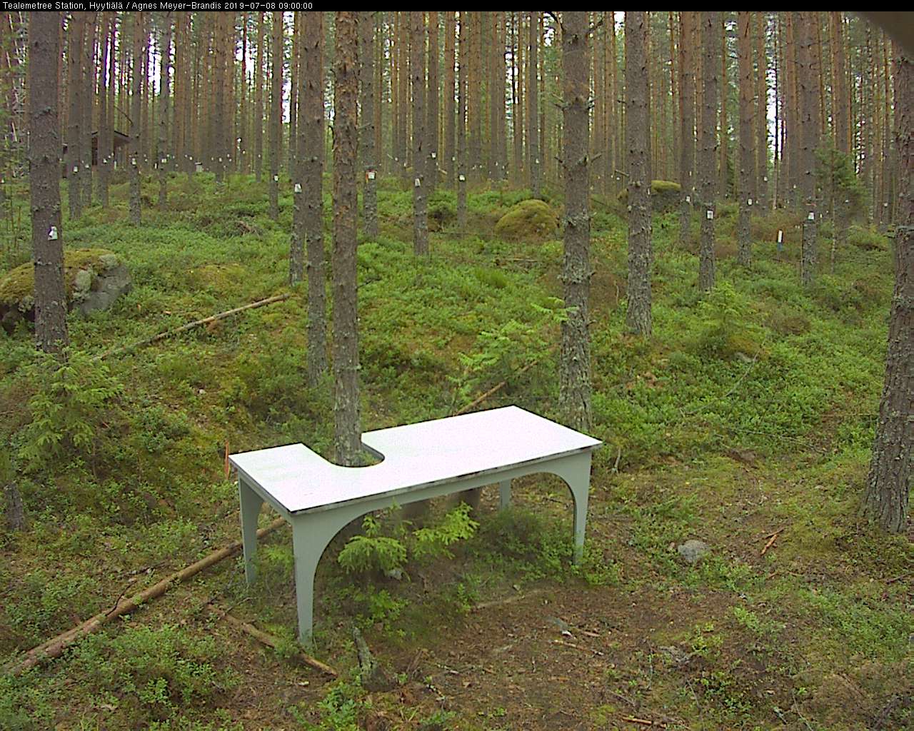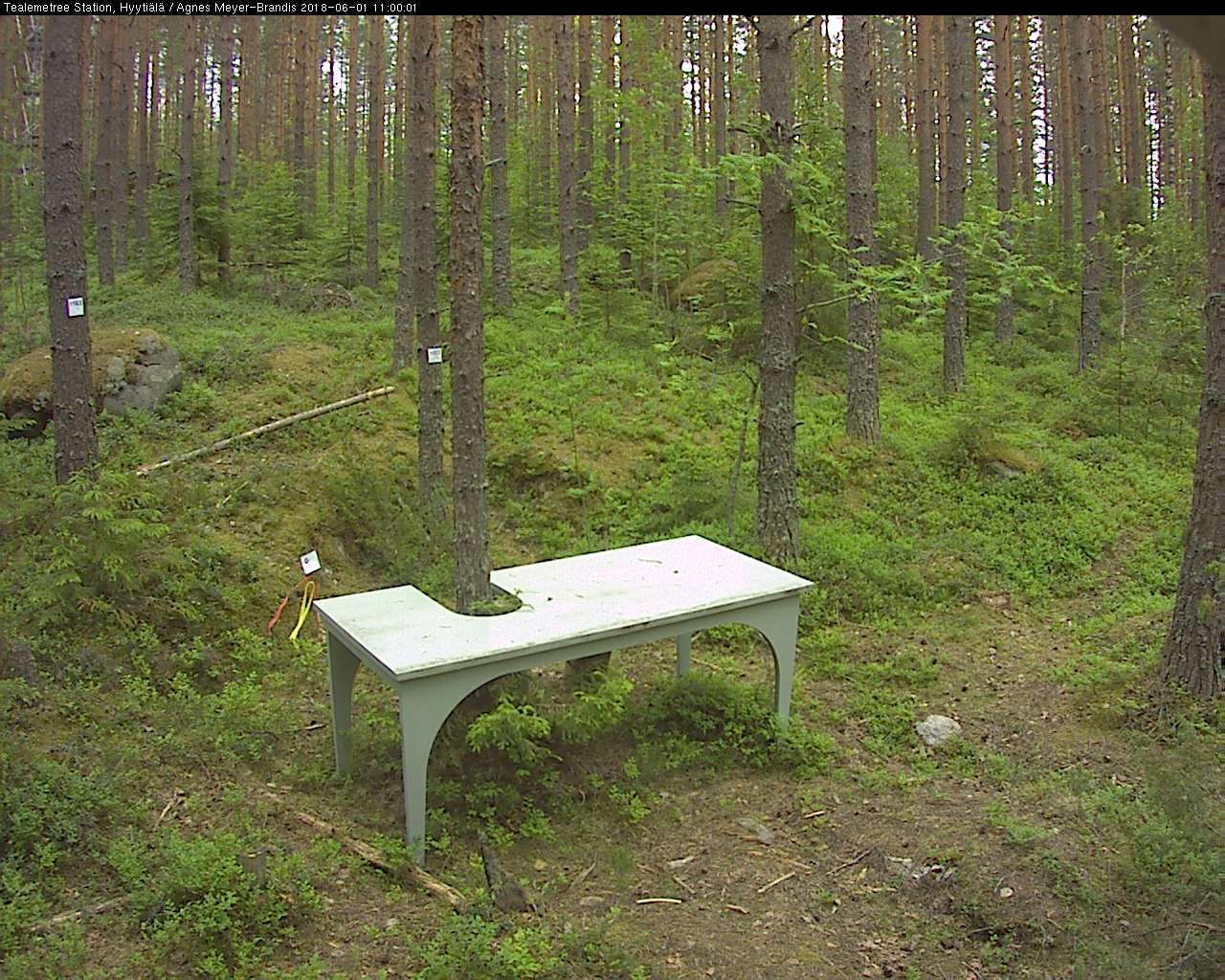 Agnes Meyer-Brandiksen työ Hyytiälässä alkoi tutustumalla aseman muihin tutkijoihin. Pystyäkseen tapaamaan ihmisiä metsässä, hän rakensi pöydän, josta muodostui kohtauspiste ja paikka teehetkille Agneksen ja puun kanssa.