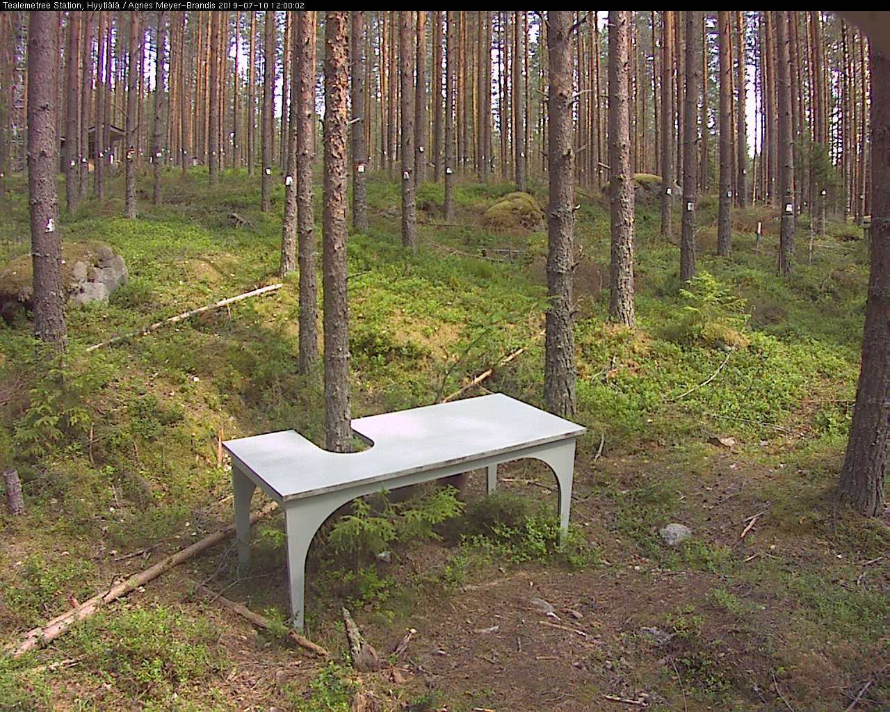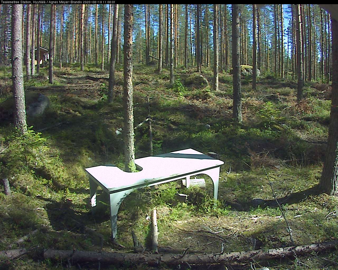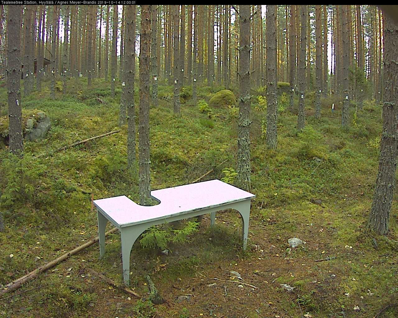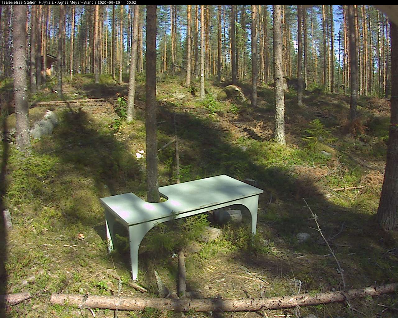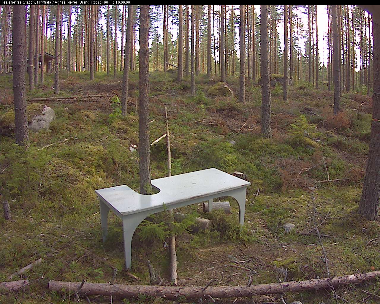 Agnes Meyer-Brandiksen työ Hyytiälässä alkoi tutustumalla aseman muihin tutkijoihin. Pystyäkseen tapaamaan ihmisiä metsässä, hän rakensi pöydän, josta muodostui kohtauspiste ja paikka teehetkille Agneksen ja puun kanssa.