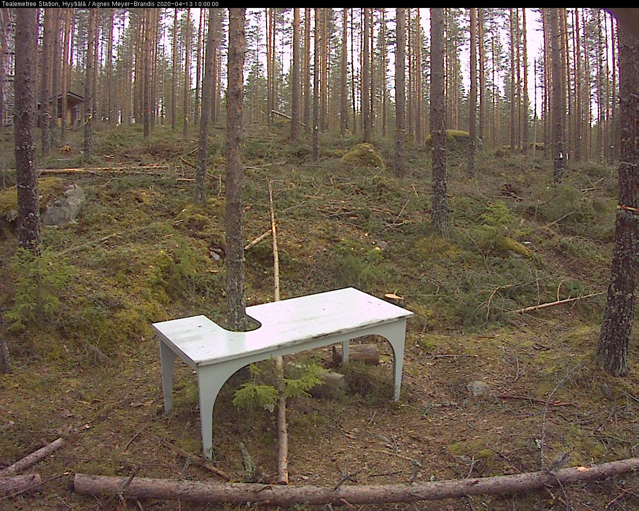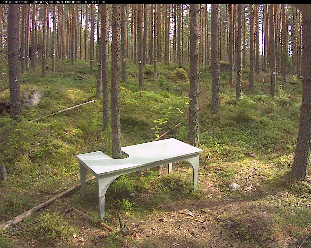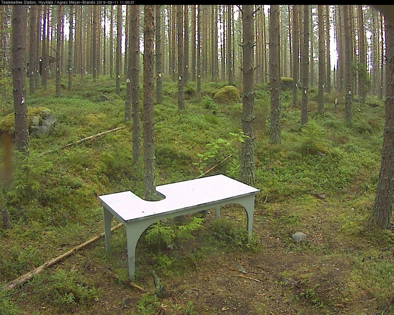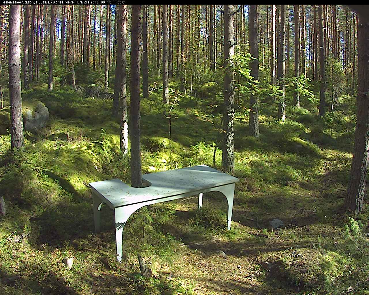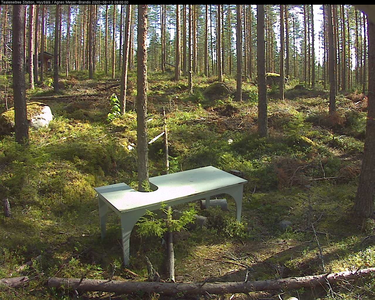 Agnes Meyer-Brandiksen työ Hyytiälässä alkoi tutustumalla aseman muihin tutkijoihin. Pystyäkseen tapaamaan ihmisiä metsässä, hän rakensi pöydän, josta muodostui kohtauspiste ja paikka teehetkille Agneksen ja puun kanssa.