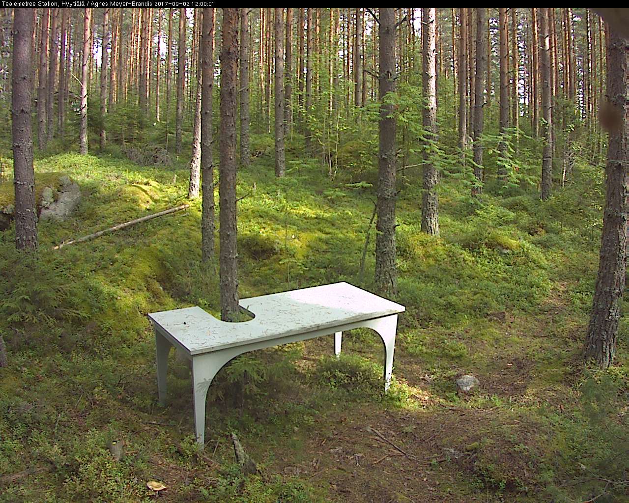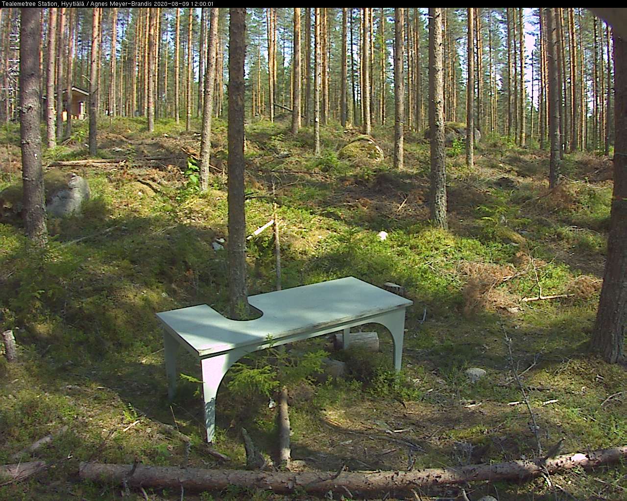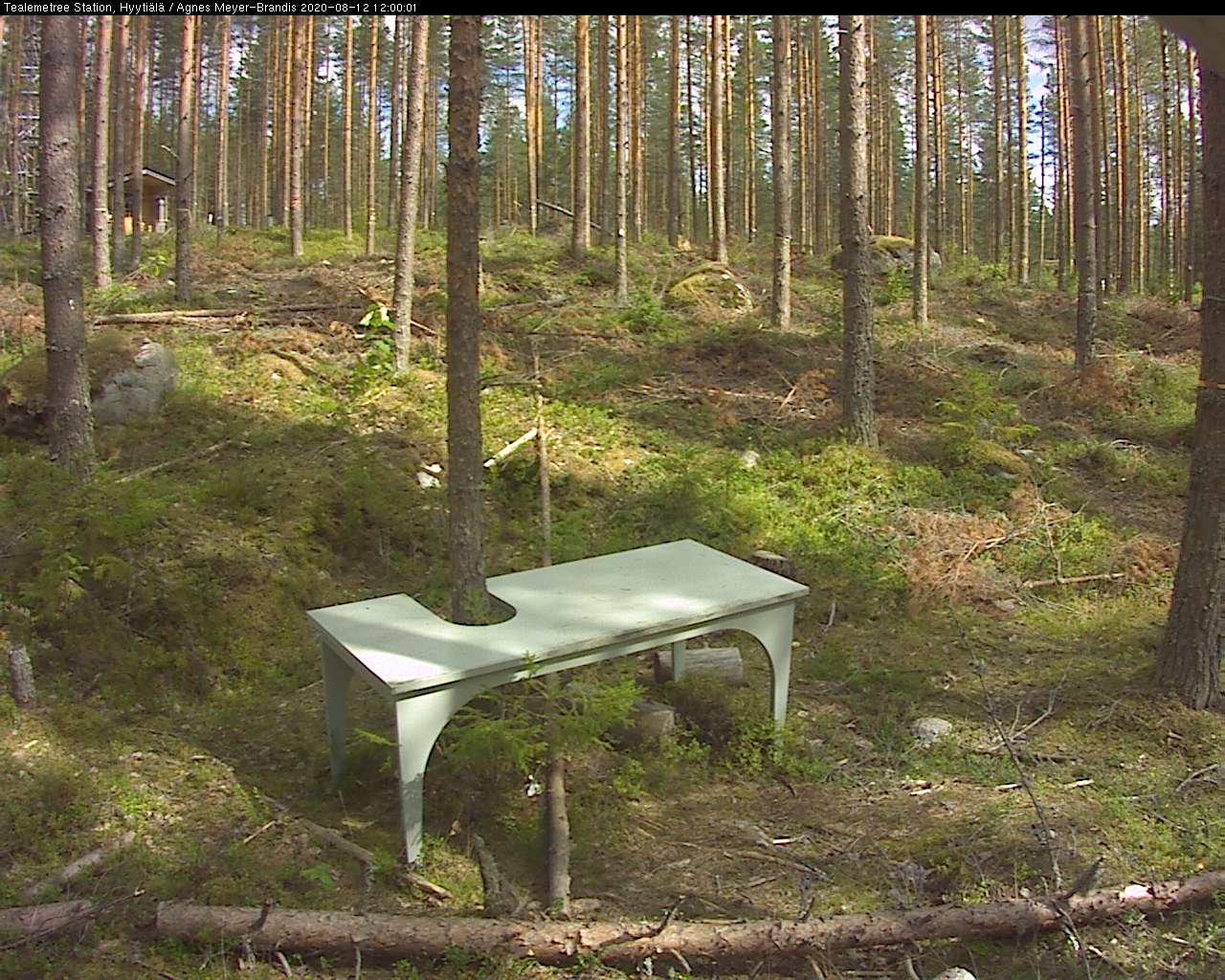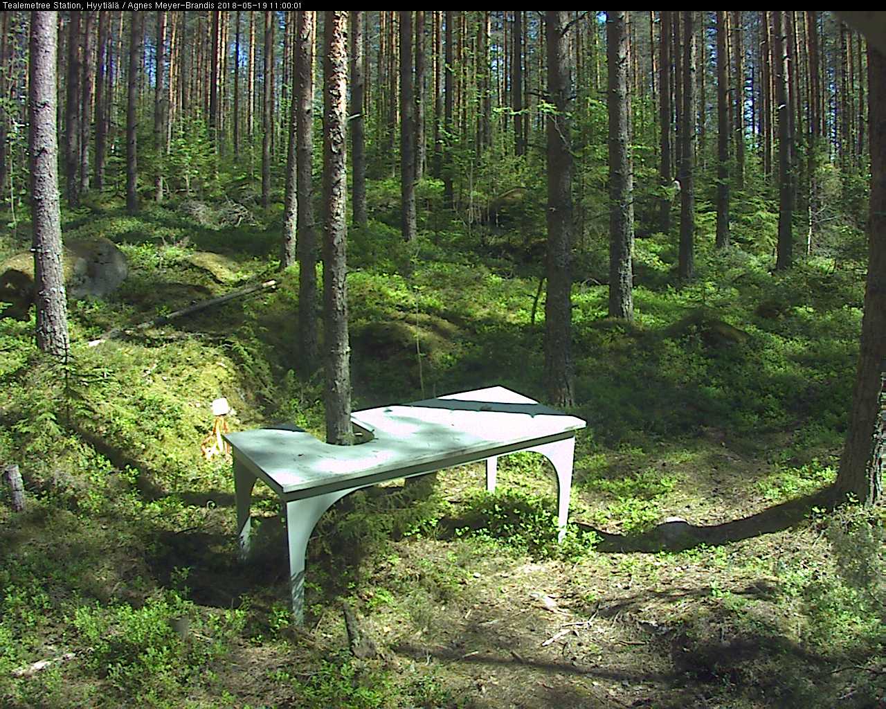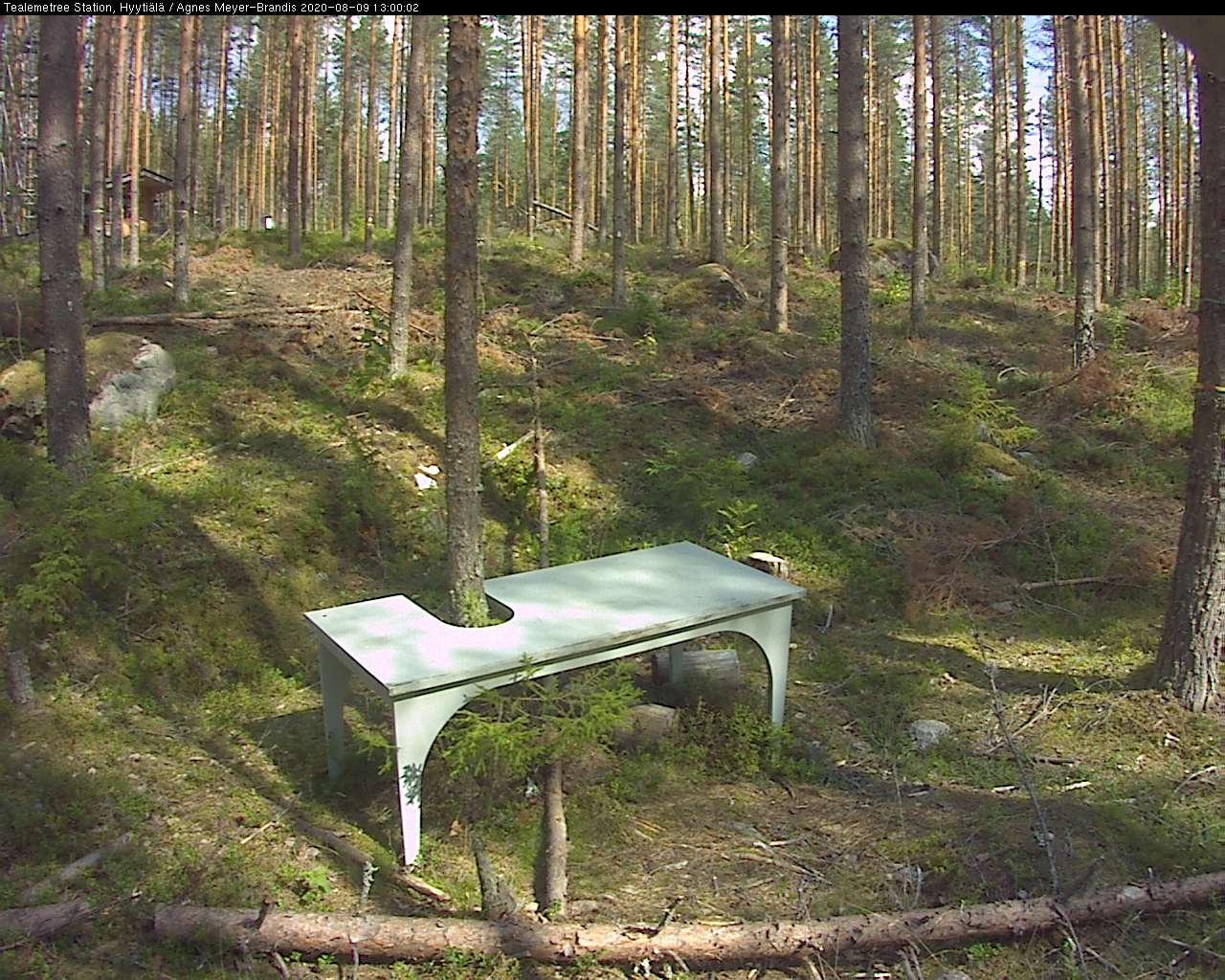 Agnes Meyer-Brandiksen työ Hyytiälässä alkoi tutustumalla aseman muihin tutkijoihin. Pystyäkseen tapaamaan ihmisiä metsässä, hän rakensi pöydän, josta muodostui kohtauspiste ja paikka teehetkille Agneksen ja puun kanssa.