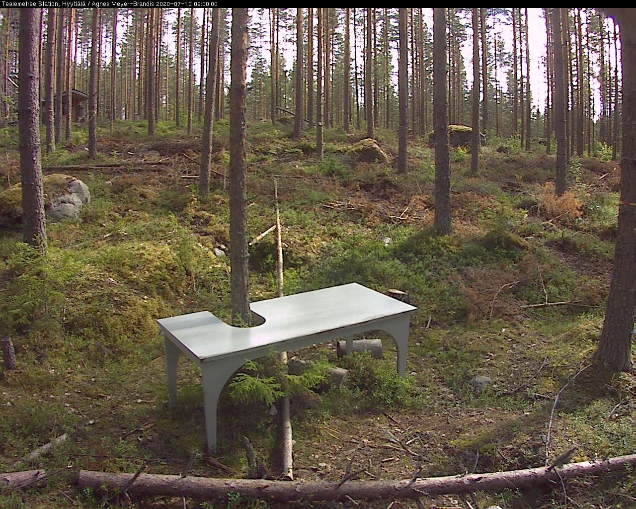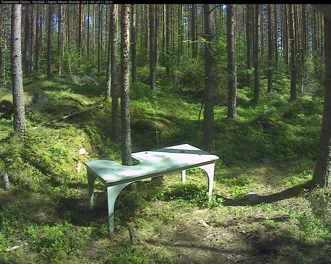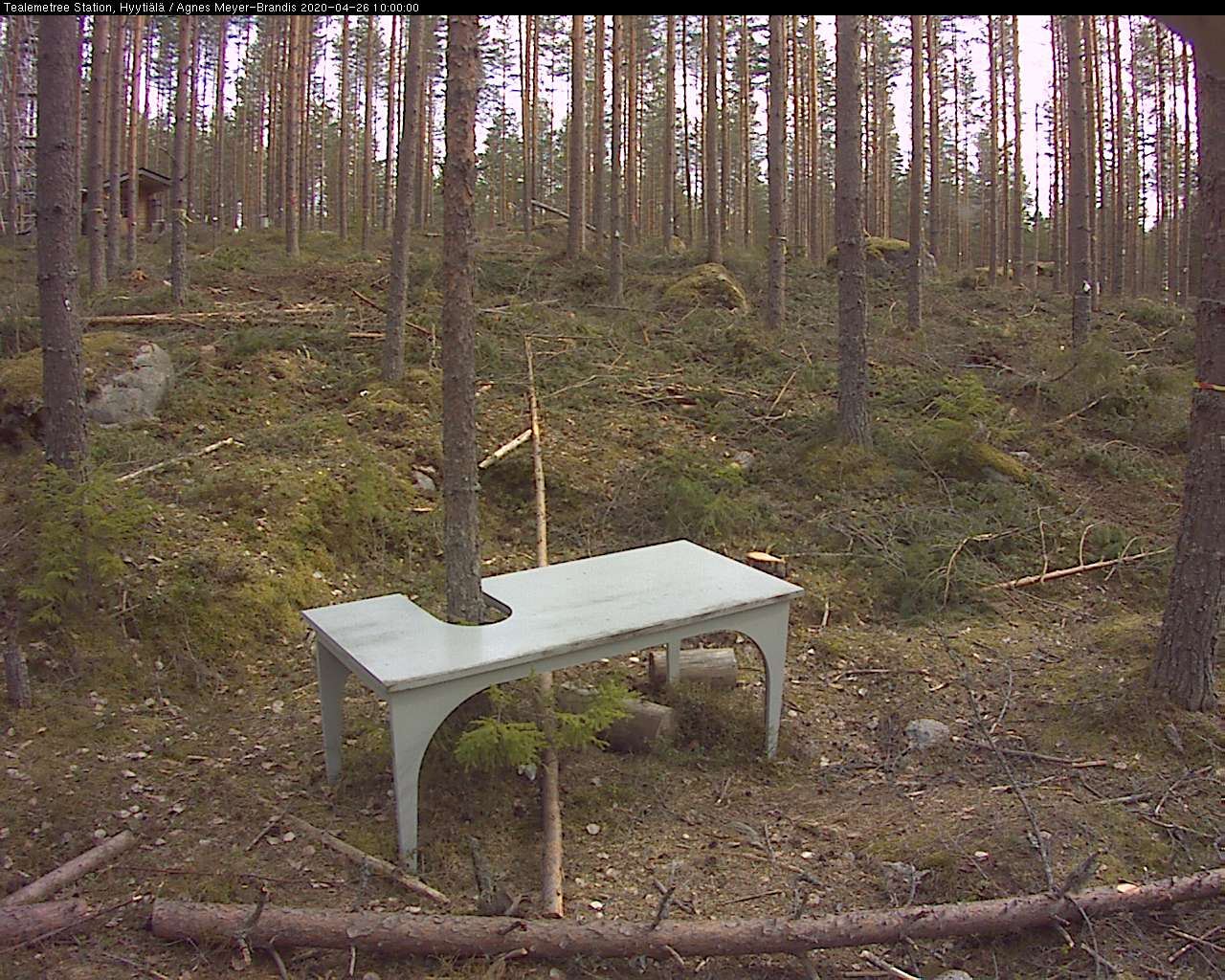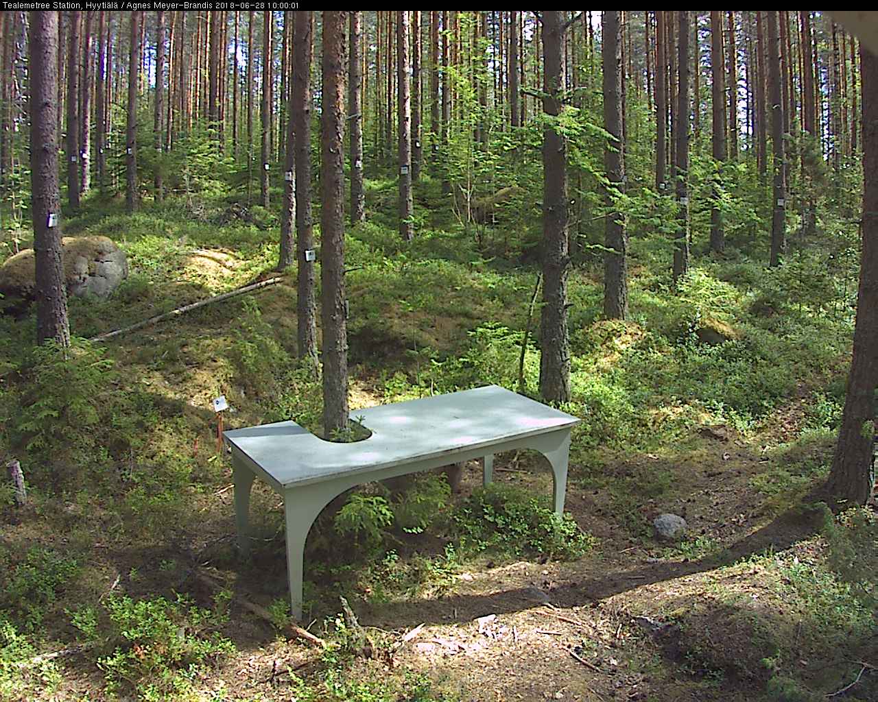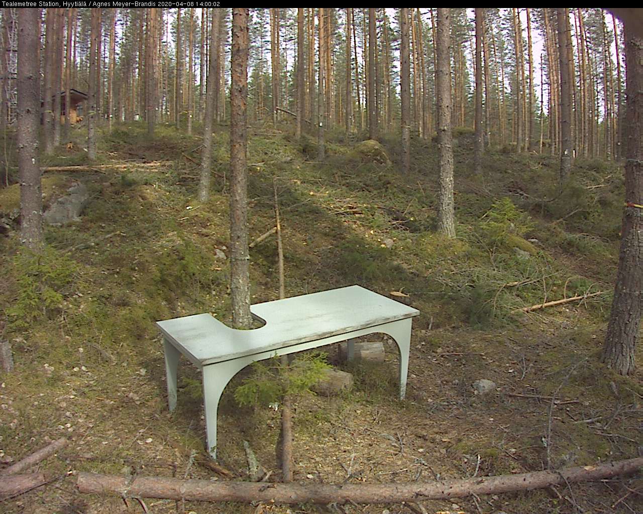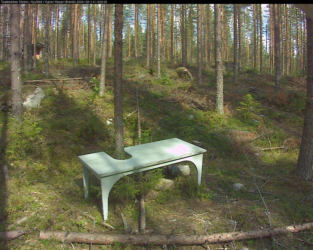 Agnes Meyer-Brandiksen työ Hyytiälässä alkoi tutustumalla aseman muihin tutkijoihin. Pystyäkseen tapaamaan ihmisiä metsässä, hän rakensi pöydän, josta muodostui kohtauspiste ja paikka teehetkille Agneksen ja puun kanssa.