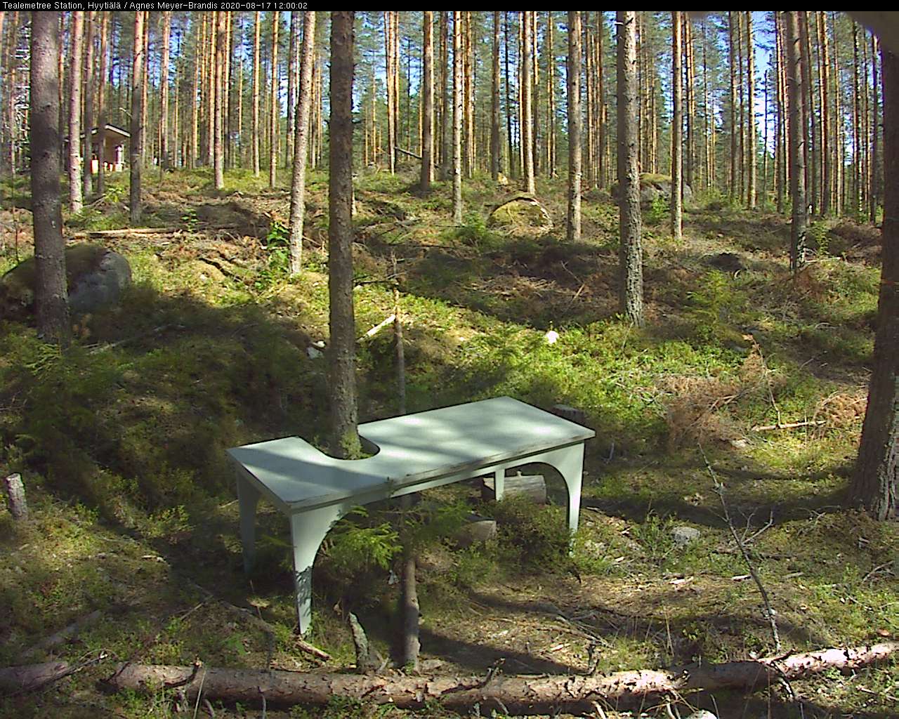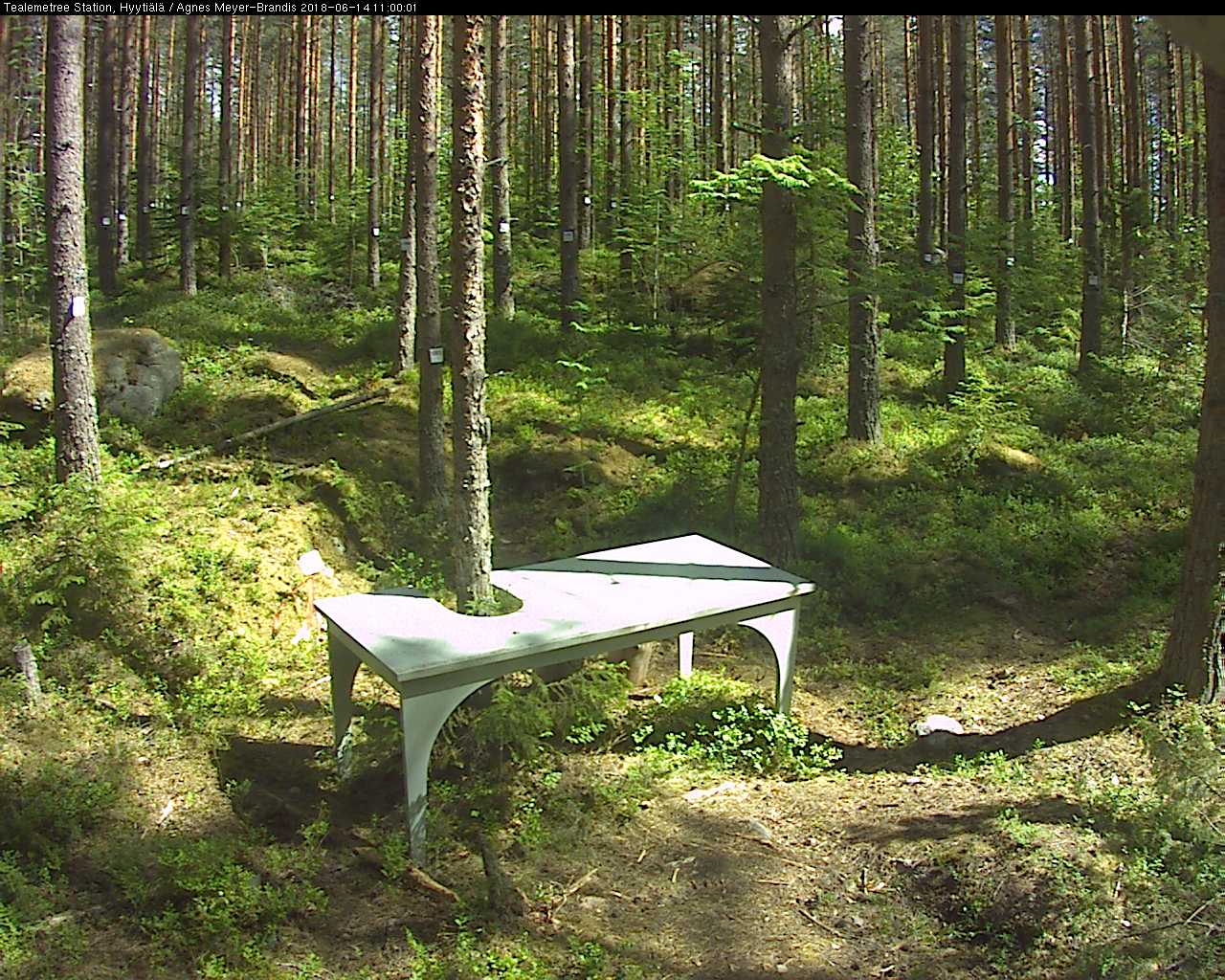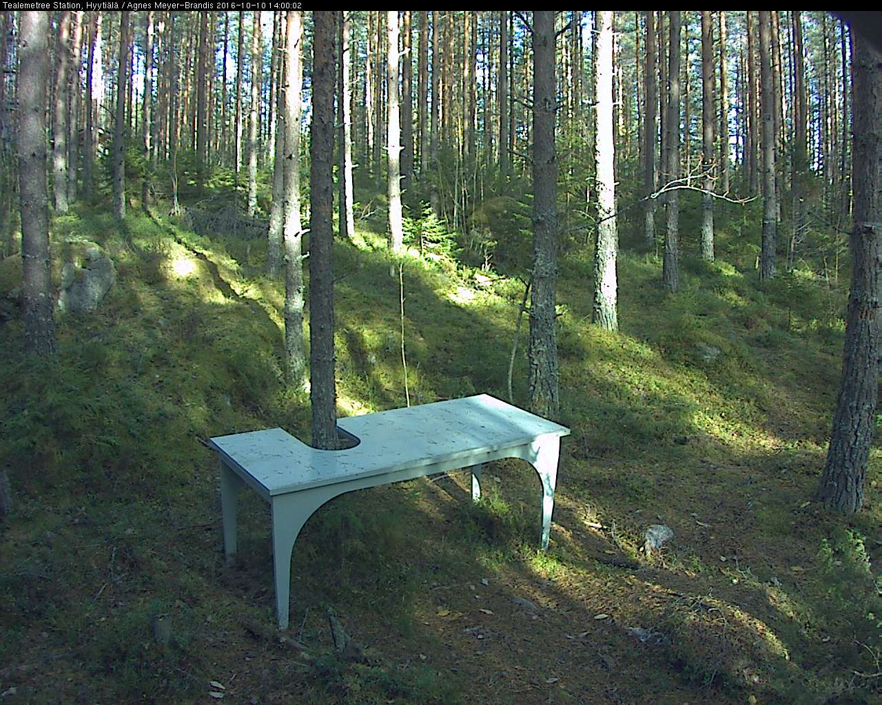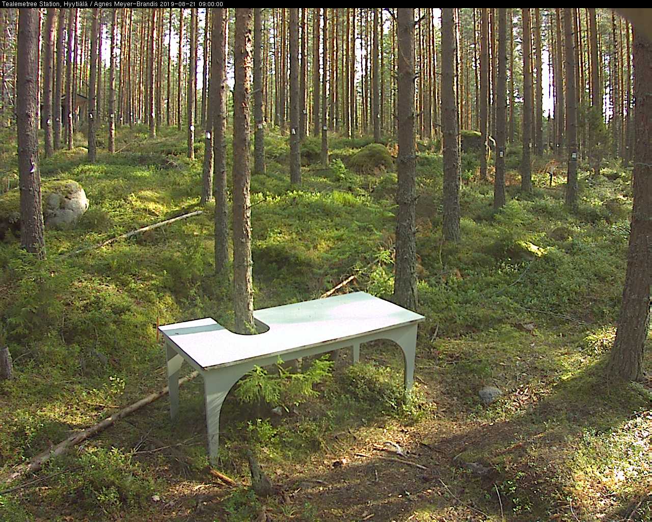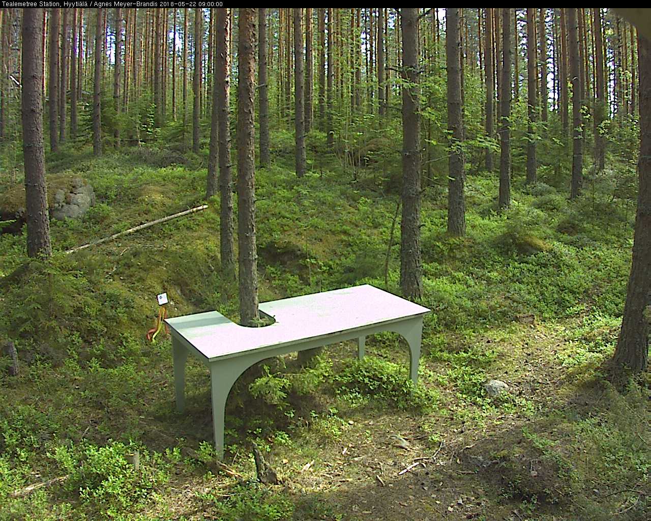 Agnes Meyer-Brandiksen työ Hyytiälässä alkoi tutustumalla aseman muihin tutkijoihin. Pystyäkseen tapaamaan ihmisiä metsässä, hän rakensi pöydän, josta muodostui kohtauspiste ja paikka teehetkille Agneksen ja puun kanssa.