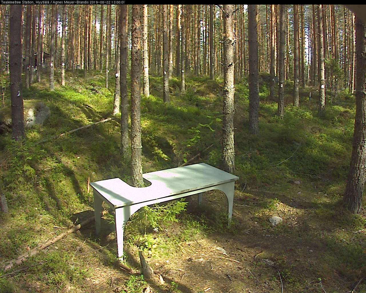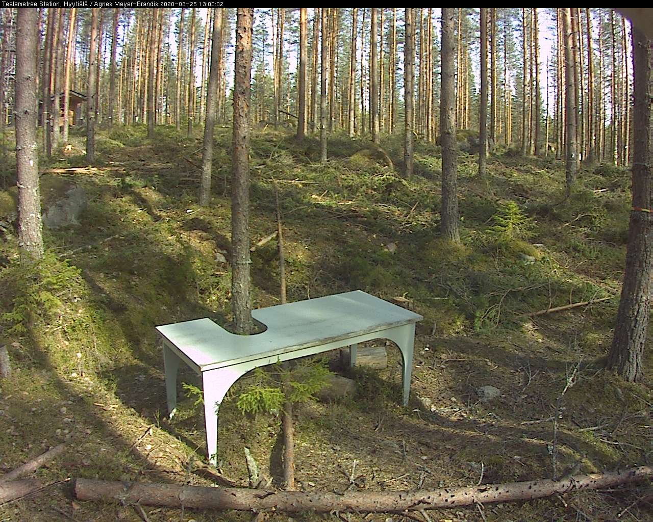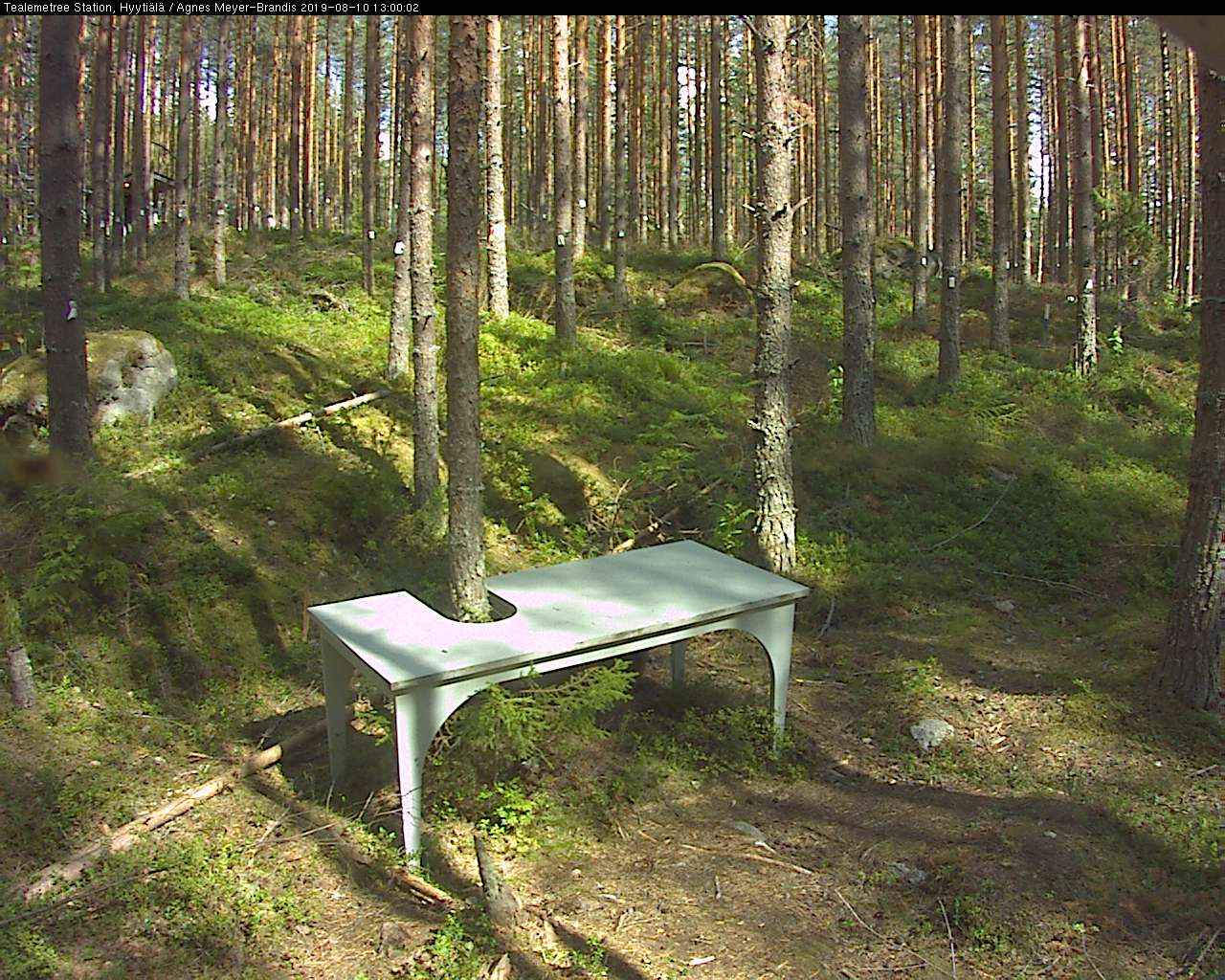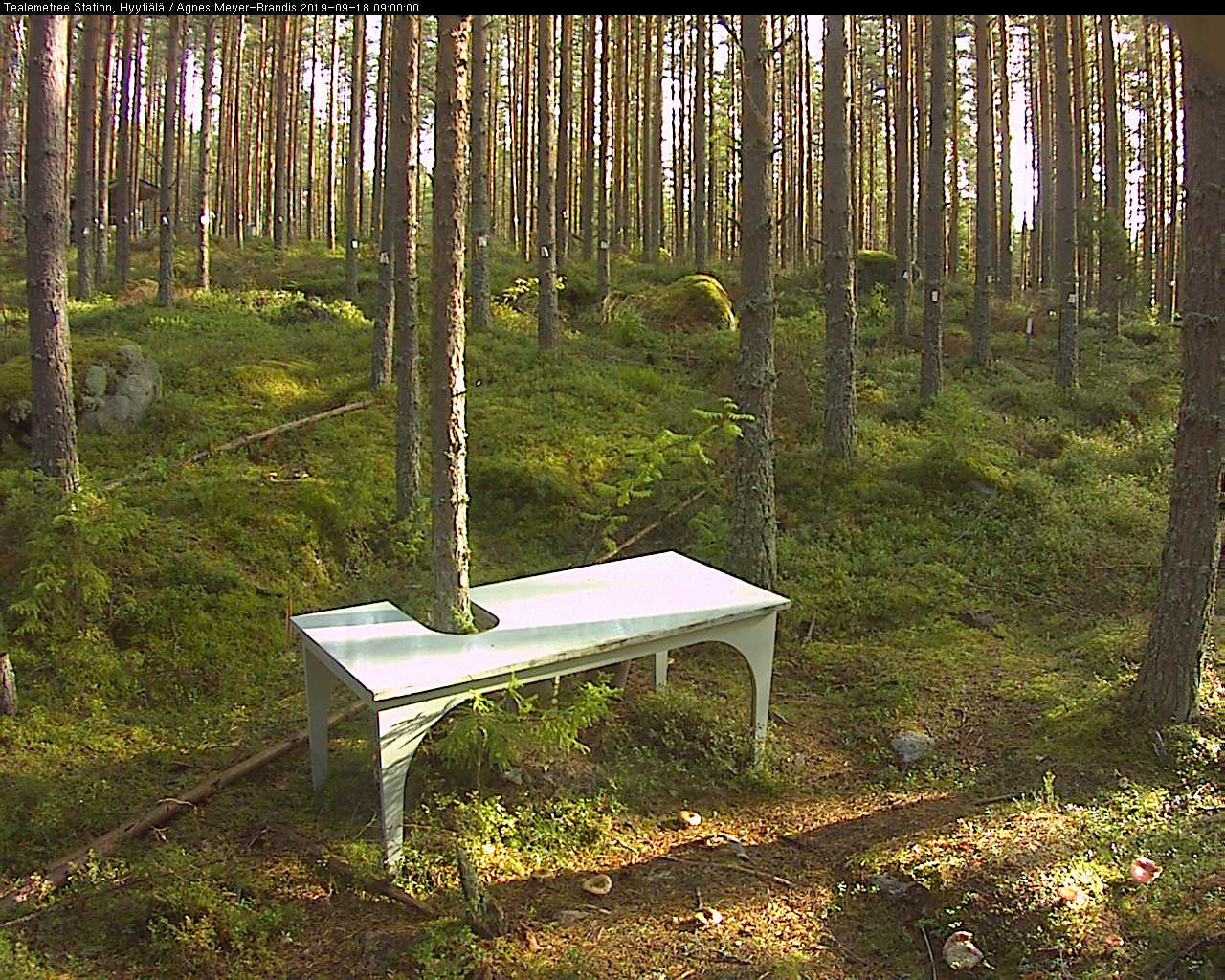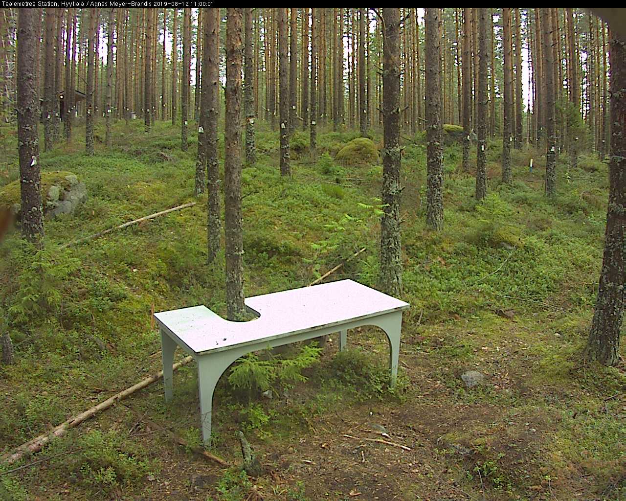 Agnes Meyer-Brandiksen työ Hyytiälässä alkoi tutustumalla aseman muihin tutkijoihin. Pystyäkseen tapaamaan ihmisiä metsässä, hän rakensi pöydän, josta muodostui kohtauspiste ja paikka teehetkille Agneksen ja puun kanssa.