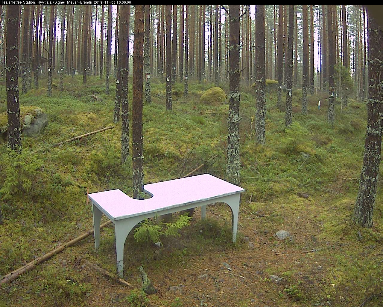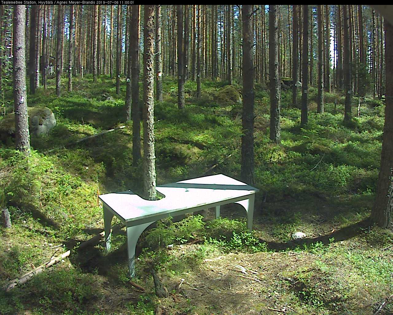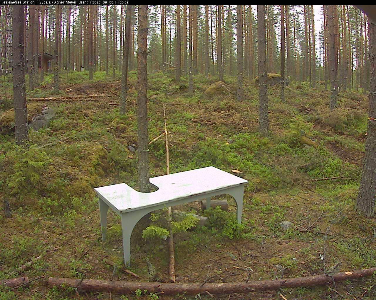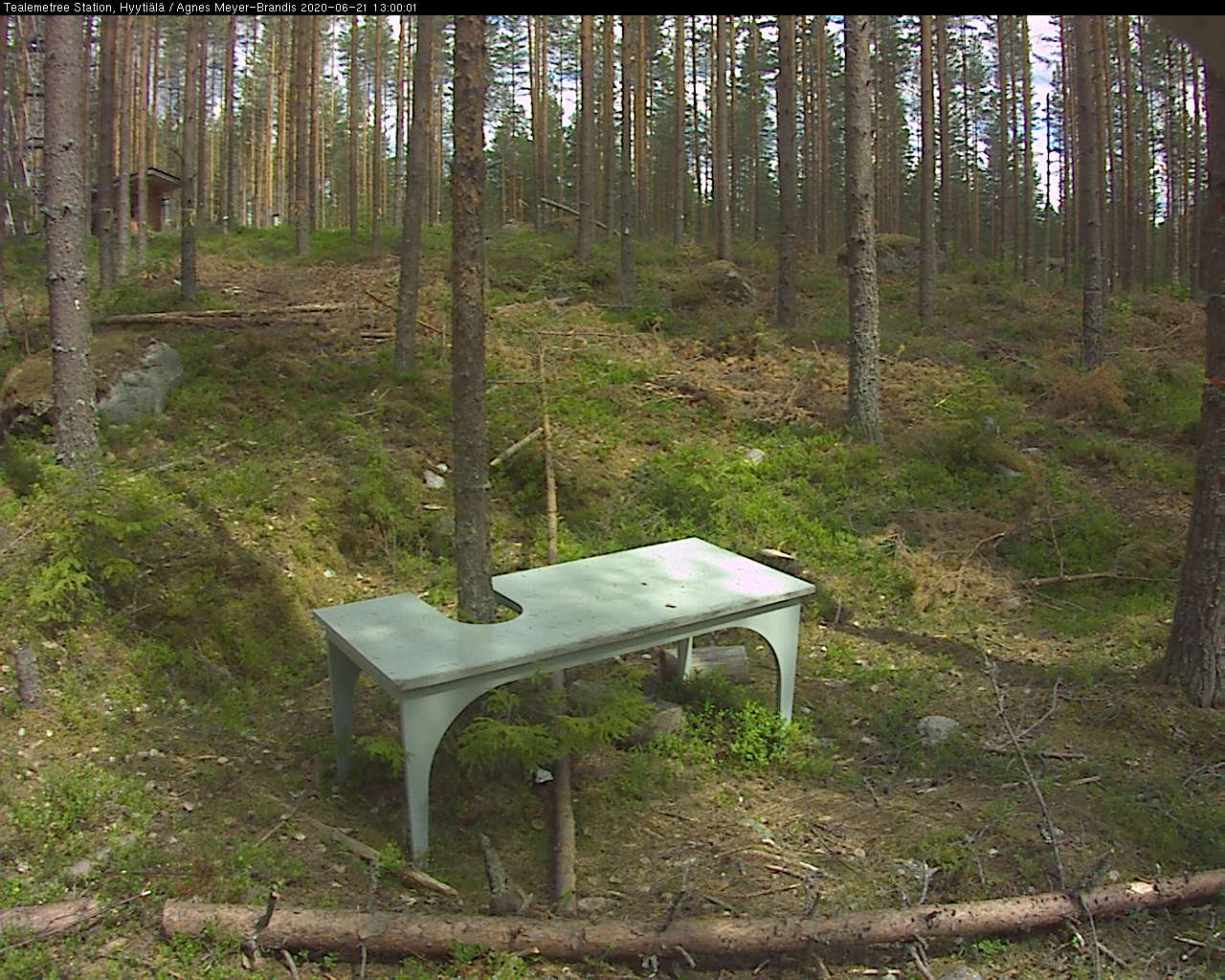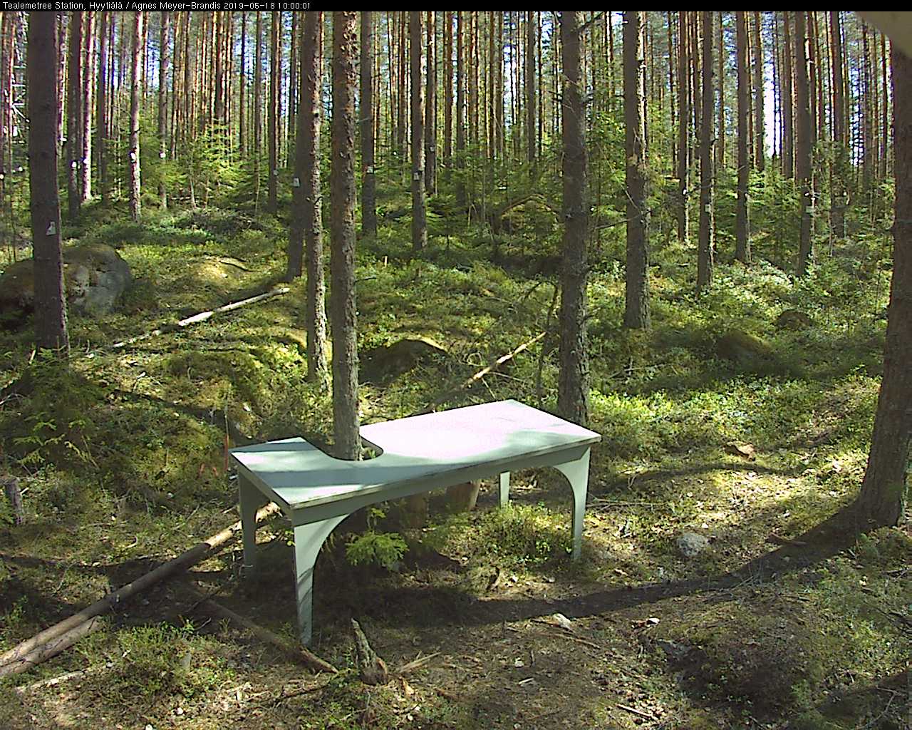 Agnes Meyer-Brandiksen työ Hyytiälässä alkoi tutustumalla aseman muihin tutkijoihin. Pystyäkseen tapaamaan ihmisiä metsässä, hän rakensi pöydän, josta muodostui kohtauspiste ja paikka teehetkille Agneksen ja puun kanssa.