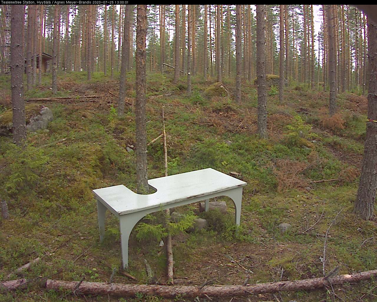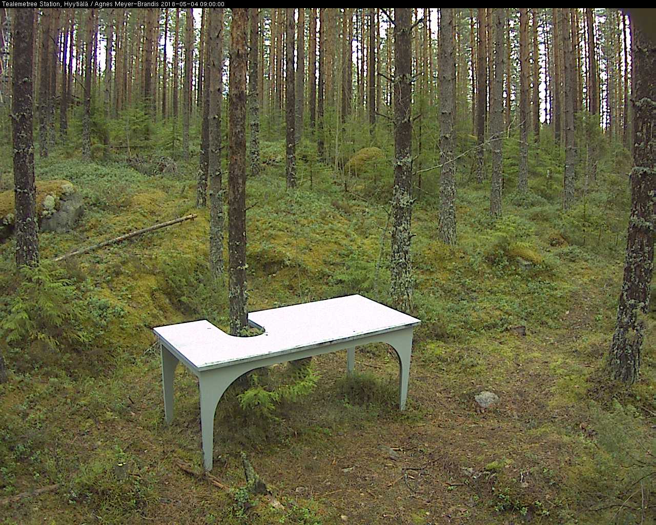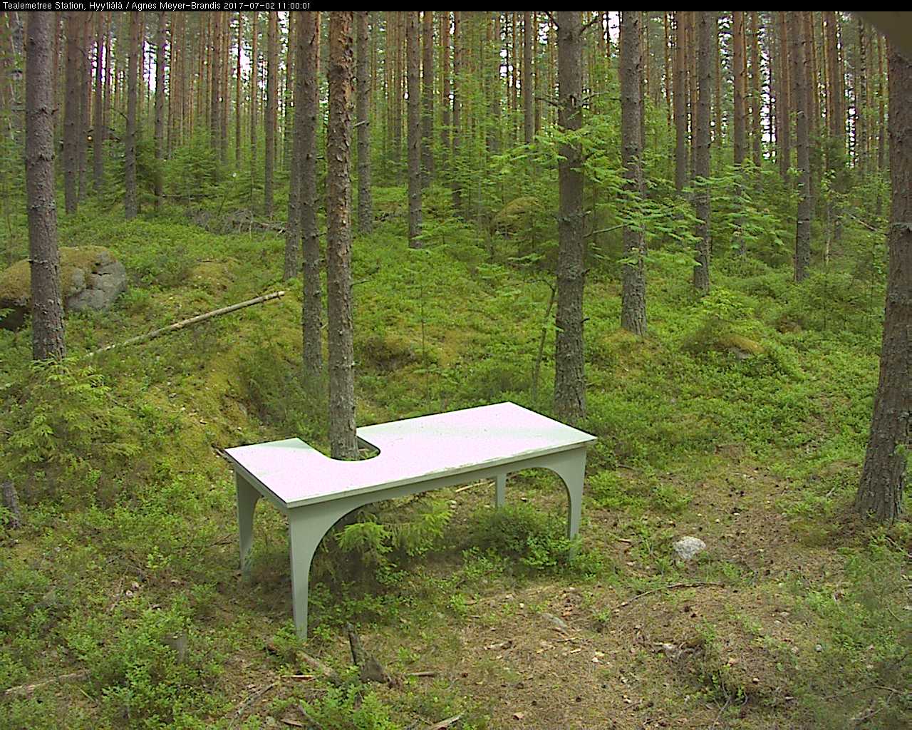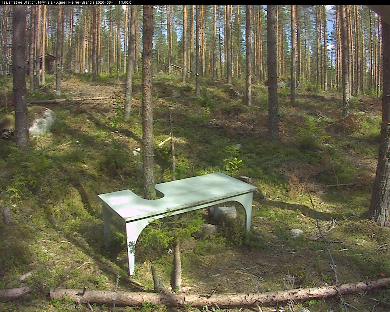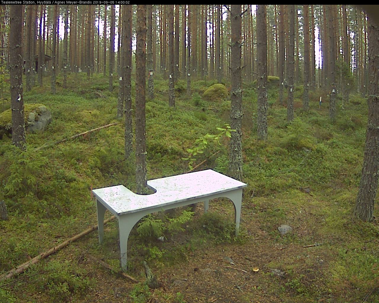 Agnes Meyer-Brandiksen työ Hyytiälässä alkoi tutustumalla aseman muihin tutkijoihin. Pystyäkseen tapaamaan ihmisiä metsässä, hän rakensi pöydän, josta muodostui kohtauspiste ja paikka teehetkille Agneksen ja puun kanssa.
