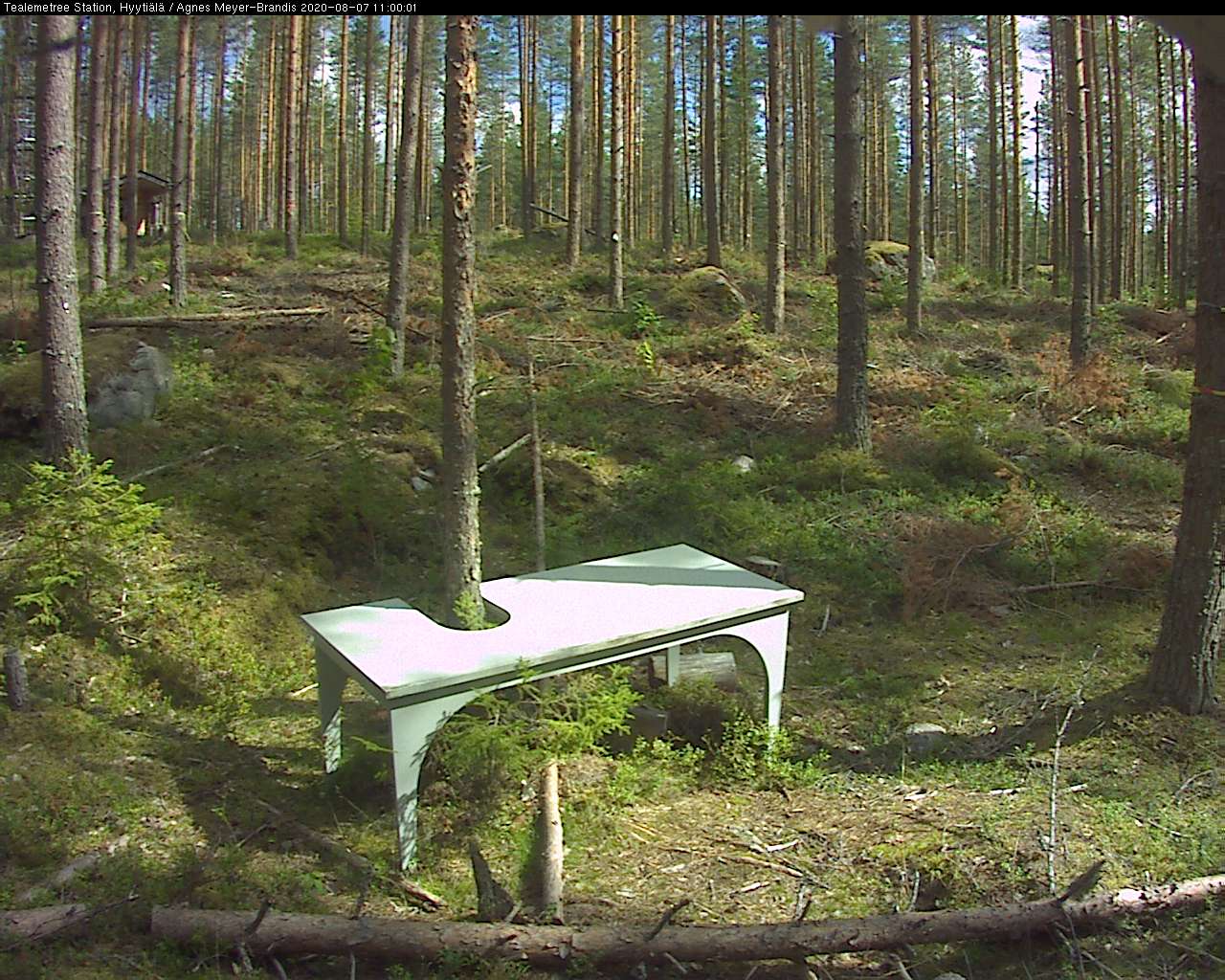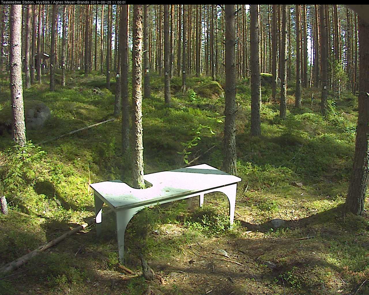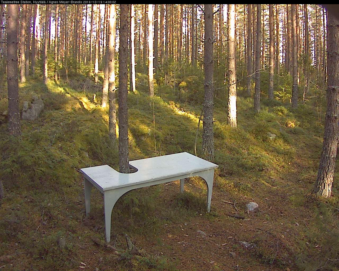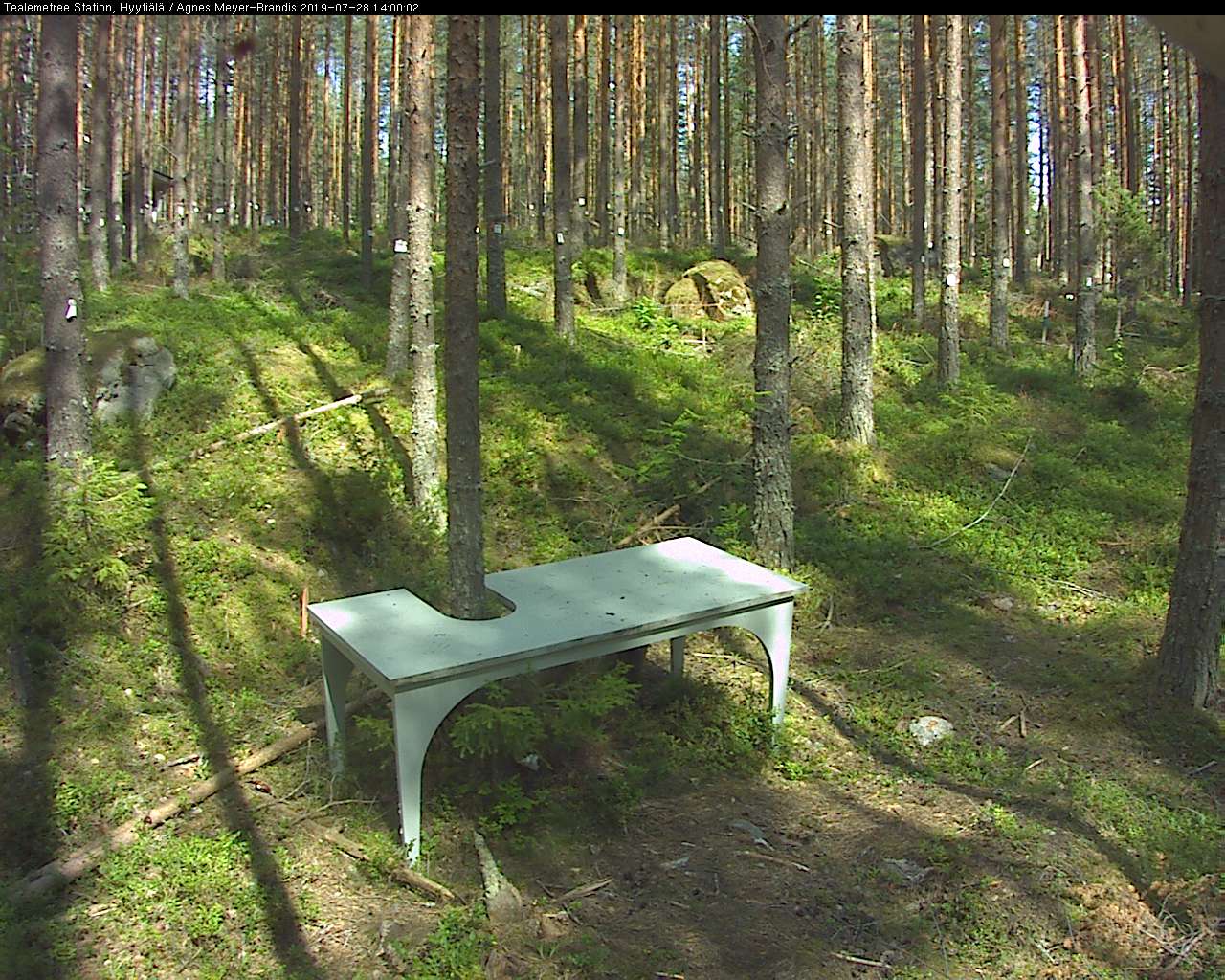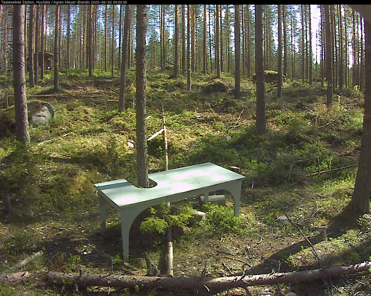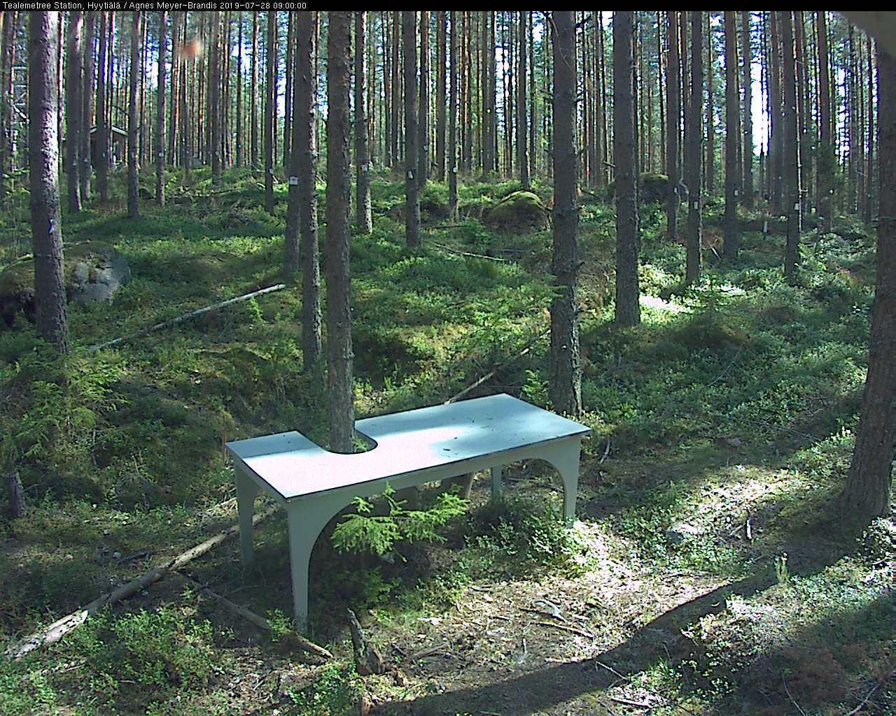 Agnes Meyer-Brandiksen työ Hyytiälässä alkoi tutustumalla aseman muihin tutkijoihin. Pystyäkseen tapaamaan ihmisiä metsässä, hän rakensi pöydän, josta muodostui kohtauspiste ja paikka teehetkille Agneksen ja puun kanssa.
