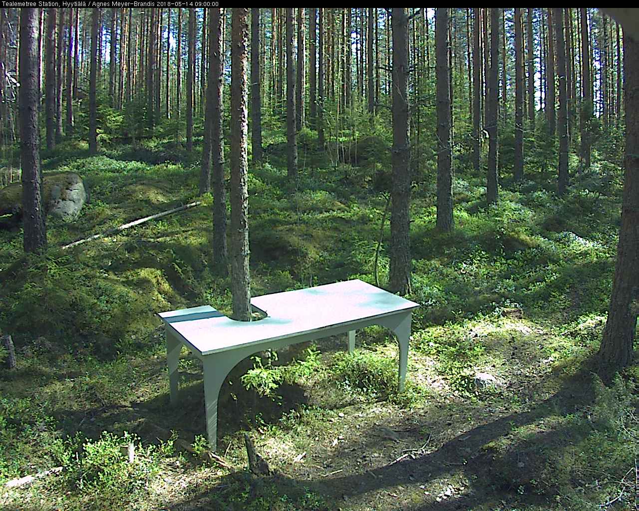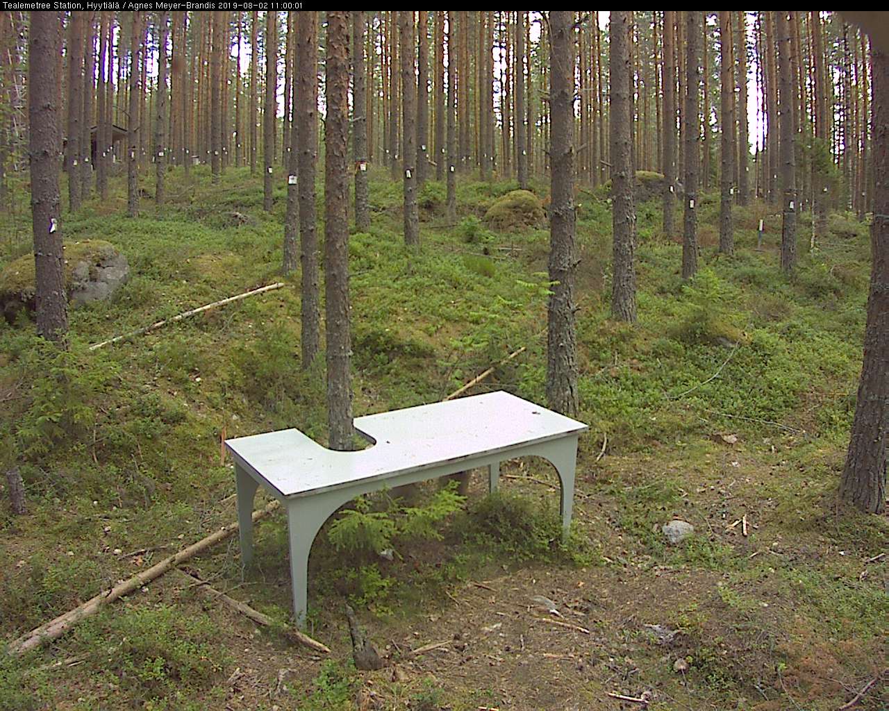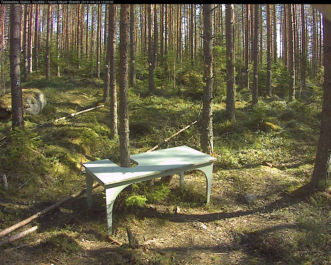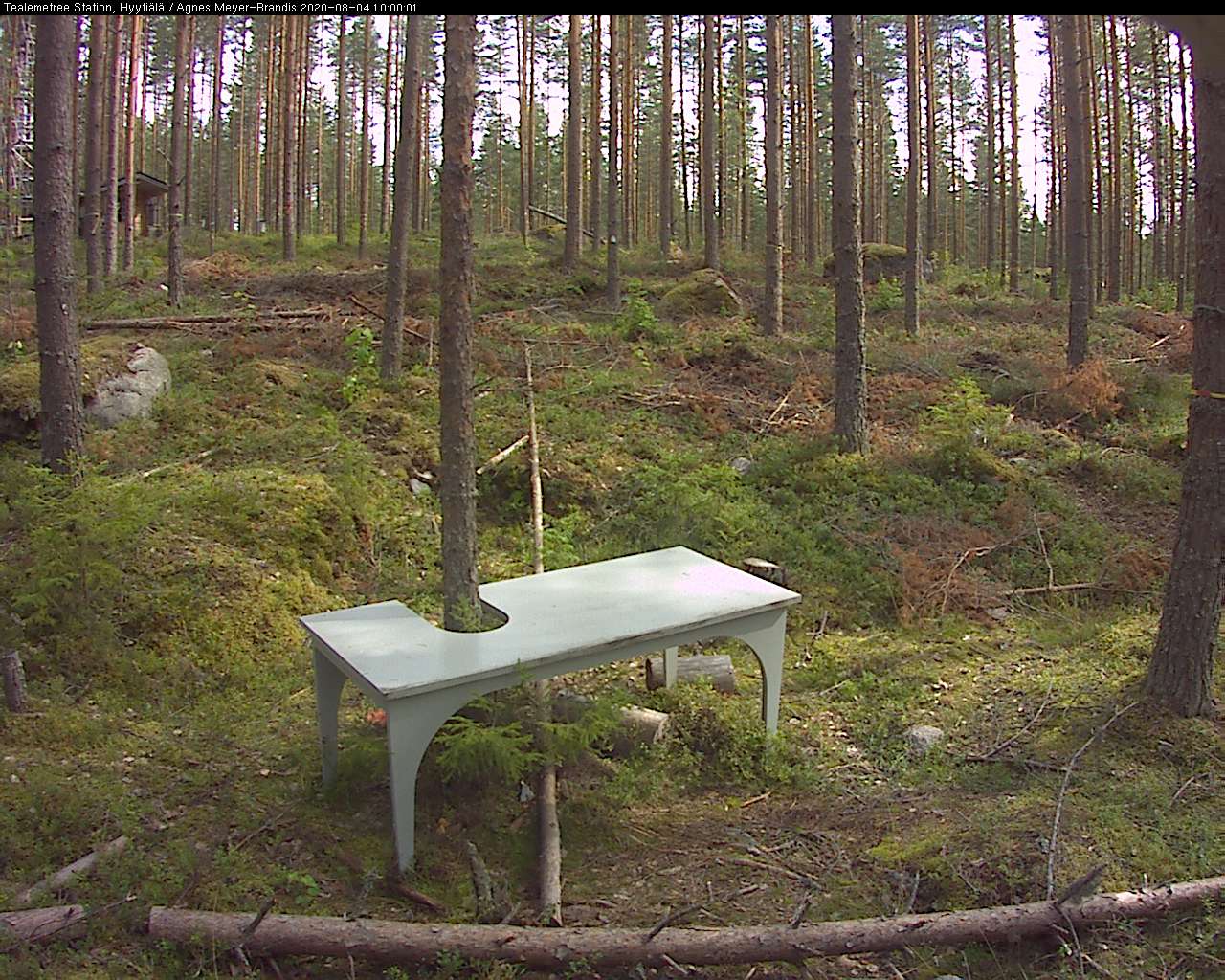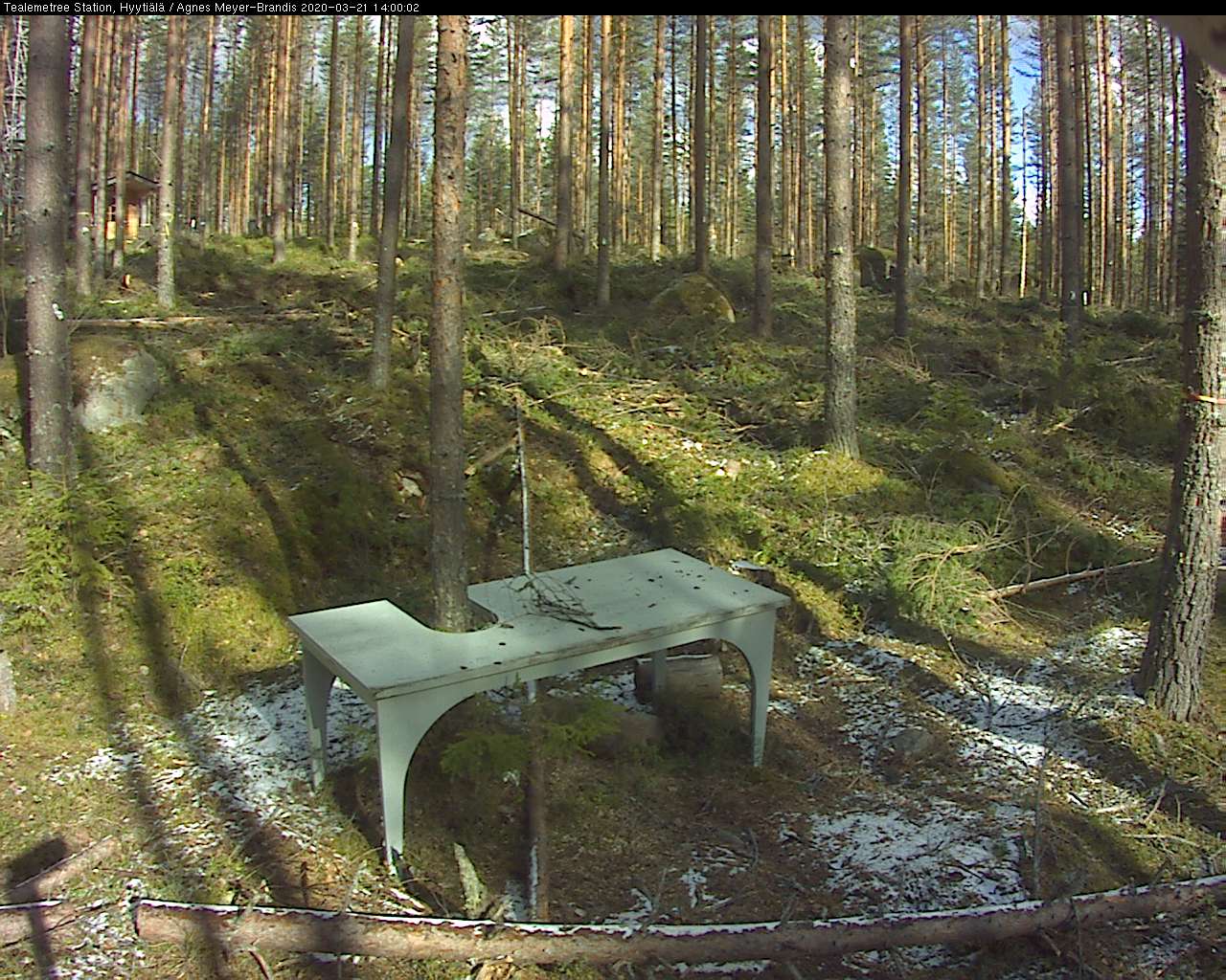 Agnes Meyer-Brandiksen työ Hyytiälässä alkoi tutustumalla aseman muihin tutkijoihin. Pystyäkseen tapaamaan ihmisiä metsässä, hän rakensi pöydän, josta muodostui kohtauspiste ja paikka teehetkille Agneksen ja puun kanssa.