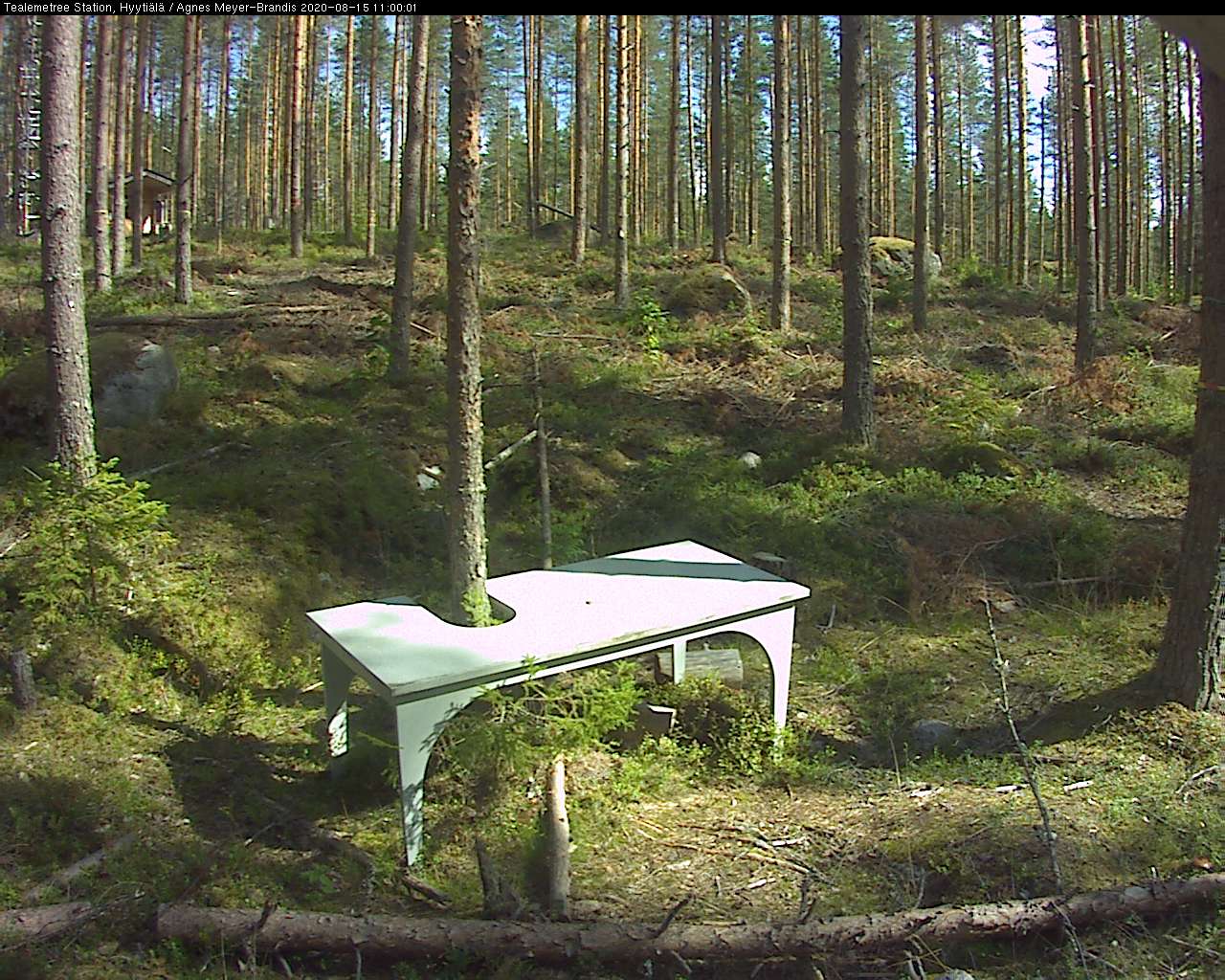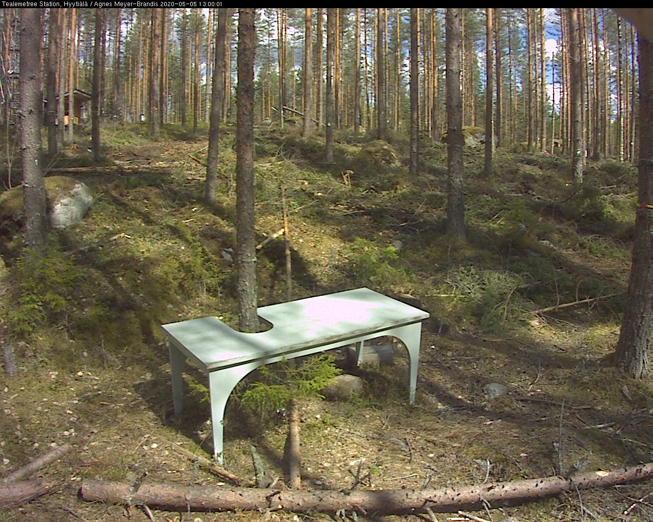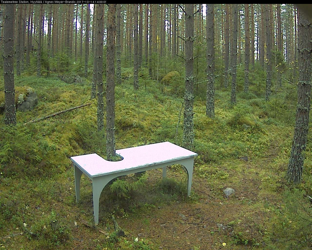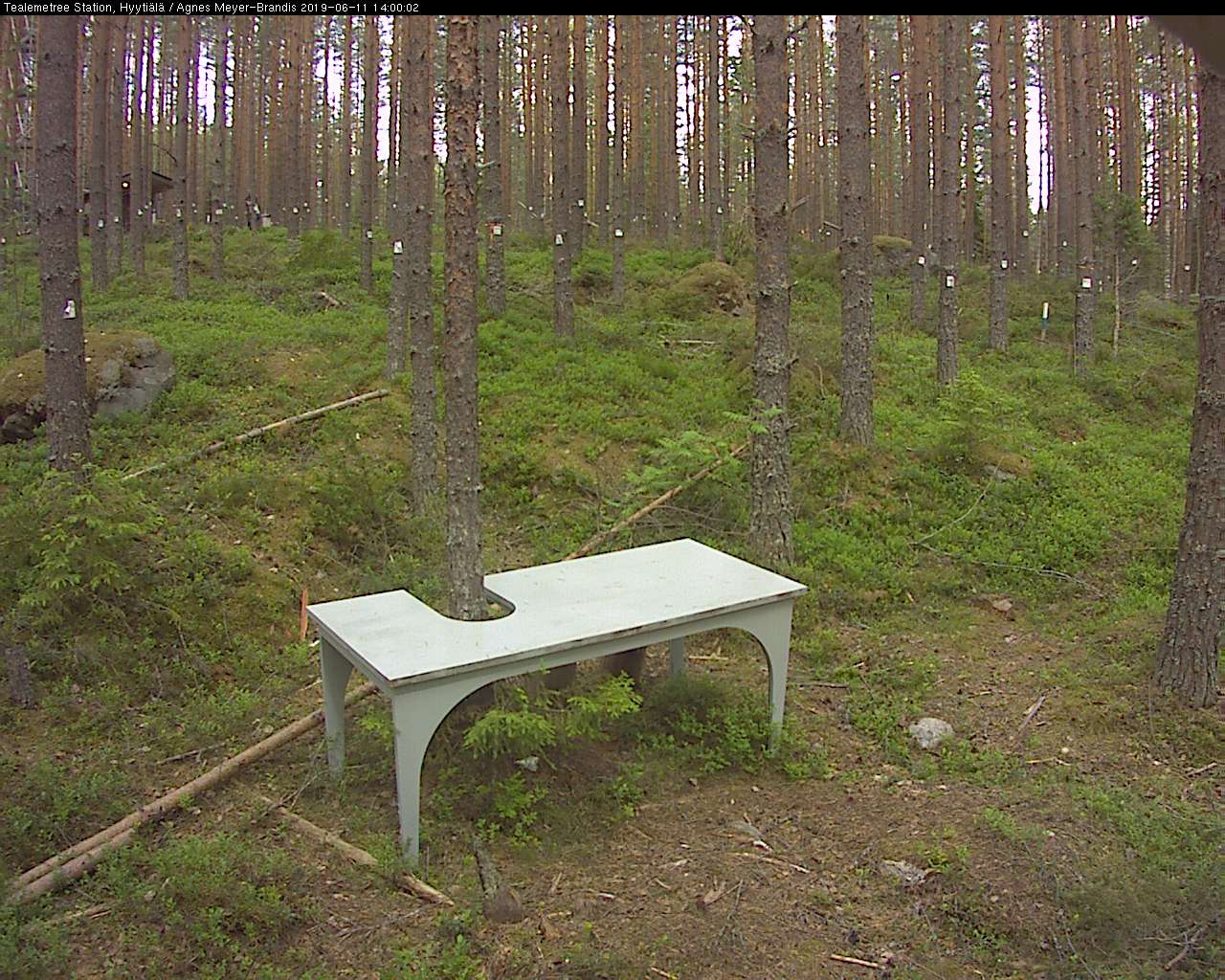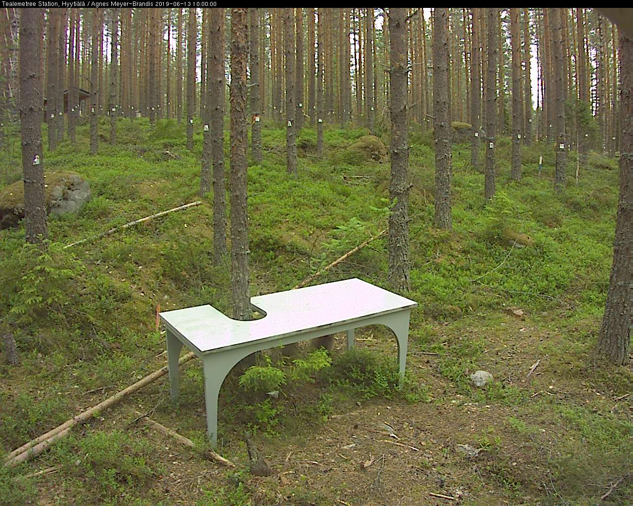 Agnes Meyer-Brandiksen työ Hyytiälässä alkoi tutustumalla aseman muihin tutkijoihin. Pystyäkseen tapaamaan ihmisiä metsässä, hän rakensi pöydän, josta muodostui kohtauspiste ja paikka teehetkille Agneksen ja puun kanssa.