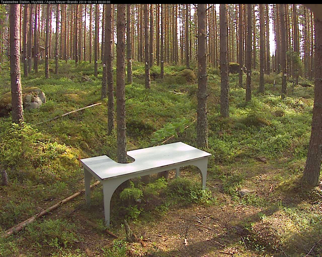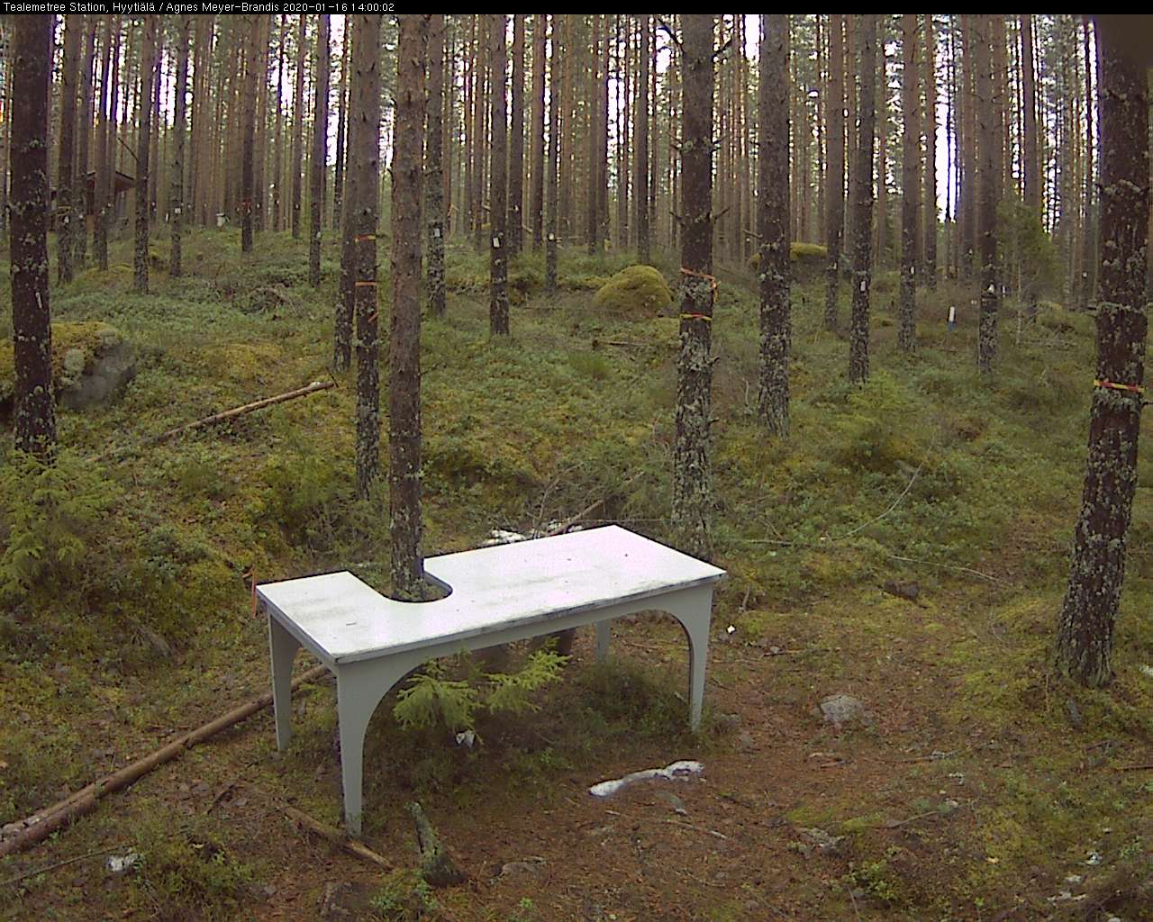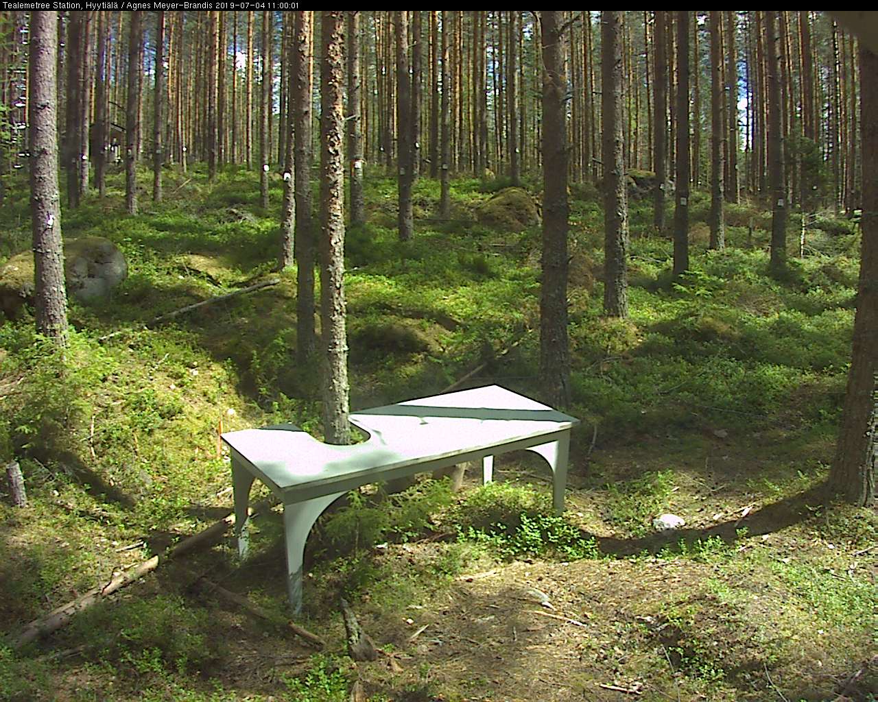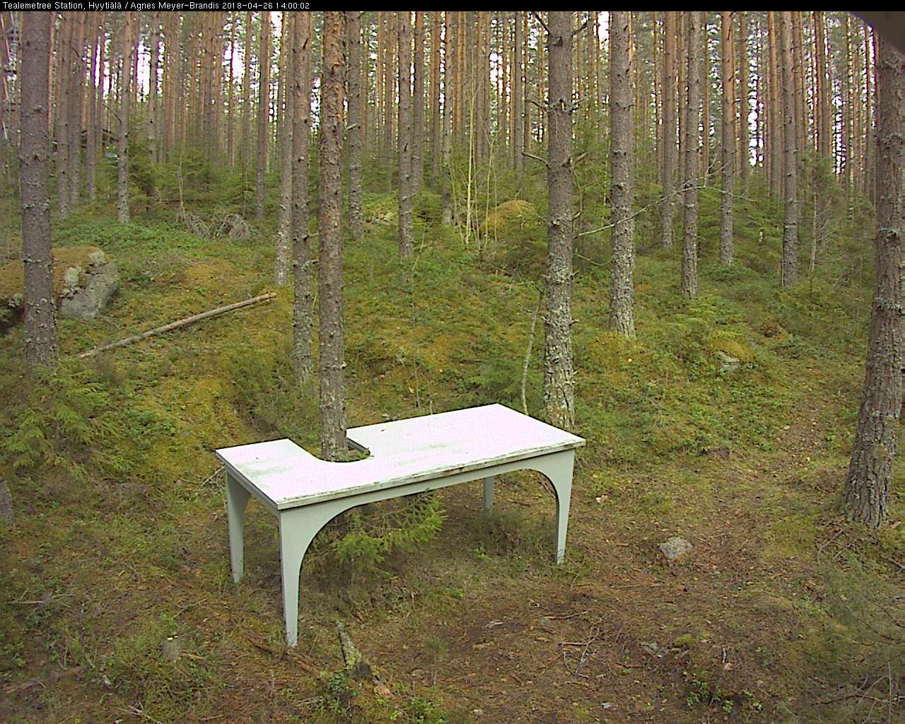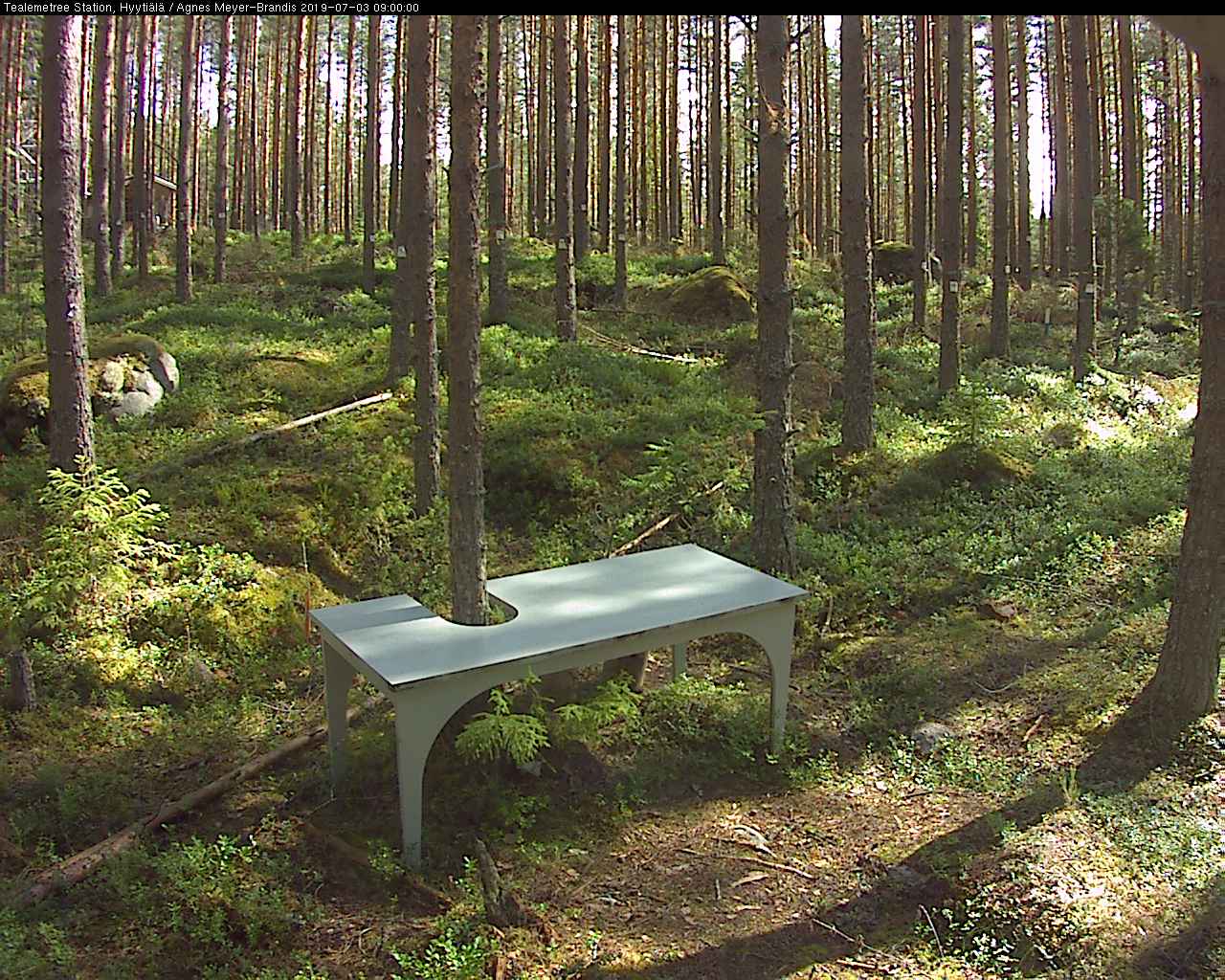 Agnes Meyer-Brandiksen työ Hyytiälässä alkoi tutustumalla aseman muihin tutkijoihin. Pystyäkseen tapaamaan ihmisiä metsässä, hän rakensi pöydän, josta muodostui kohtauspiste ja paikka teehetkille Agneksen ja puun kanssa.