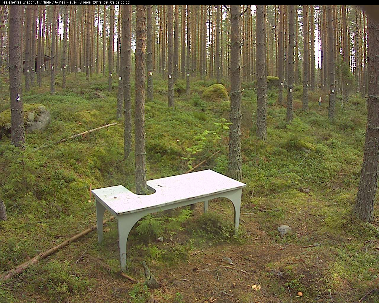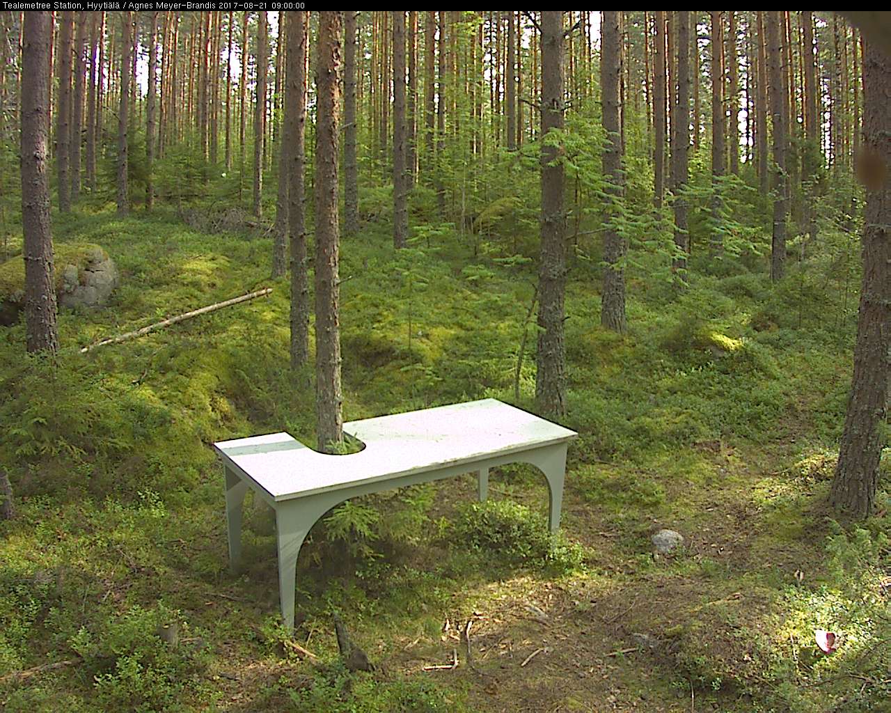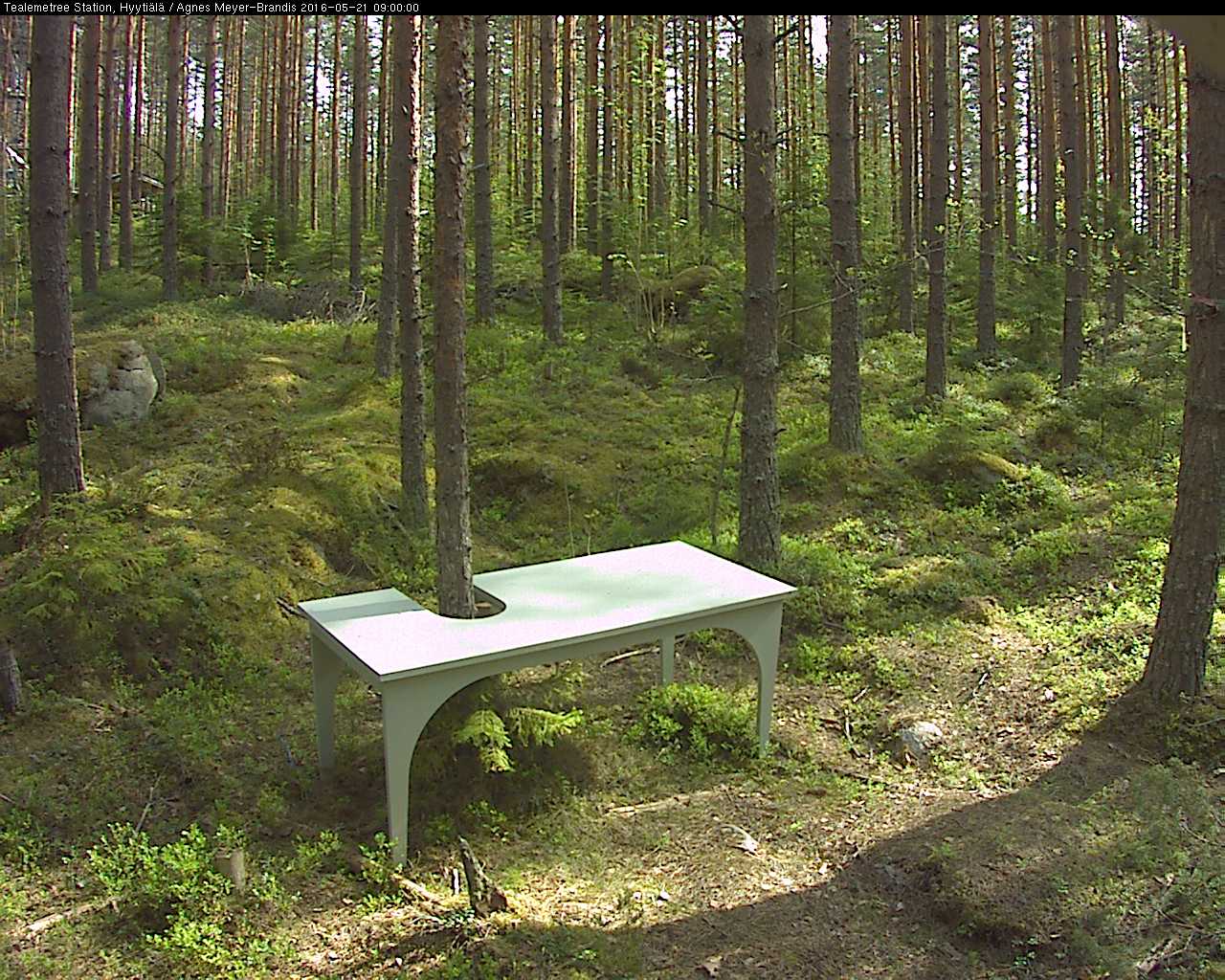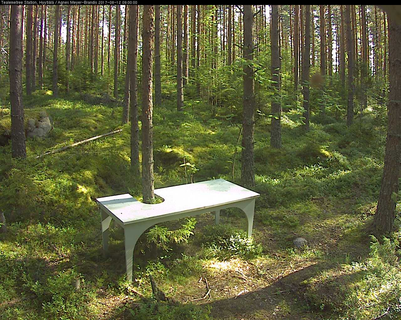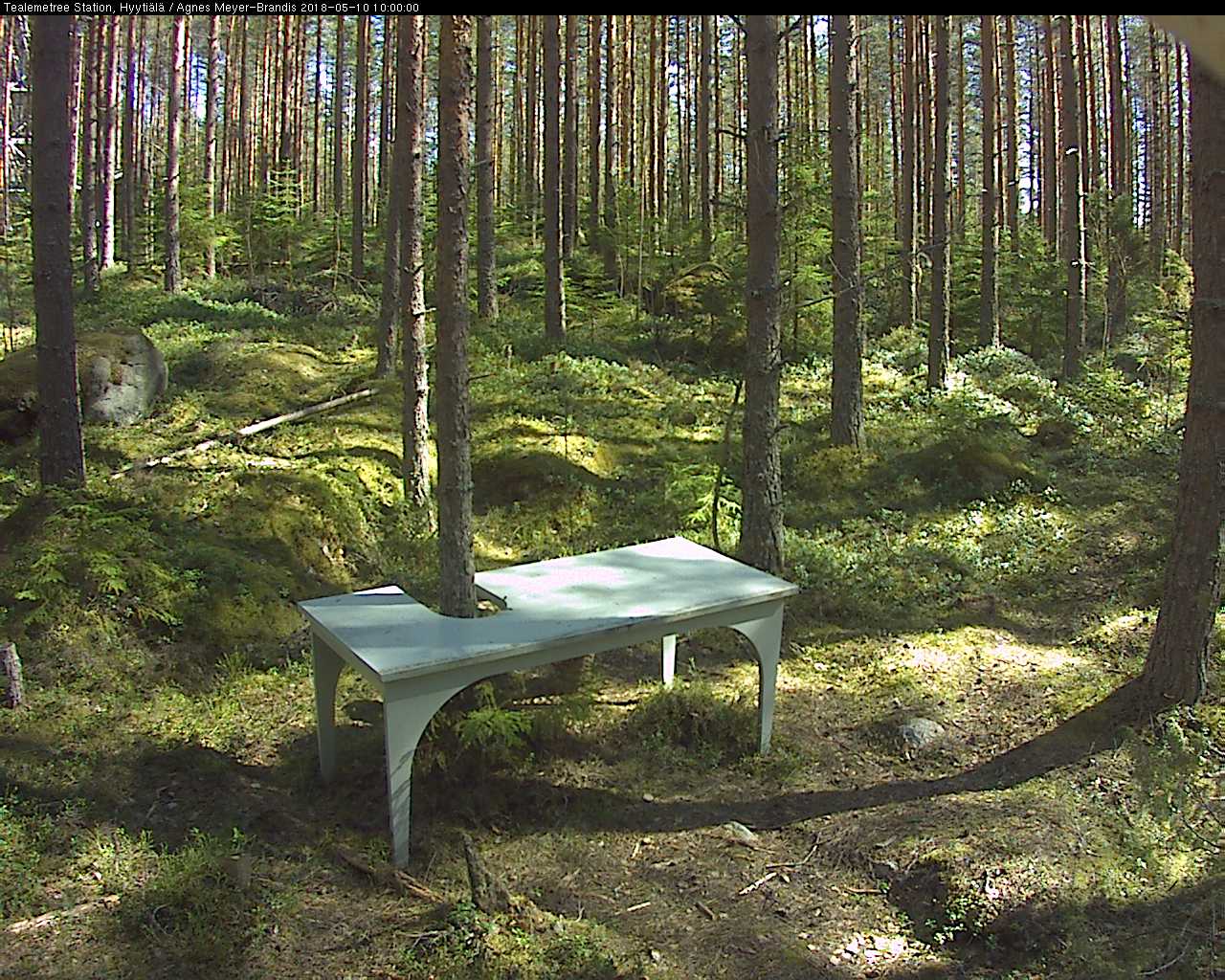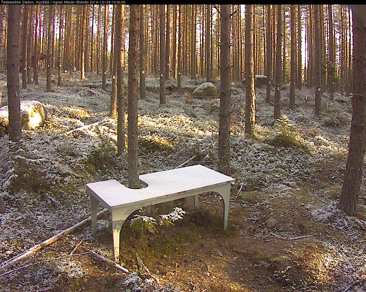 Agnes Meyer-Brandiksen työ Hyytiälässä alkoi tutustumalla aseman muihin tutkijoihin. Pystyäkseen tapaamaan ihmisiä metsässä, hän rakensi pöydän, josta muodostui kohtauspiste ja paikka teehetkille Agneksen ja puun kanssa.