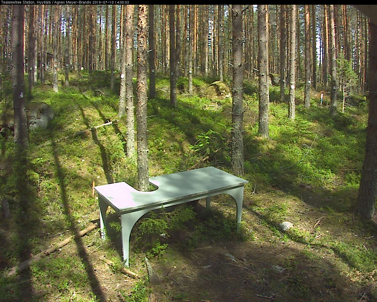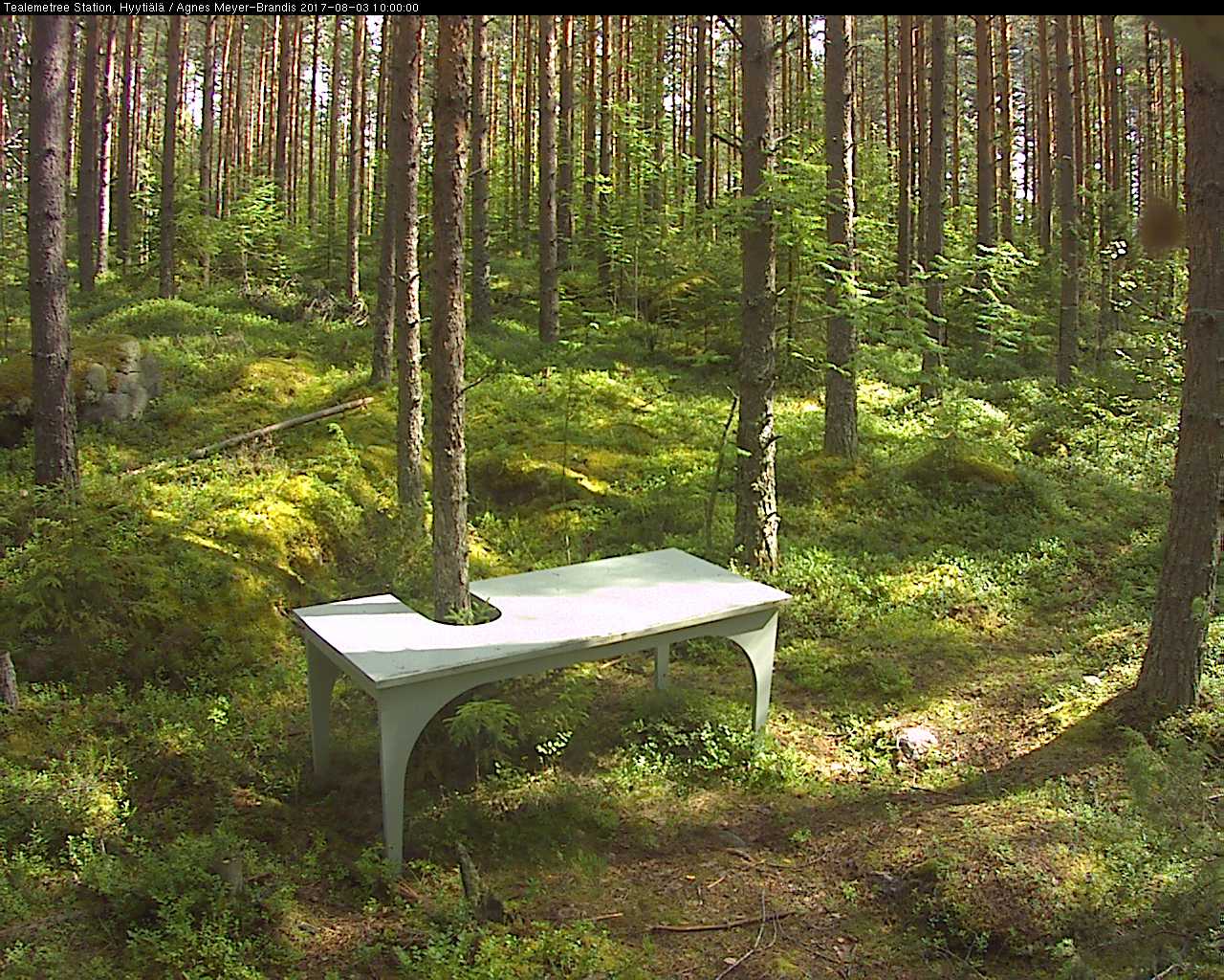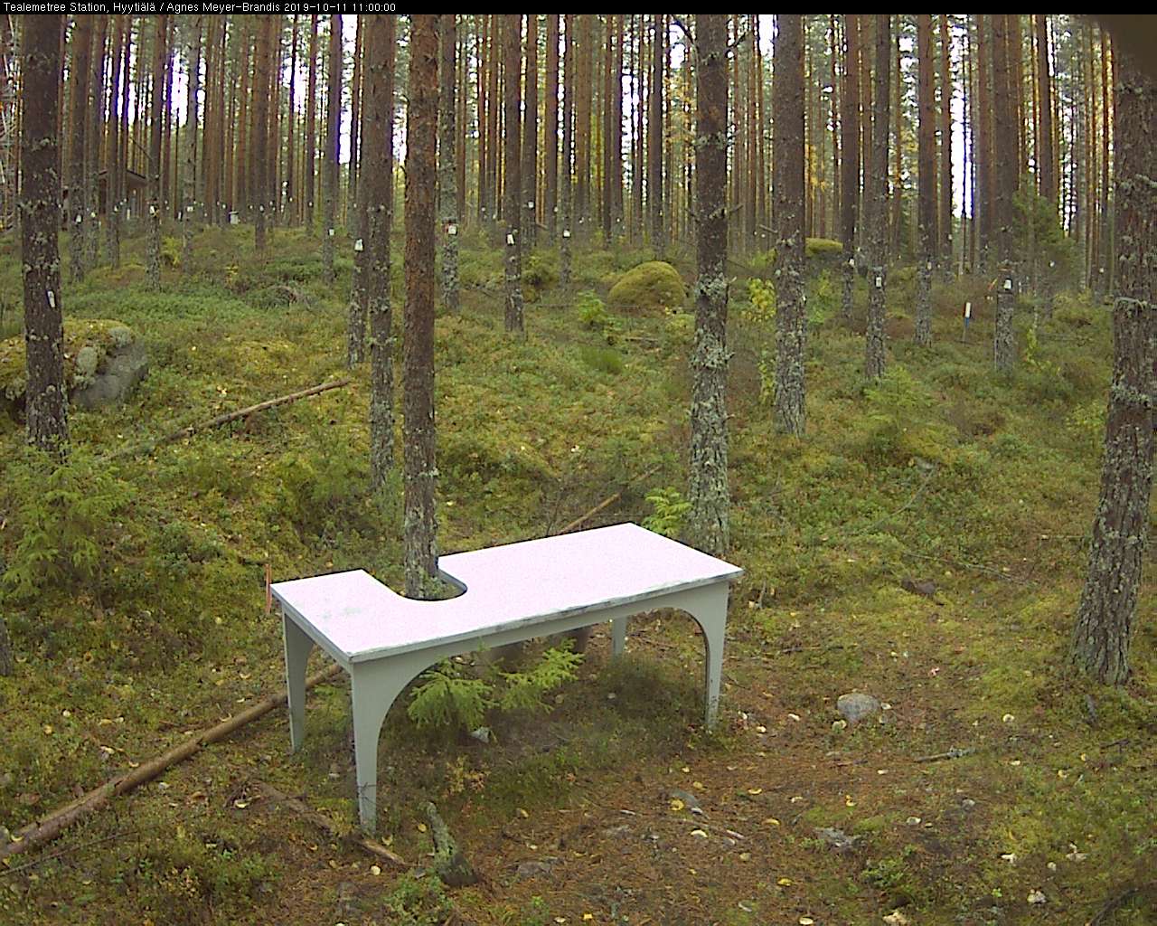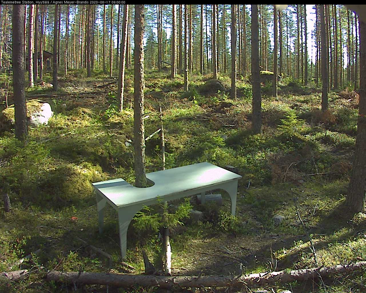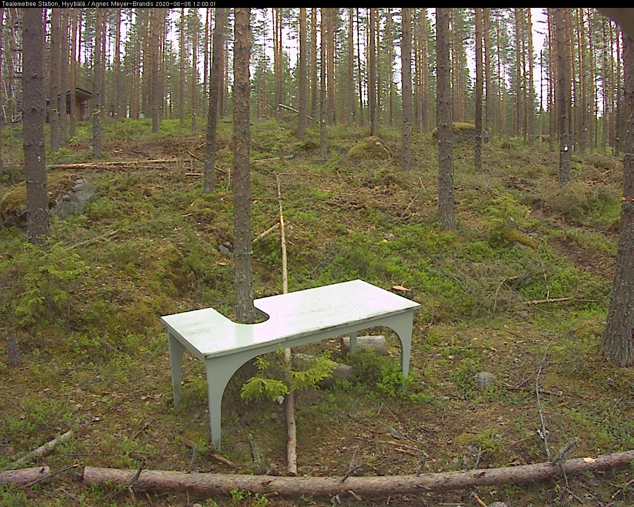 Agnes Meyer-Brandiksen työ Hyytiälässä alkoi tutustumalla aseman muihin tutkijoihin. Pystyäkseen tapaamaan ihmisiä metsässä, hän rakensi pöydän, josta muodostui kohtauspiste ja paikka teehetkille Agneksen ja puun kanssa.