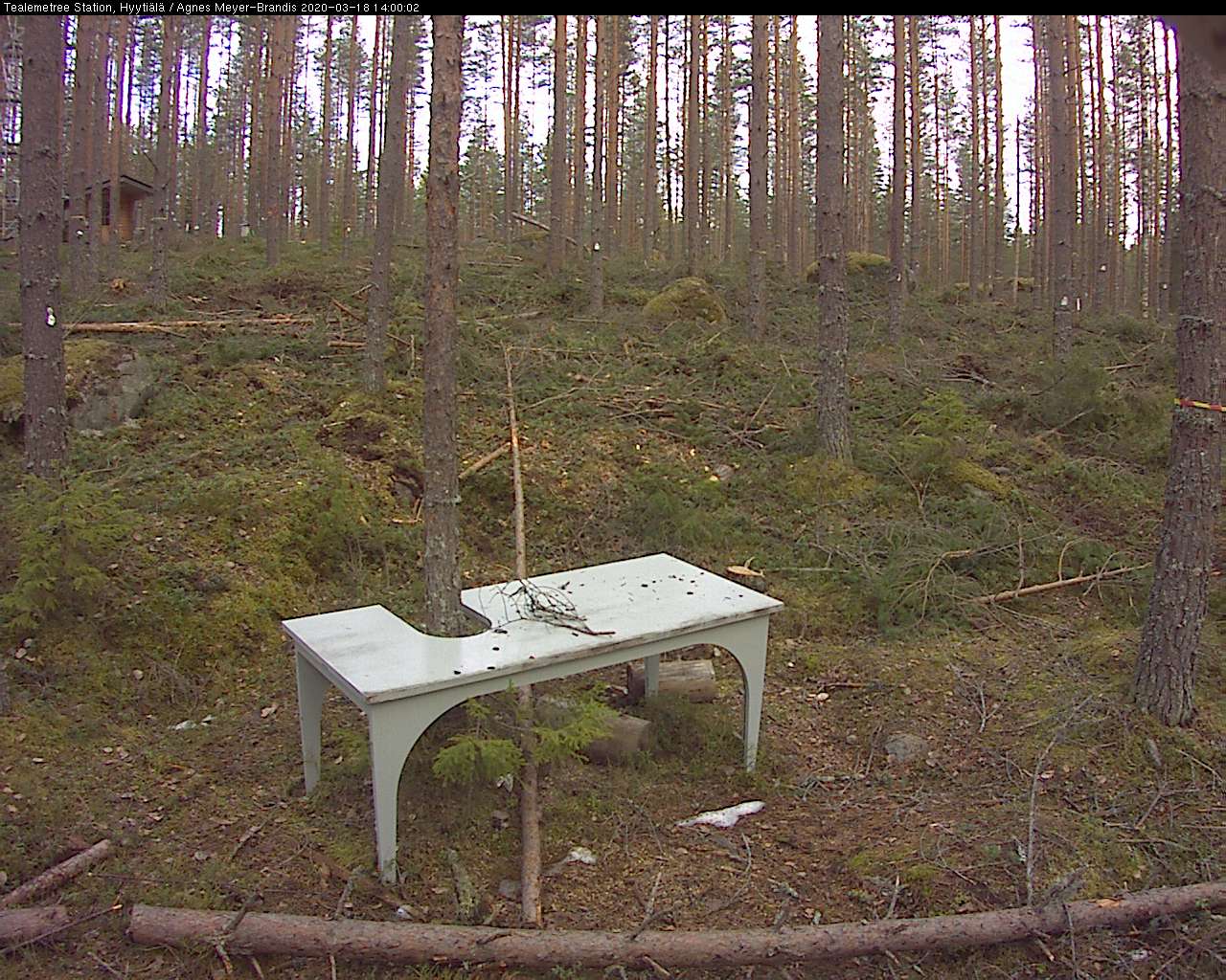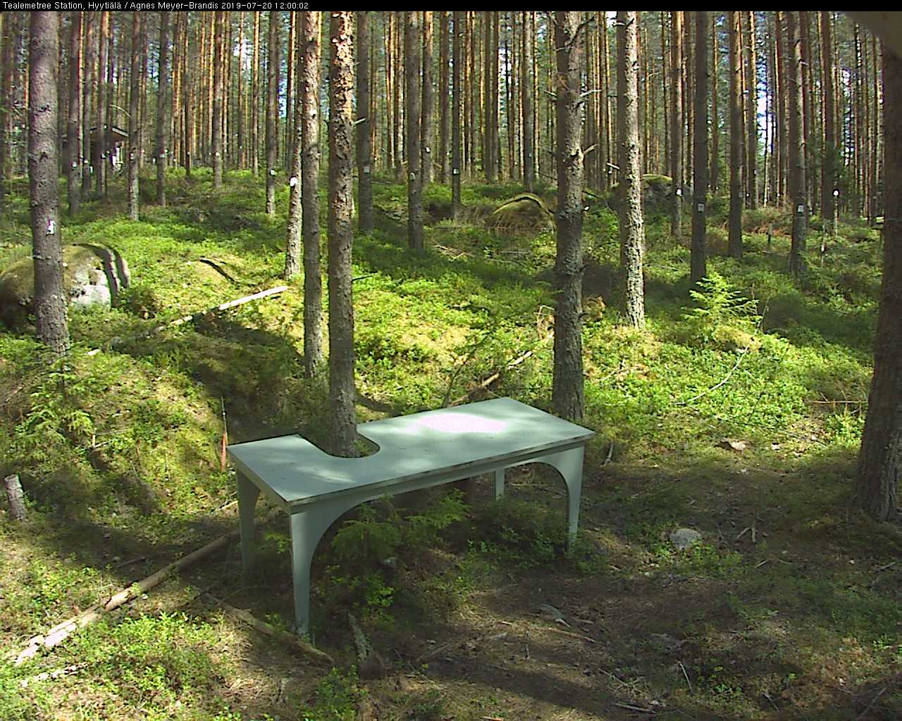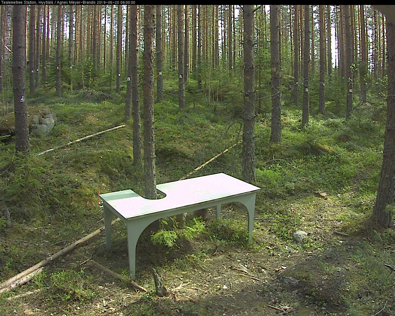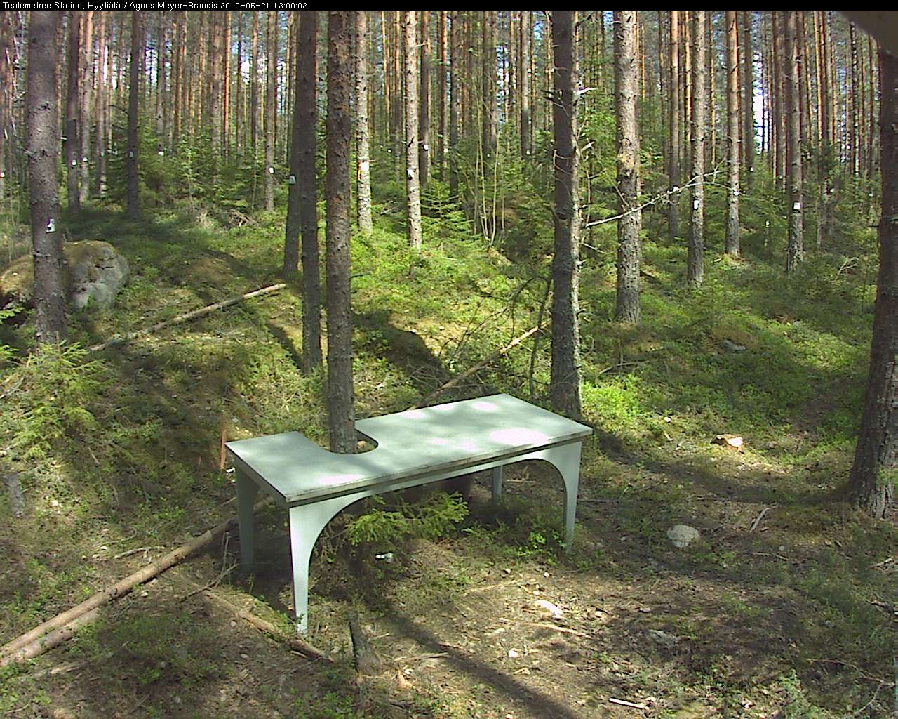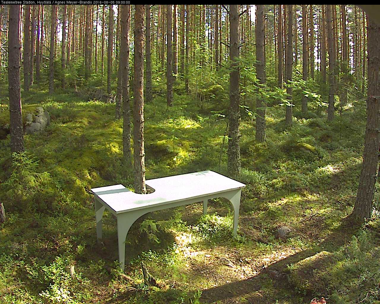 Agnes Meyer-Brandiksen työ Hyytiälässä alkoi tutustumalla aseman muihin tutkijoihin. Pystyäkseen tapaamaan ihmisiä metsässä, hän rakensi pöydän, josta muodostui kohtauspiste ja paikka teehetkille Agneksen ja puun kanssa.