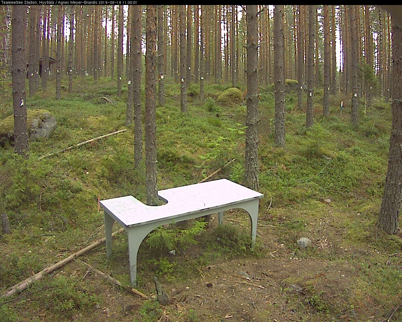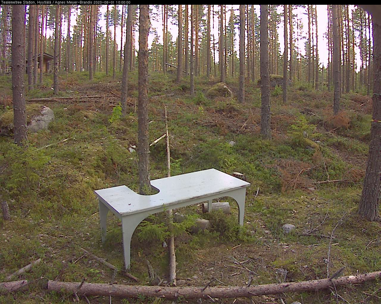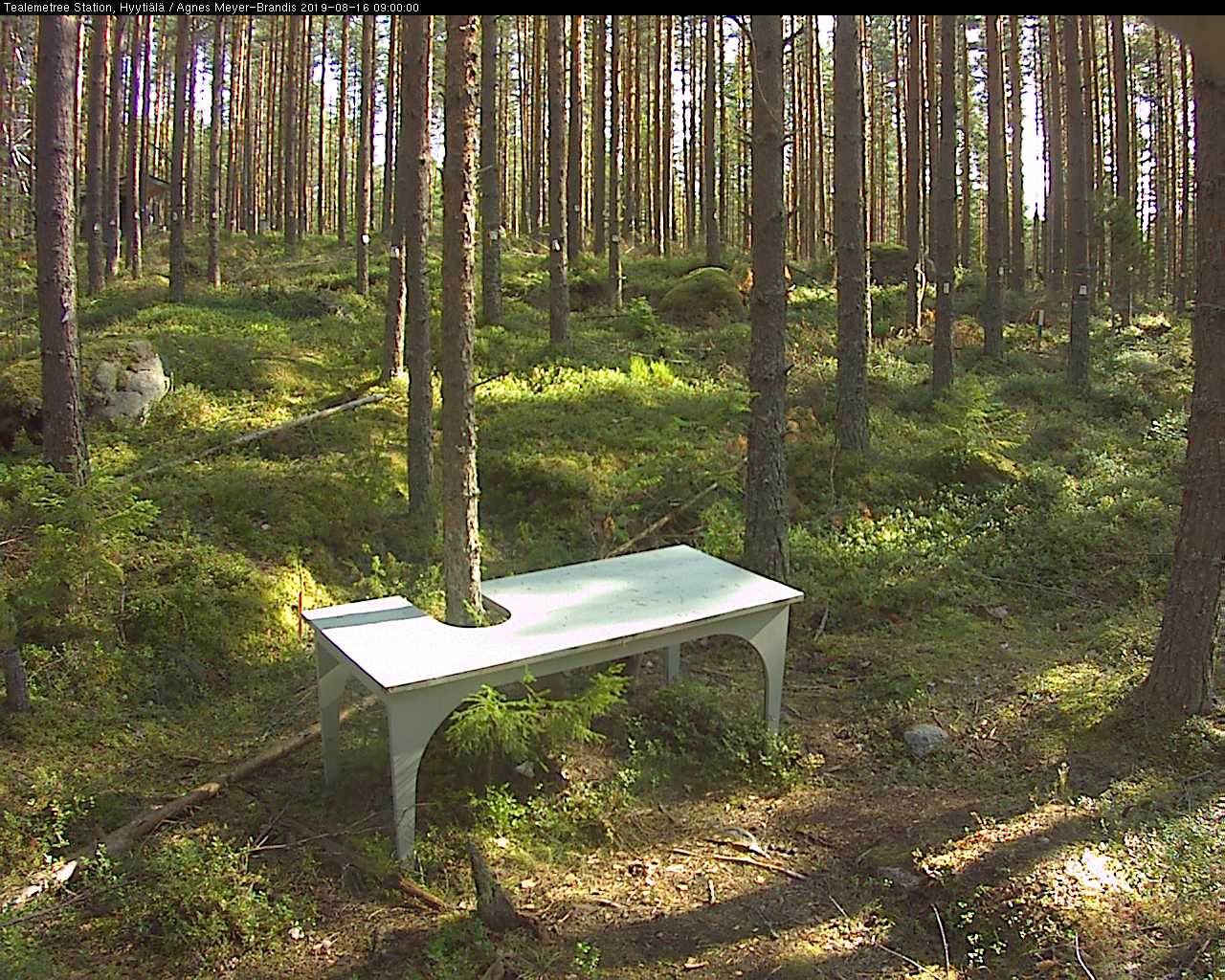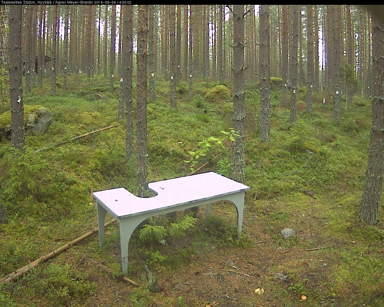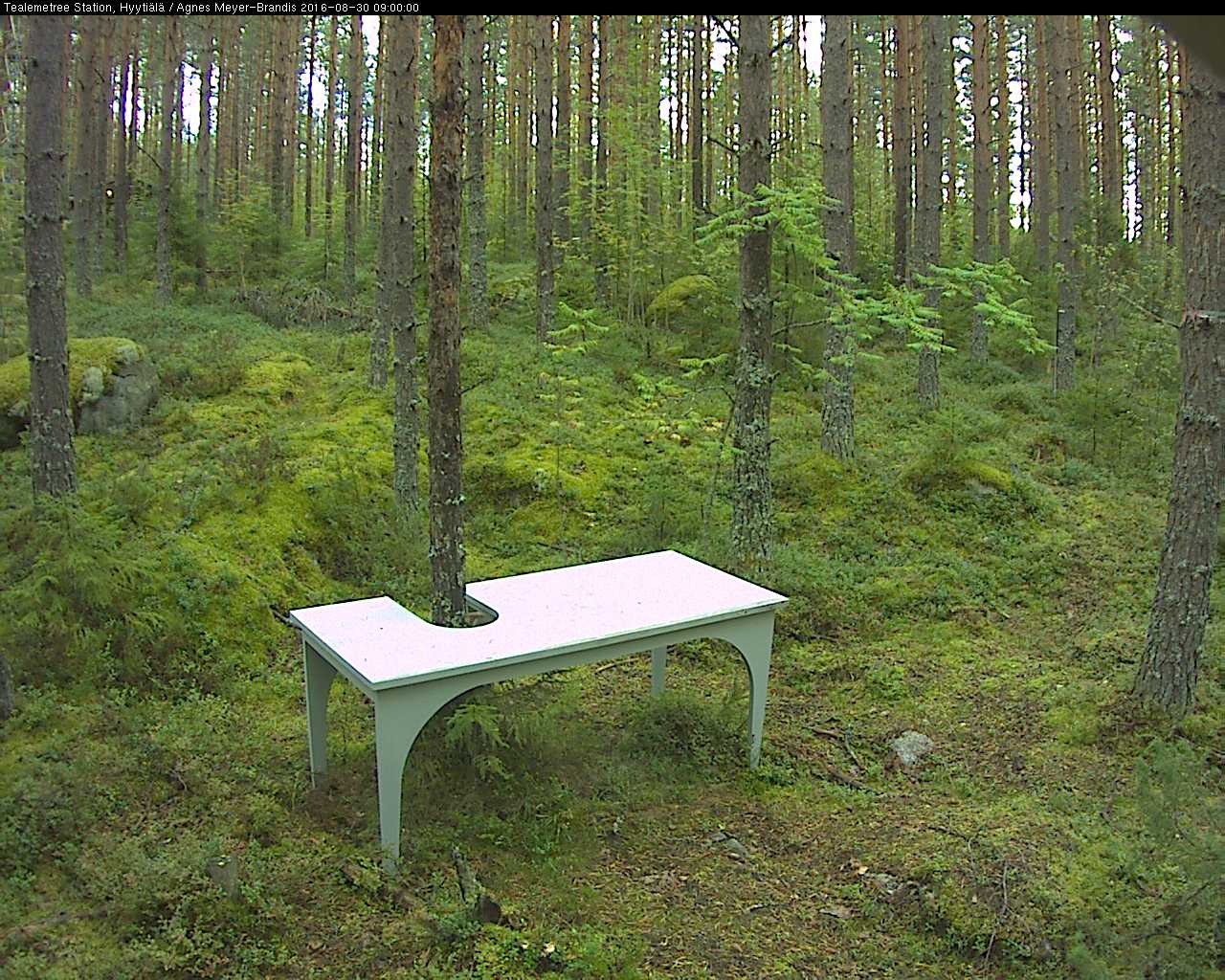Agnes Meyer-Brandiksen työ Hyytiälässä alkoi tutustumalla aseman muihin tutkijoihin. Pystyäkseen tapaamaan ihmisiä metsässä, hän rakensi pöydän, josta muodostui kohtauspiste ja paikka teehetkille Agneksen ja puun kanssa.