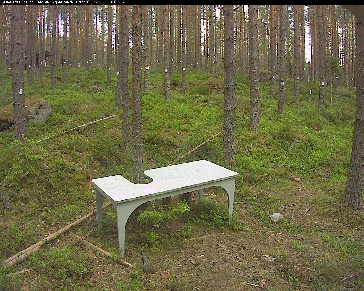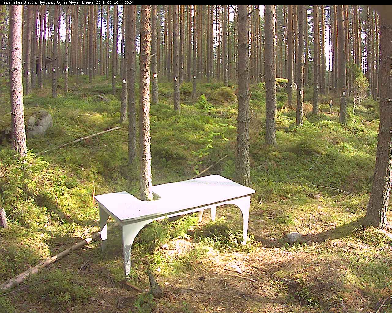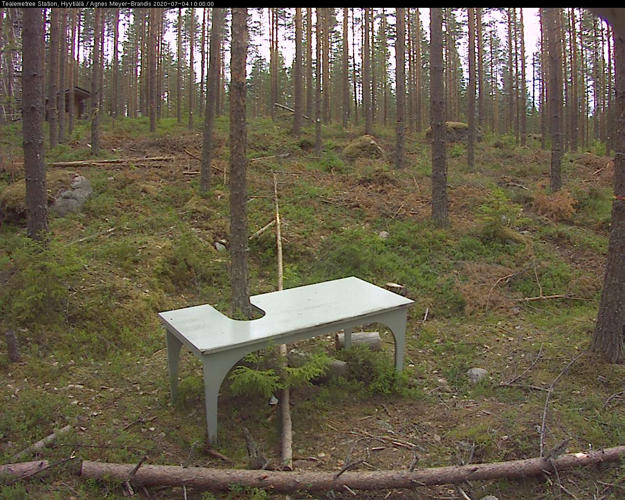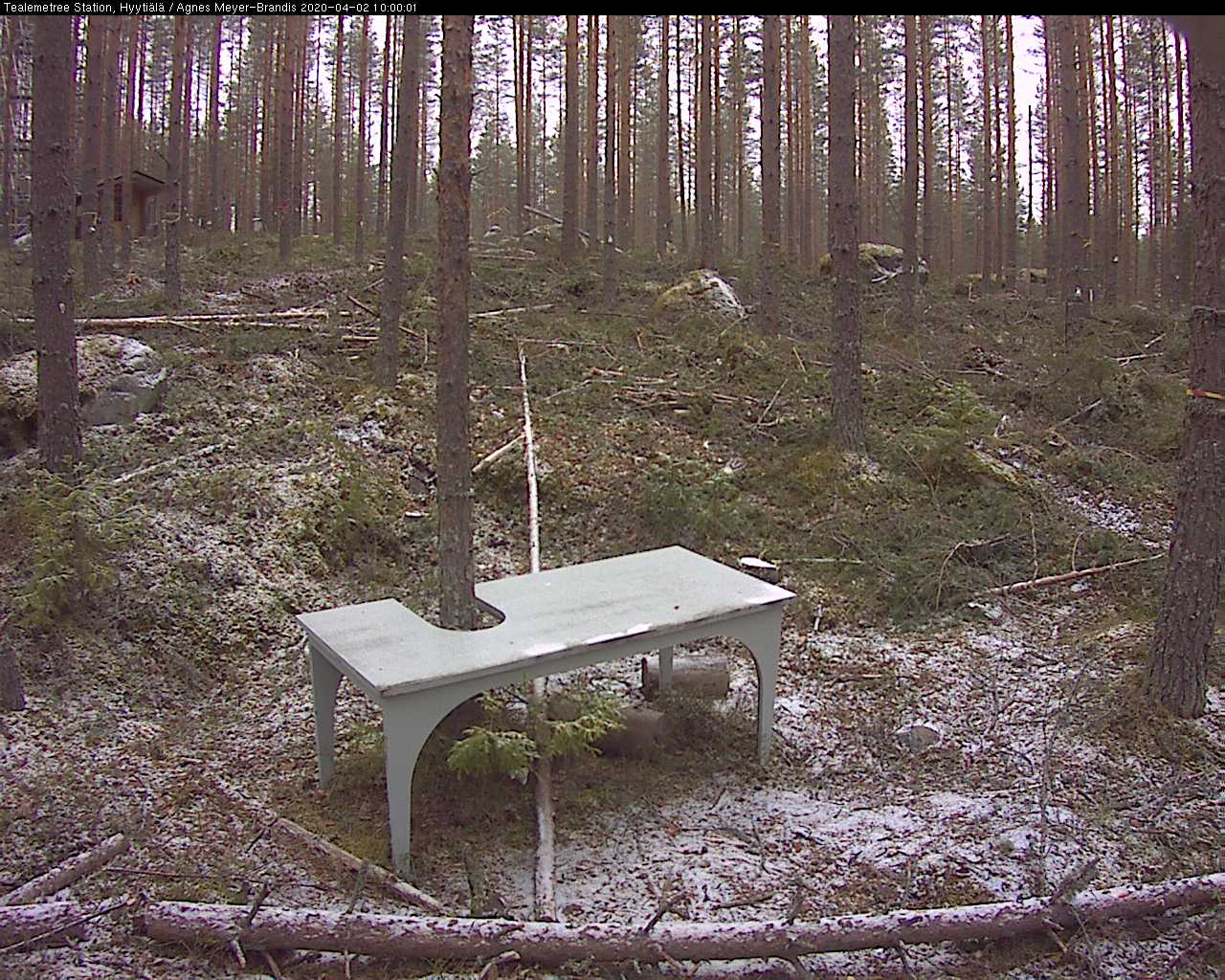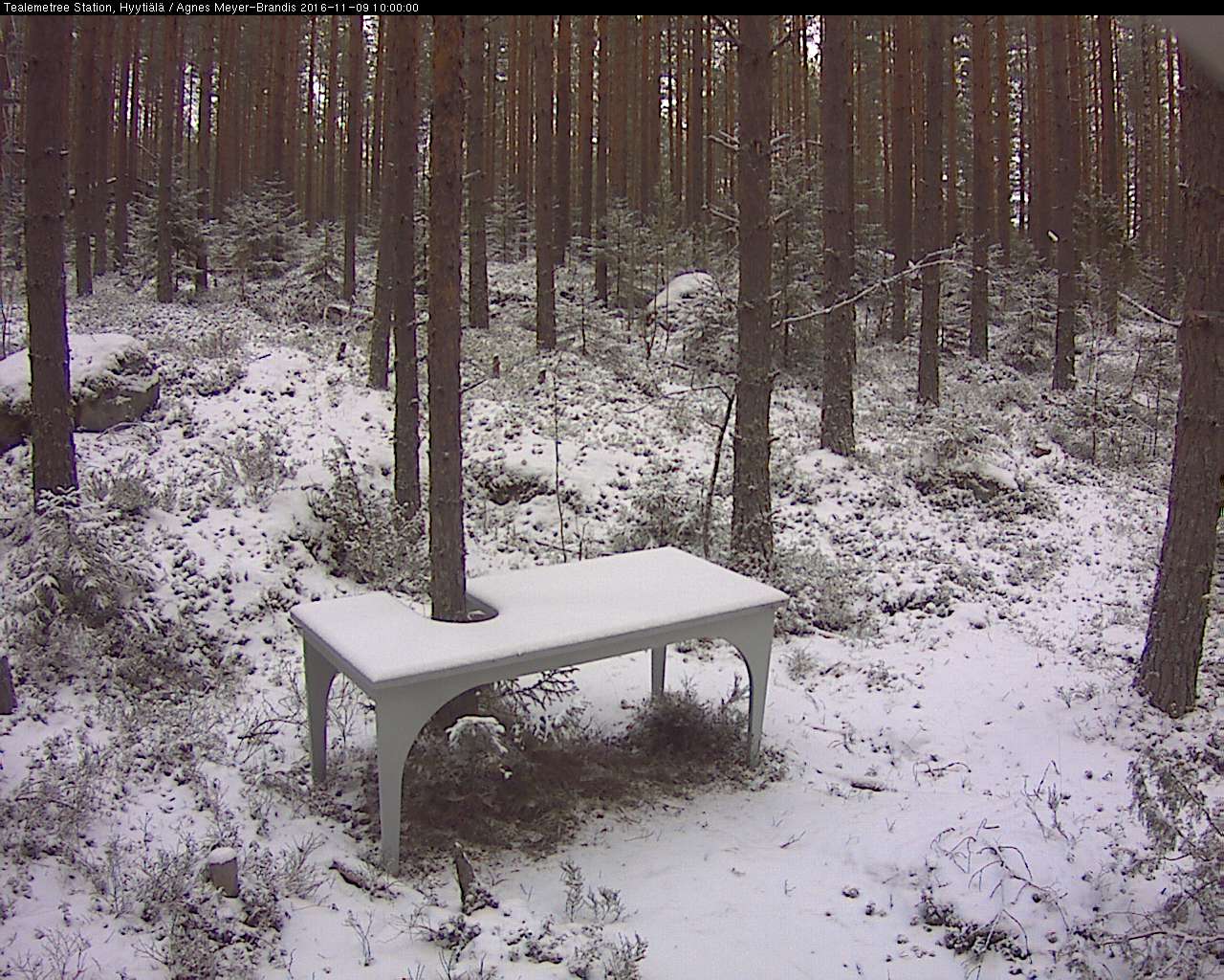 Agnes Meyer-Brandiksen työ Hyytiälässä alkoi tutustumalla aseman muihin tutkijoihin. Pystyäkseen tapaamaan ihmisiä metsässä, hän rakensi pöydän, josta muodostui kohtauspiste ja paikka teehetkille Agneksen ja puun kanssa.