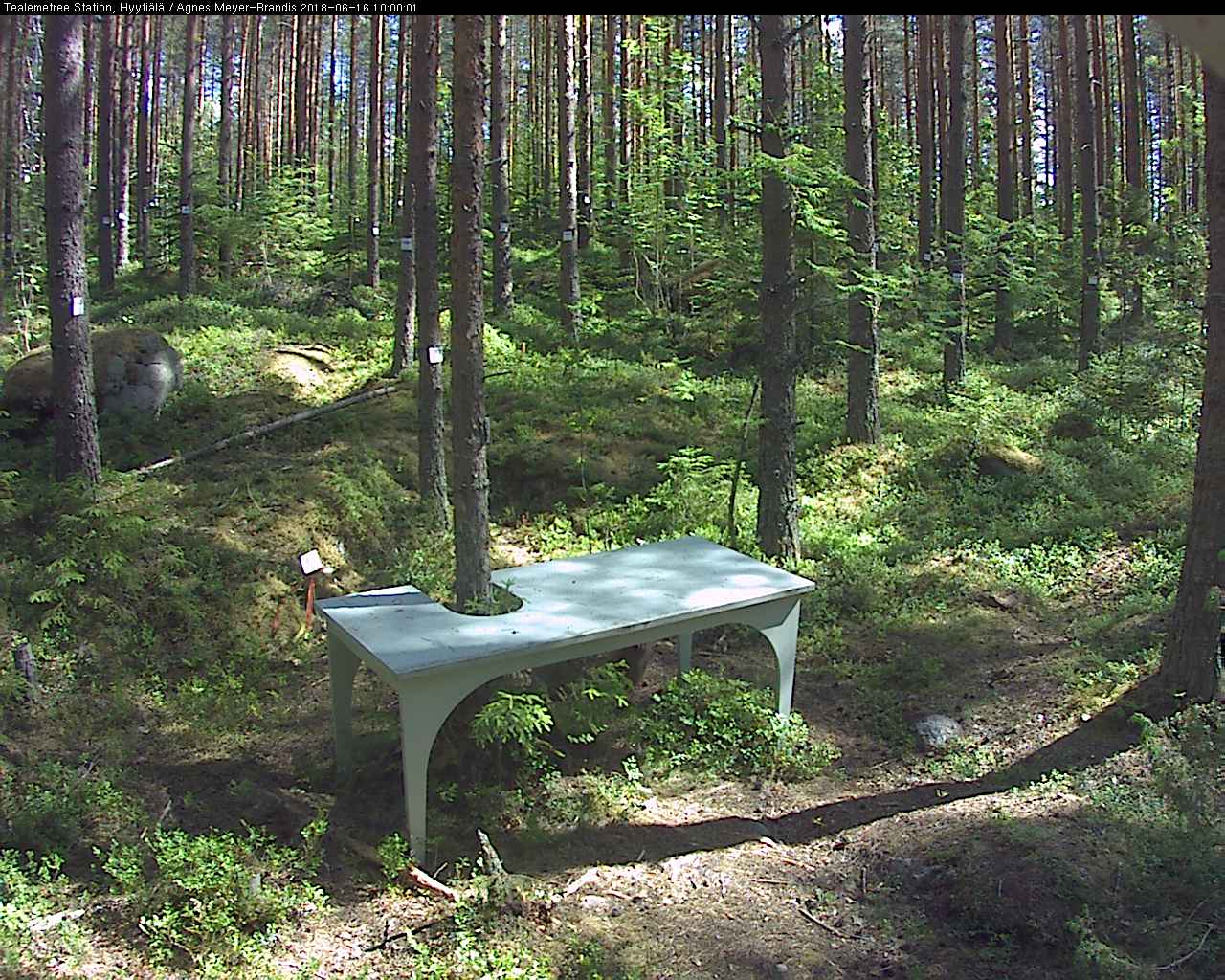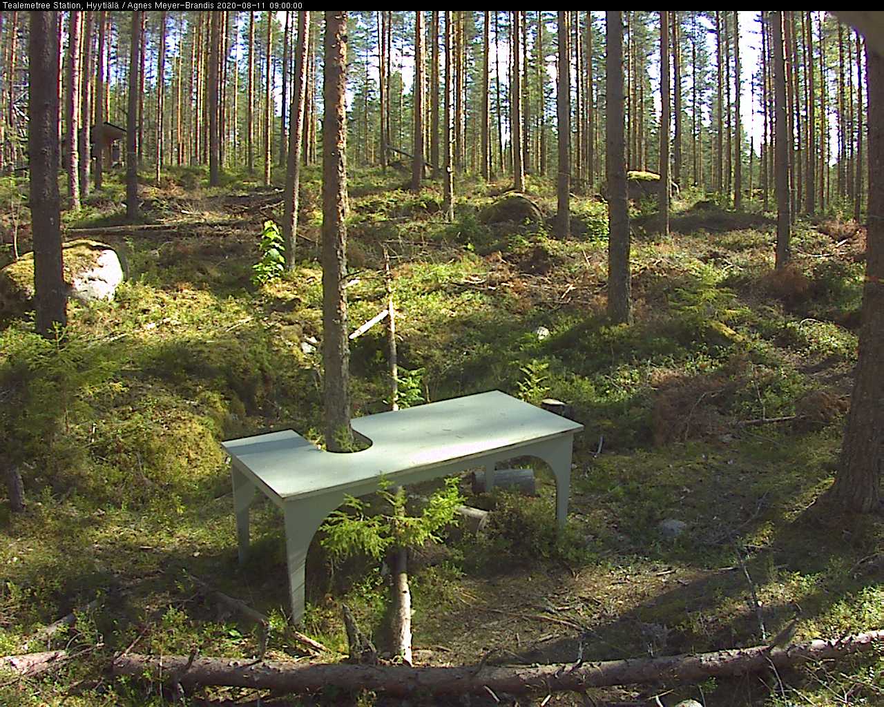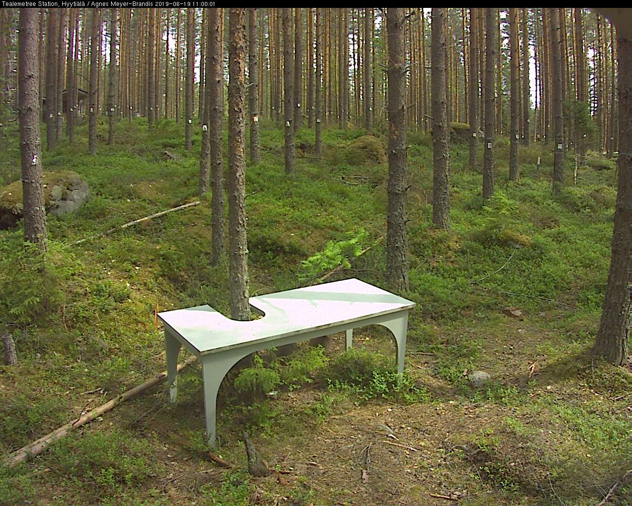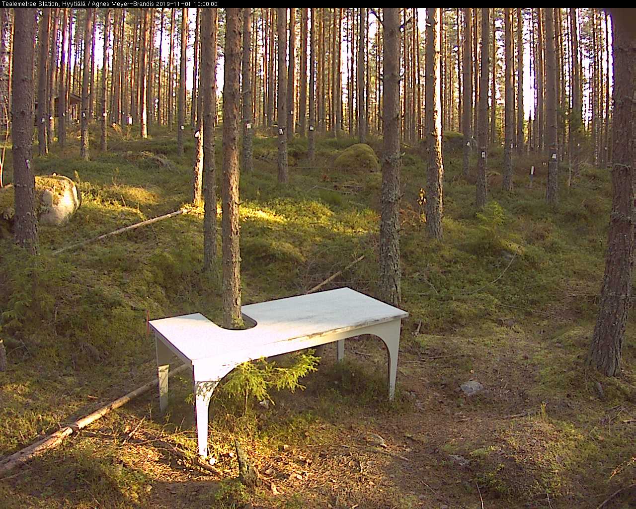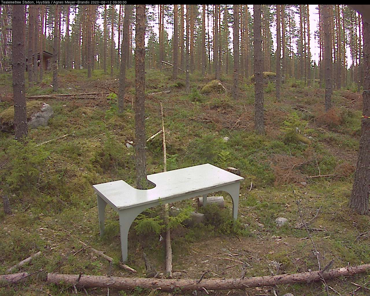 Agnes Meyer-Brandiksen työ Hyytiälässä alkoi tutustumalla aseman muihin tutkijoihin. Pystyäkseen tapaamaan ihmisiä metsässä, hän rakensi pöydän, josta muodostui kohtauspiste ja paikka teehetkille Agneksen ja puun kanssa.