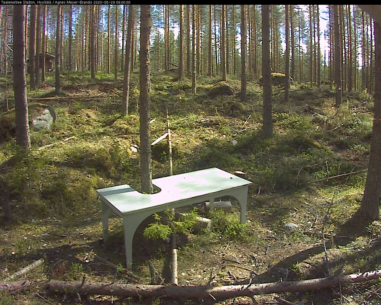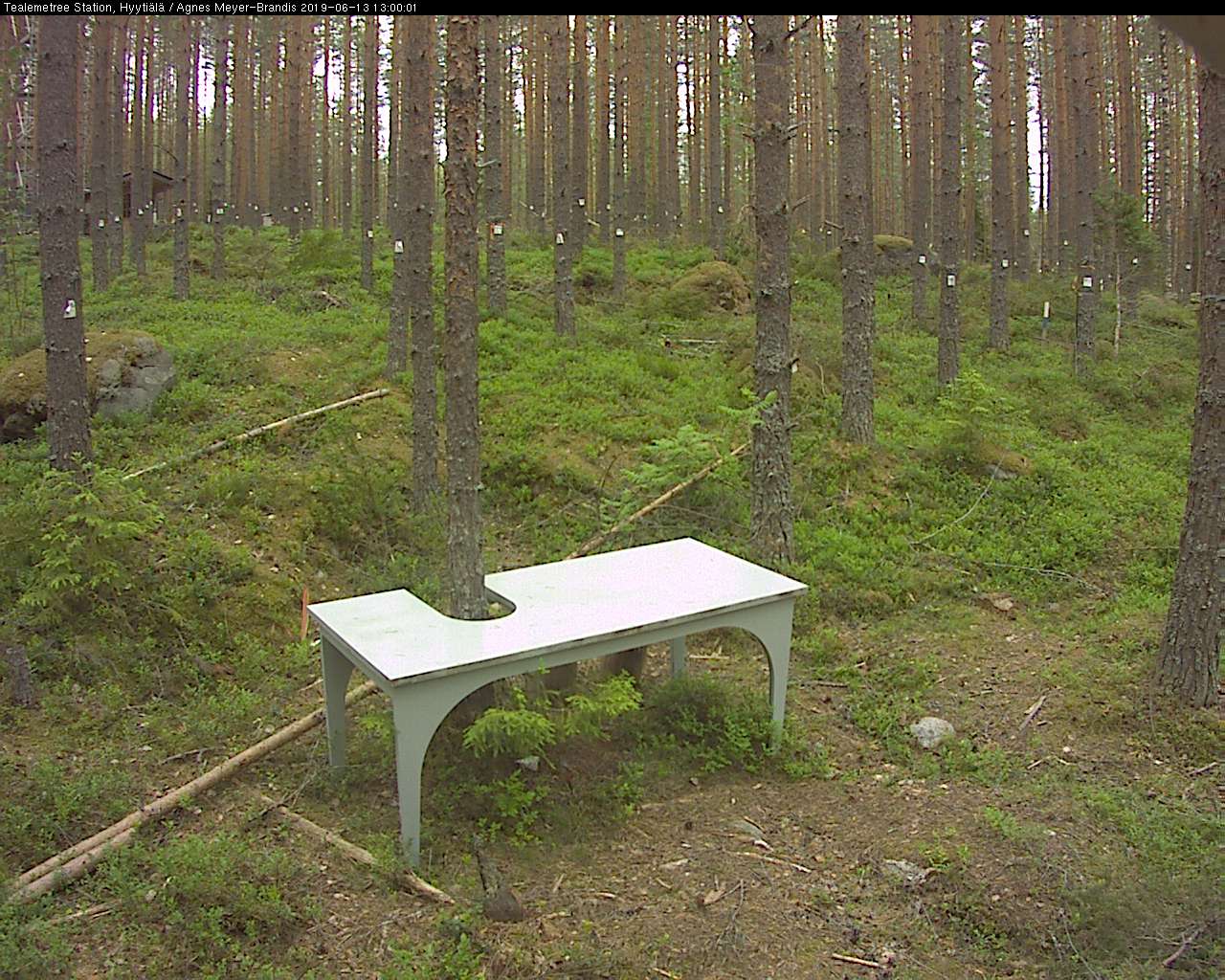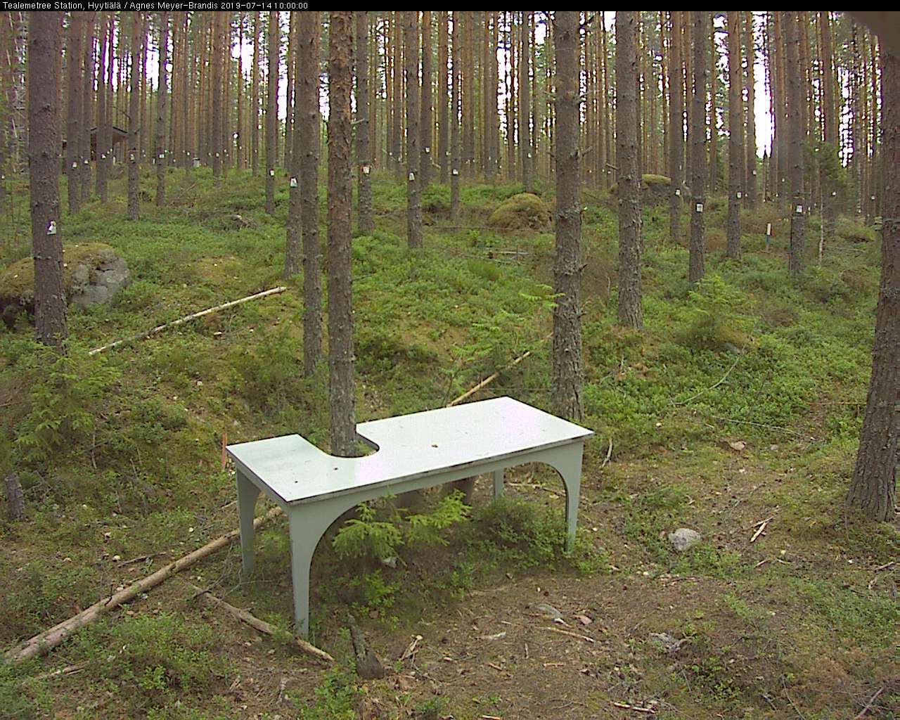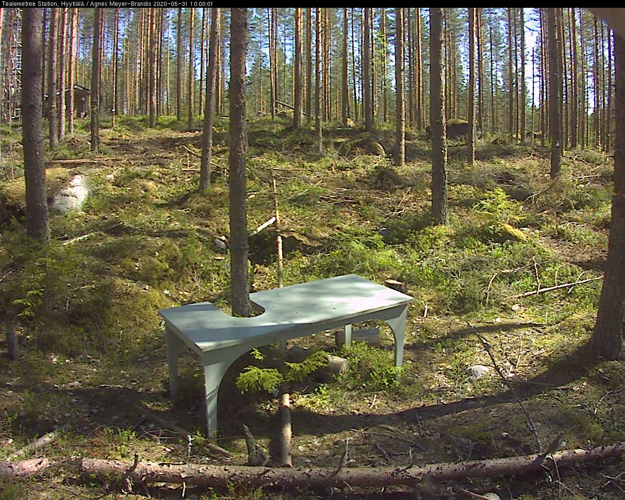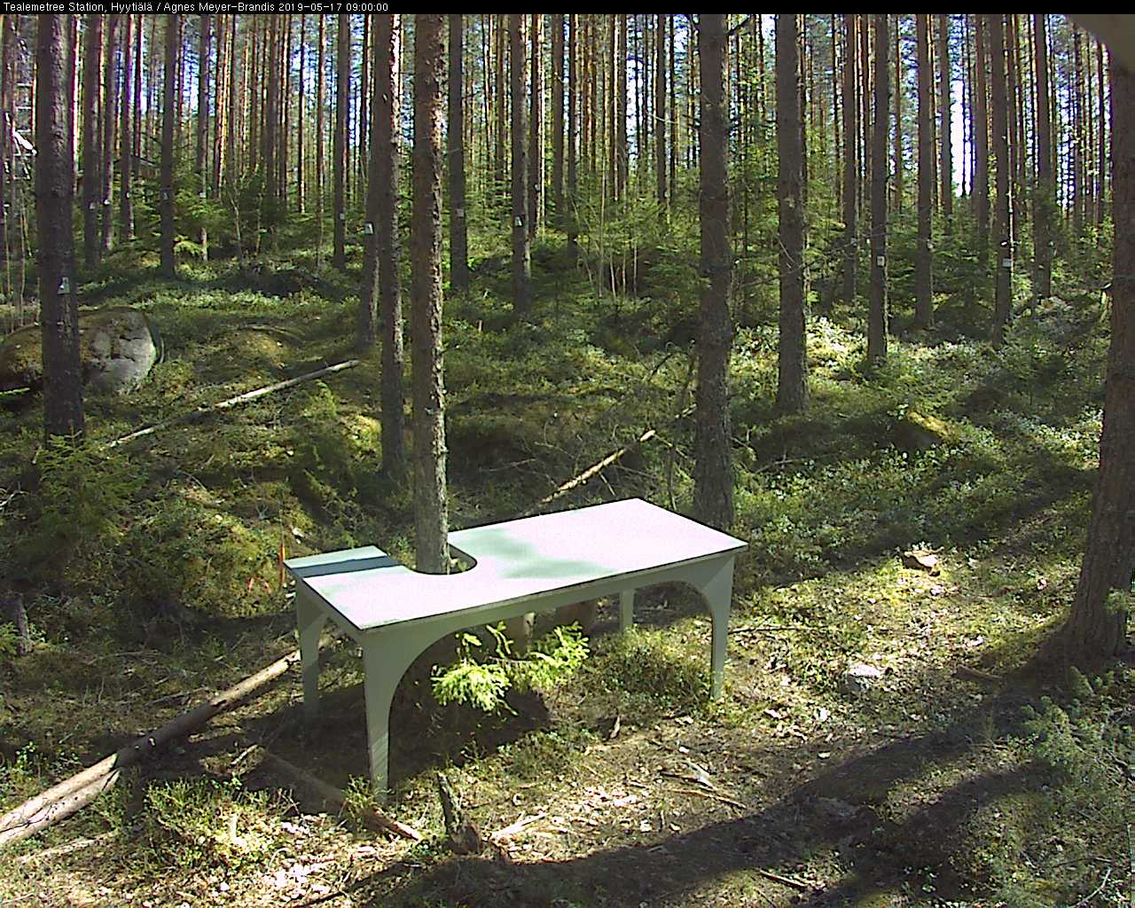 Agnes Meyer-Brandiksen työ Hyytiälässä alkoi tutustumalla aseman muihin tutkijoihin. Pystyäkseen tapaamaan ihmisiä metsässä, hän rakensi pöydän, josta muodostui kohtauspiste ja paikka teehetkille Agneksen ja puun kanssa.