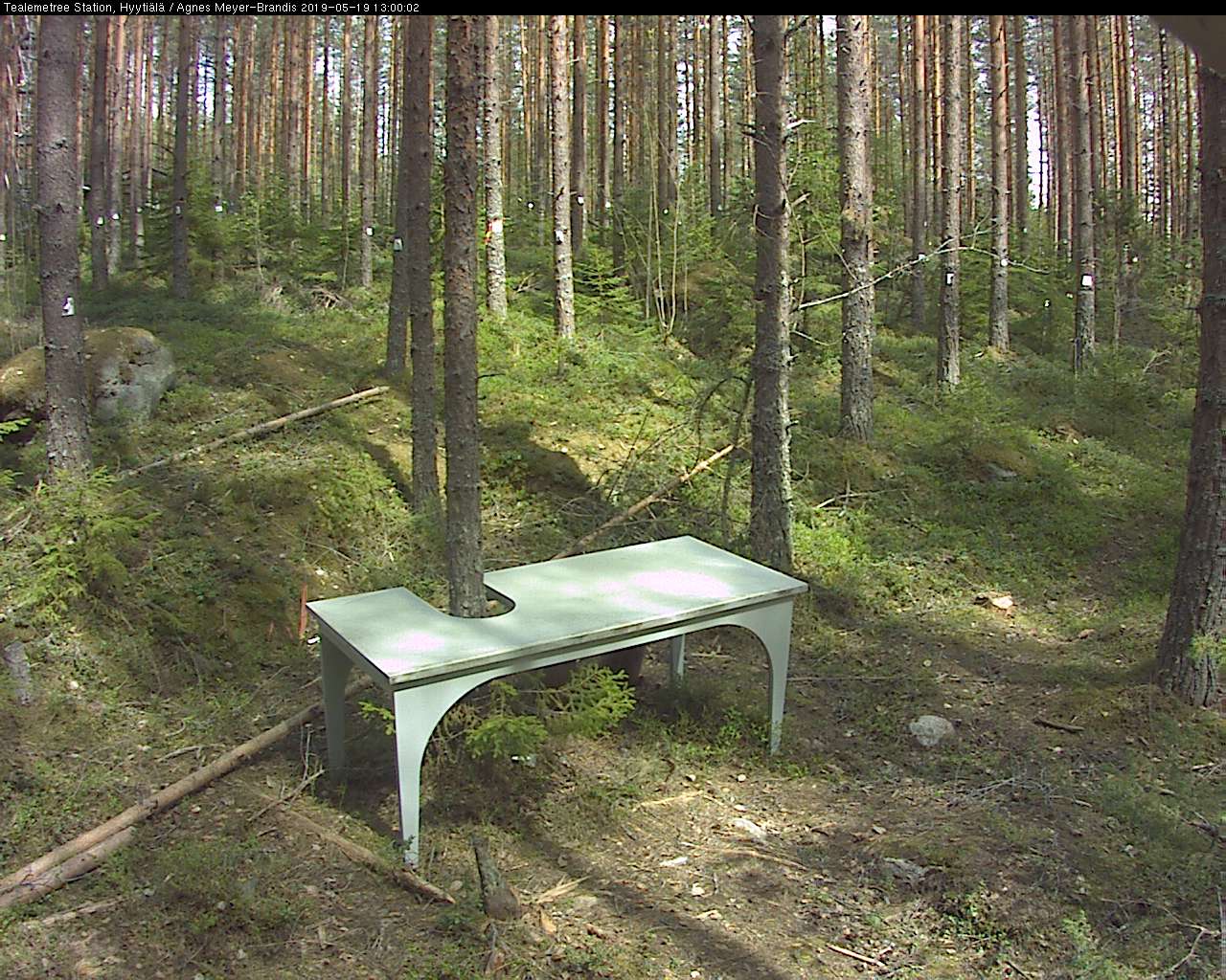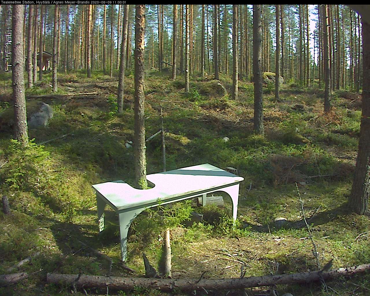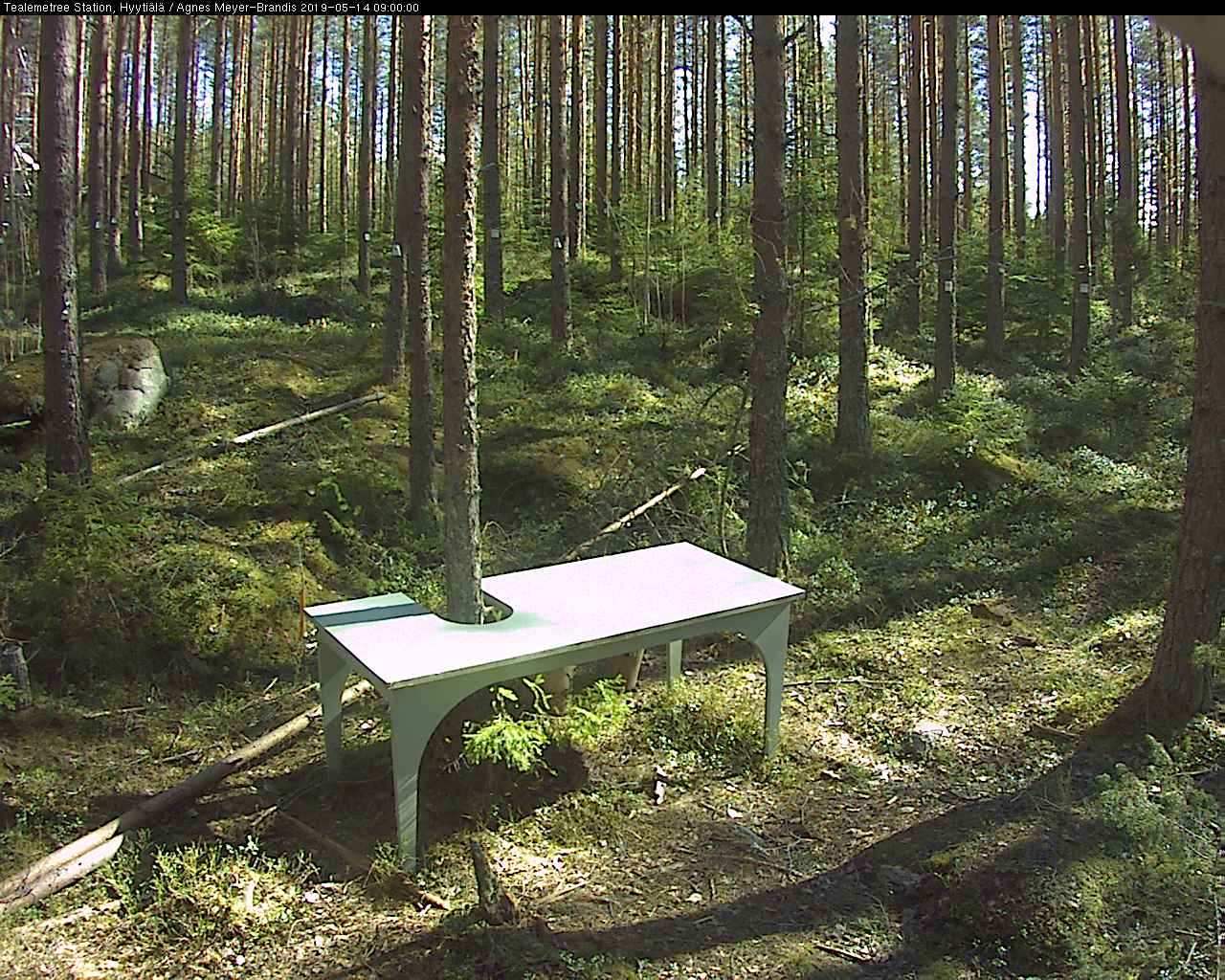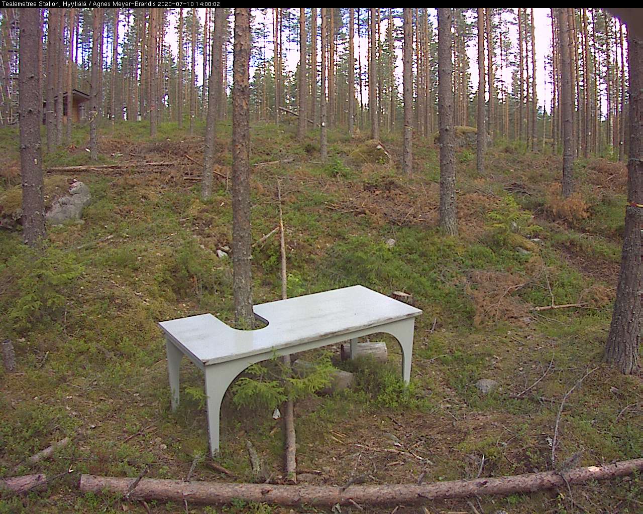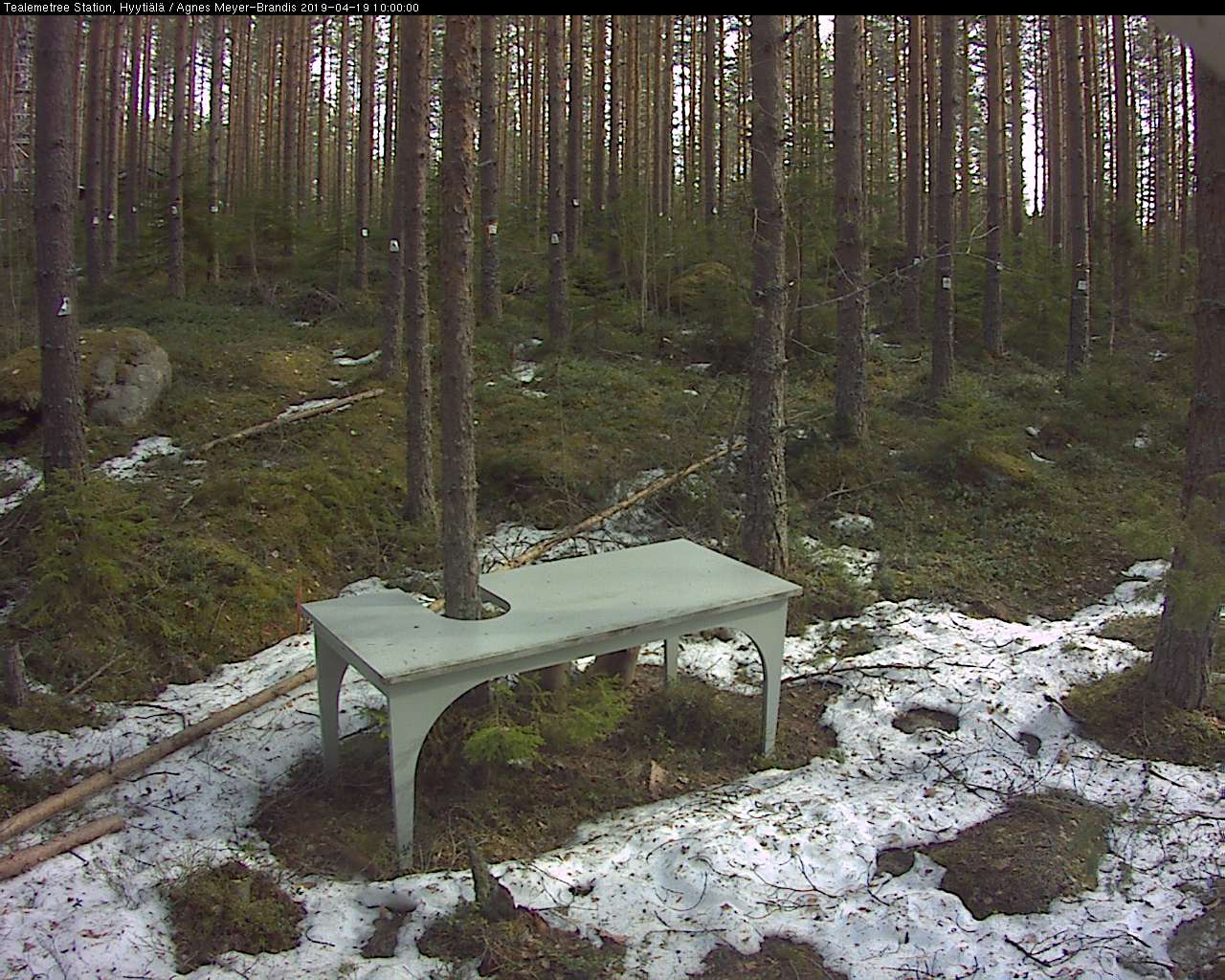 Agnes Meyer-Brandiksen työ Hyytiälässä alkoi tutustumalla aseman muihin tutkijoihin. Pystyäkseen tapaamaan ihmisiä metsässä, hän rakensi pöydän, josta muodostui kohtauspiste ja paikka teehetkille Agneksen ja puun kanssa.