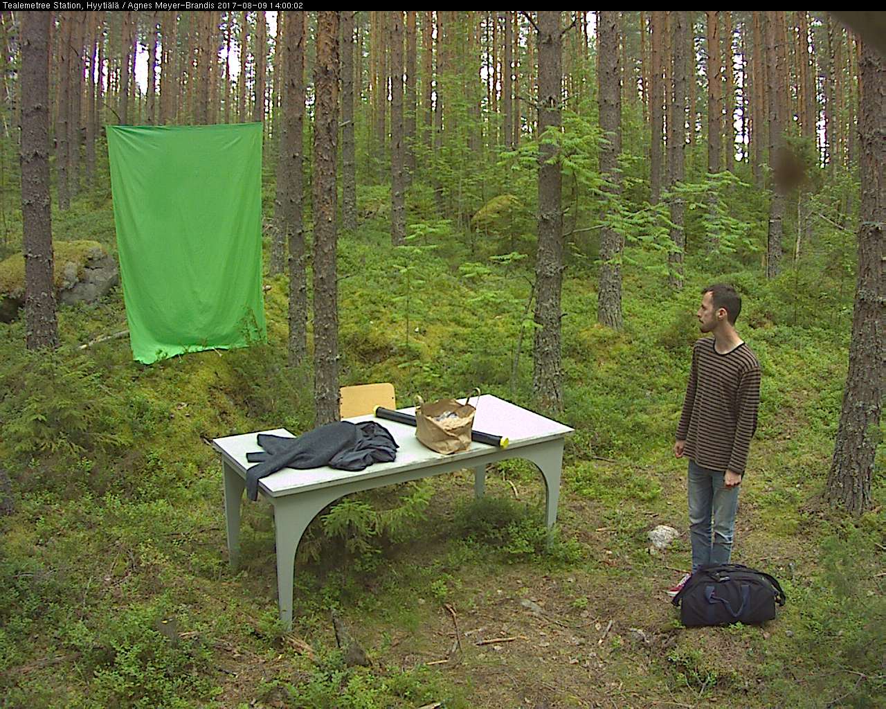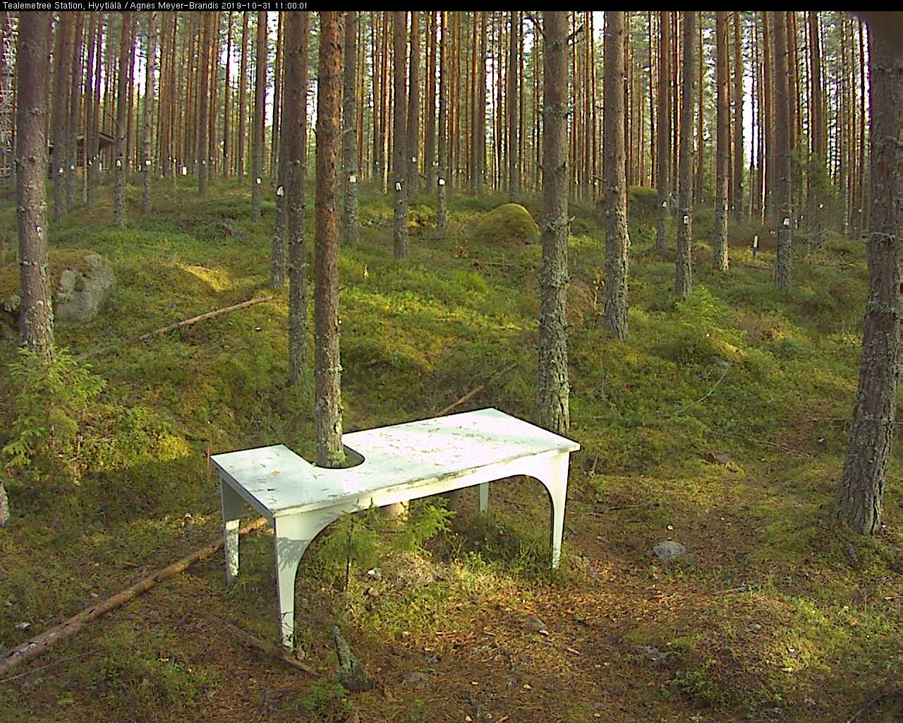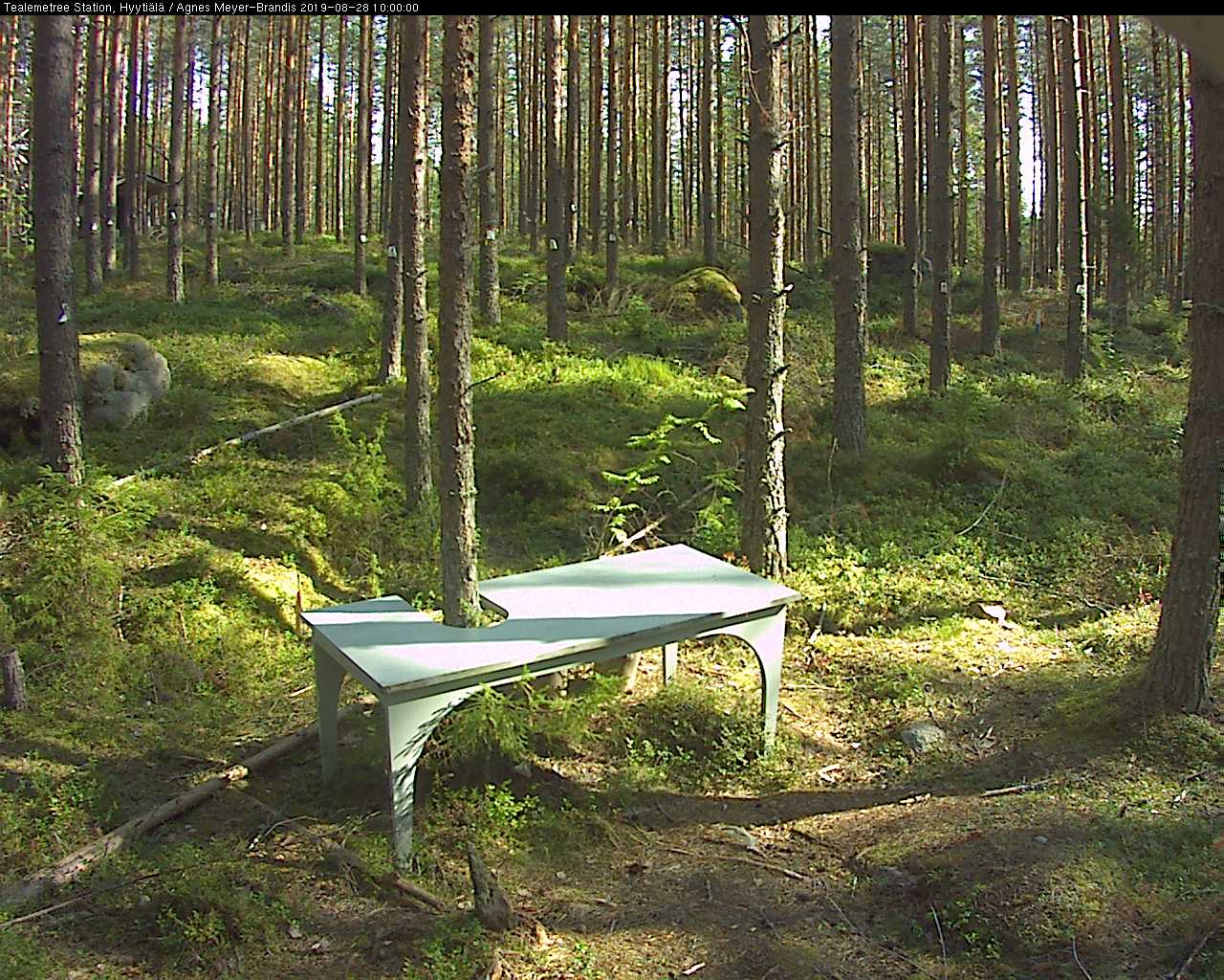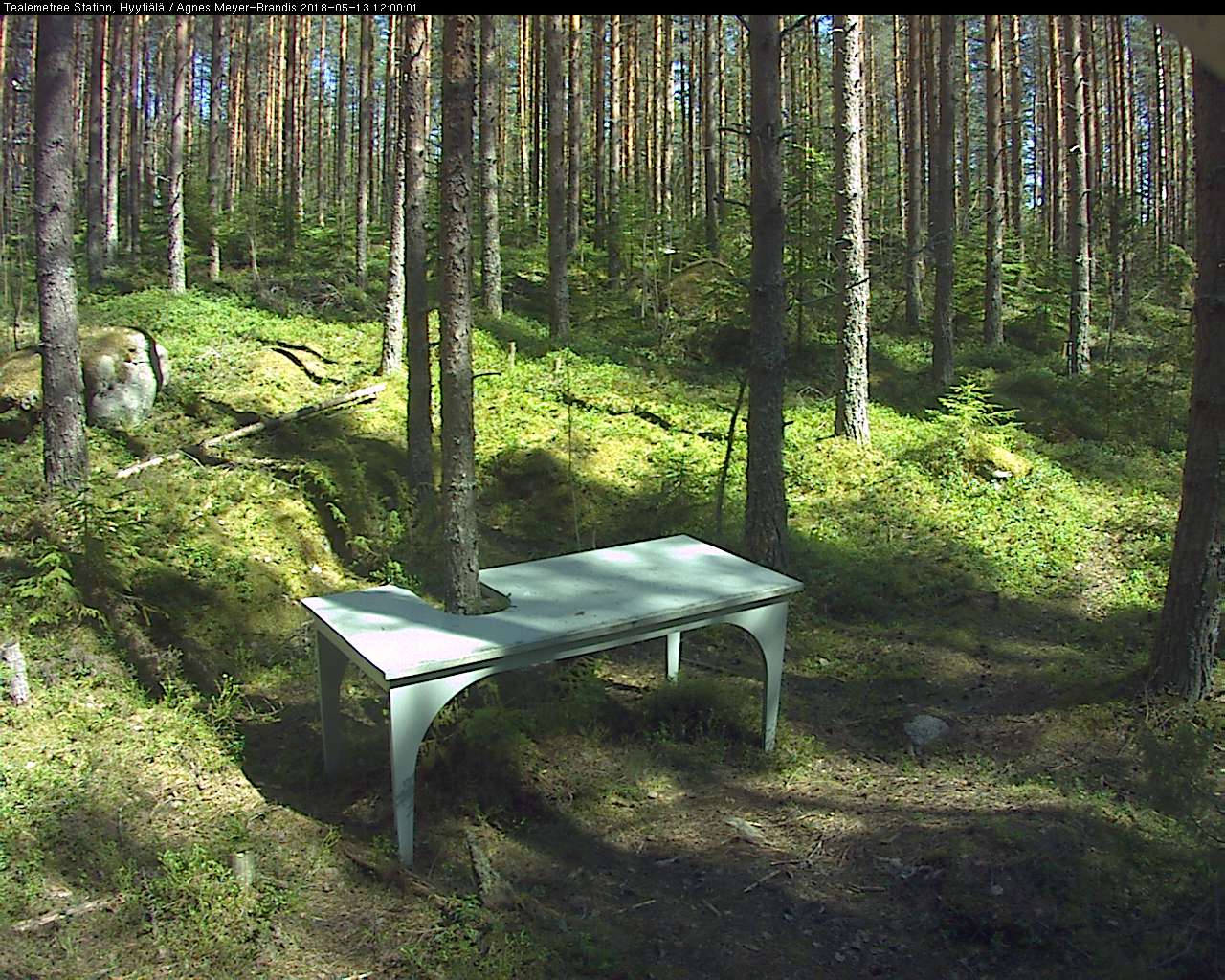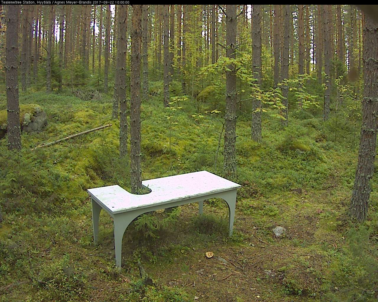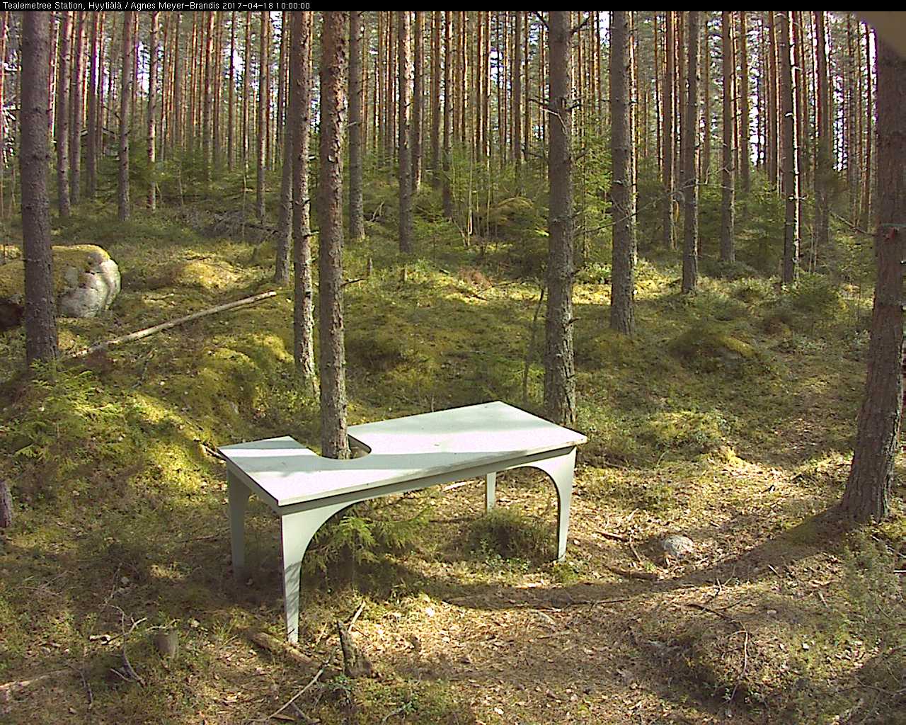 Agnes Meyer-Brandiksen työ Hyytiälässä alkoi tutustumalla aseman muihin tutkijoihin. Pystyäkseen tapaamaan ihmisiä metsässä, hän rakensi pöydän, josta muodostui kohtauspiste ja paikka teehetkille Agneksen ja puun kanssa.