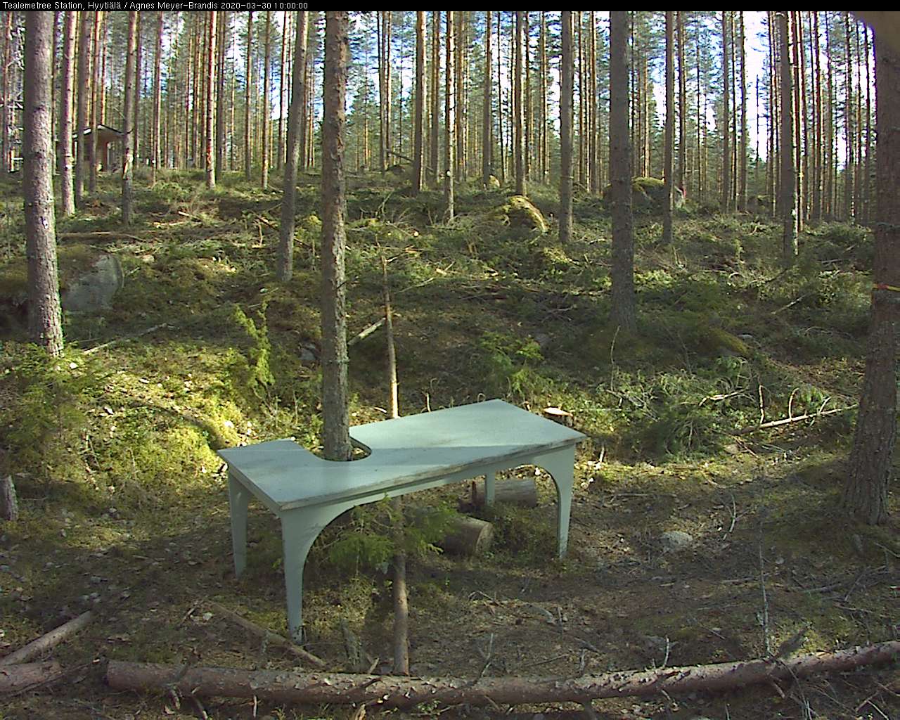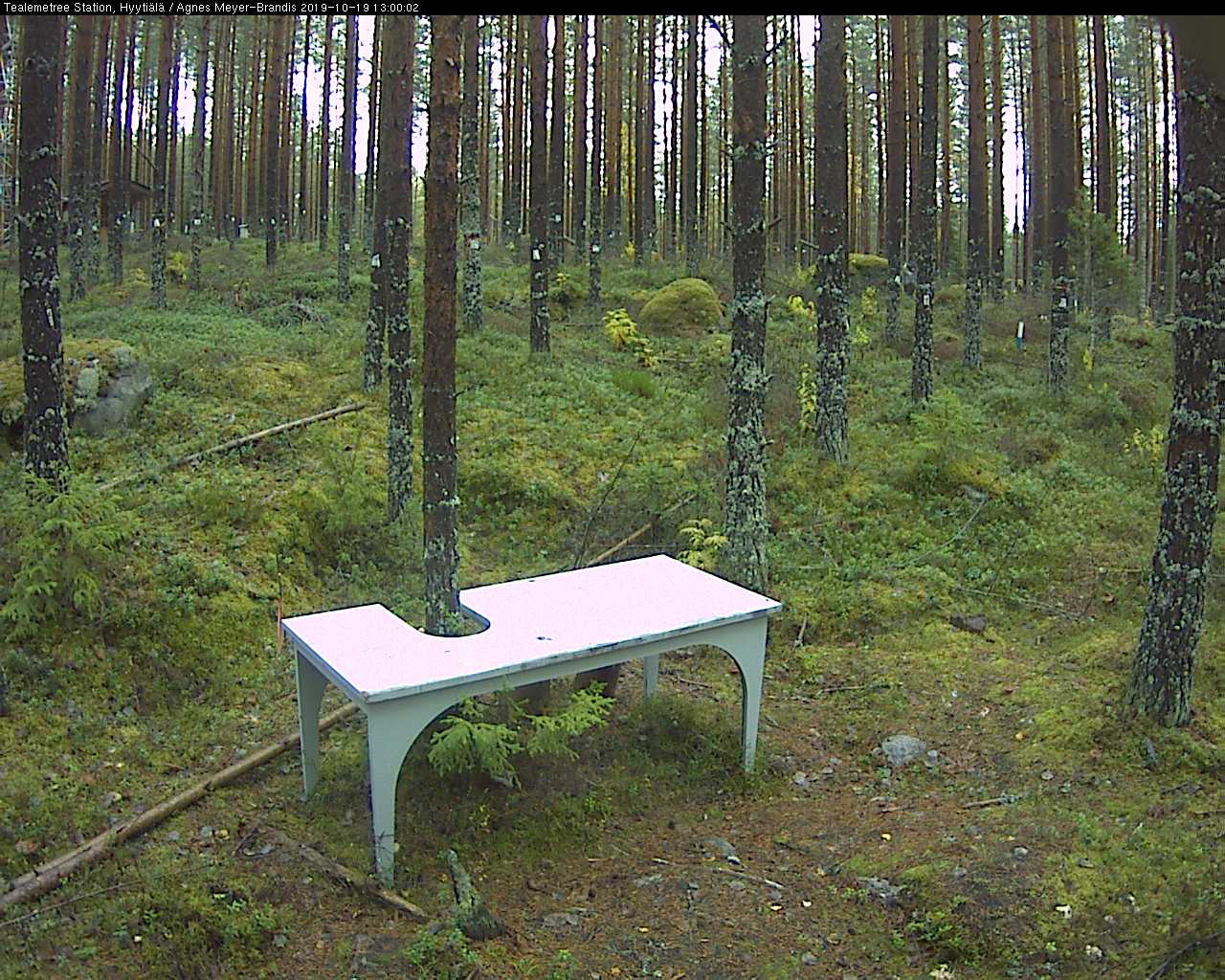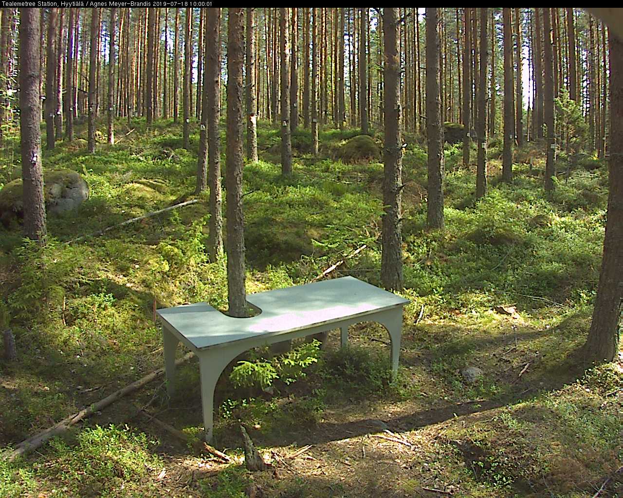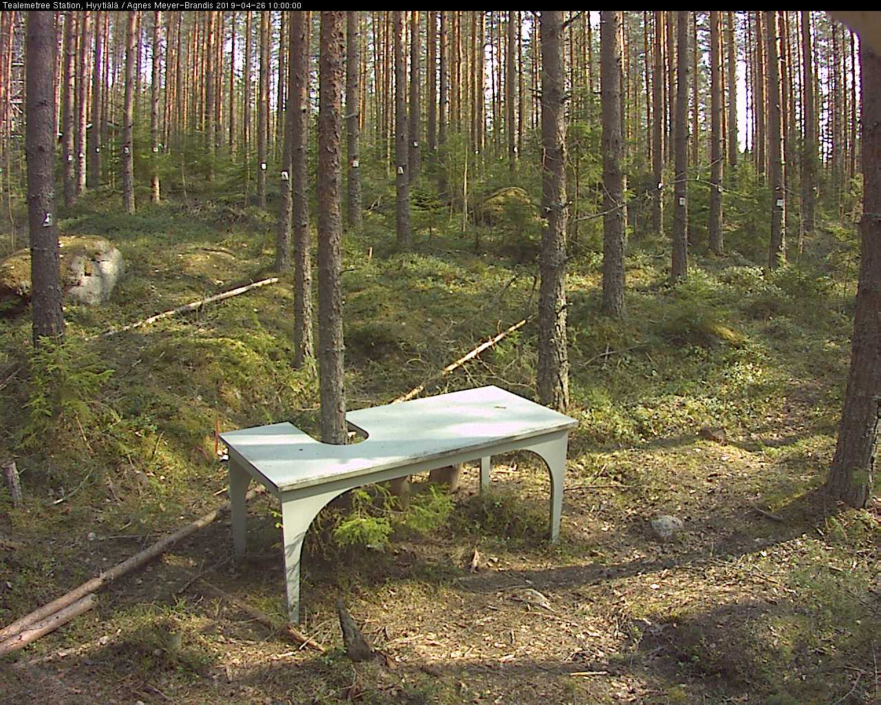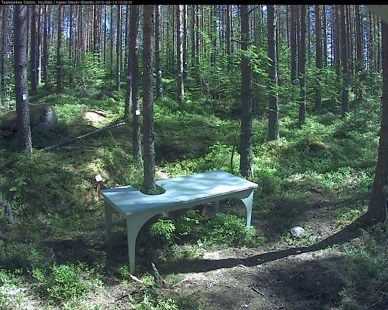 Agnes Meyer-Brandiksen työ Hyytiälässä alkoi tutustumalla aseman muihin tutkijoihin. Pystyäkseen tapaamaan ihmisiä metsässä, hän rakensi pöydän, josta muodostui kohtauspiste ja paikka teehetkille Agneksen ja puun kanssa.