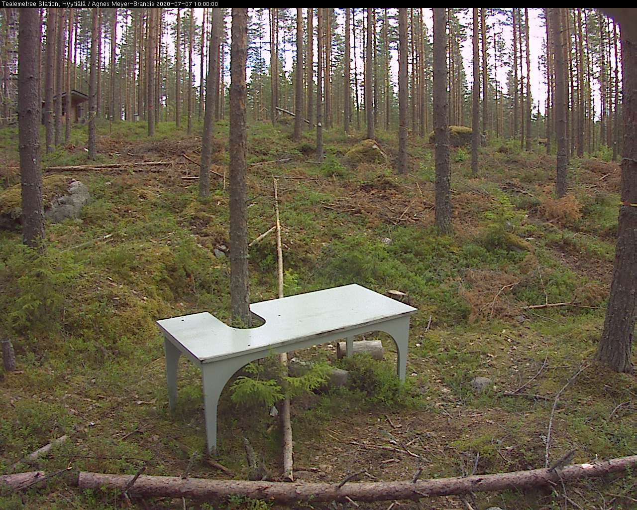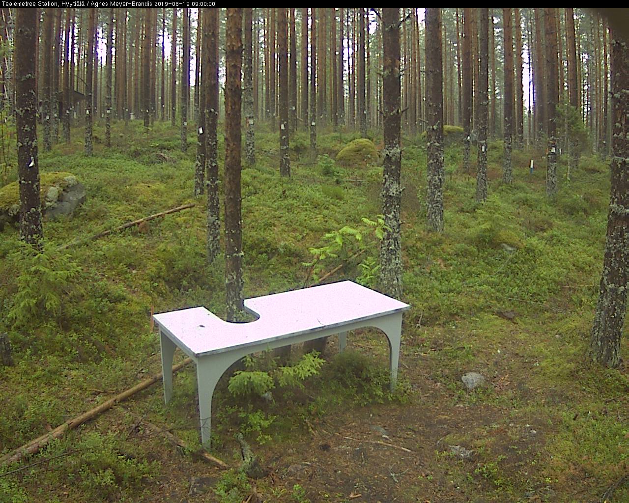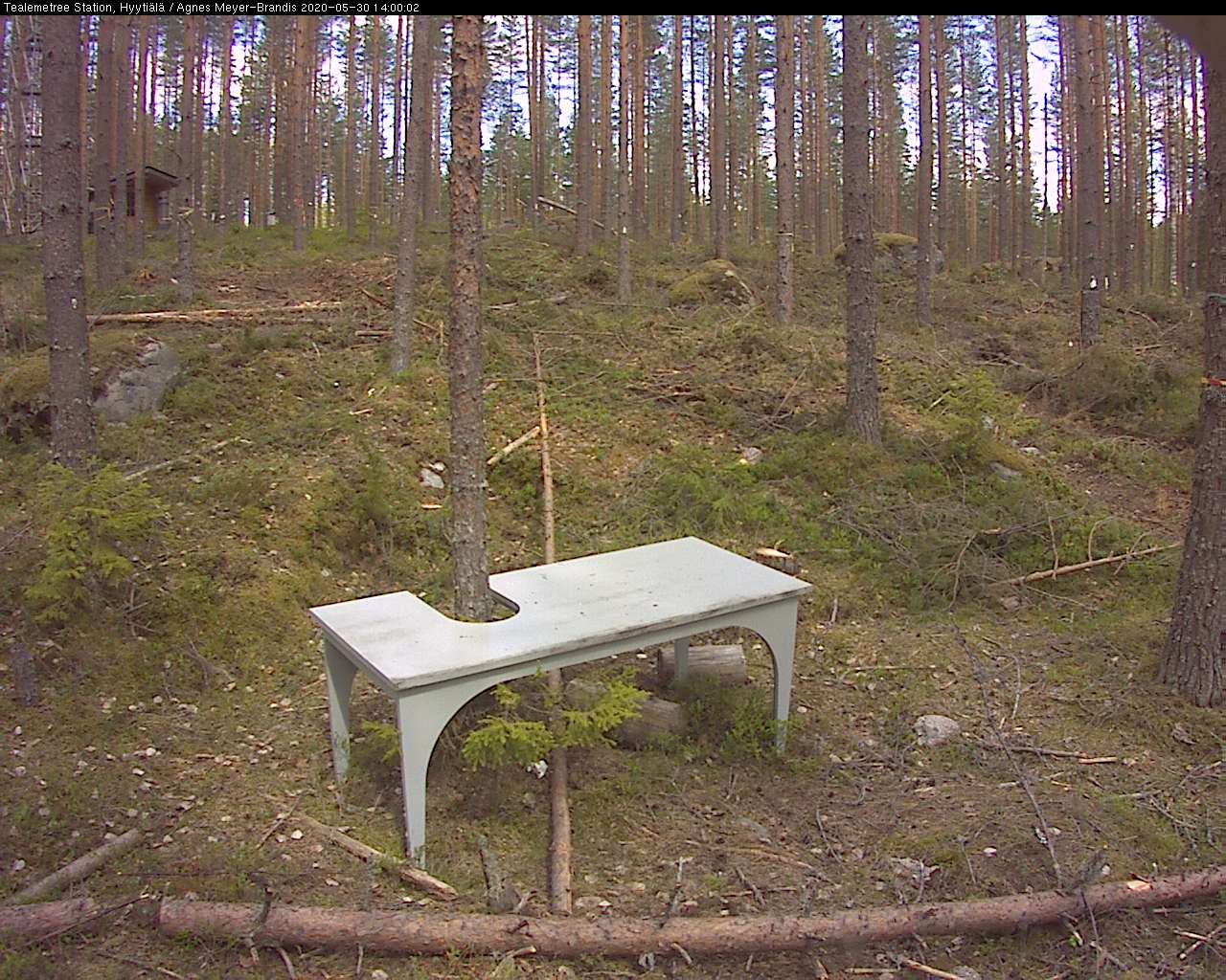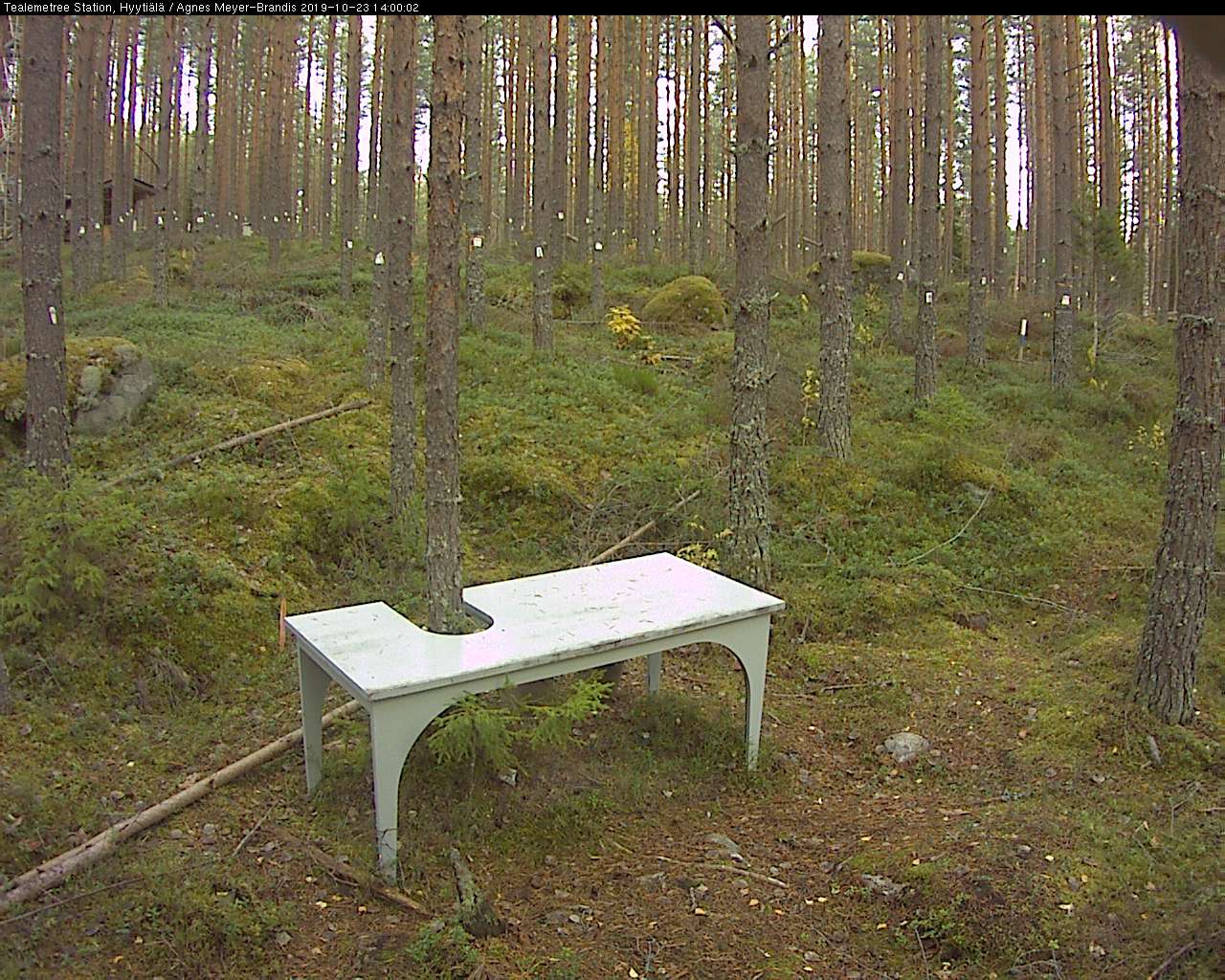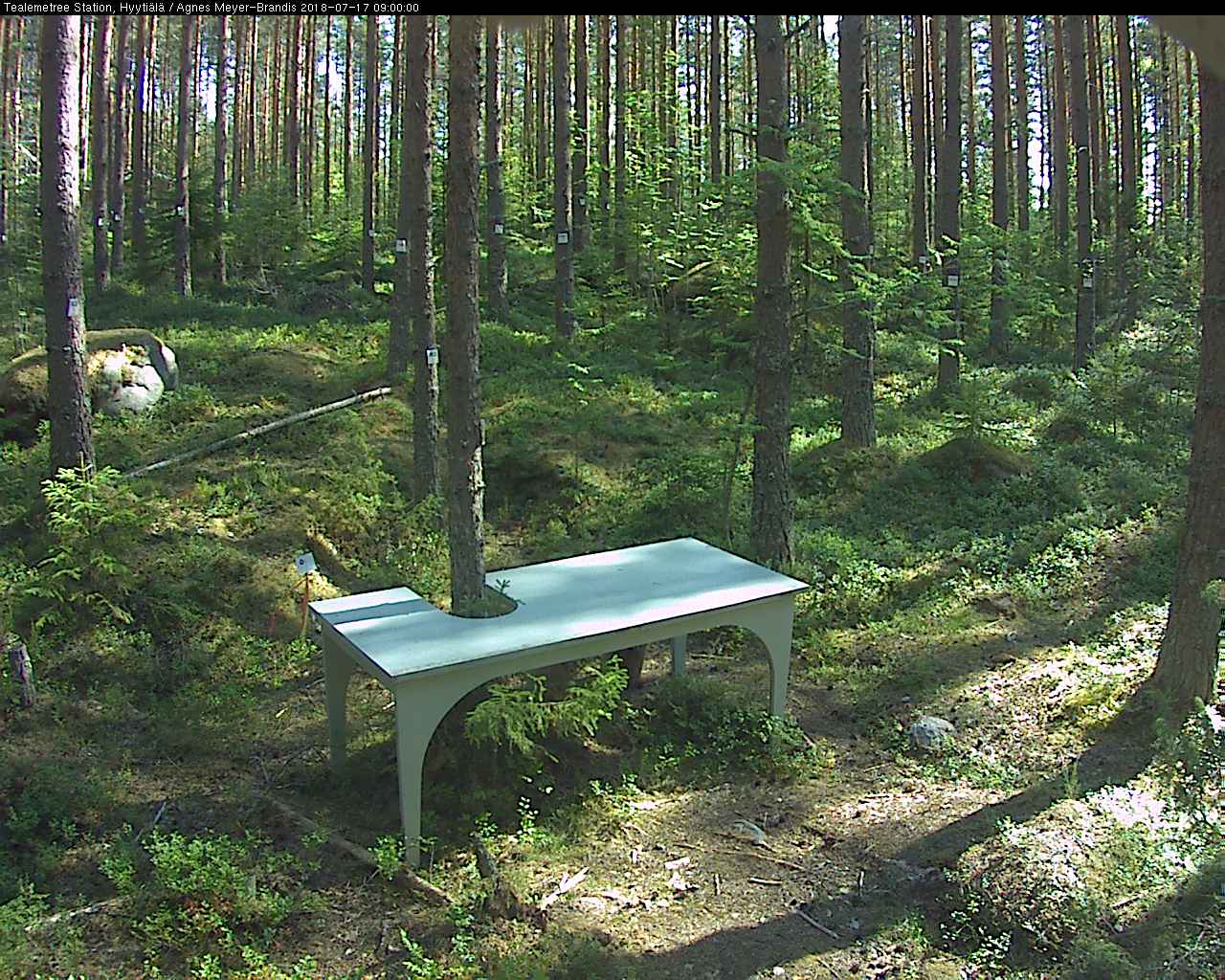 Agnes Meyer-Brandiksen työ Hyytiälässä alkoi tutustumalla aseman muihin tutkijoihin. Pystyäkseen tapaamaan ihmisiä metsässä, hän rakensi pöydän, josta muodostui kohtauspiste ja paikka teehetkille Agneksen ja puun kanssa.