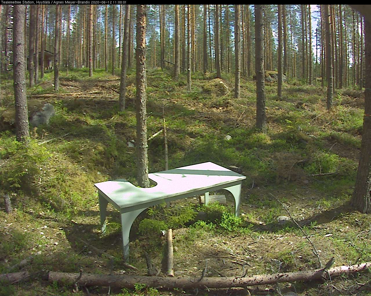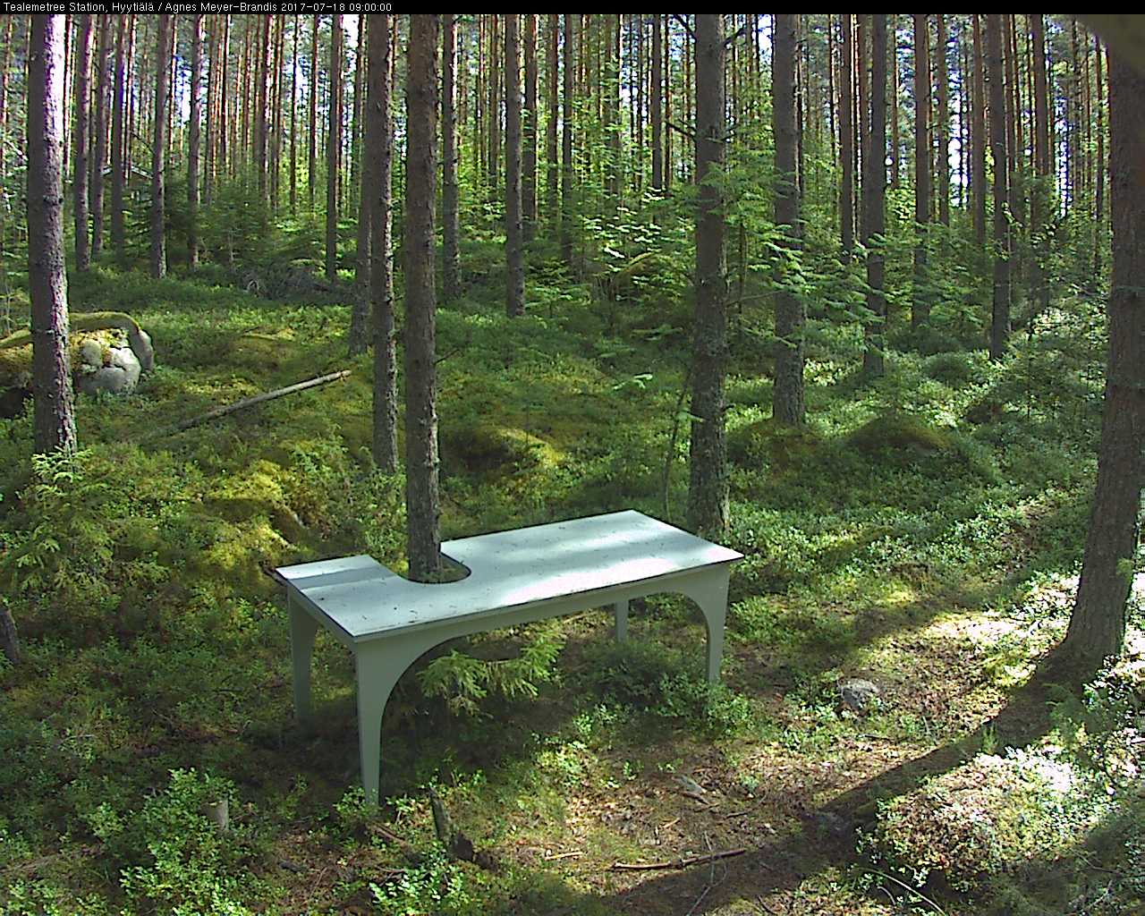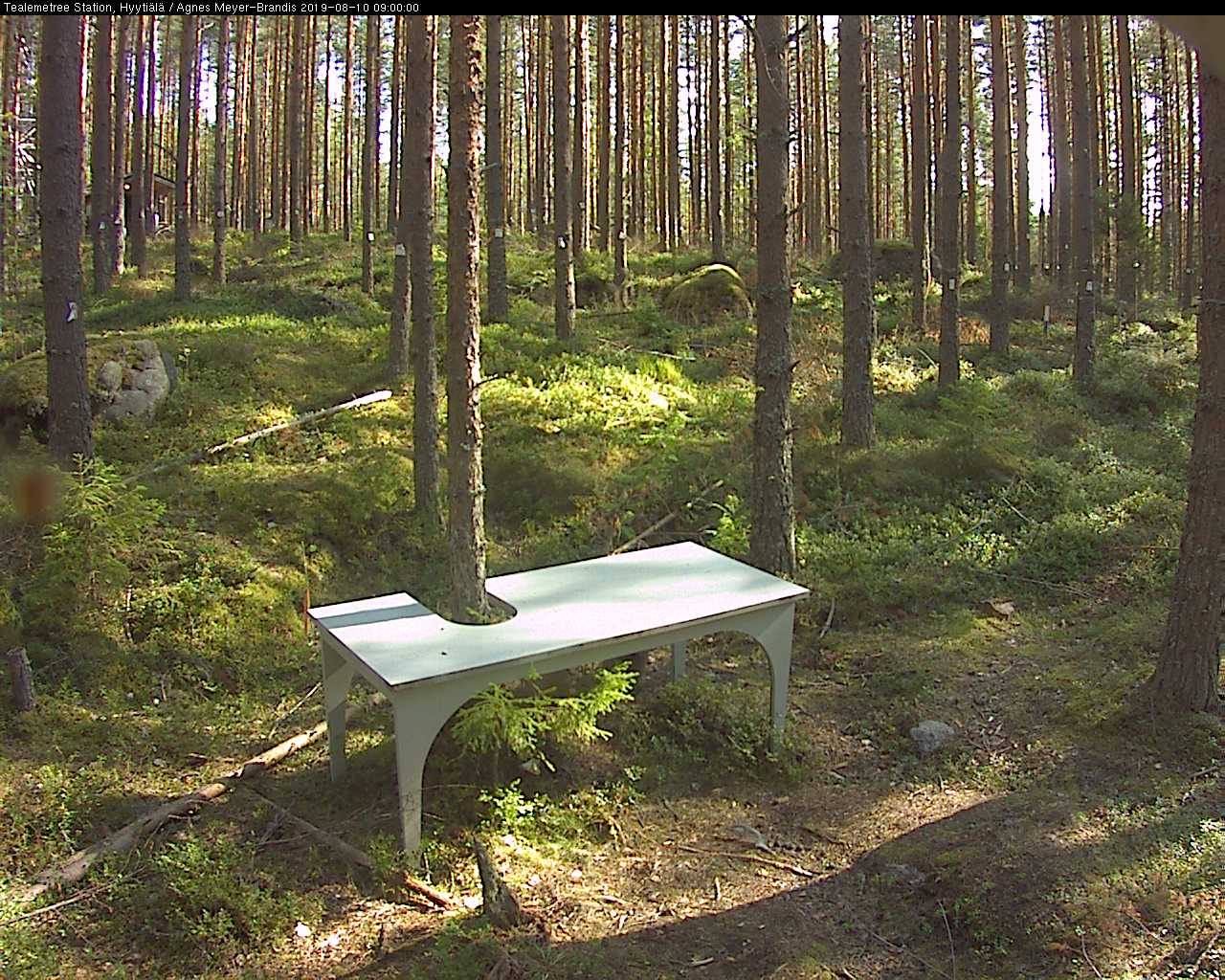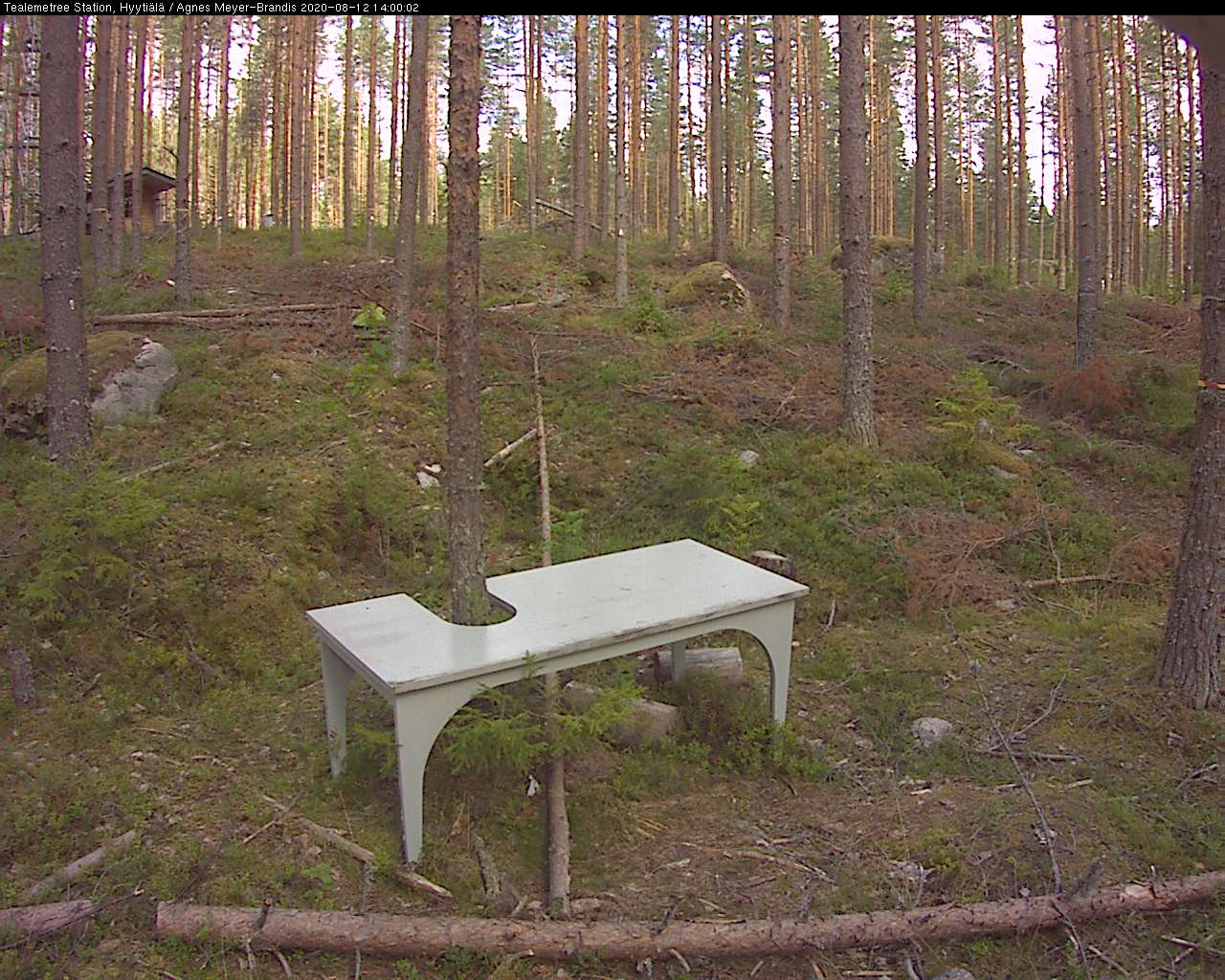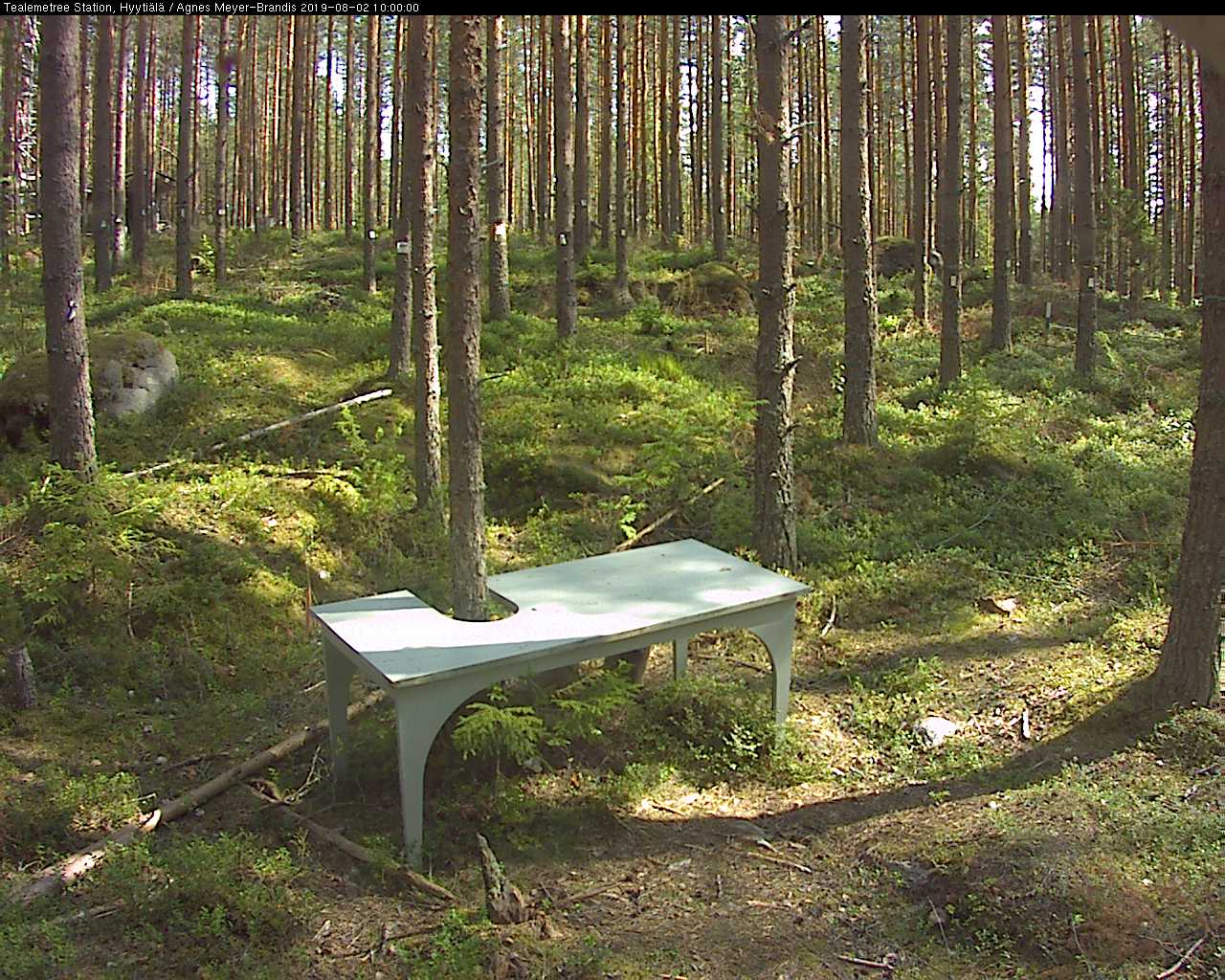 Agnes Meyer-Brandiksen työ Hyytiälässä alkoi tutustumalla aseman muihin tutkijoihin. Pystyäkseen tapaamaan ihmisiä metsässä, hän rakensi pöydän, josta muodostui kohtauspiste ja paikka teehetkille Agneksen ja puun kanssa.