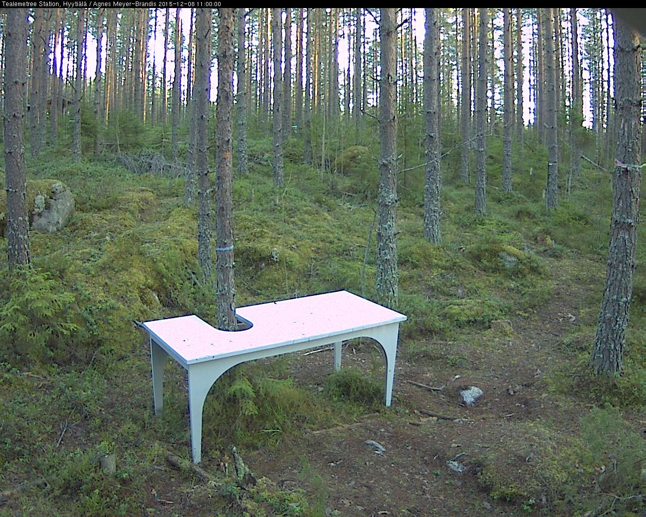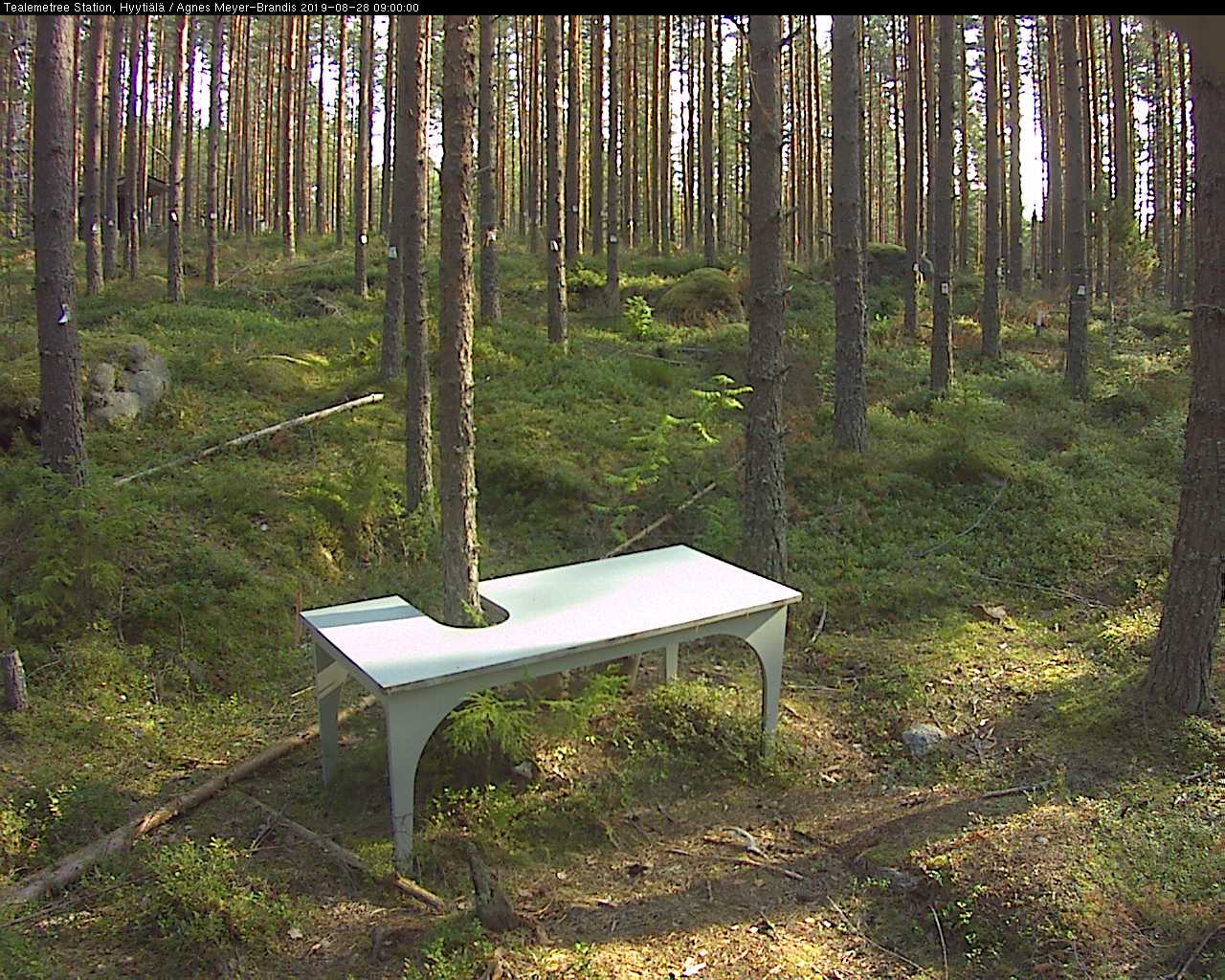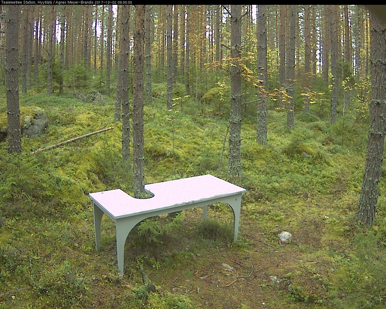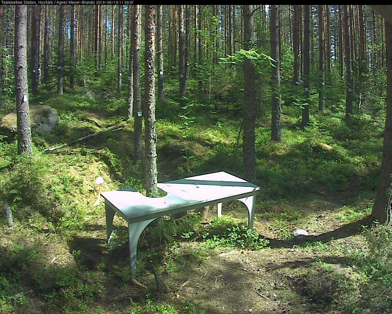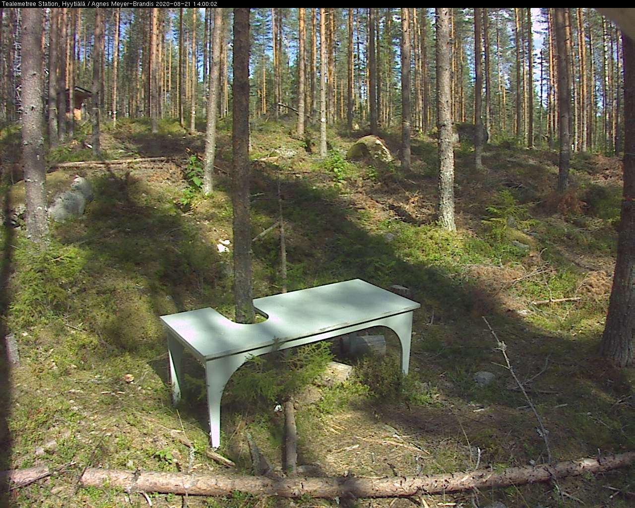 Agnes Meyer-Brandiksen työ Hyytiälässä alkoi tutustumalla aseman muihin tutkijoihin. Pystyäkseen tapaamaan ihmisiä metsässä, hän rakensi pöydän, josta muodostui kohtauspiste ja paikka teehetkille Agneksen ja puun kanssa.