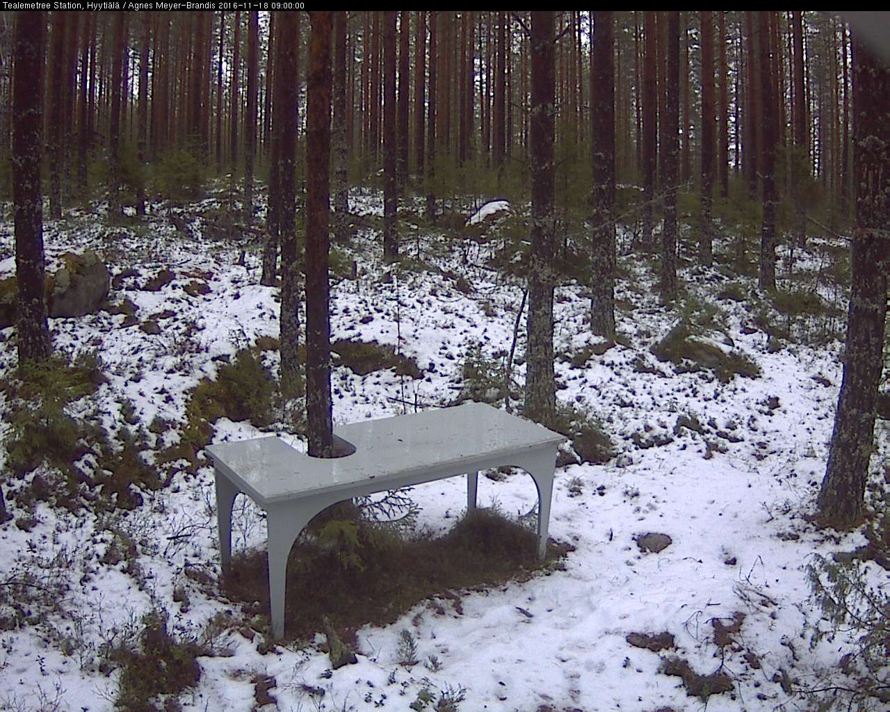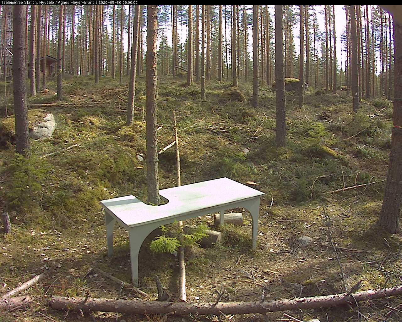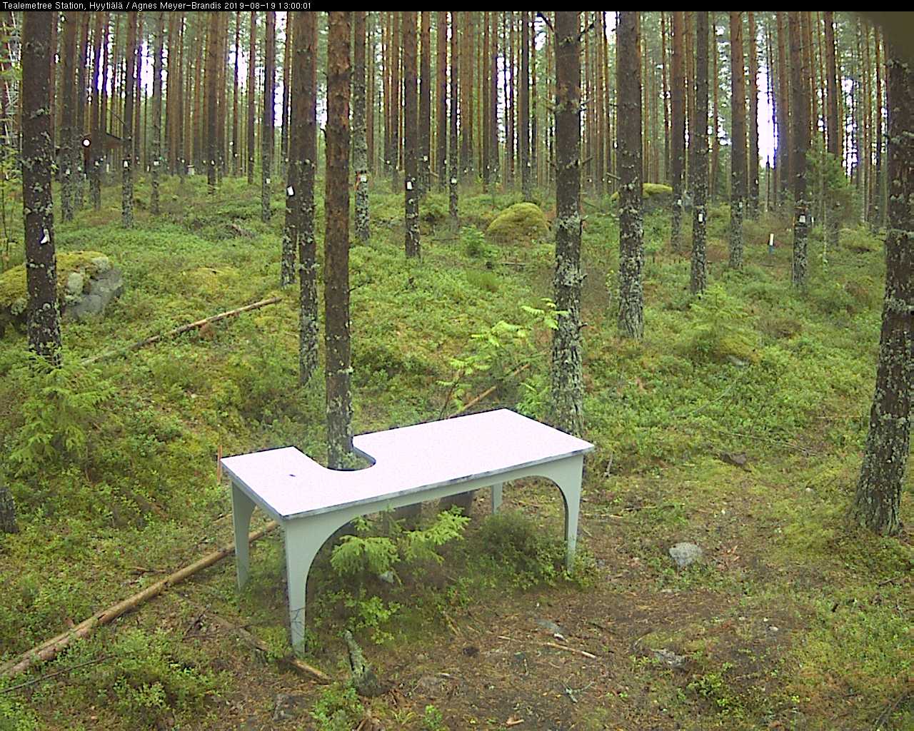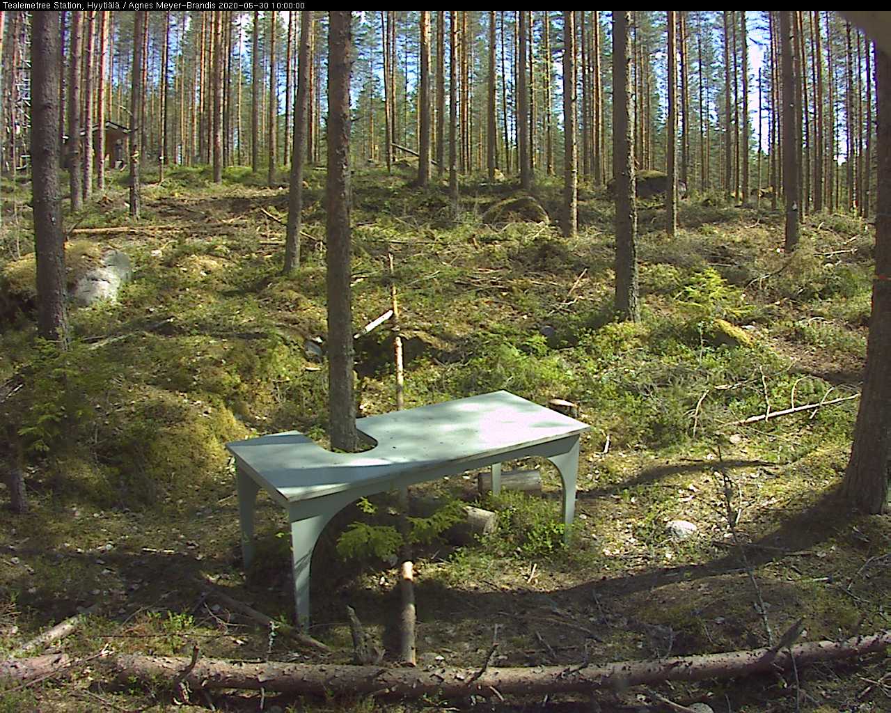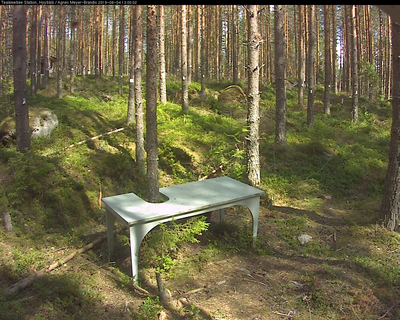 Agnes Meyer-Brandiksen työ Hyytiälässä alkoi tutustumalla aseman muihin tutkijoihin. Pystyäkseen tapaamaan ihmisiä metsässä, hän rakensi pöydän, josta muodostui kohtauspiste ja paikka teehetkille Agneksen ja puun kanssa.