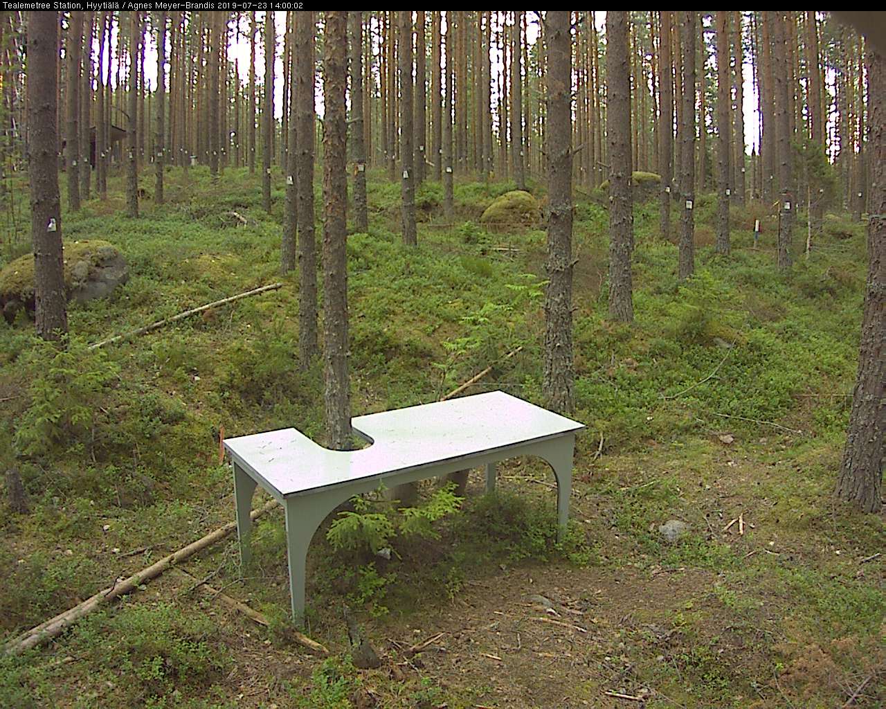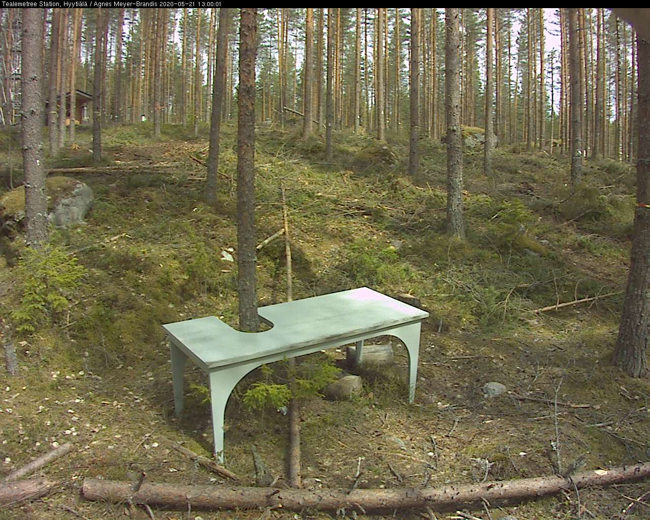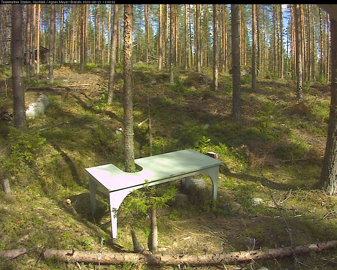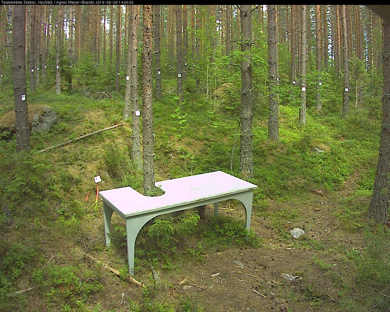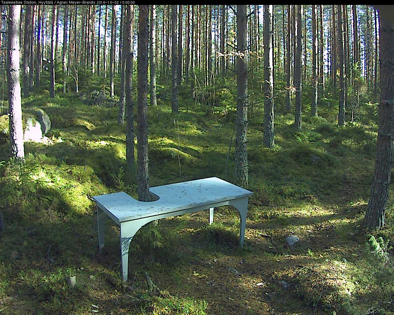 Agnes Meyer-Brandiksen työ Hyytiälässä alkoi tutustumalla aseman muihin tutkijoihin. Pystyäkseen tapaamaan ihmisiä metsässä, hän rakensi pöydän, josta muodostui kohtauspiste ja paikka teehetkille Agneksen ja puun kanssa.