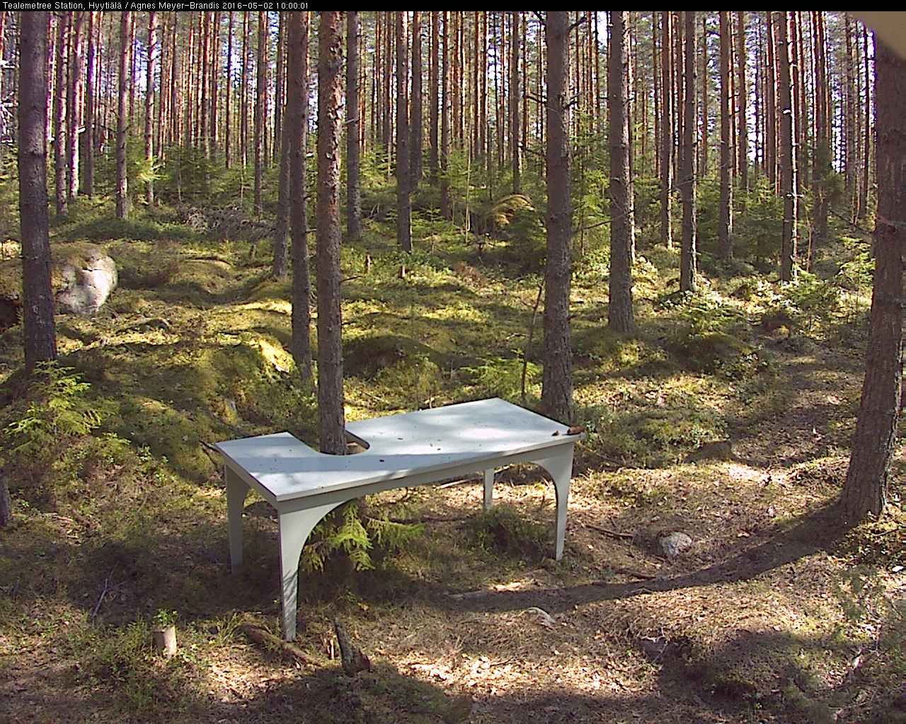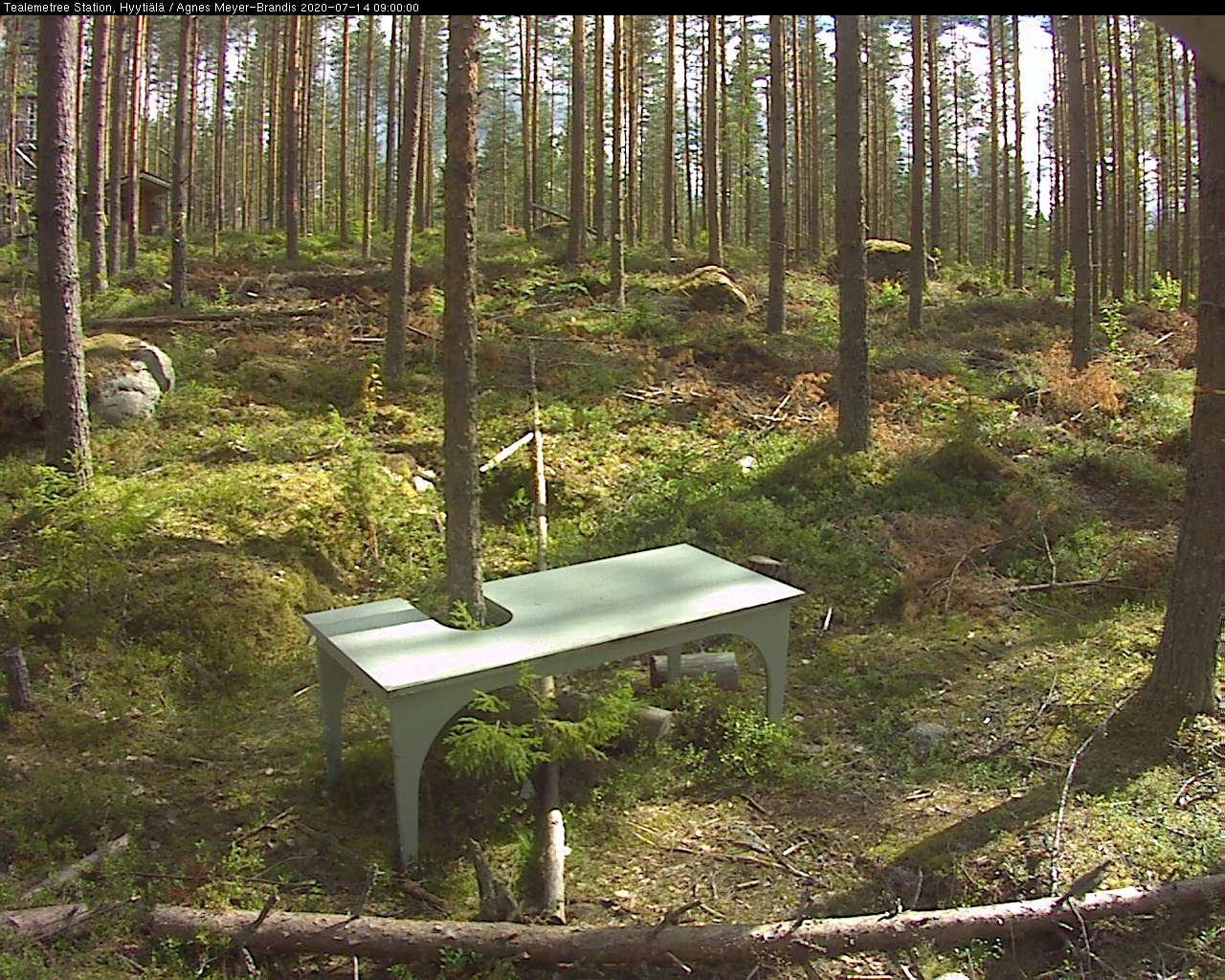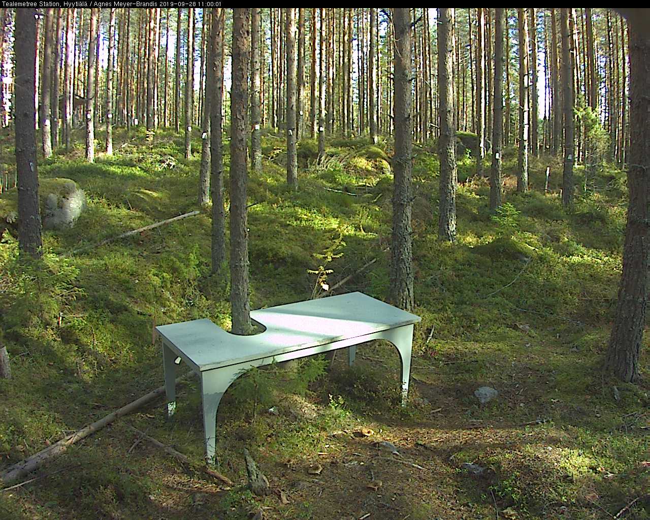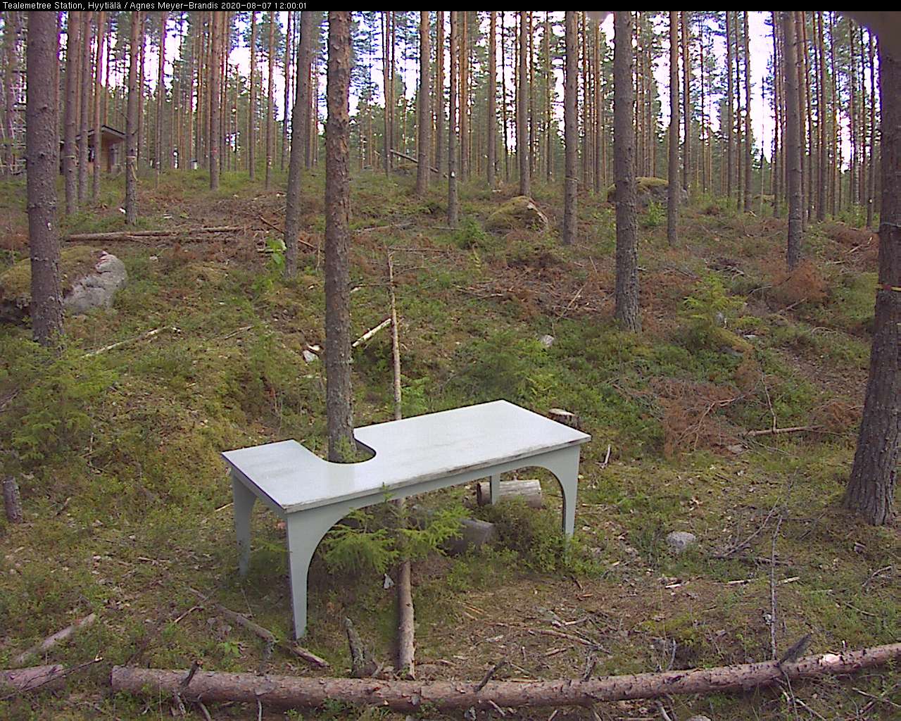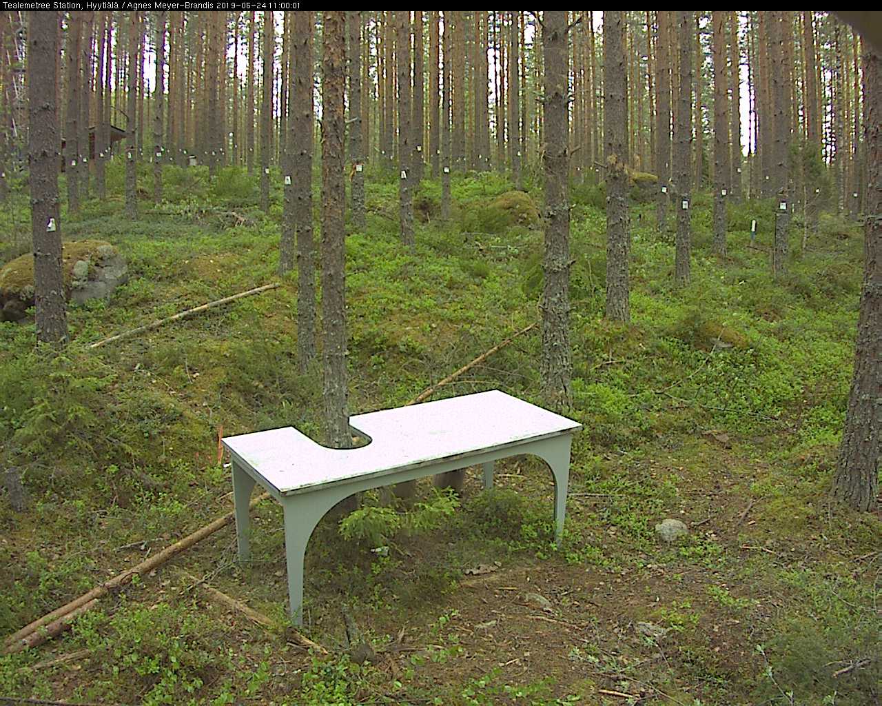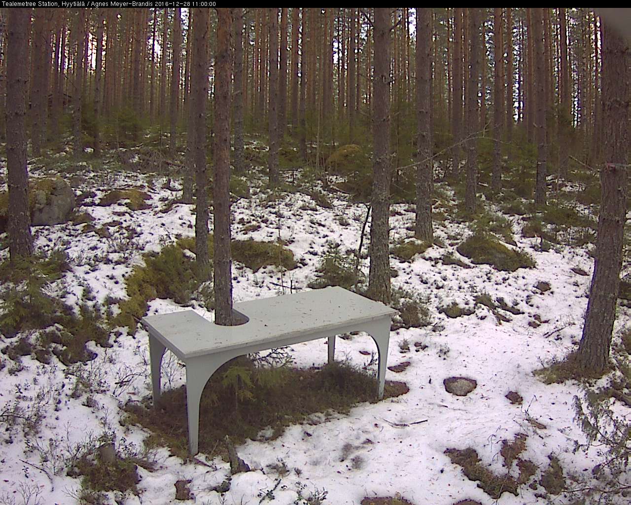 Agnes Meyer-Brandiksen työ Hyytiälässä alkoi tutustumalla aseman muihin tutkijoihin. Pystyäkseen tapaamaan ihmisiä metsässä, hän rakensi pöydän, josta muodostui kohtauspiste ja paikka teehetkille Agneksen ja puun kanssa.