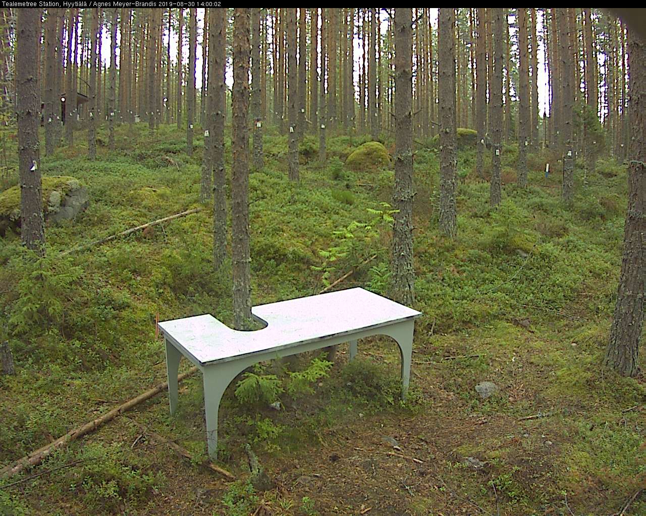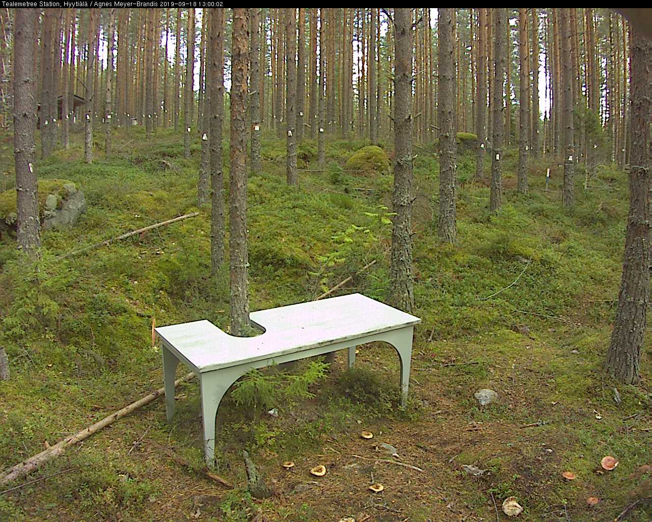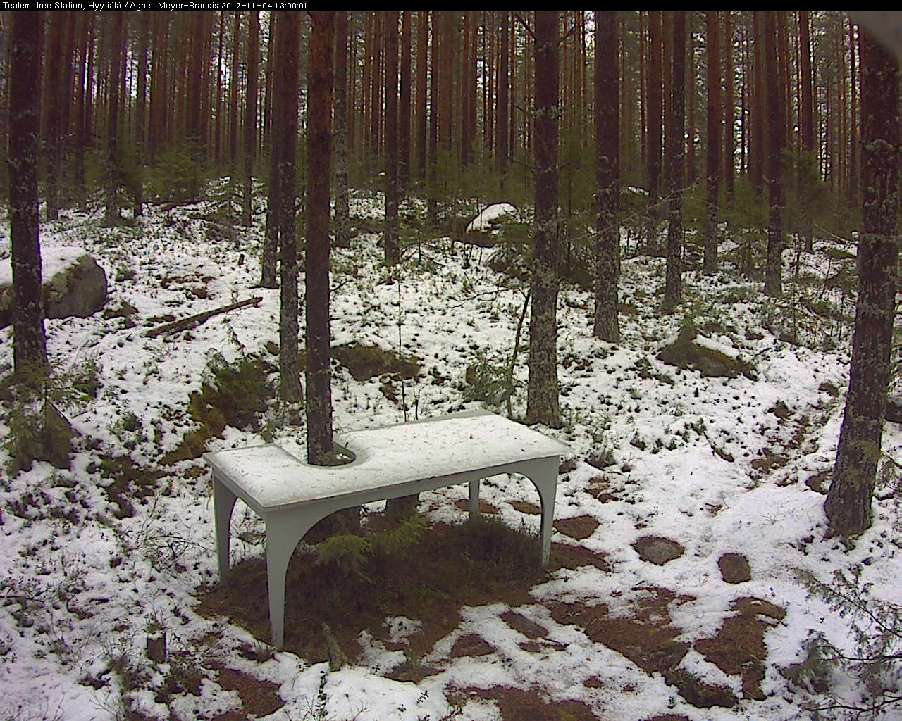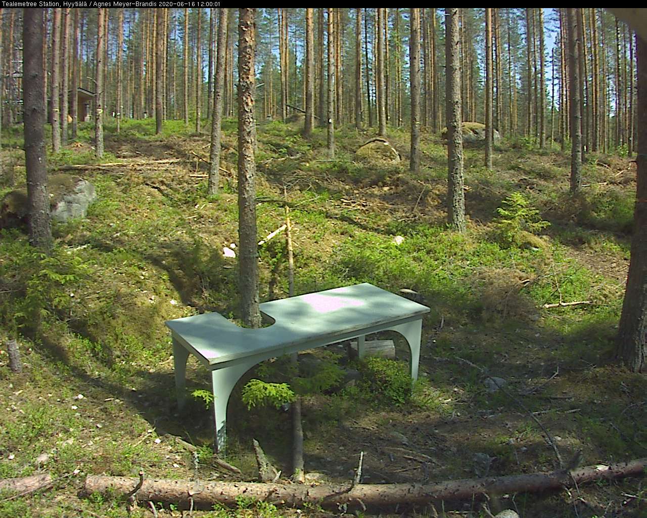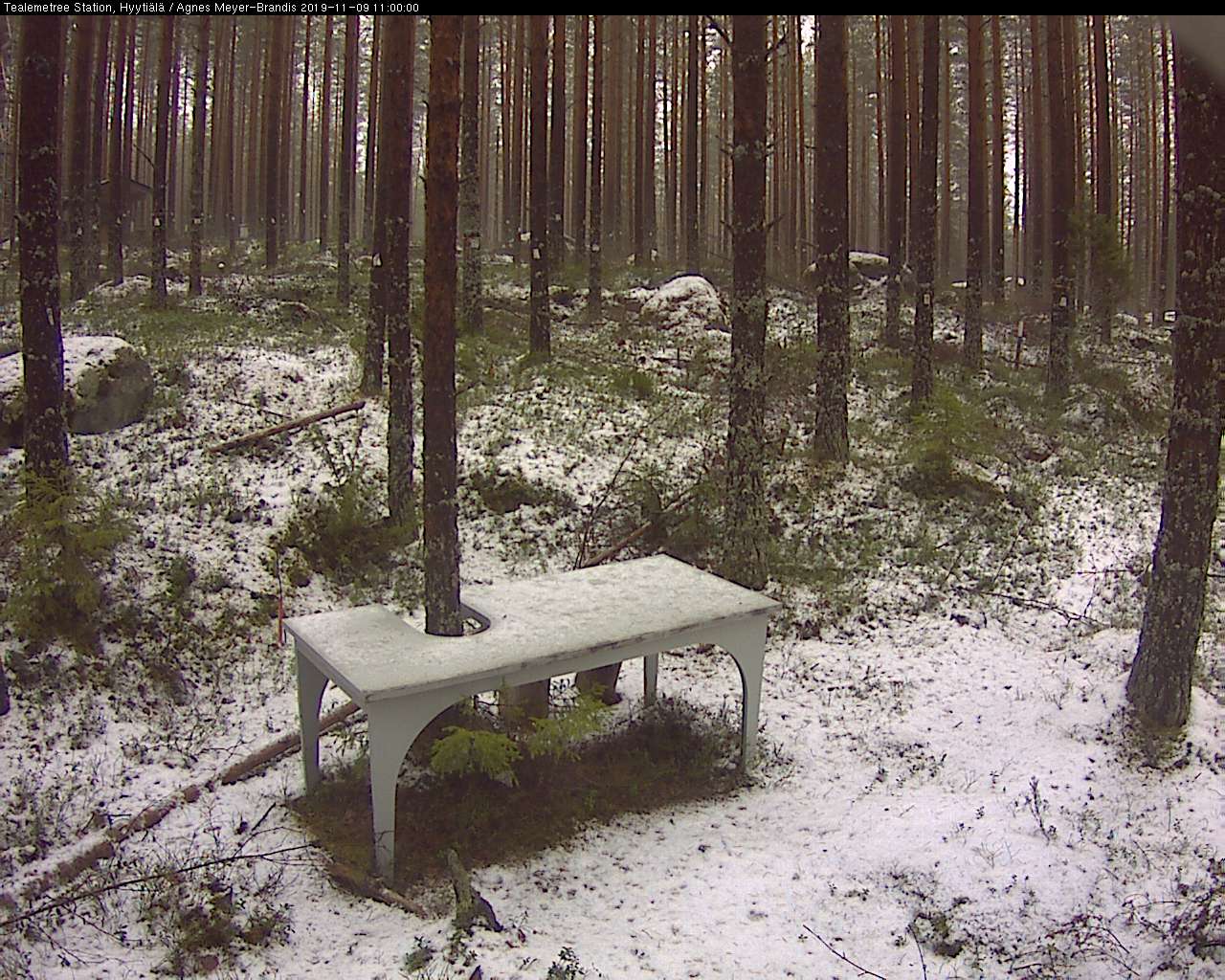 Agnes Meyer-Brandiksen työ Hyytiälässä alkoi tutustumalla aseman muihin tutkijoihin. Pystyäkseen tapaamaan ihmisiä metsässä, hän rakensi pöydän, josta muodostui kohtauspiste ja paikka teehetkille Agneksen ja puun kanssa.