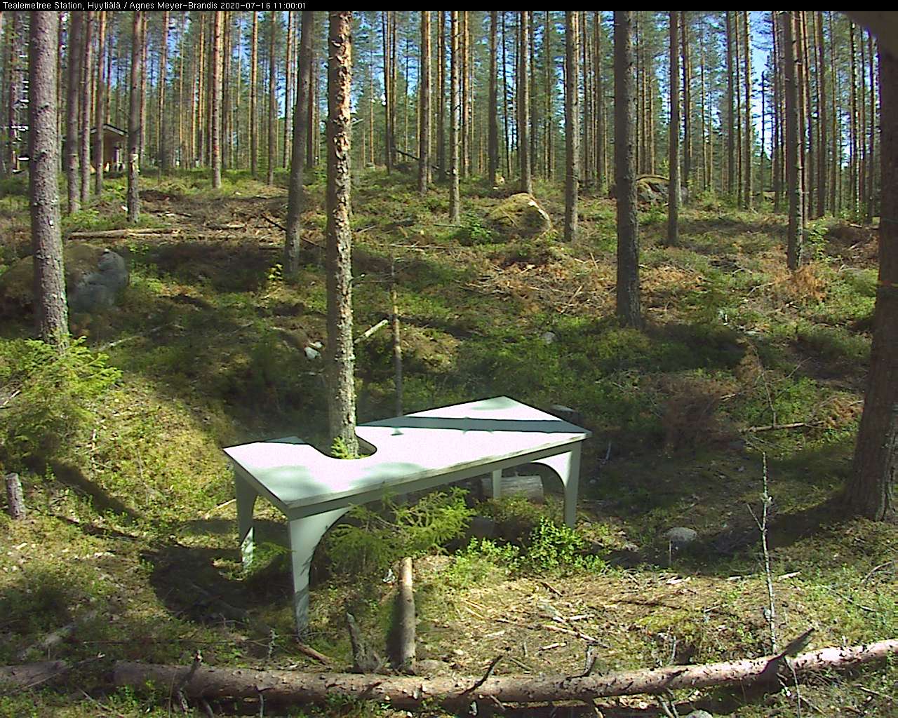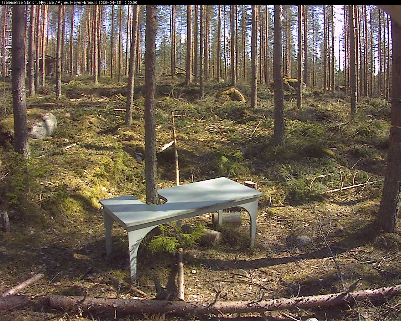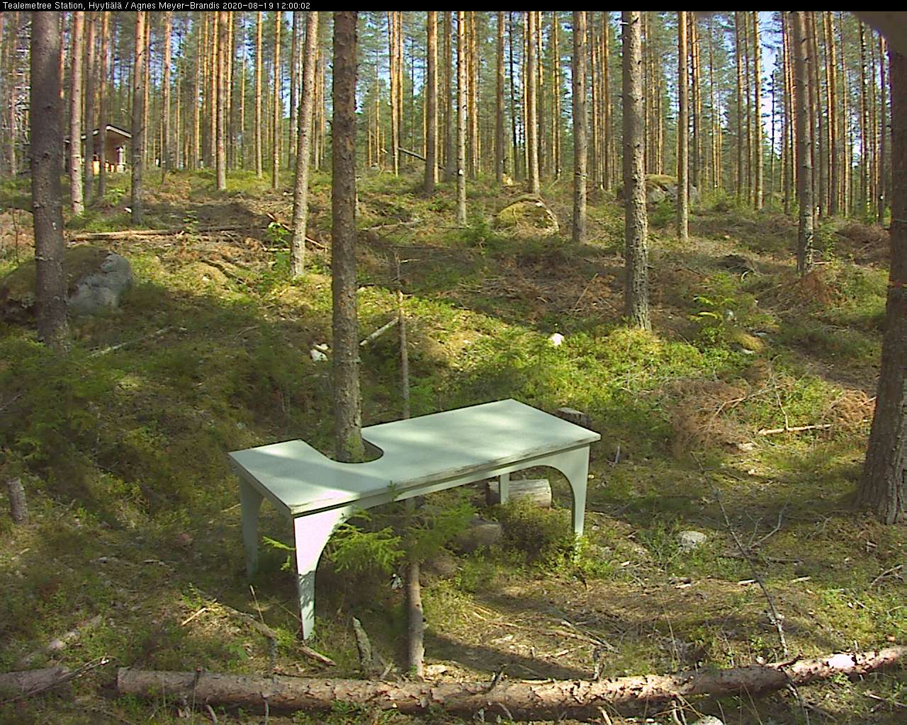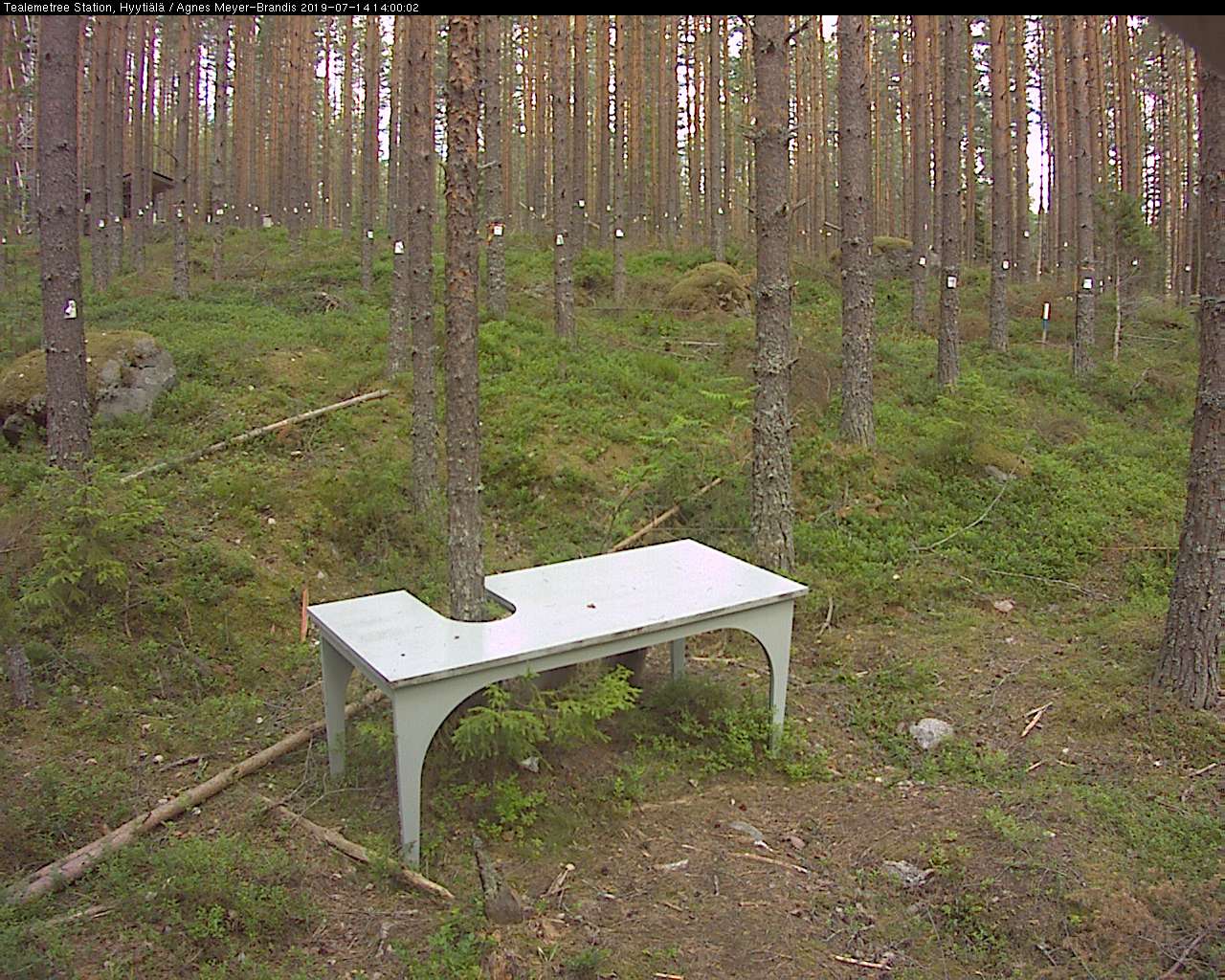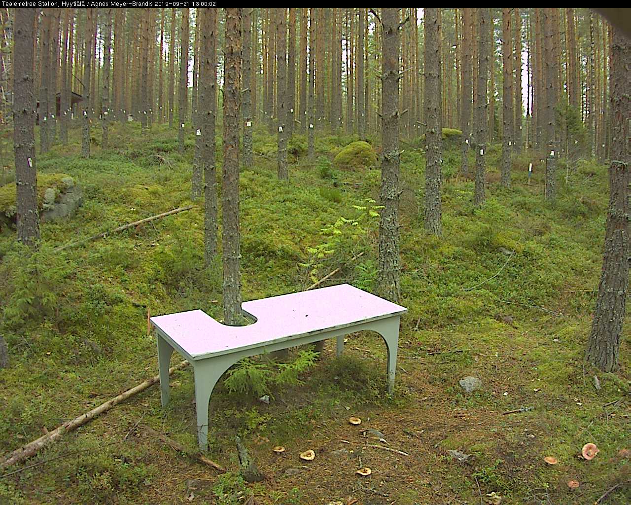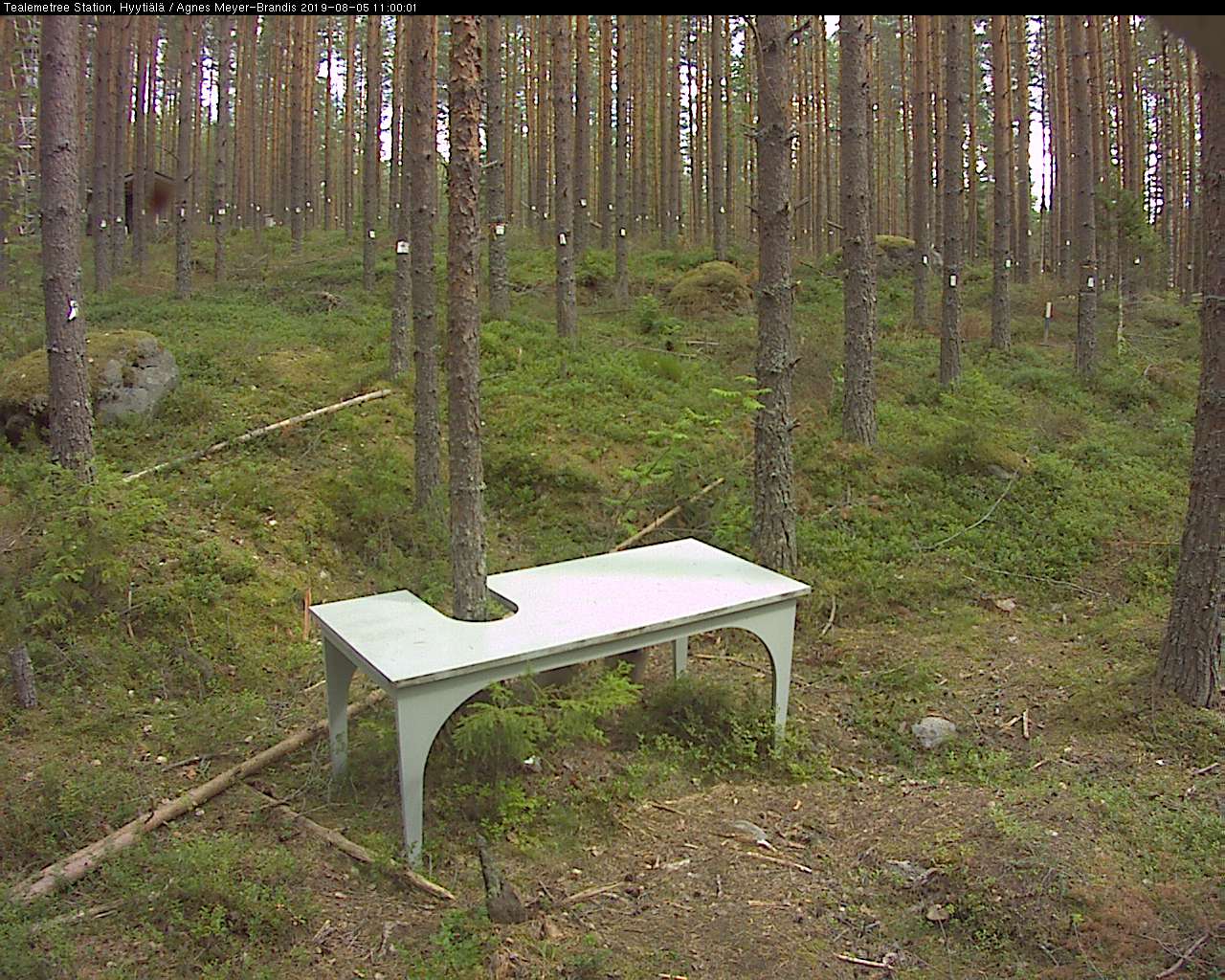 Agnes Meyer-Brandiksen työ Hyytiälässä alkoi tutustumalla aseman muihin tutkijoihin. Pystyäkseen tapaamaan ihmisiä metsässä, hän rakensi pöydän, josta muodostui kohtauspiste ja paikka teehetkille Agneksen ja puun kanssa.