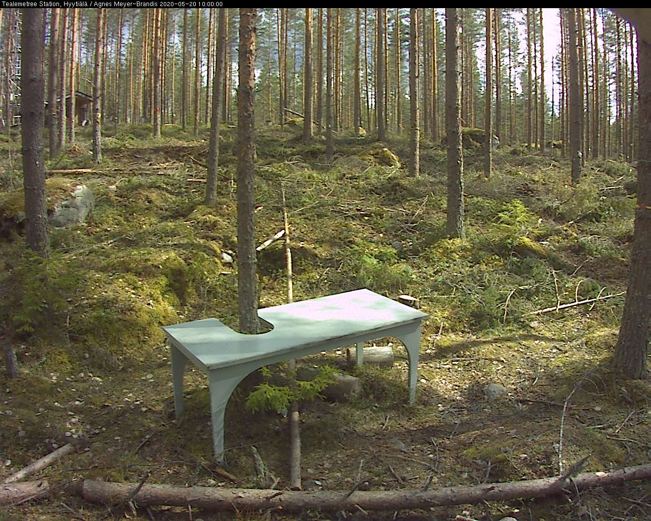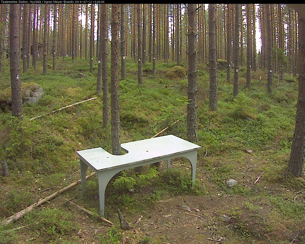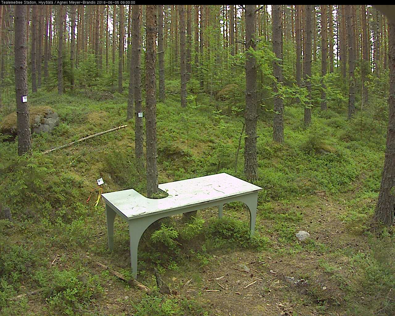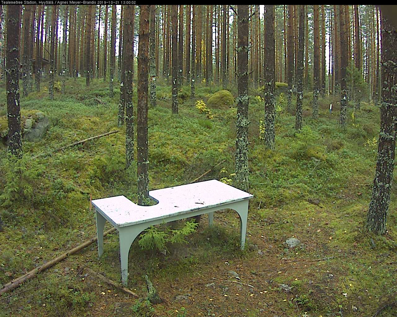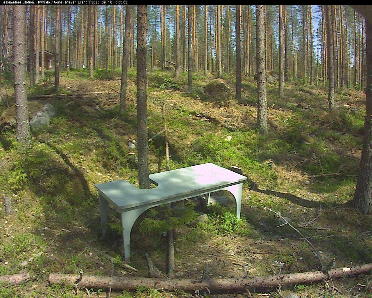 Agnes Meyer-Brandiksen työ Hyytiälässä alkoi tutustumalla aseman muihin tutkijoihin. Pystyäkseen tapaamaan ihmisiä metsässä, hän rakensi pöydän, josta muodostui kohtauspiste ja paikka teehetkille Agneksen ja puun kanssa.