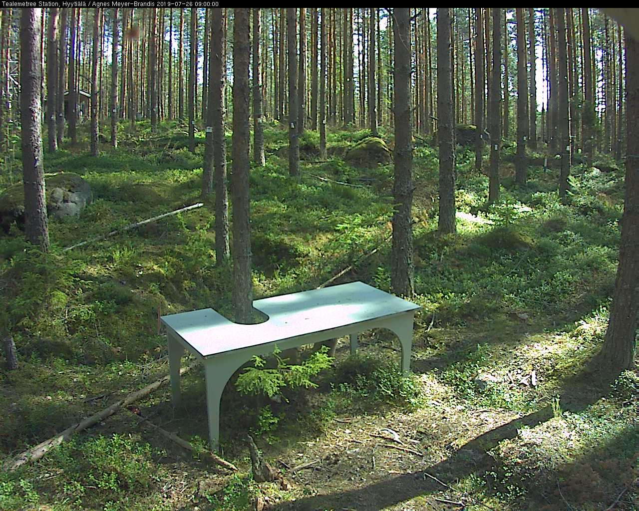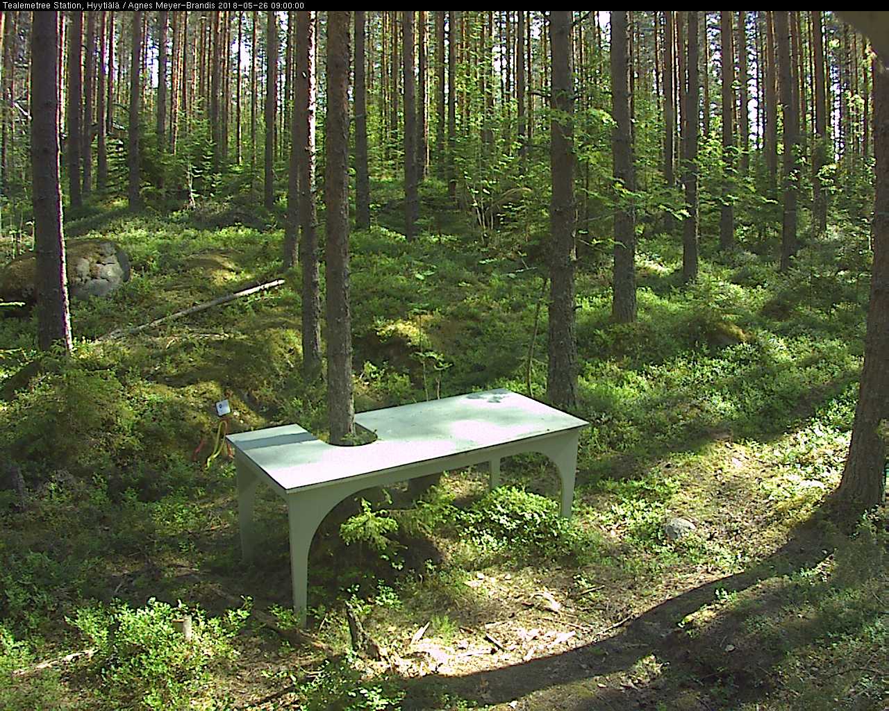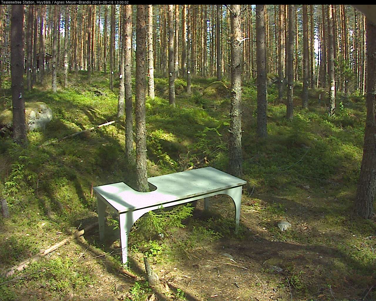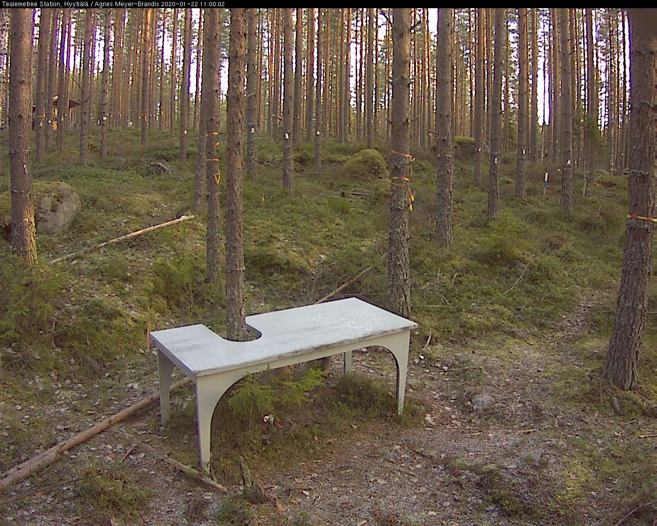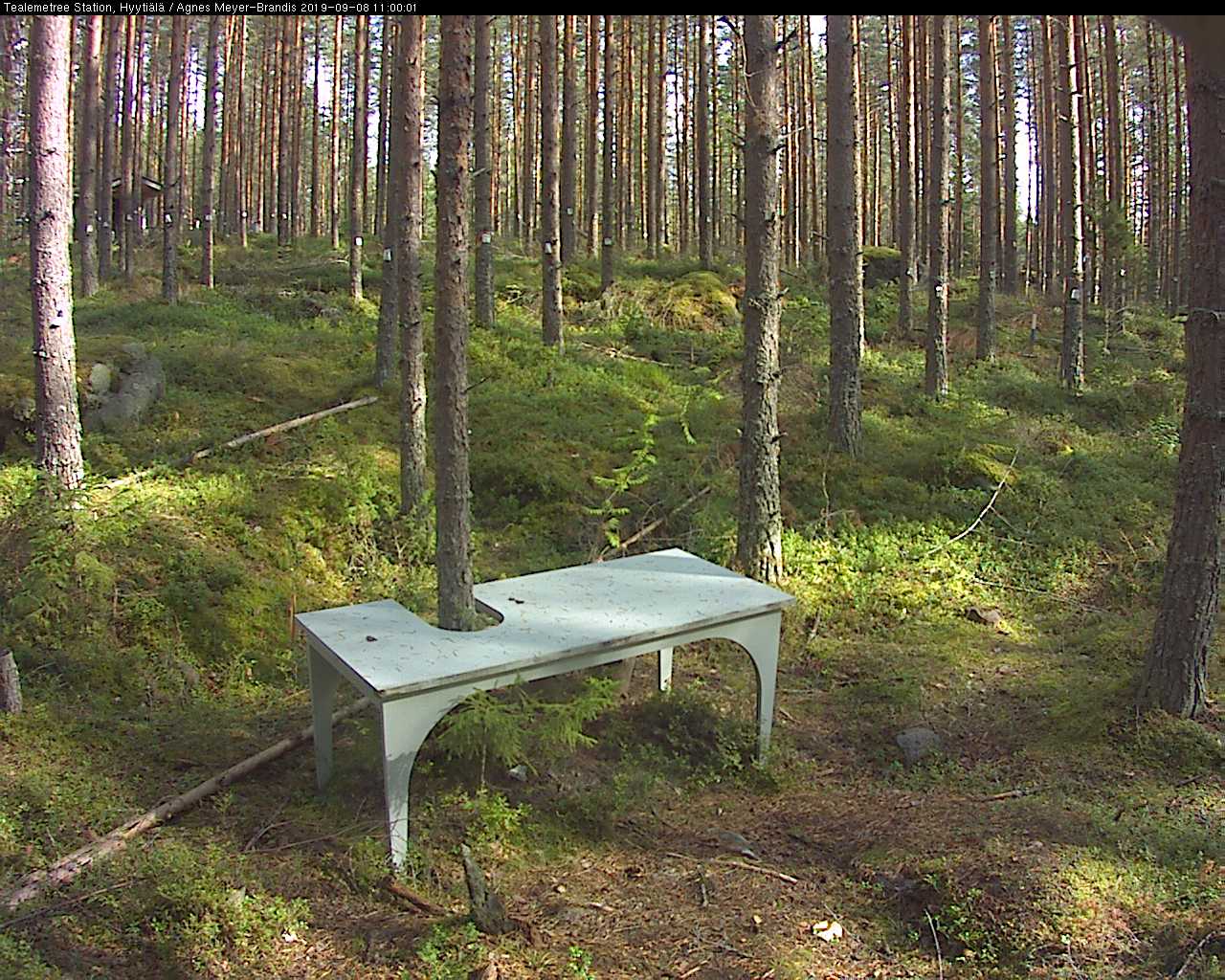 Agnes Meyer-Brandiksen työ Hyytiälässä alkoi tutustumalla aseman muihin tutkijoihin. Pystyäkseen tapaamaan ihmisiä metsässä, hän rakensi pöydän, josta muodostui kohtauspiste ja paikka teehetkille Agneksen ja puun kanssa.