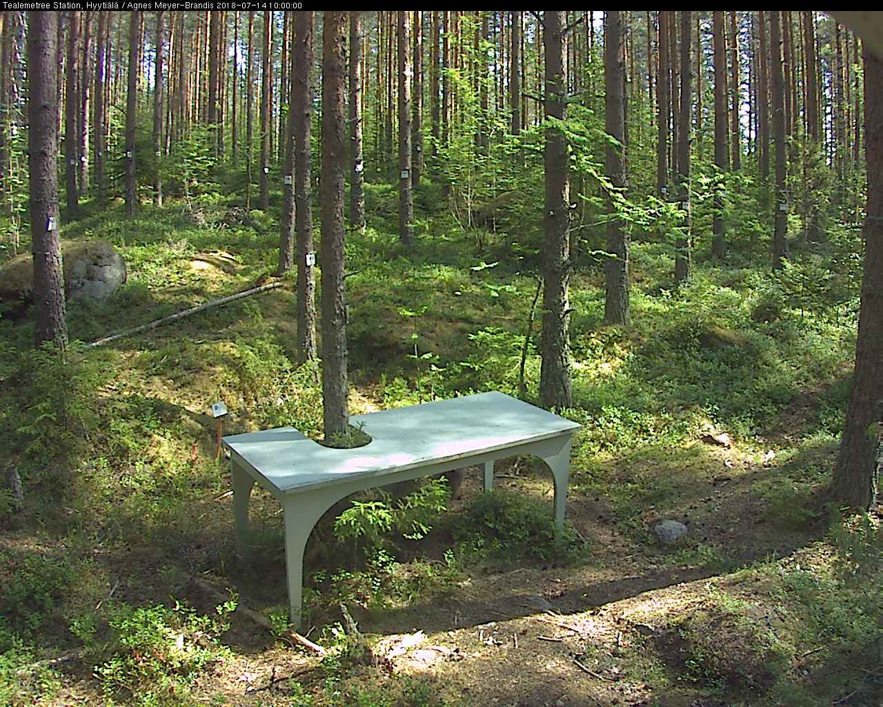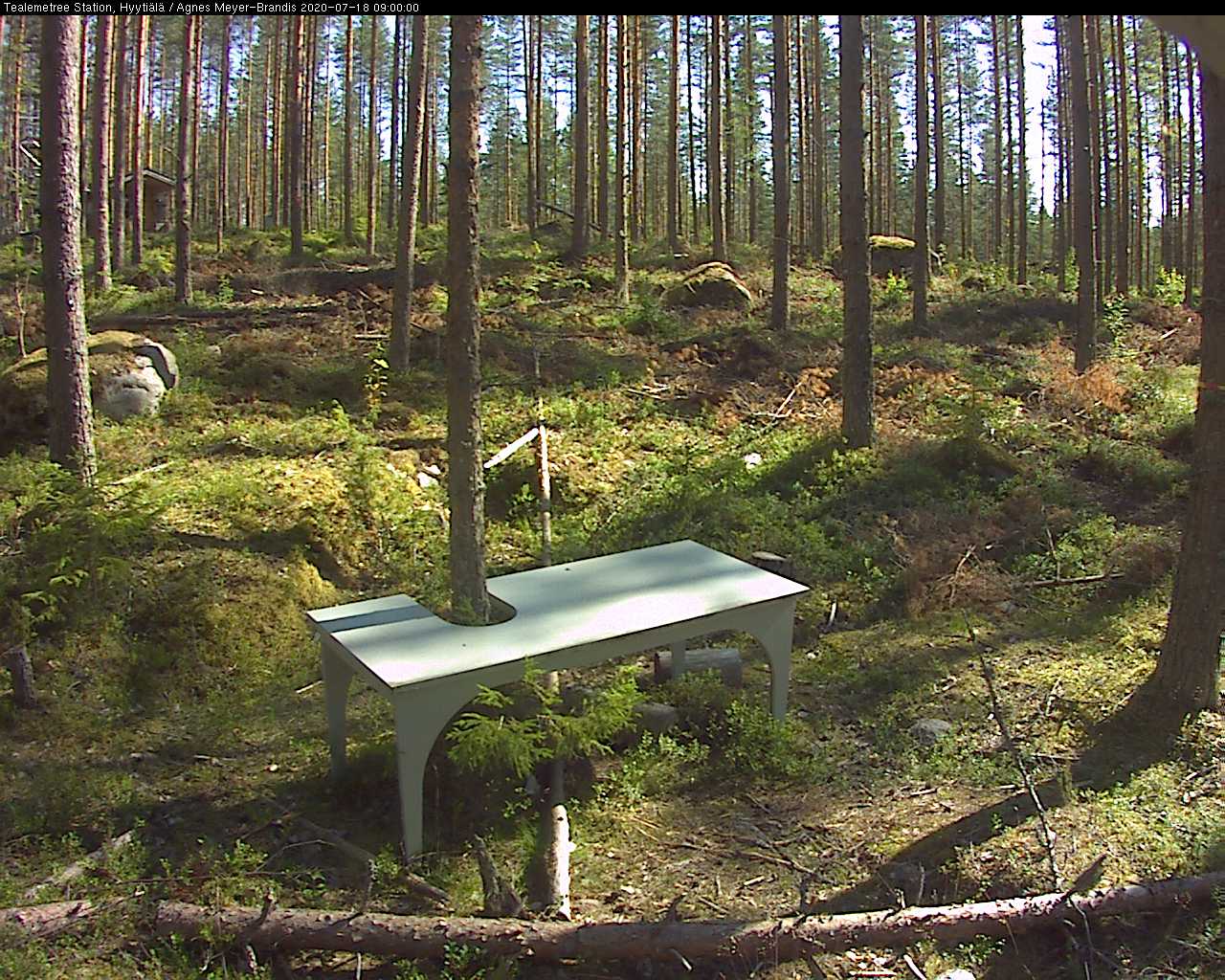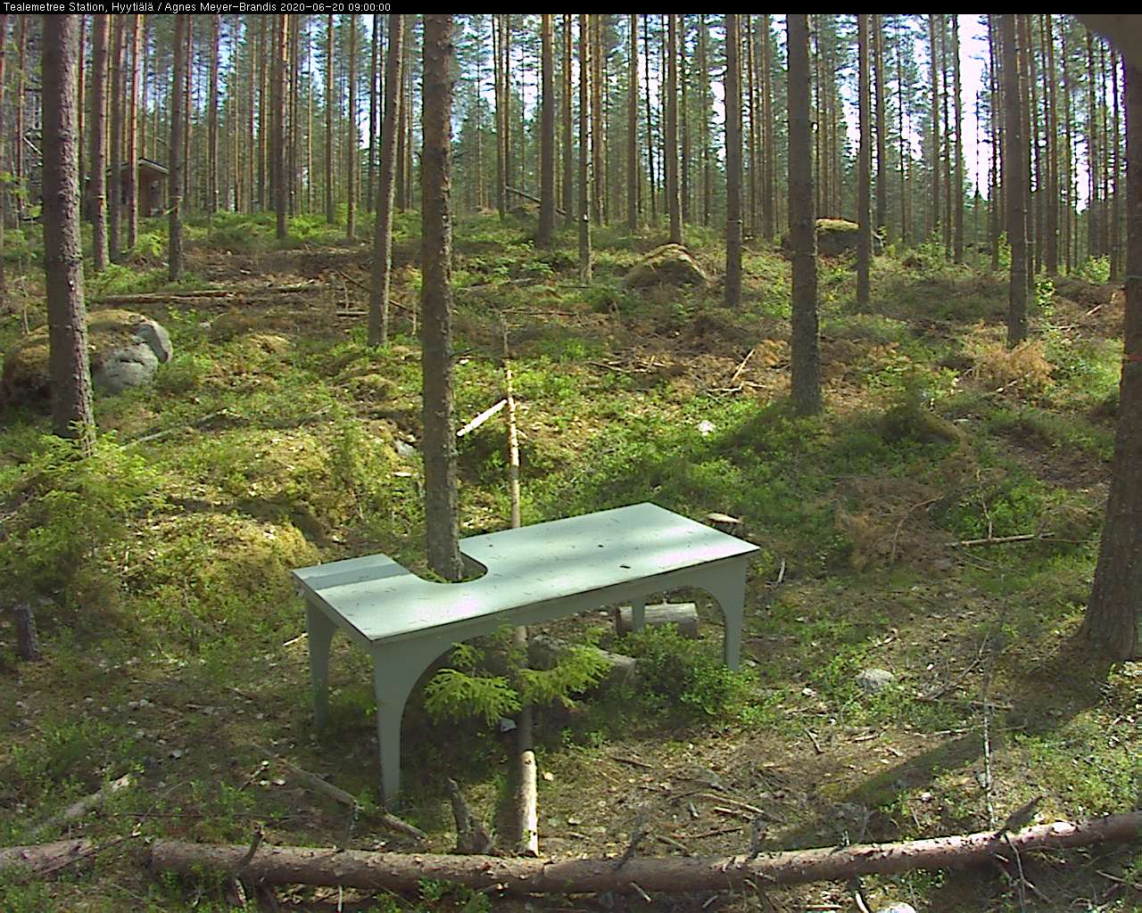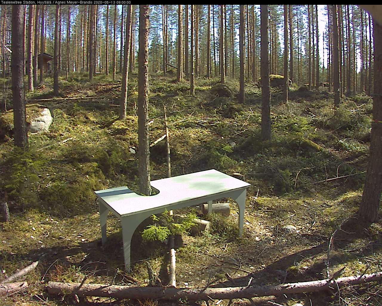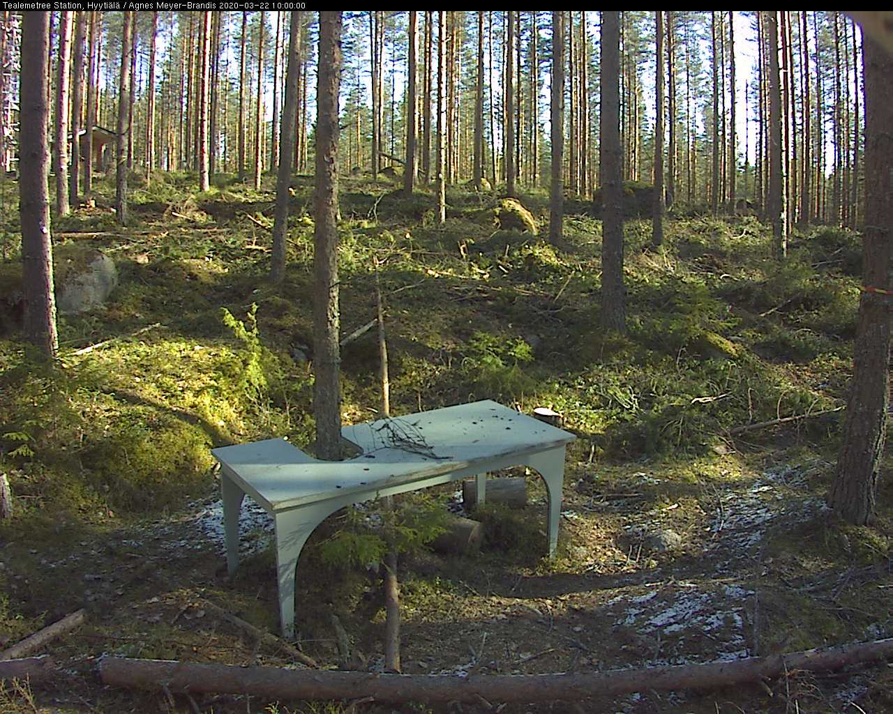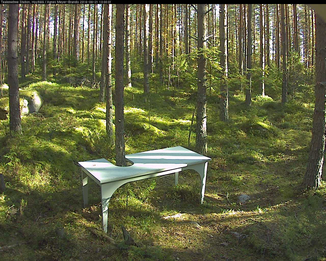 Agnes Meyer-Brandiksen työ Hyytiälässä alkoi tutustumalla aseman muihin tutkijoihin. Pystyäkseen tapaamaan ihmisiä metsässä, hän rakensi pöydän, josta muodostui kohtauspiste ja paikka teehetkille Agneksen ja puun kanssa.