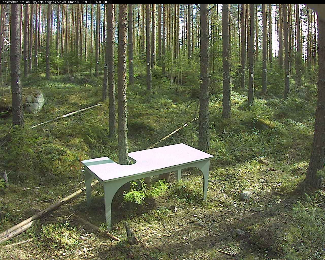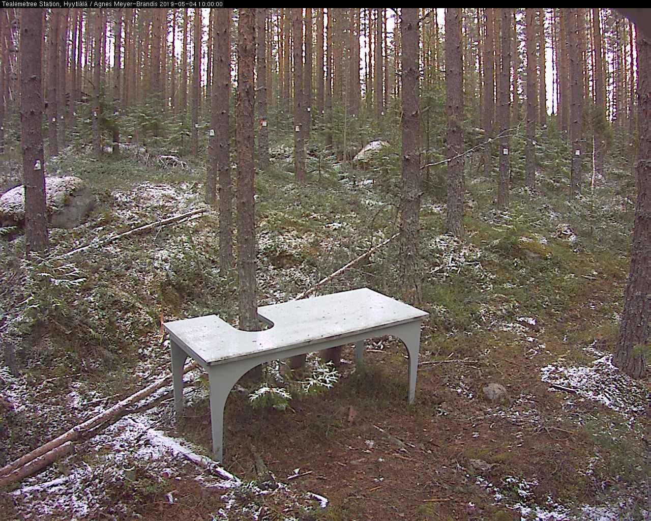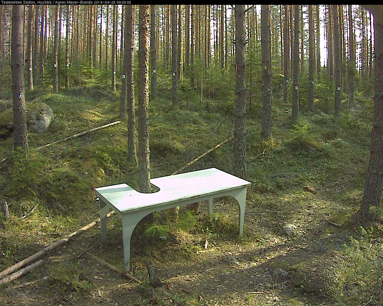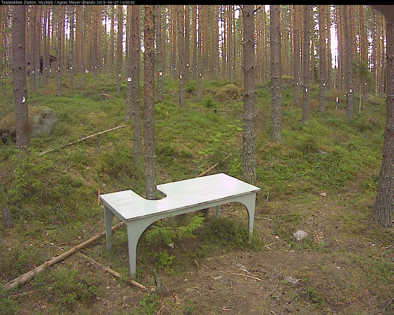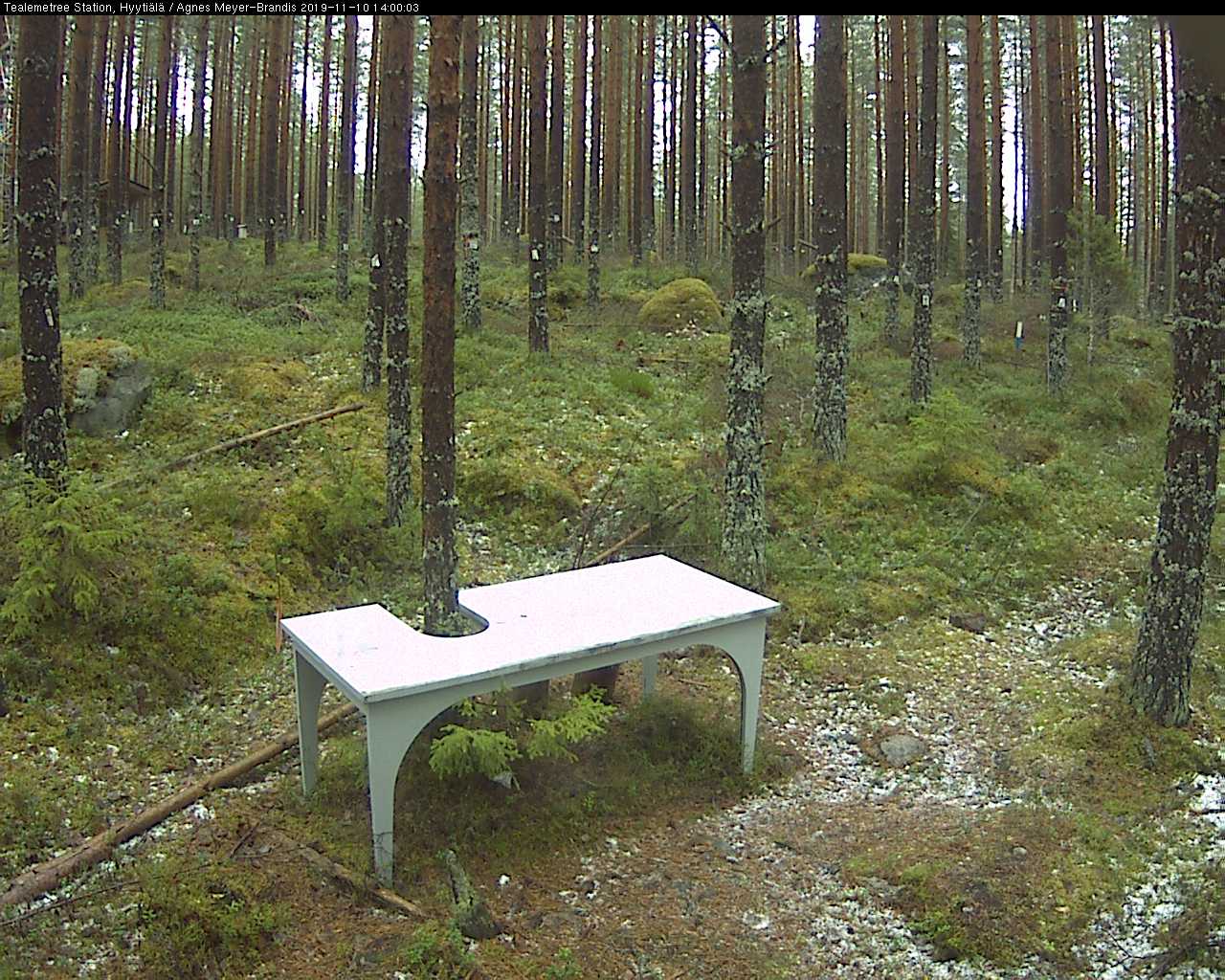 Agnes Meyer-Brandiksen työ Hyytiälässä alkoi tutustumalla aseman muihin tutkijoihin. Pystyäkseen tapaamaan ihmisiä metsässä, hän rakensi pöydän, josta muodostui kohtauspiste ja paikka teehetkille Agneksen ja puun kanssa.