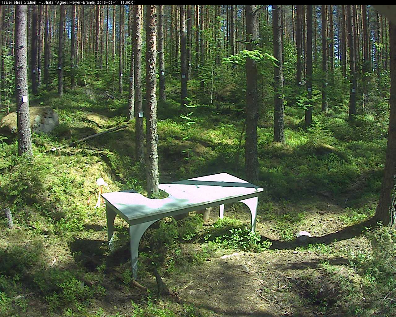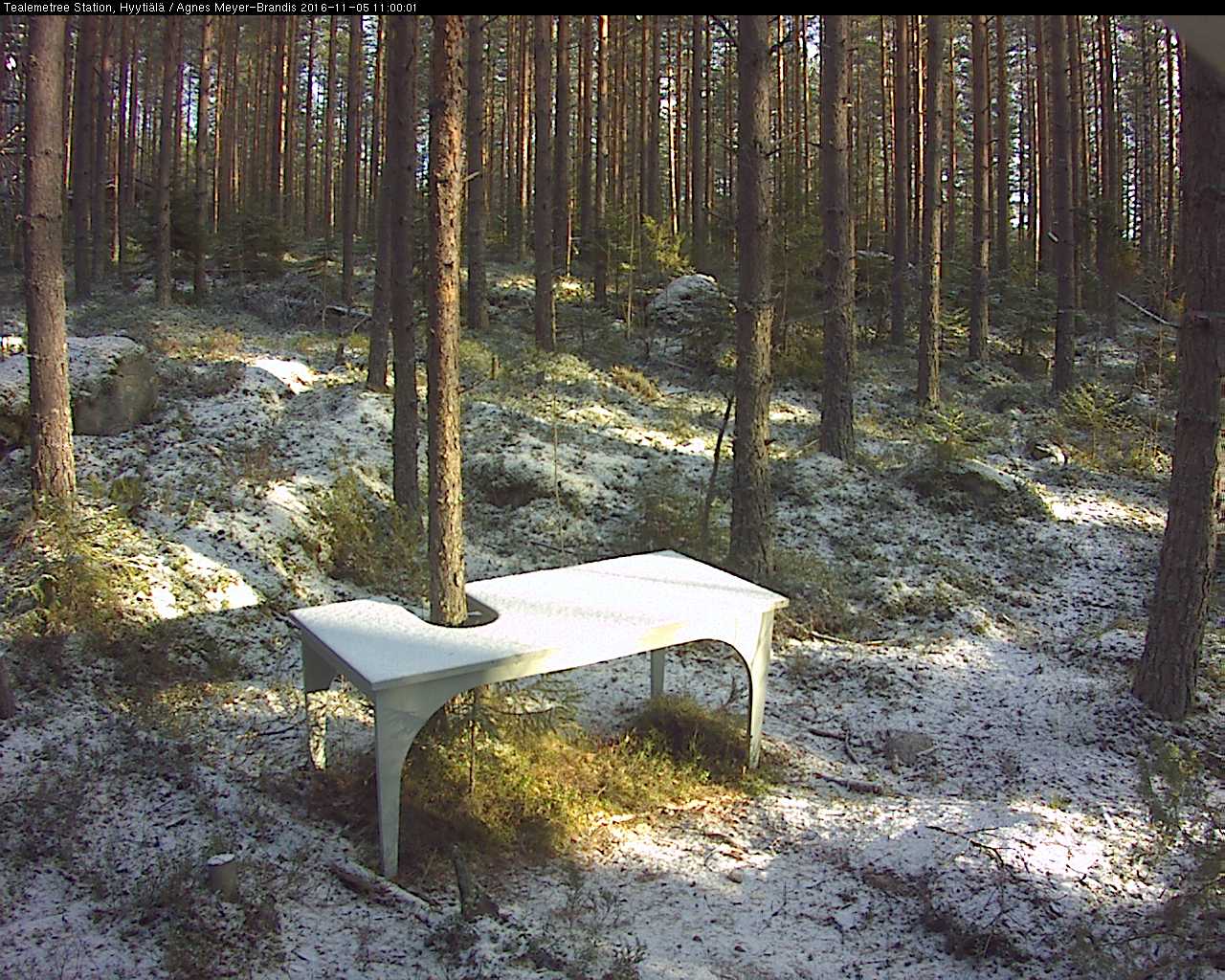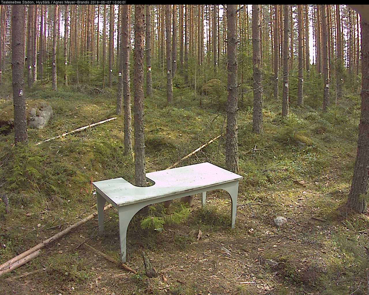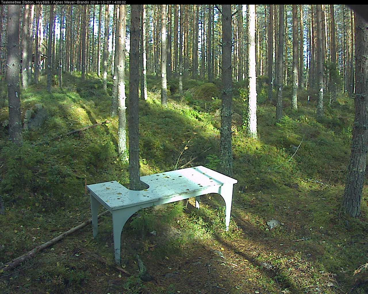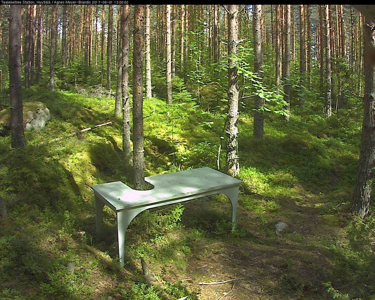Agnes Meyer-Brandiksen työ Hyytiälässä alkoi tutustumalla aseman muihin tutkijoihin. Pystyäkseen tapaamaan ihmisiä metsässä, hän rakensi pöydän, josta muodostui kohtauspiste ja paikka teehetkille Agneksen ja puun kanssa.