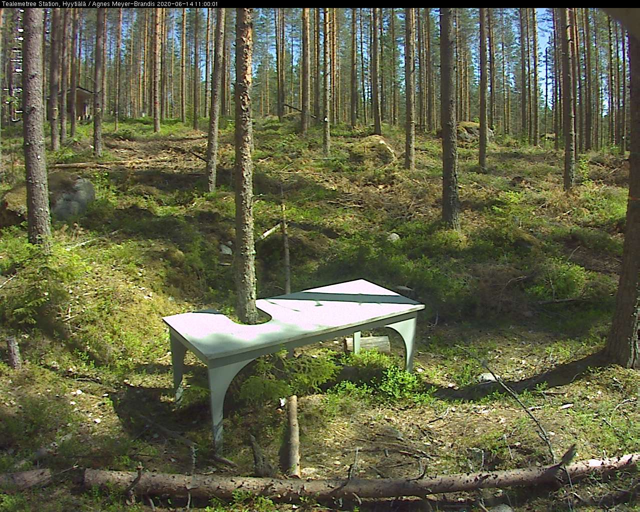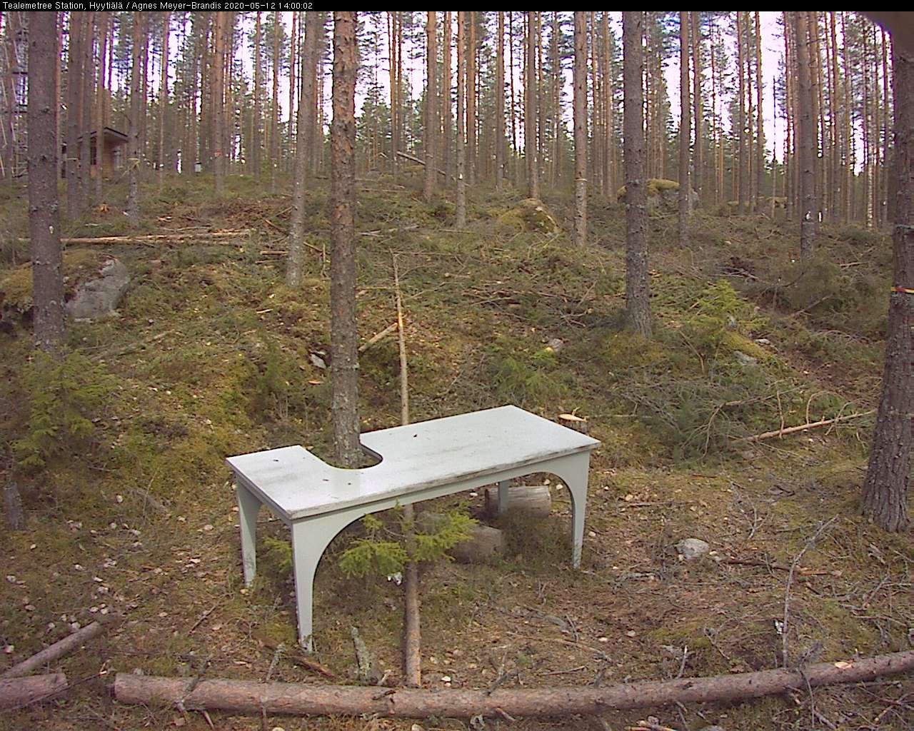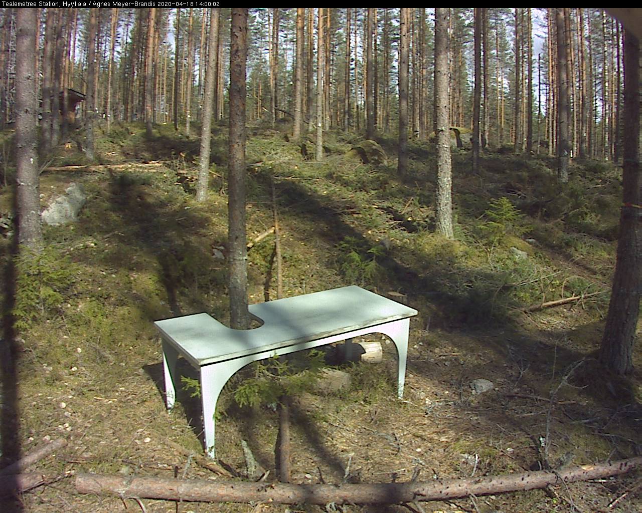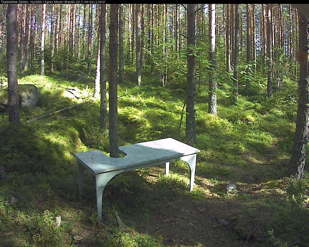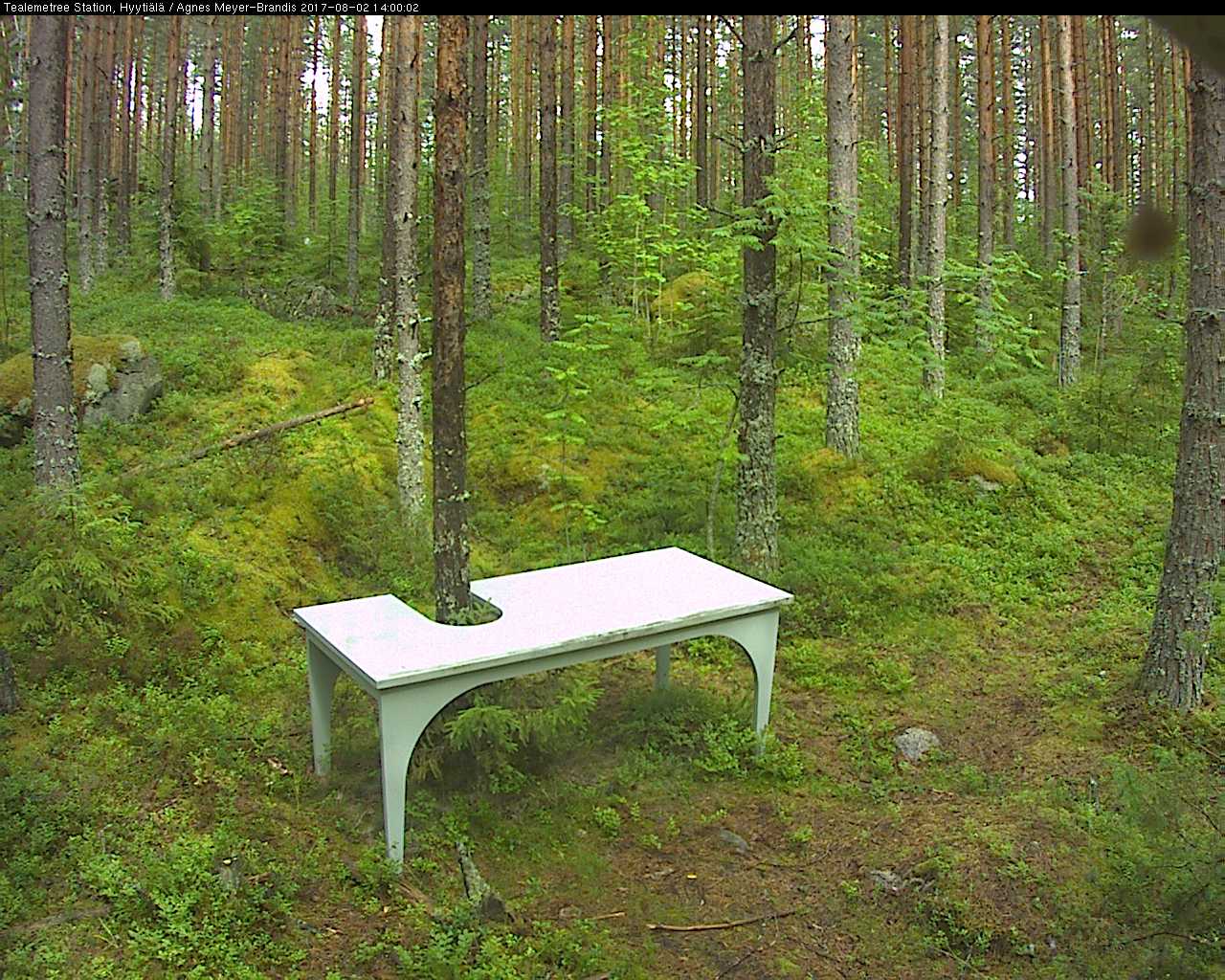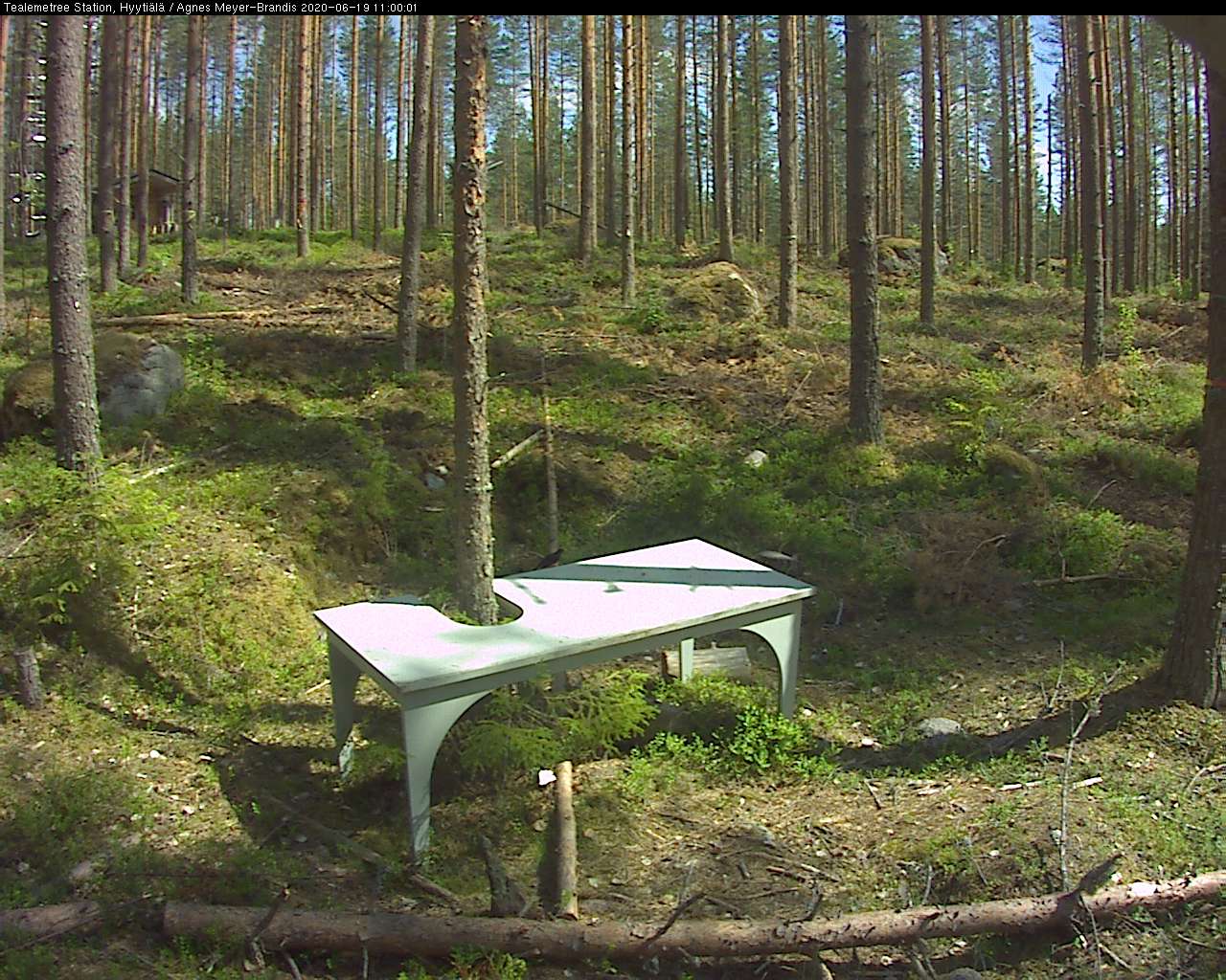 Agnes Meyer-Brandiksen työ Hyytiälässä alkoi tutustumalla aseman muihin tutkijoihin. Pystyäkseen tapaamaan ihmisiä metsässä, hän rakensi pöydän, josta muodostui kohtauspiste ja paikka teehetkille Agneksen ja puun kanssa.