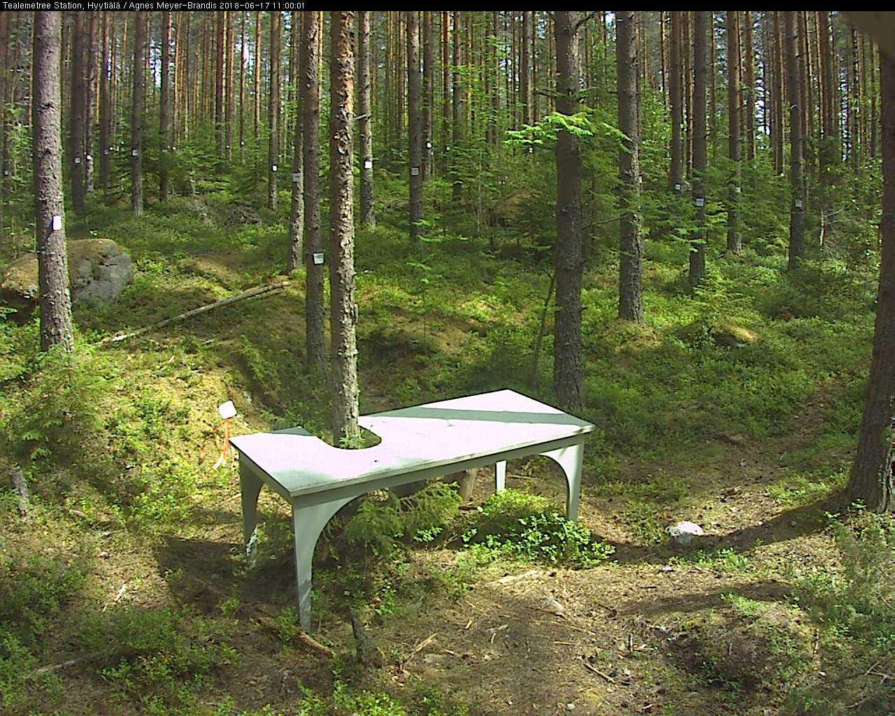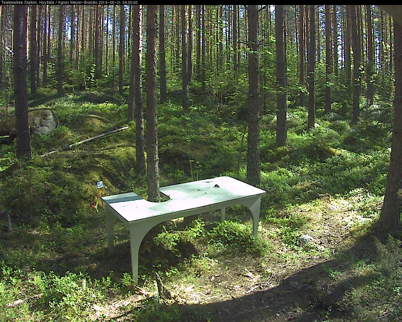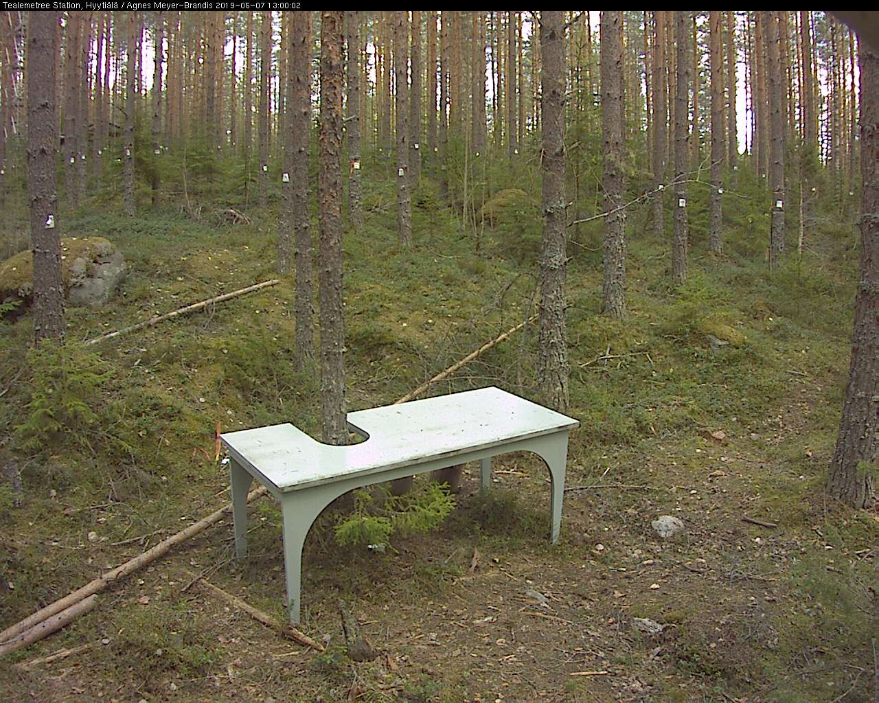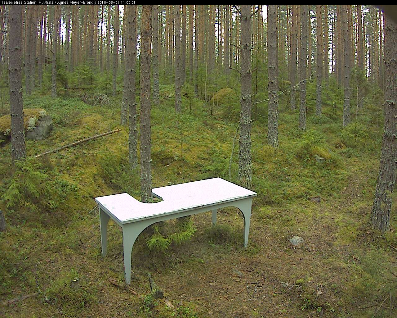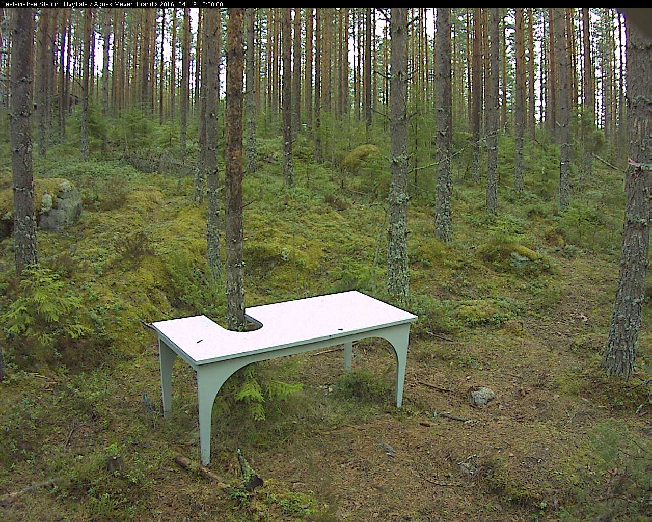 Agnes Meyer-Brandiksen työ Hyytiälässä alkoi tutustumalla aseman muihin tutkijoihin. Pystyäkseen tapaamaan ihmisiä metsässä, hän rakensi pöydän, josta muodostui kohtauspiste ja paikka teehetkille Agneksen ja puun kanssa.