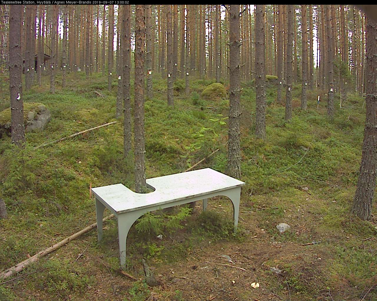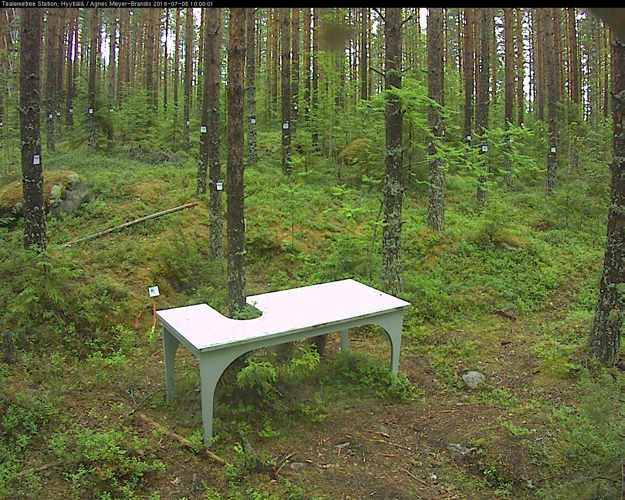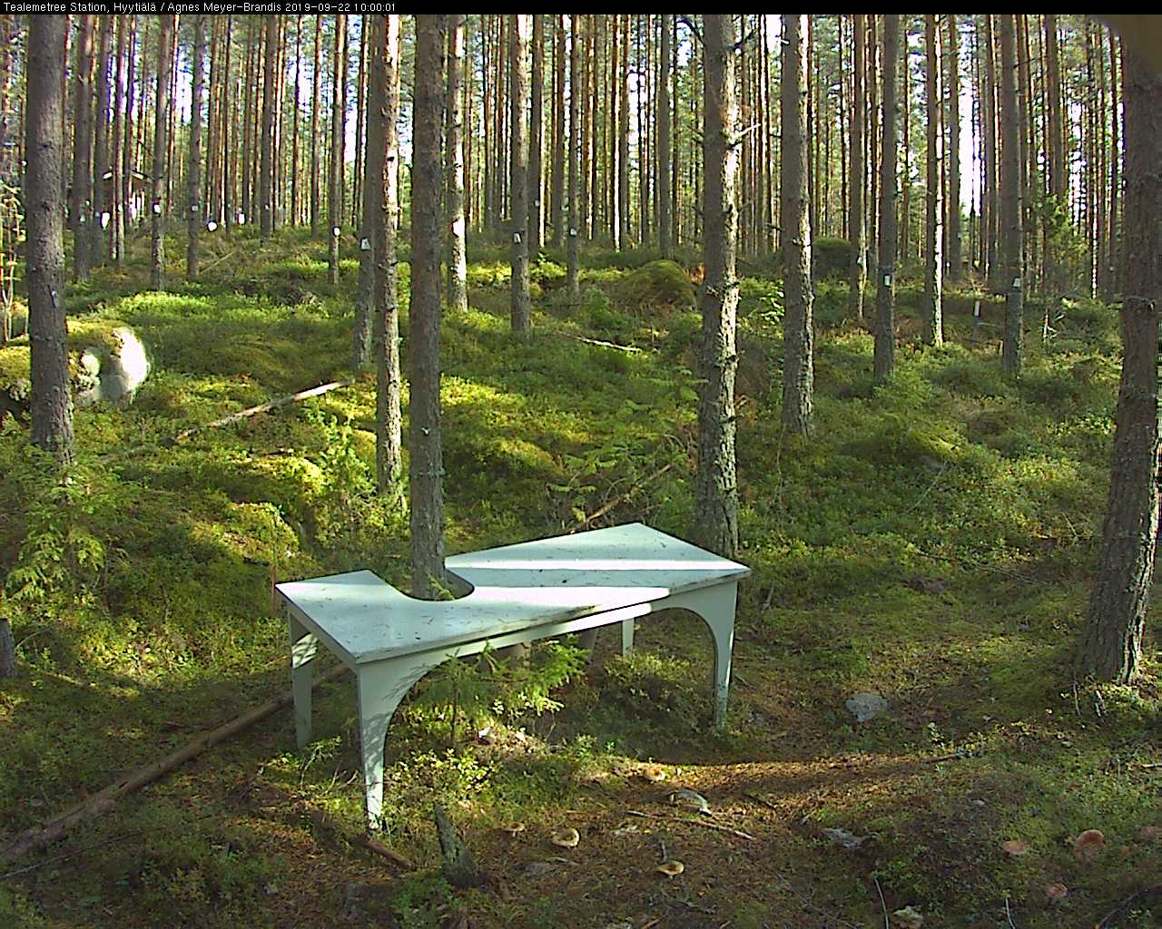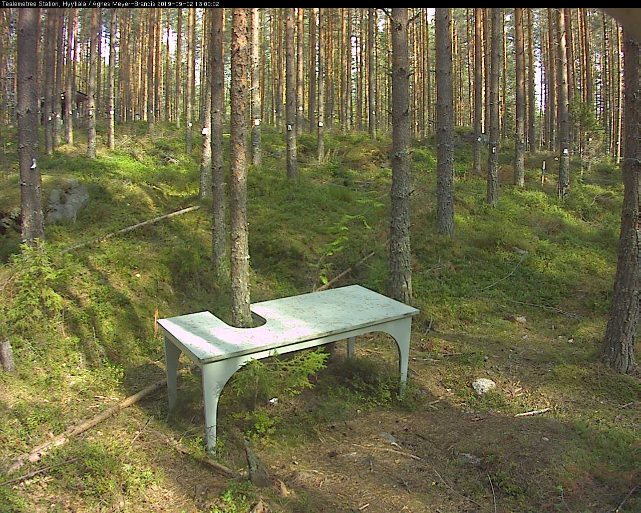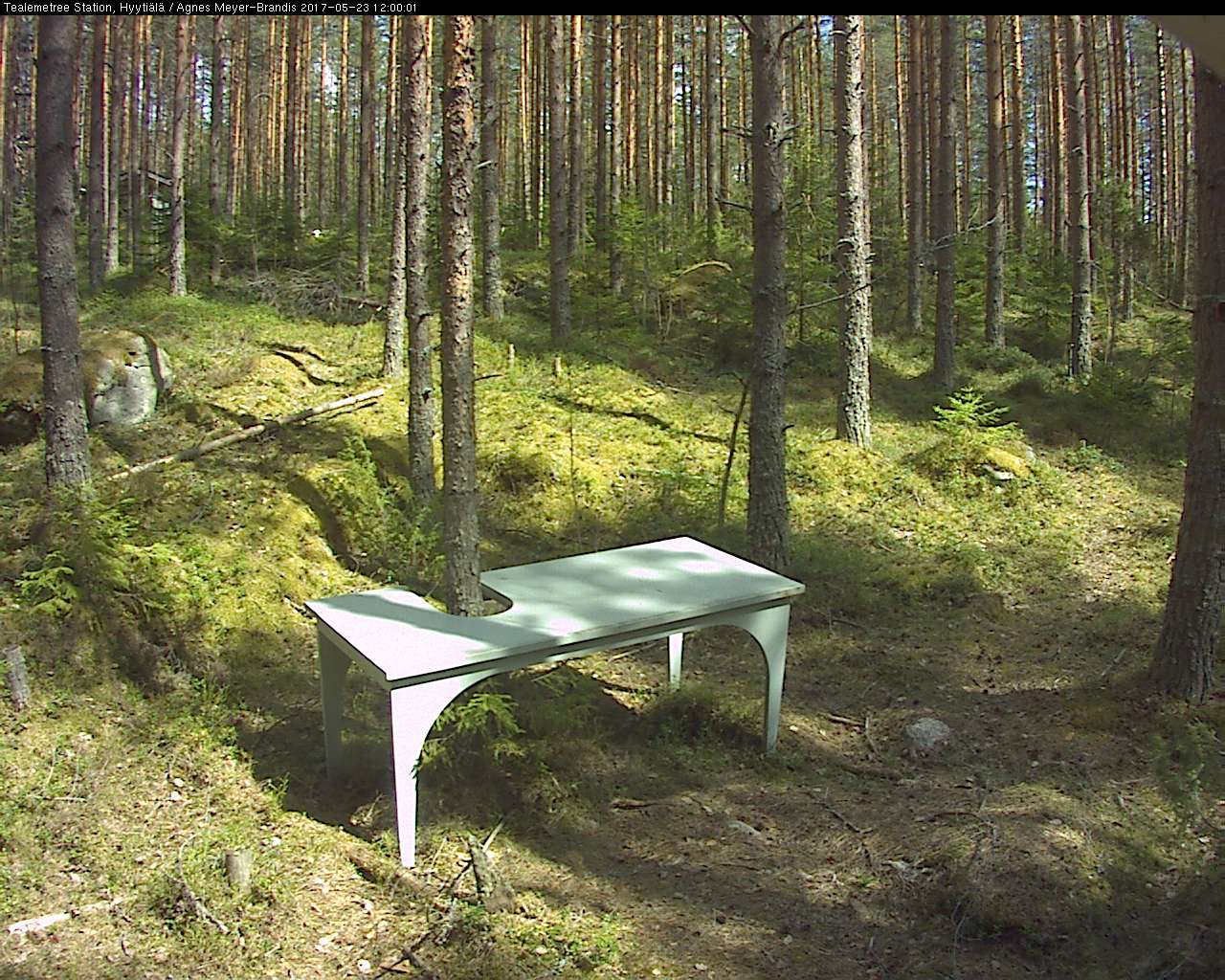 Agnes Meyer-Brandiksen työ Hyytiälässä alkoi tutustumalla aseman muihin tutkijoihin. Pystyäkseen tapaamaan ihmisiä metsässä, hän rakensi pöydän, josta muodostui kohtauspiste ja paikka teehetkille Agneksen ja puun kanssa.