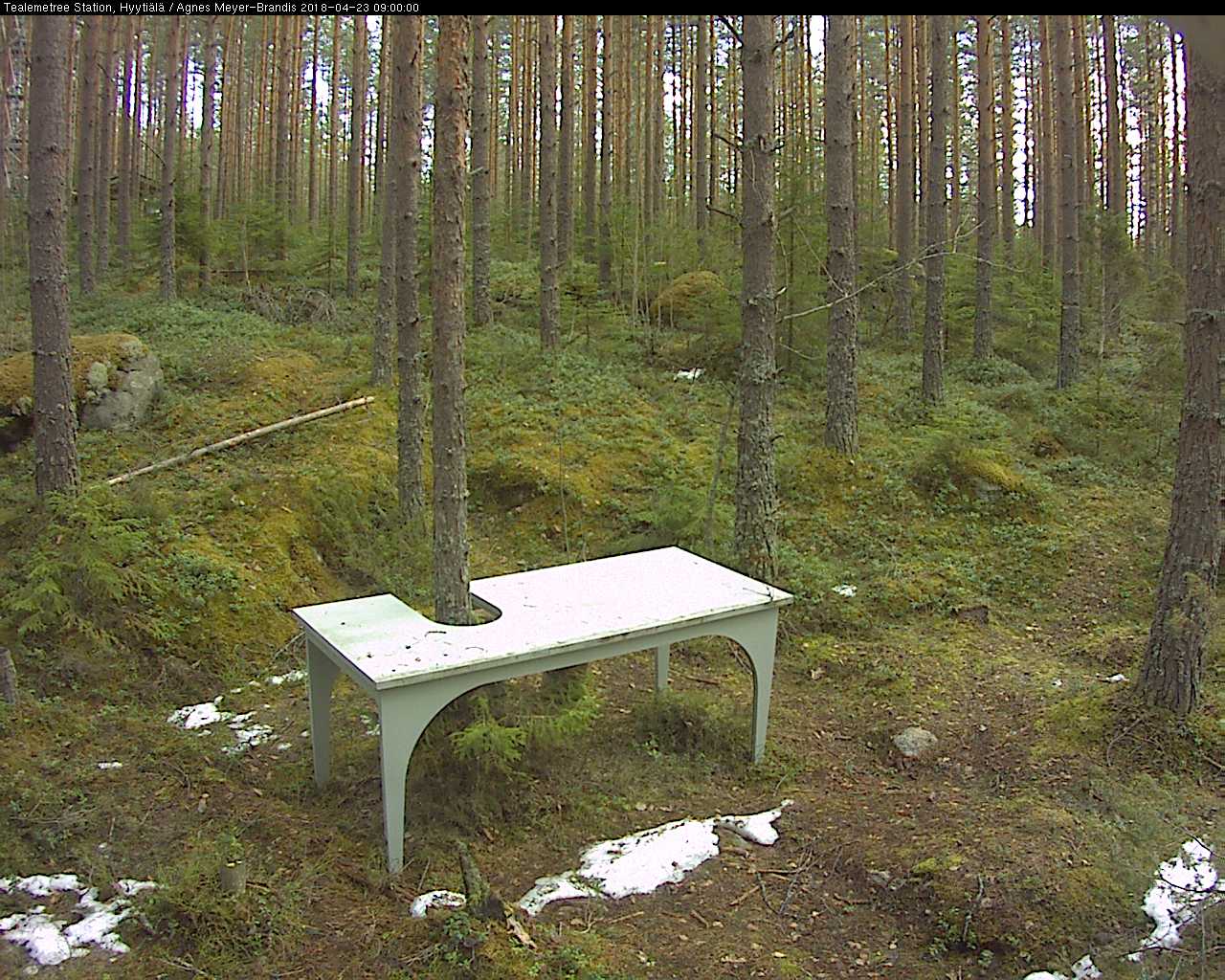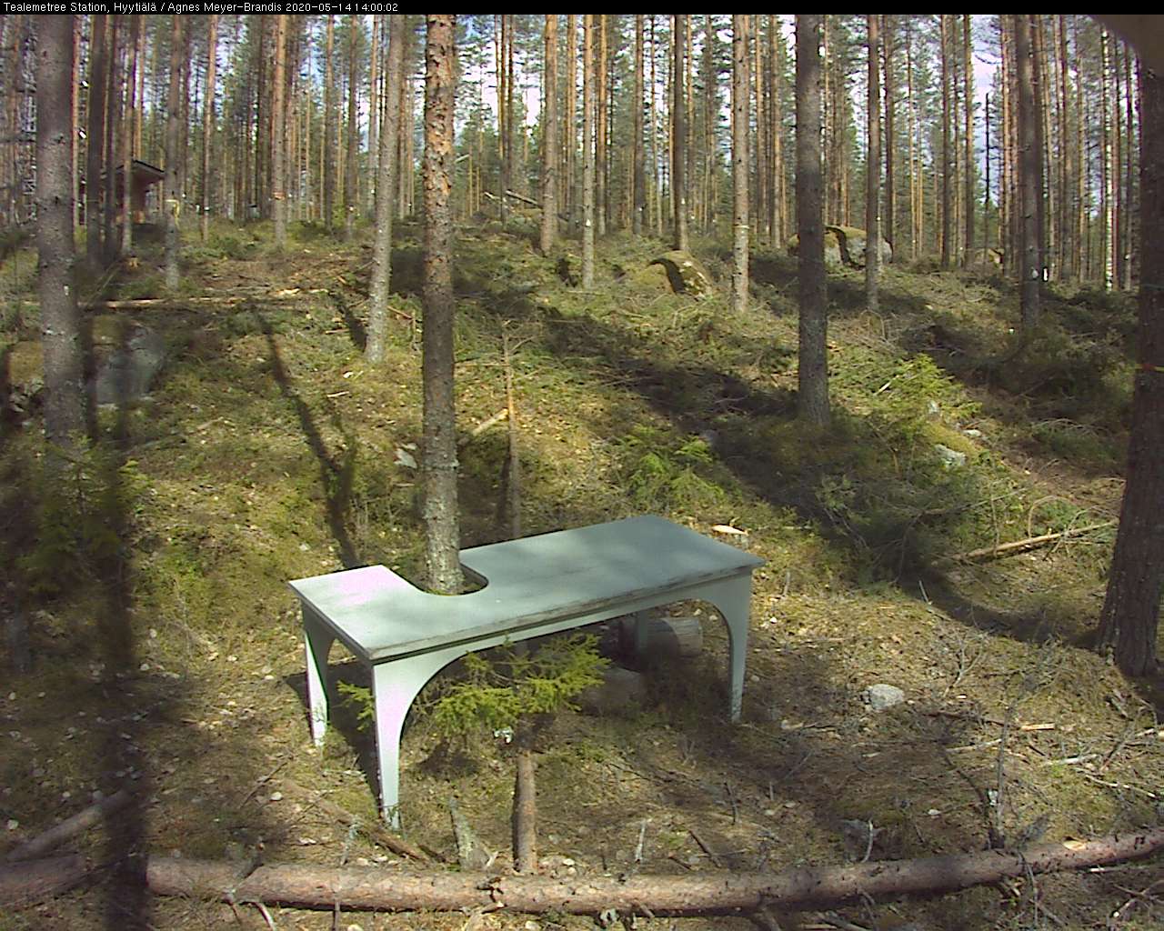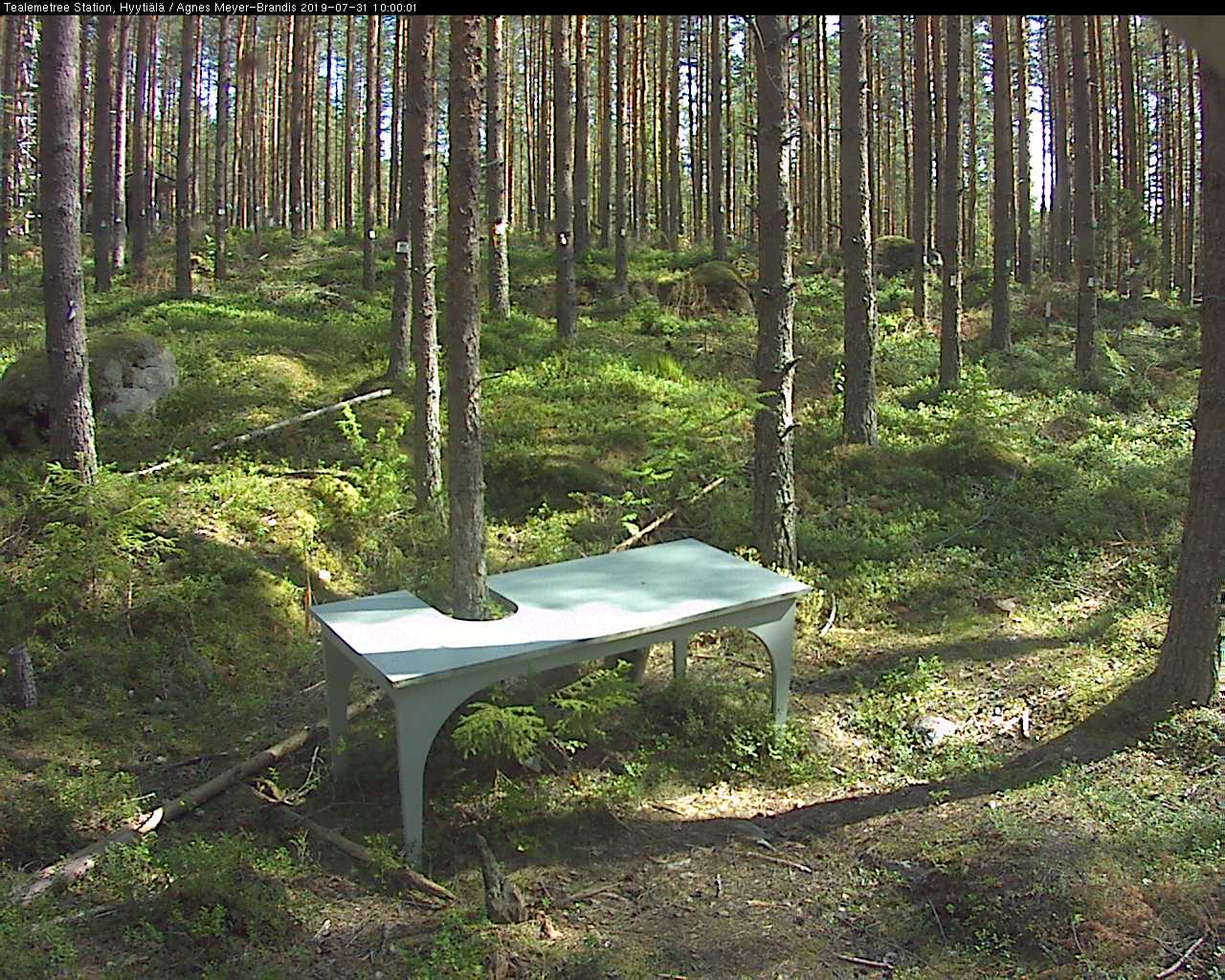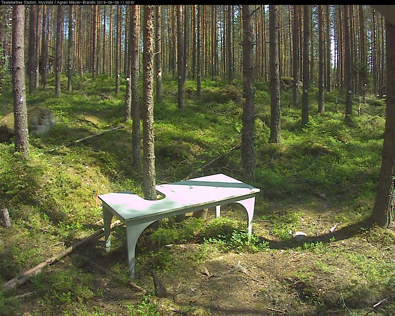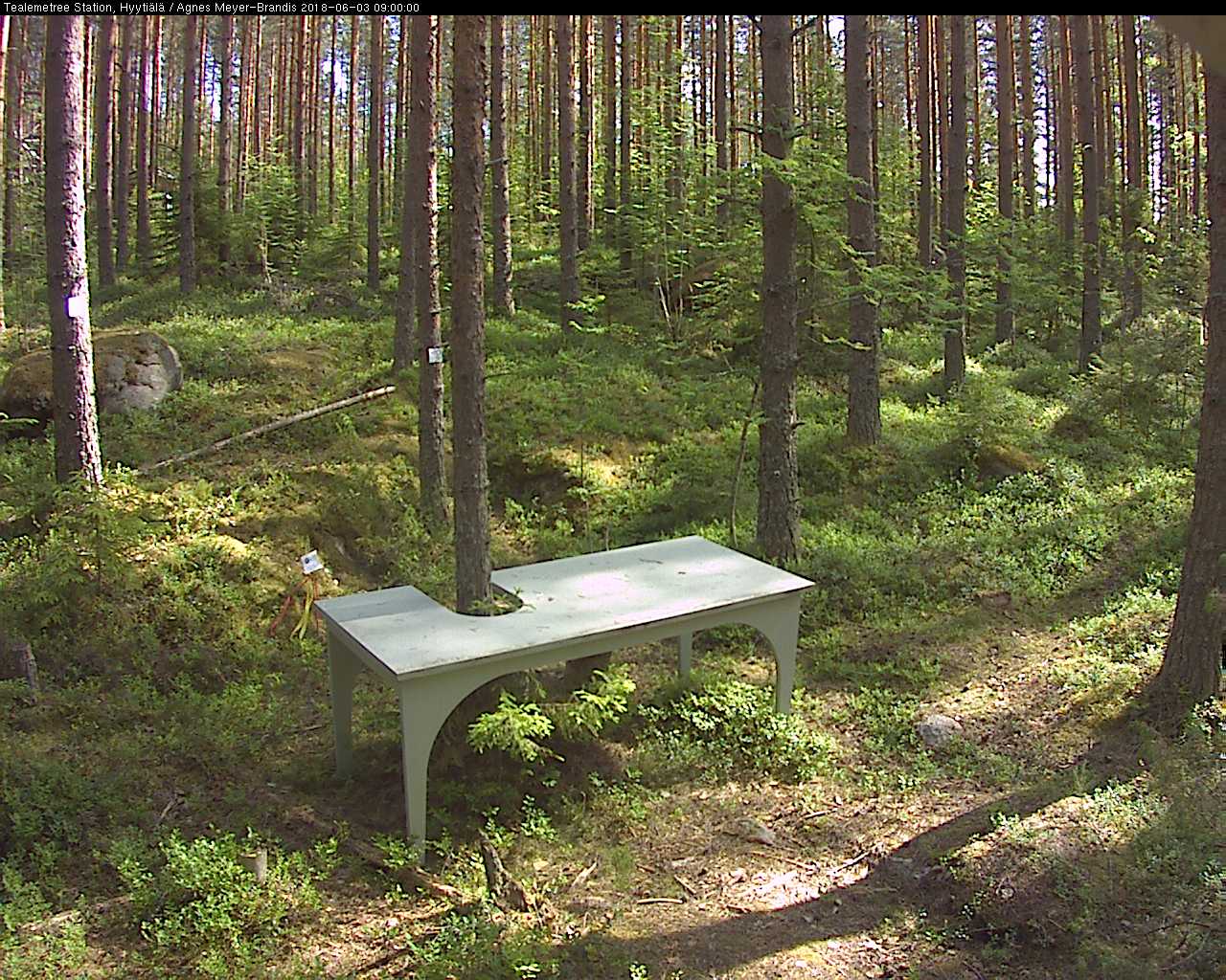 Agnes Meyer-Brandiksen työ Hyytiälässä alkoi tutustumalla aseman muihin tutkijoihin. Pystyäkseen tapaamaan ihmisiä metsässä, hän rakensi pöydän, josta muodostui kohtauspiste ja paikka teehetkille Agneksen ja puun kanssa.