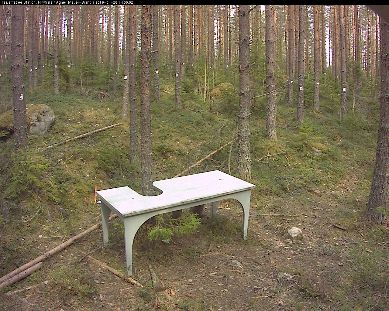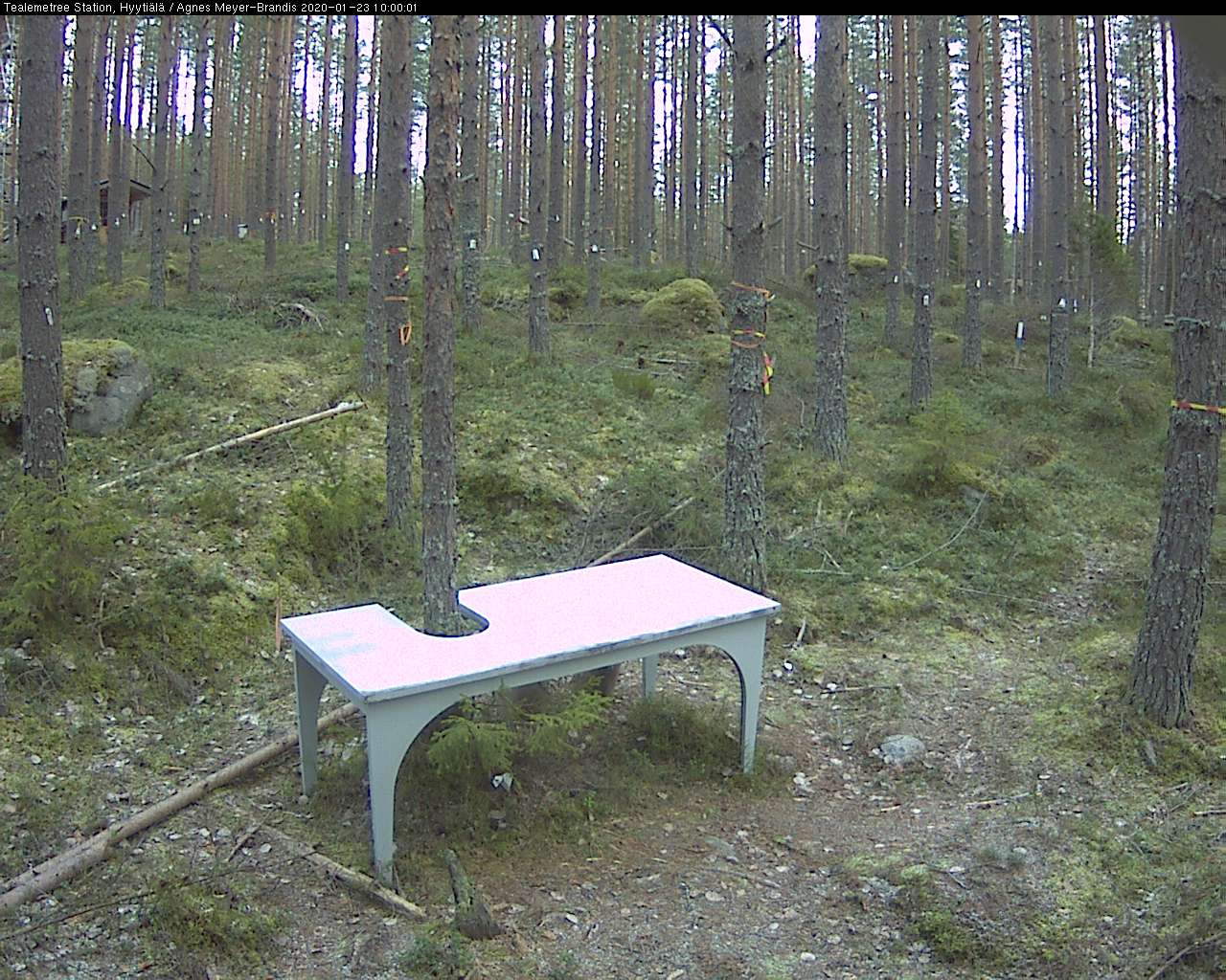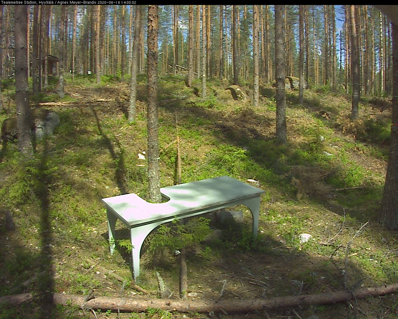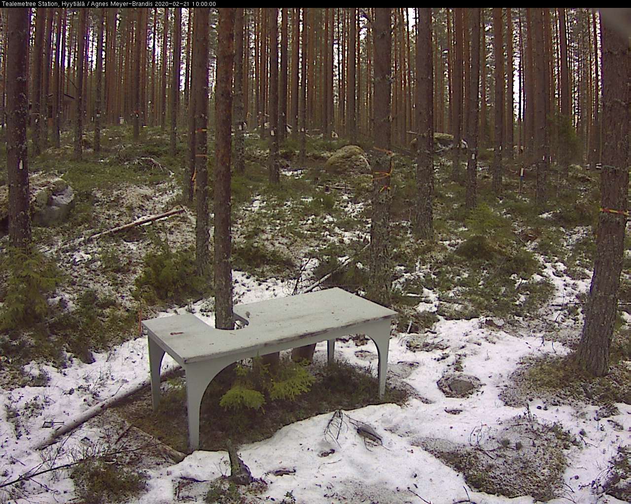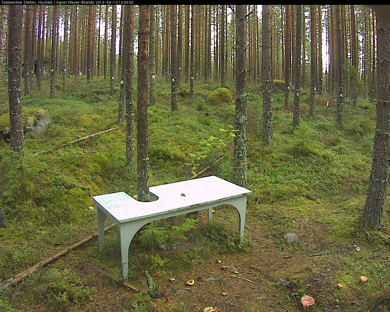 Agnes Meyer-Brandiksen työ Hyytiälässä alkoi tutustumalla aseman muihin tutkijoihin. Pystyäkseen tapaamaan ihmisiä metsässä, hän rakensi pöydän, josta muodostui kohtauspiste ja paikka teehetkille Agneksen ja puun kanssa.