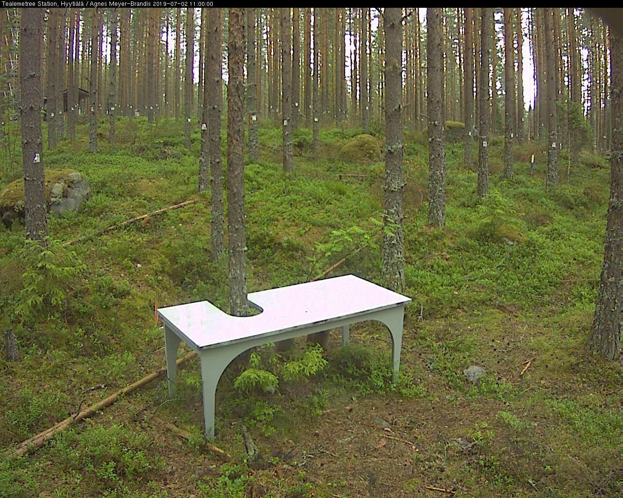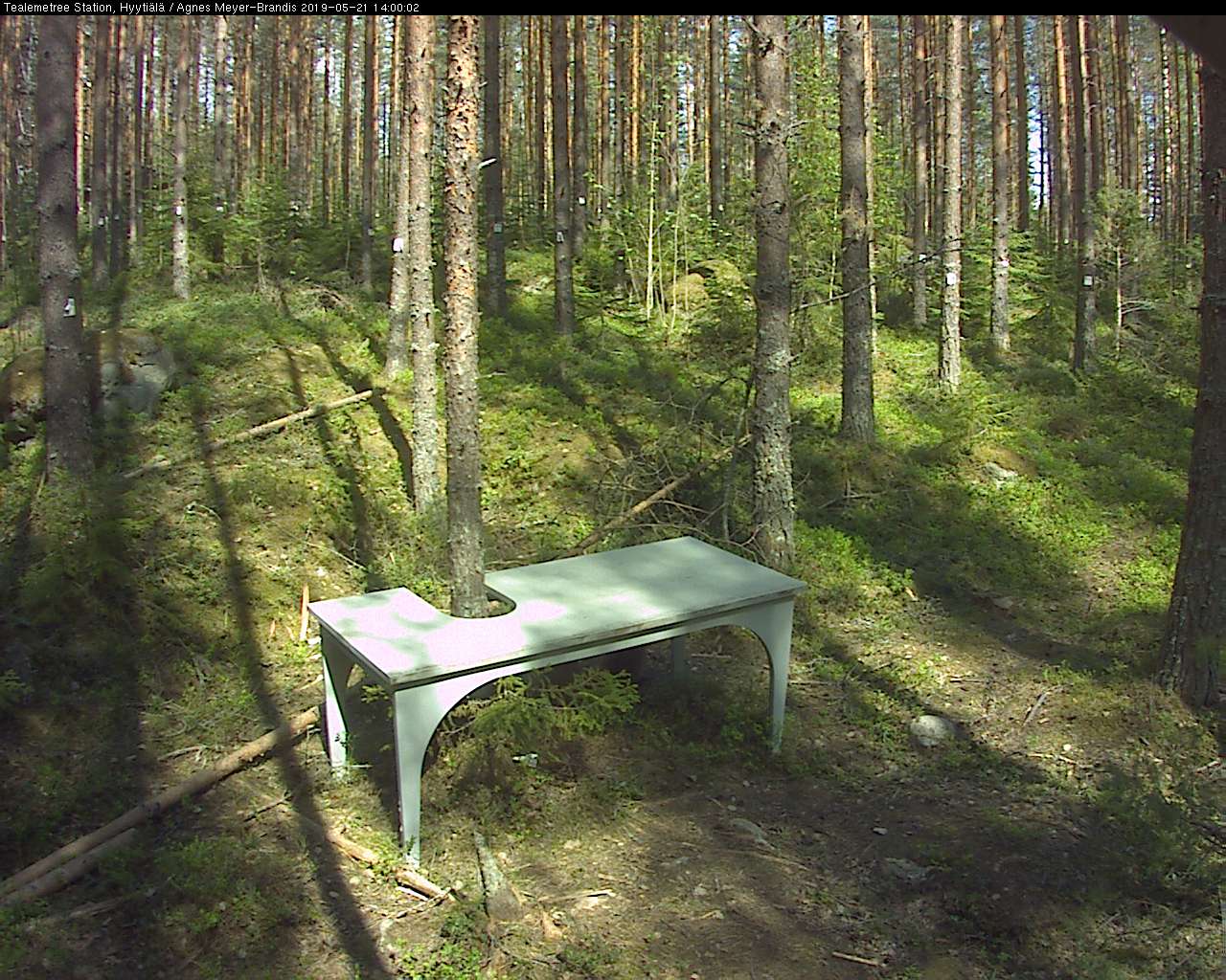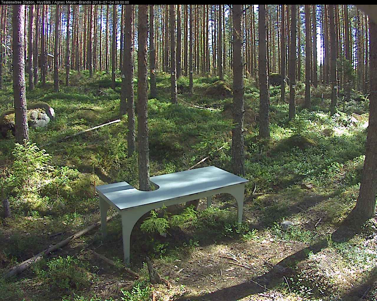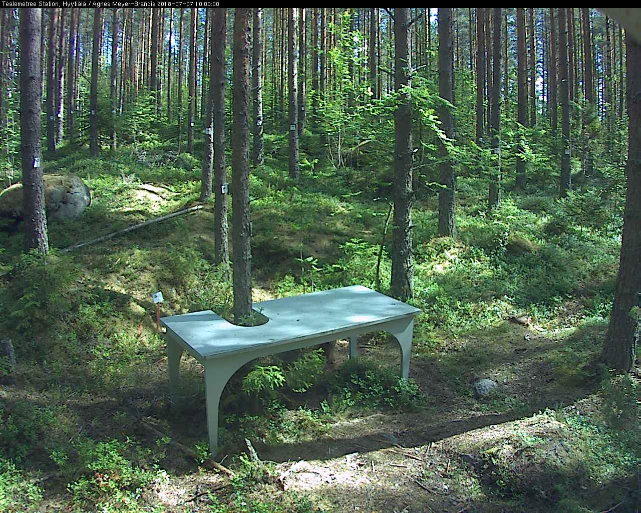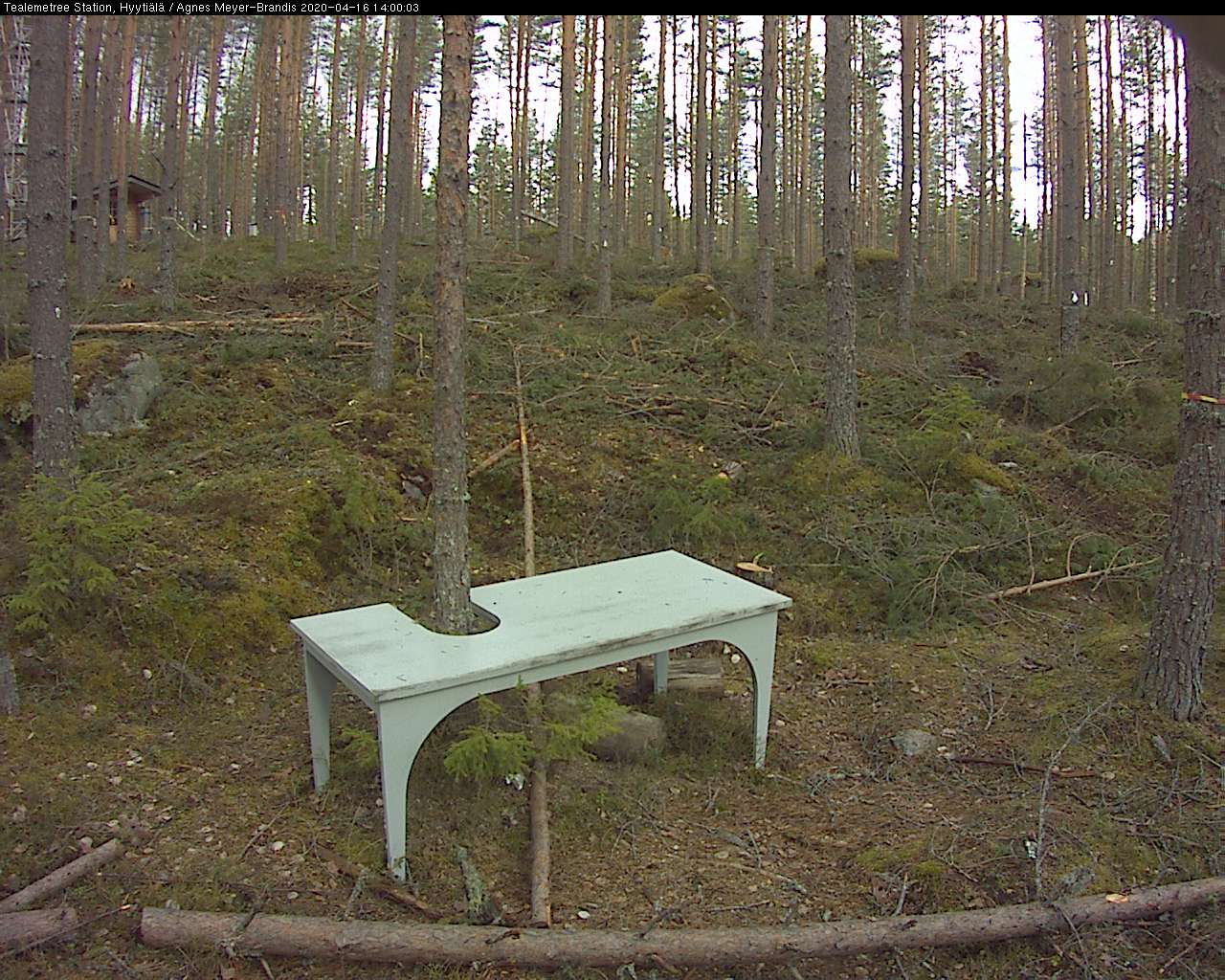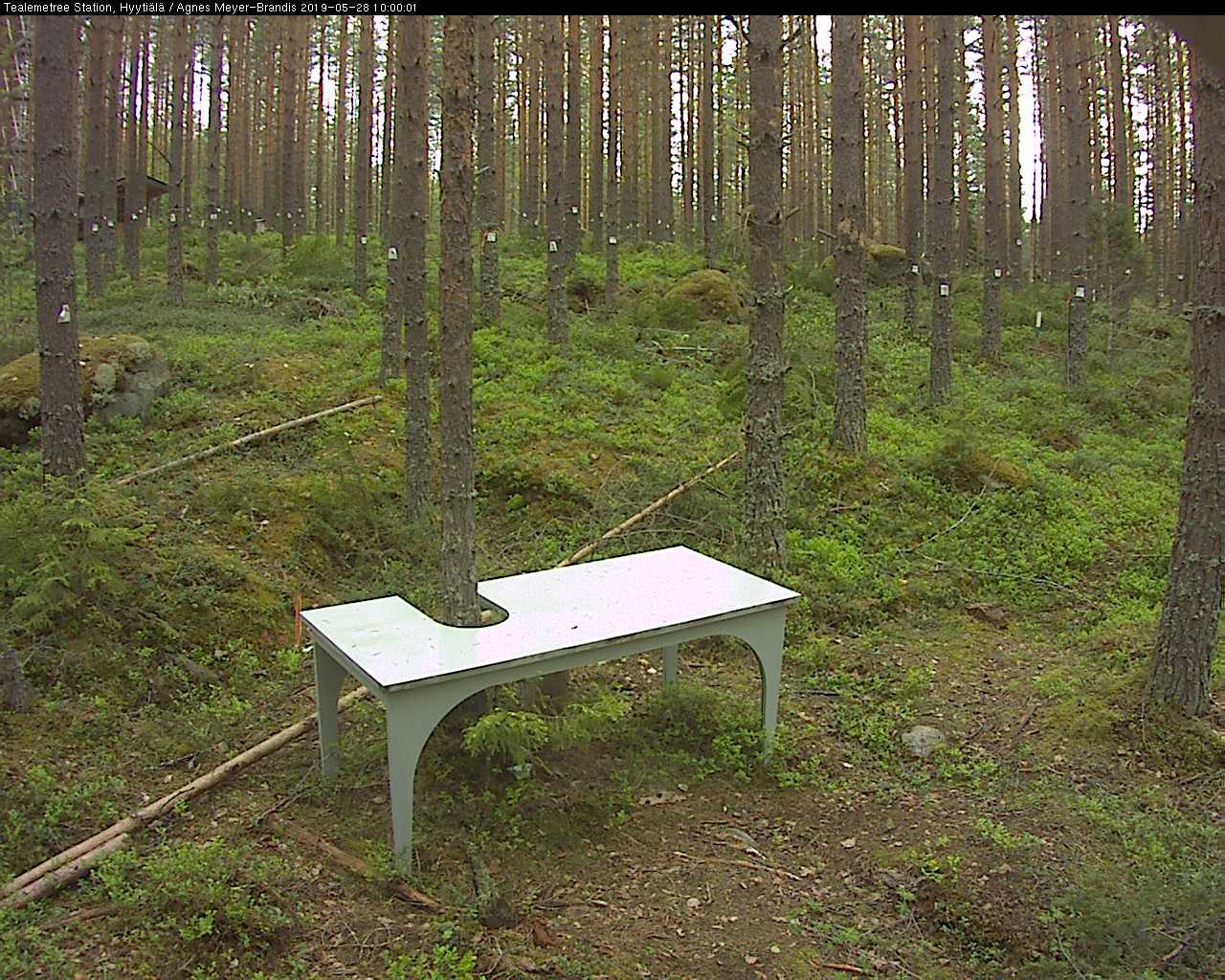 Agnes Meyer-Brandiksen työ Hyytiälässä alkoi tutustumalla aseman muihin tutkijoihin. Pystyäkseen tapaamaan ihmisiä metsässä, hän rakensi pöydän, josta muodostui kohtauspiste ja paikka teehetkille Agneksen ja puun kanssa.